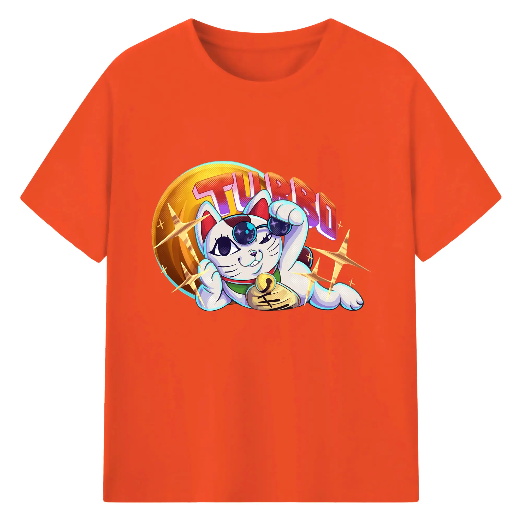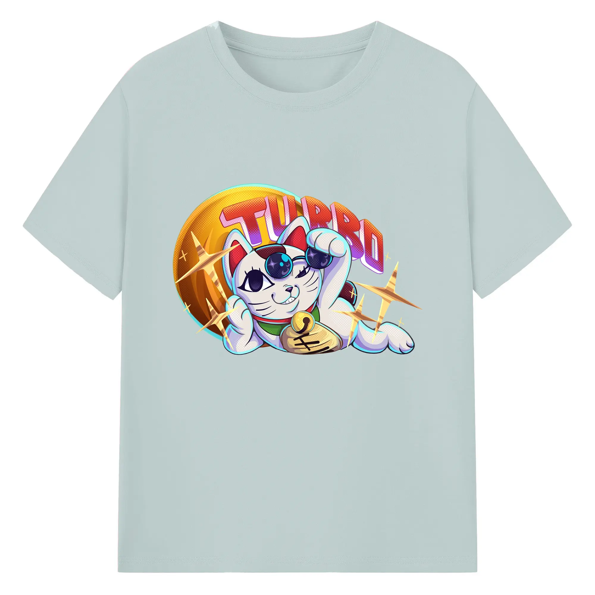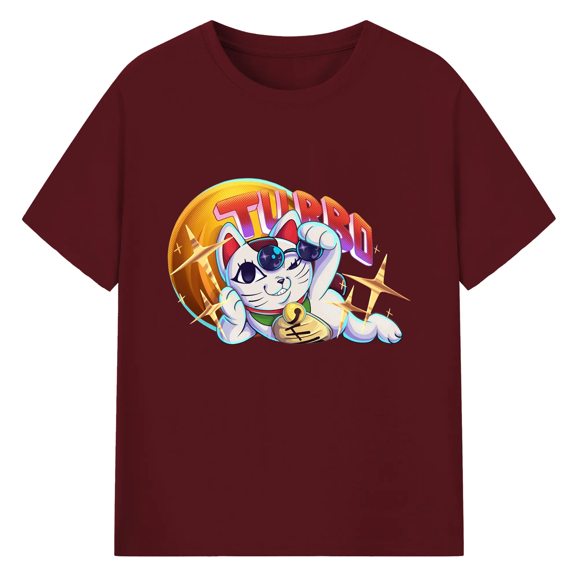 ダンダダンターボババア招き猫Turbo - 綿100% ヴィンテージ風 半袖Tシャツ ・ フロントプリント ・ 柔らか肌触り ・ 通気性 快適 ・ スポーツ カジュアル 外出用