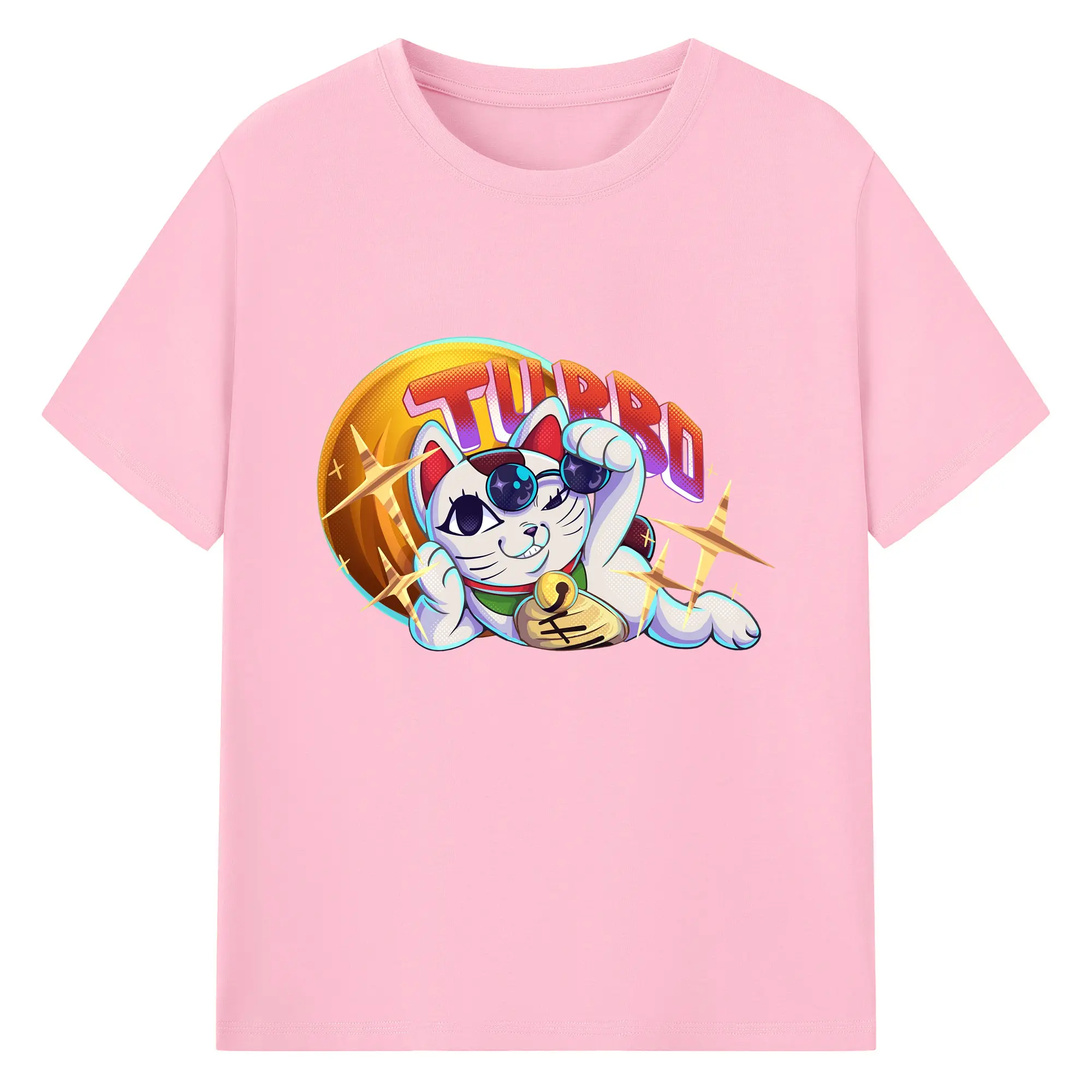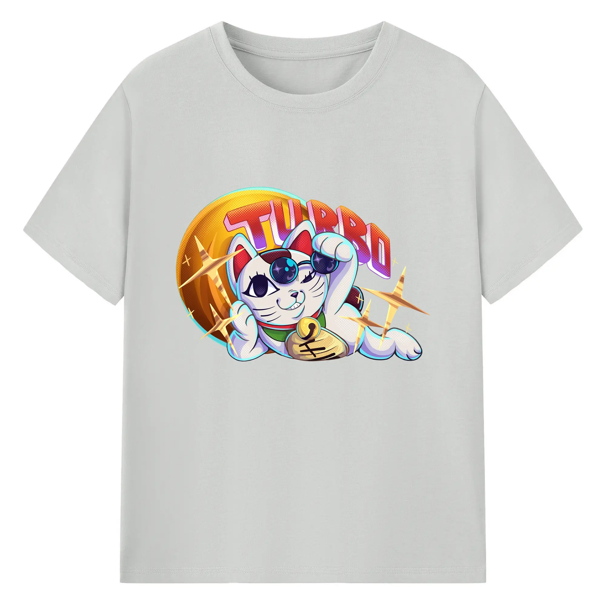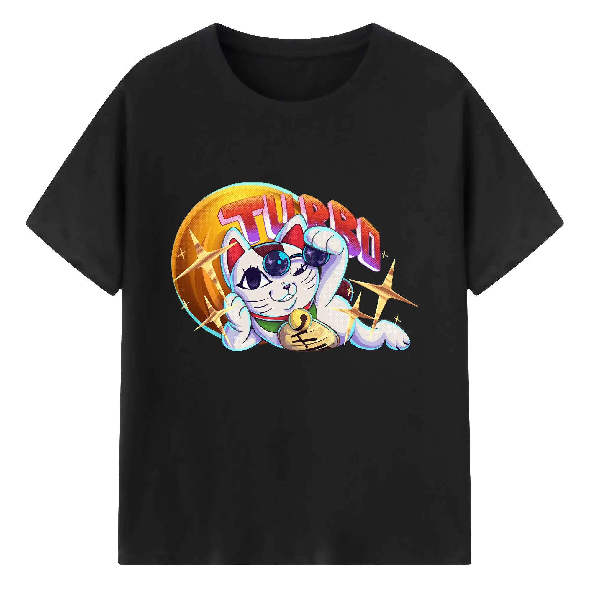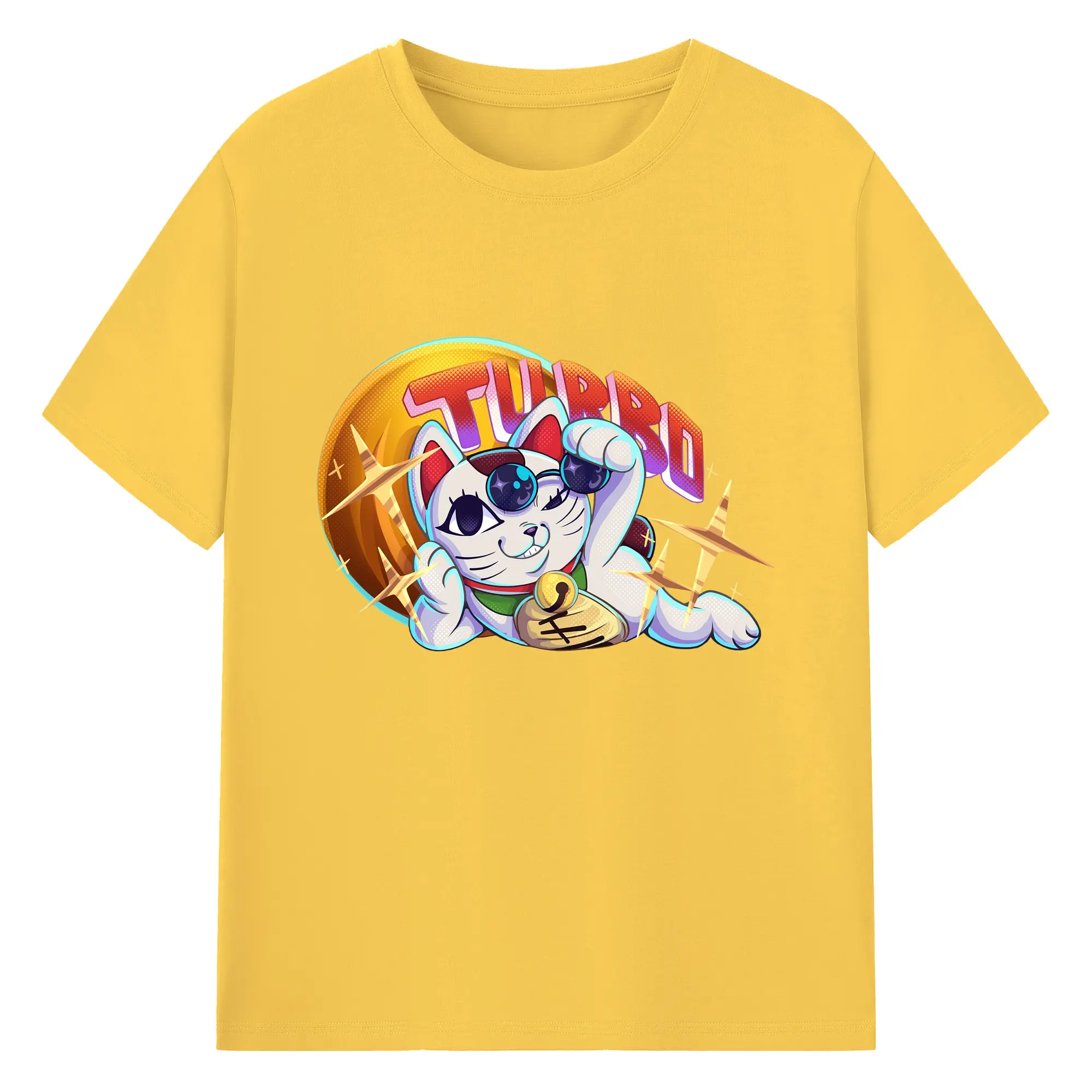 ダンダダンターボババア招き猫Turbo - 綿100% ヴィンテージ風 半袖Tシャツ ・ フロントプリント ・ 柔らか肌触り ・ 通気性 快適 ・ スポーツ カジュアル 外出用
