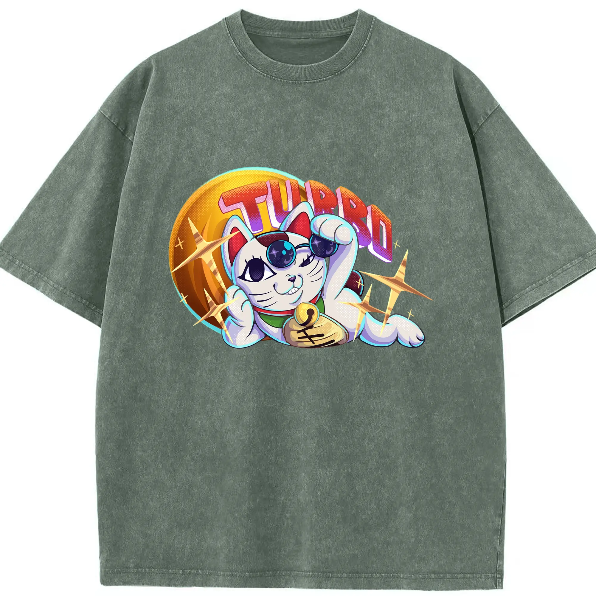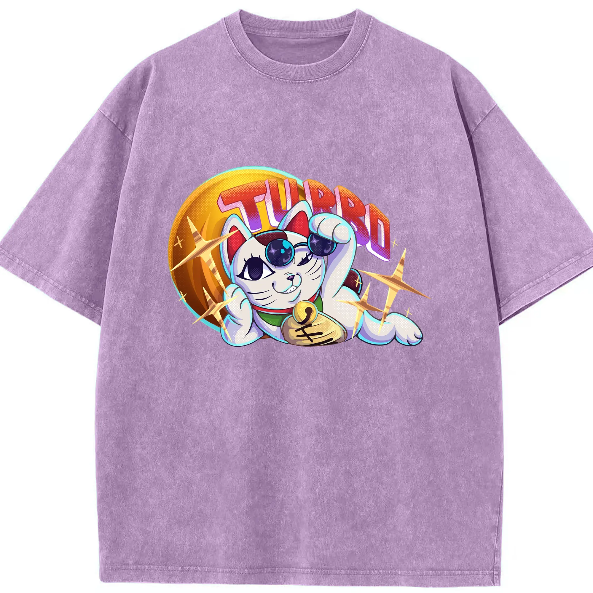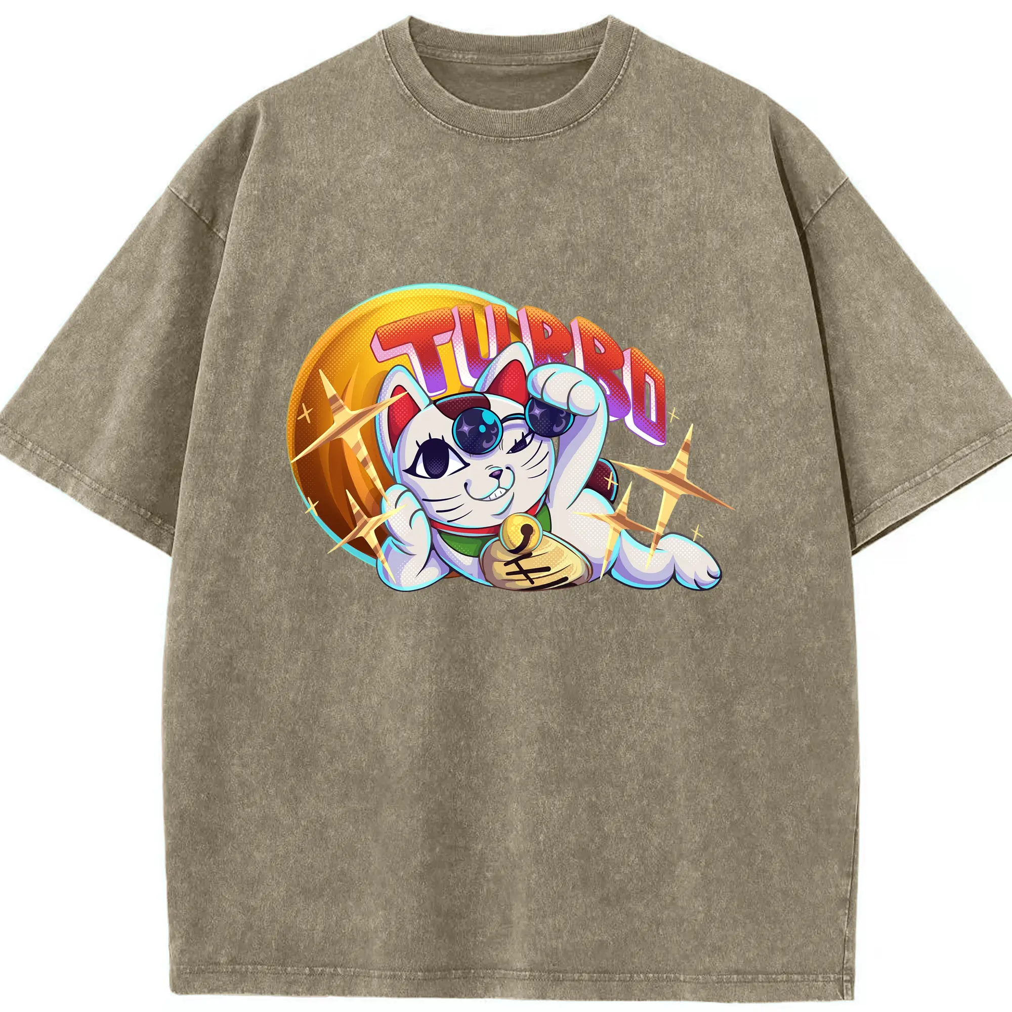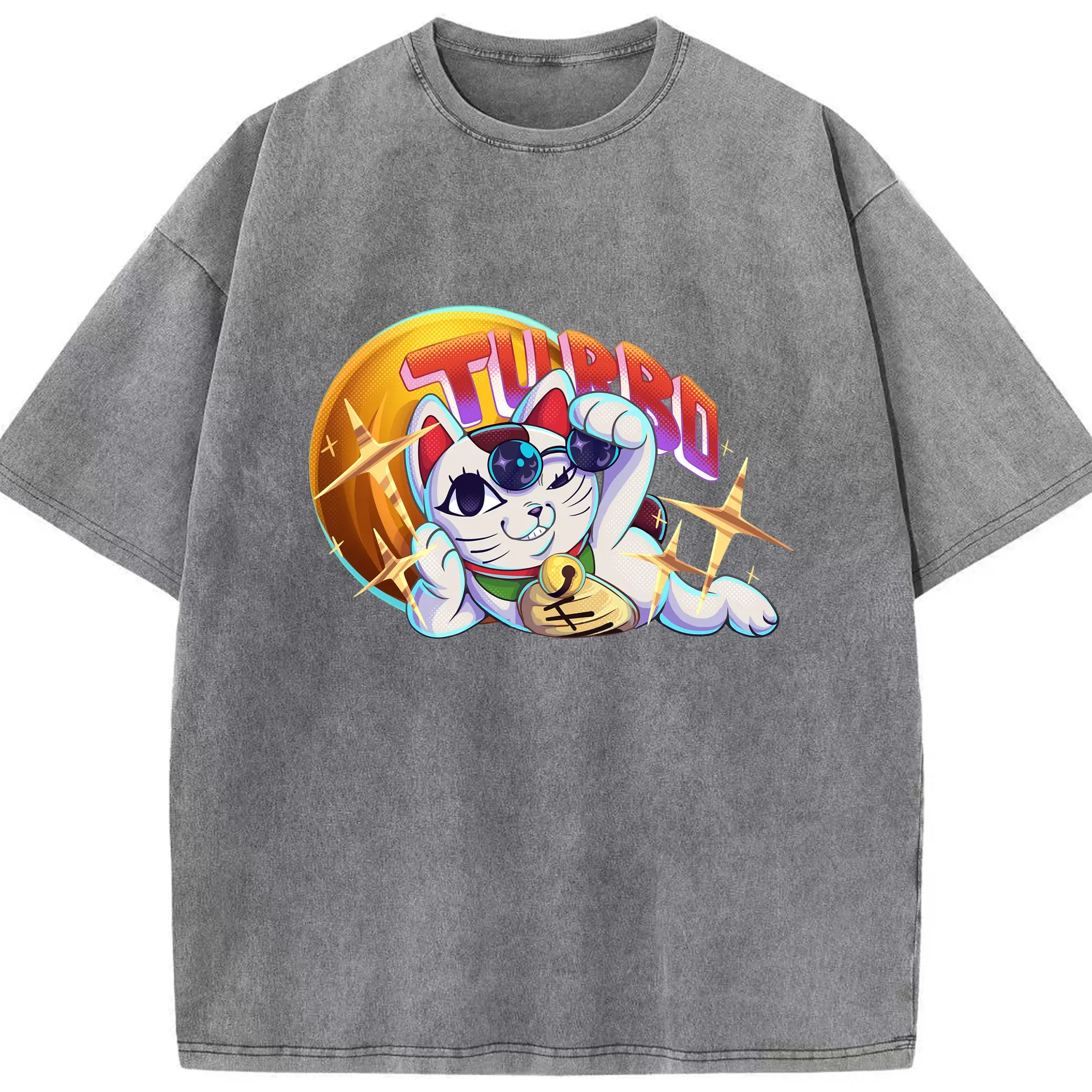 ダンダダンターボババア招き猫Turbo - 綿100% 半袖Tシャツ ・ フロントプリント ・ 快適 通気性 ・ 日常使い 散歩 スポーツ用