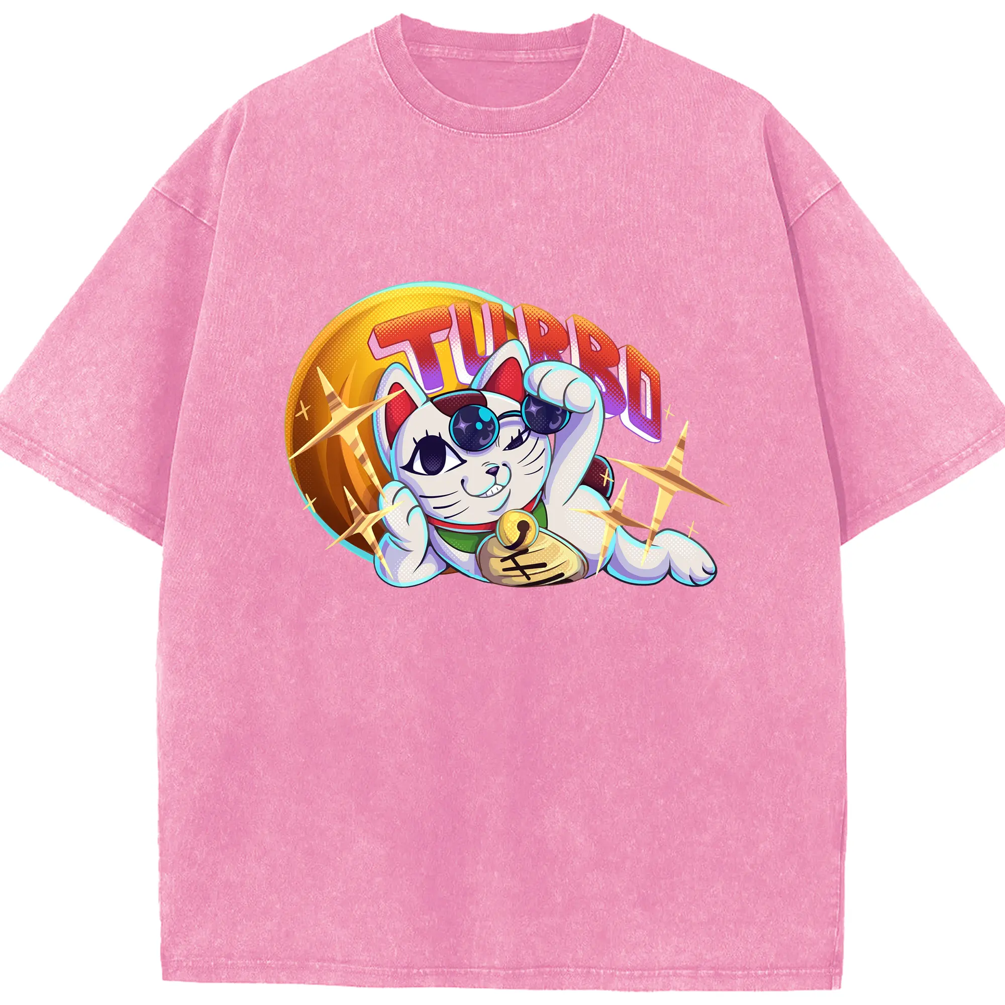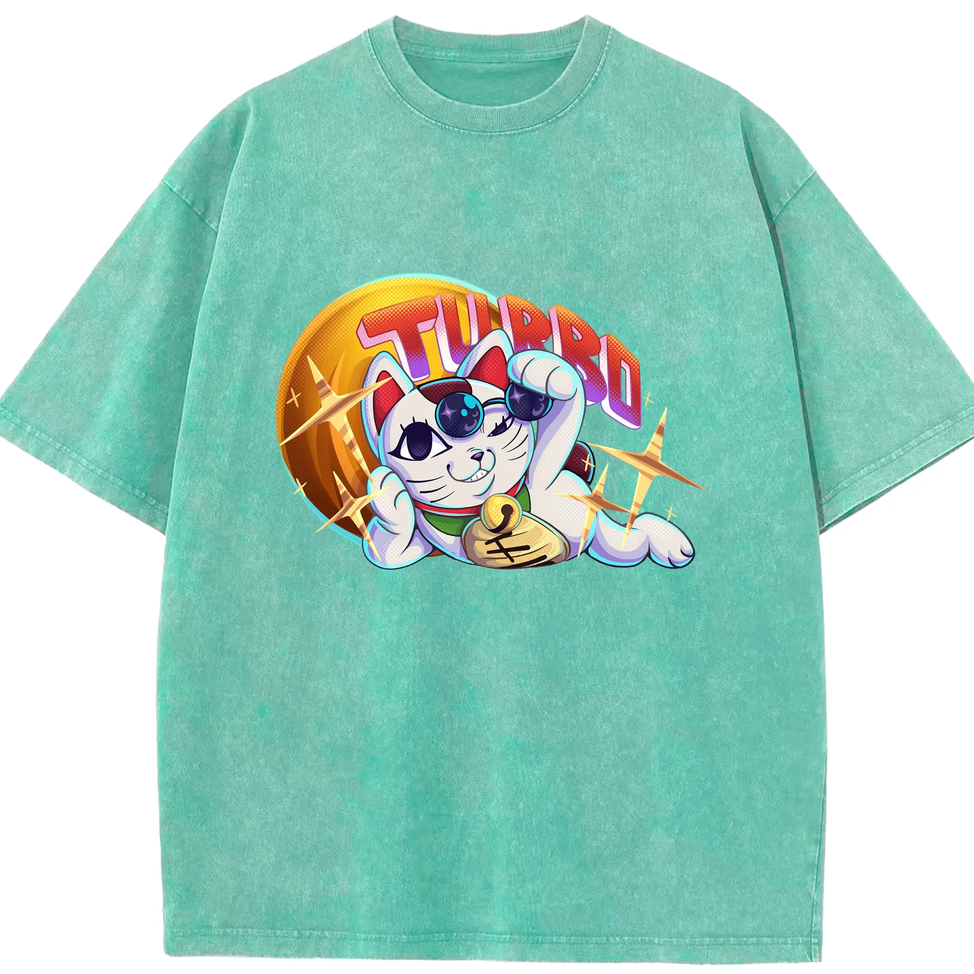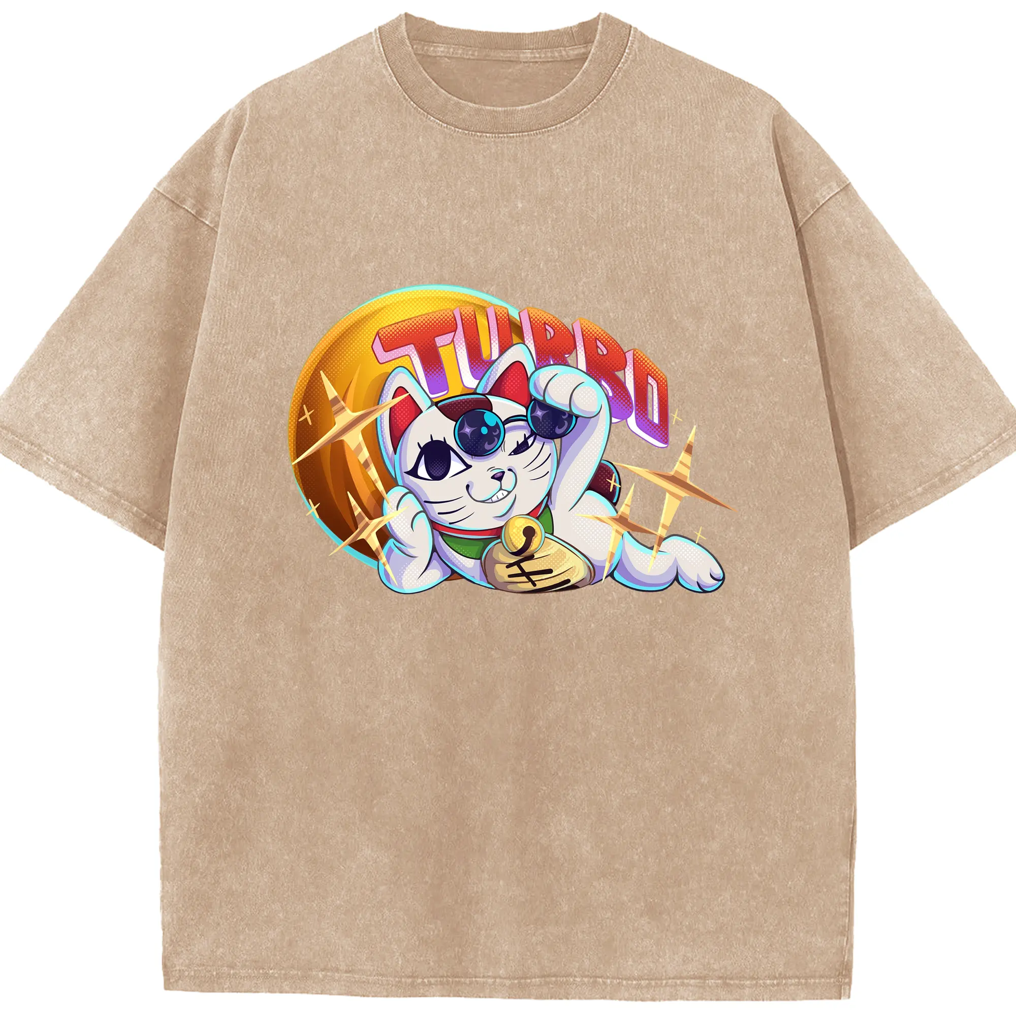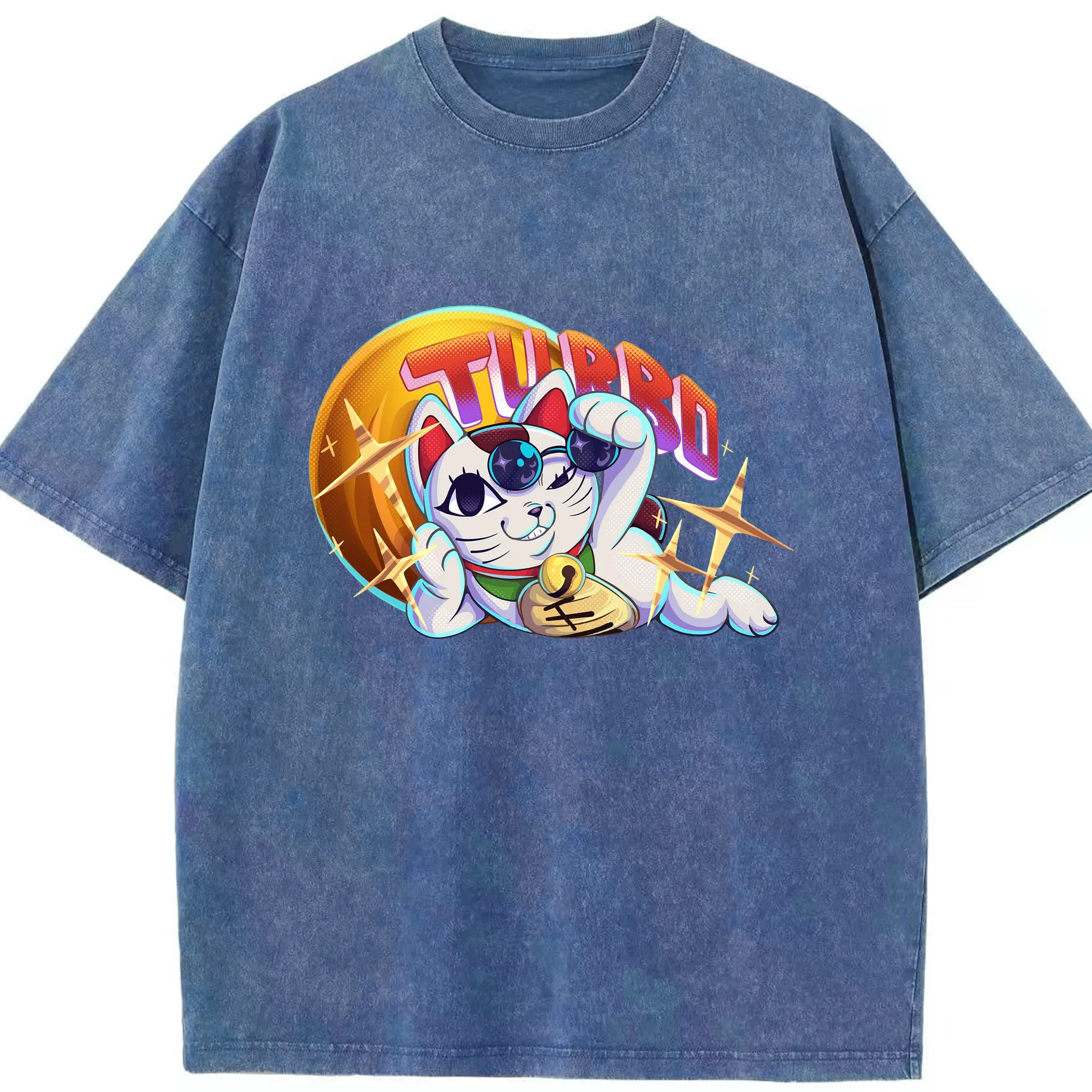 ダンダダンターボババア招き猫Turbo - 綿100% 半袖Tシャツ ・ フロントプリント ・ 快適 通気性 ・ 日常使い 散歩 スポーツ用