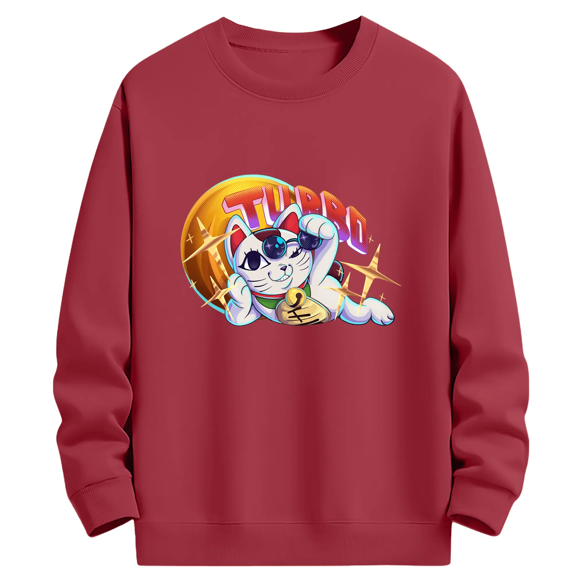 ダンダダンターボババア招き猫Turbo - 綿100% 半袖Tシャツ ・ フロントプリント ・ 快適 通気性 ・ 日常使い 散歩 スポーツ用