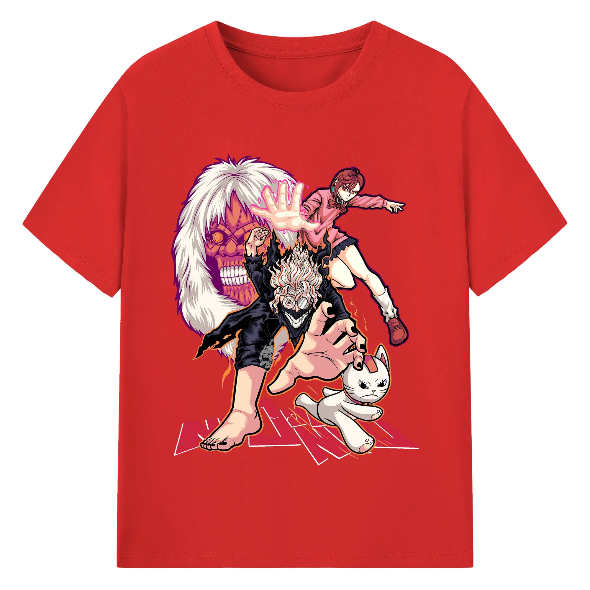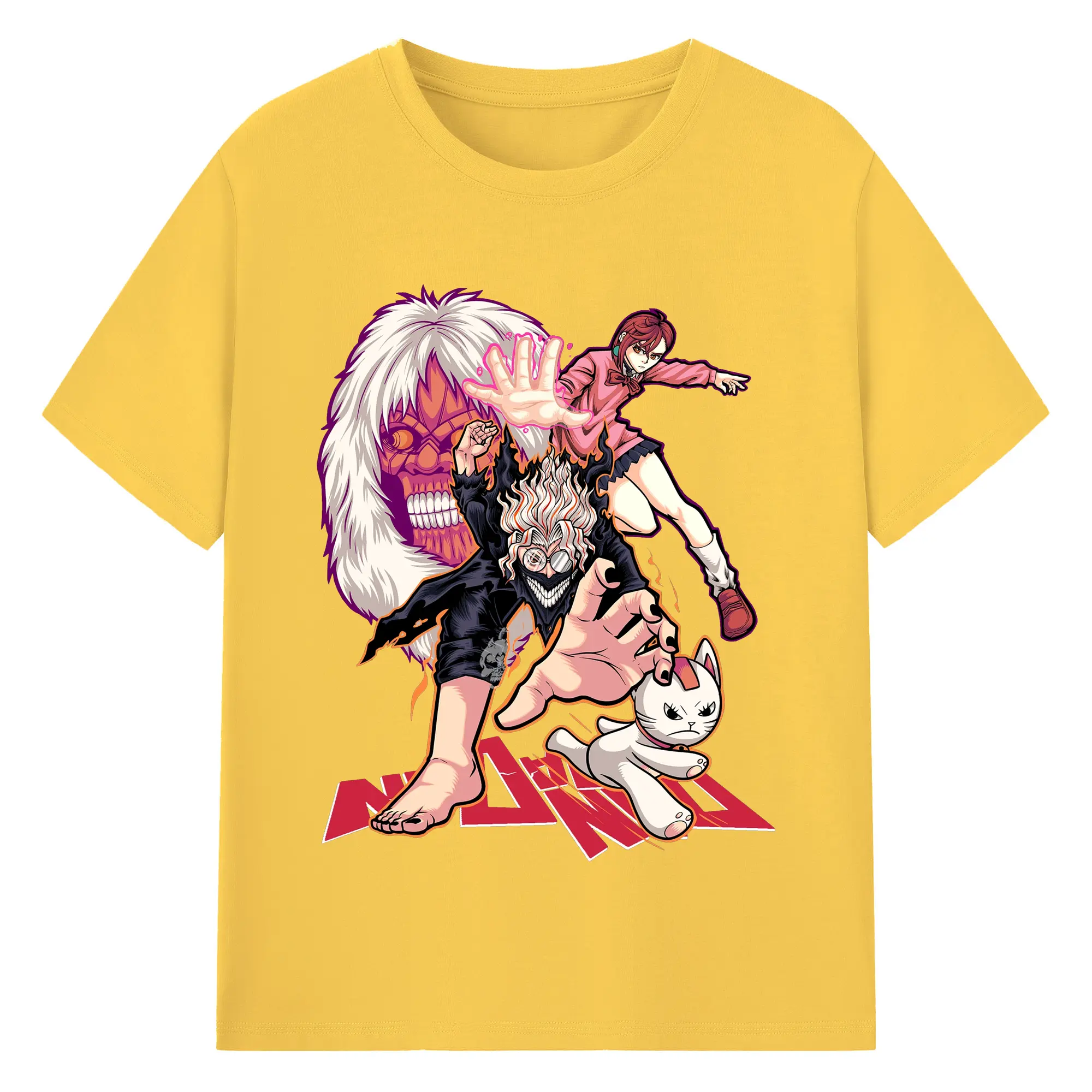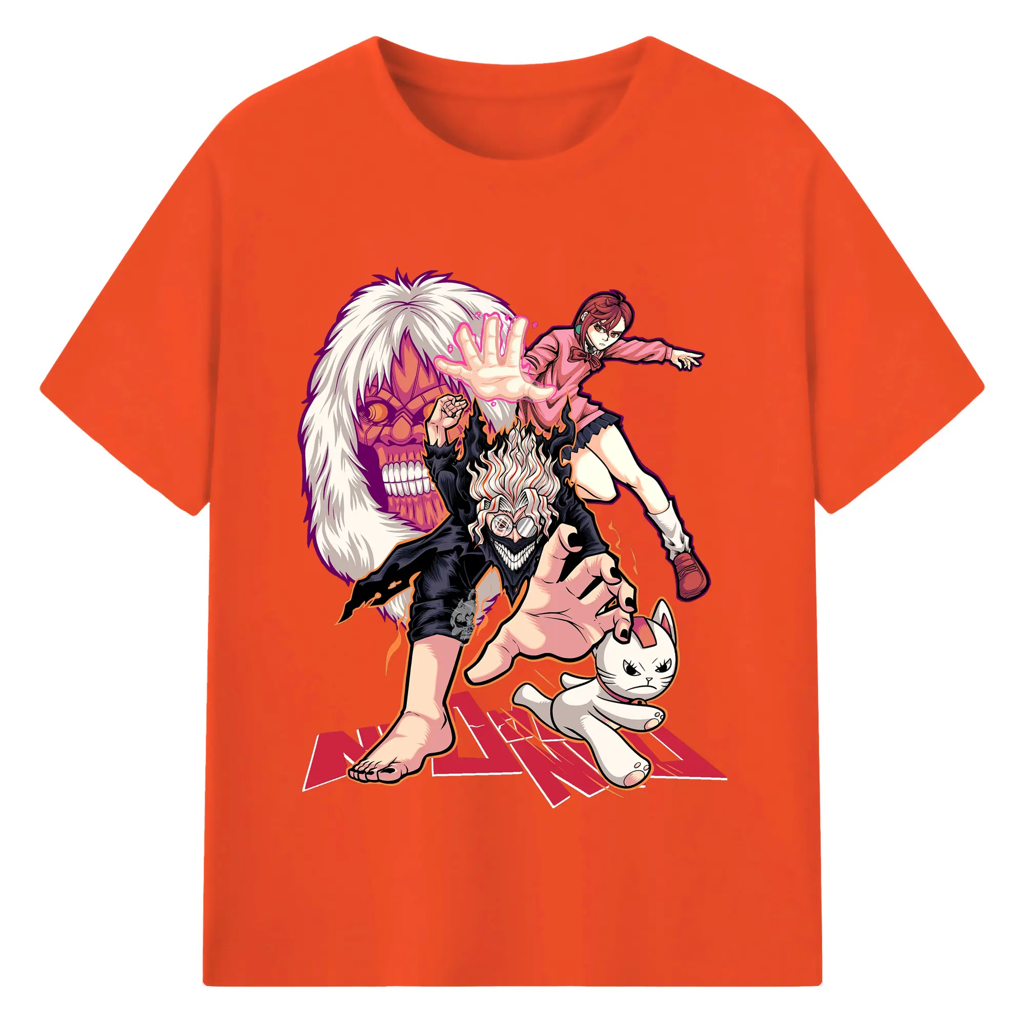 ダンダダンメインキャラクター - 綿100% ヴィンテージ風 半袖Tシャツ ・ フロントプリント ・ 柔らか肌触り ・ 通気性 快適 ・ スポーツ カジュアル 外出用