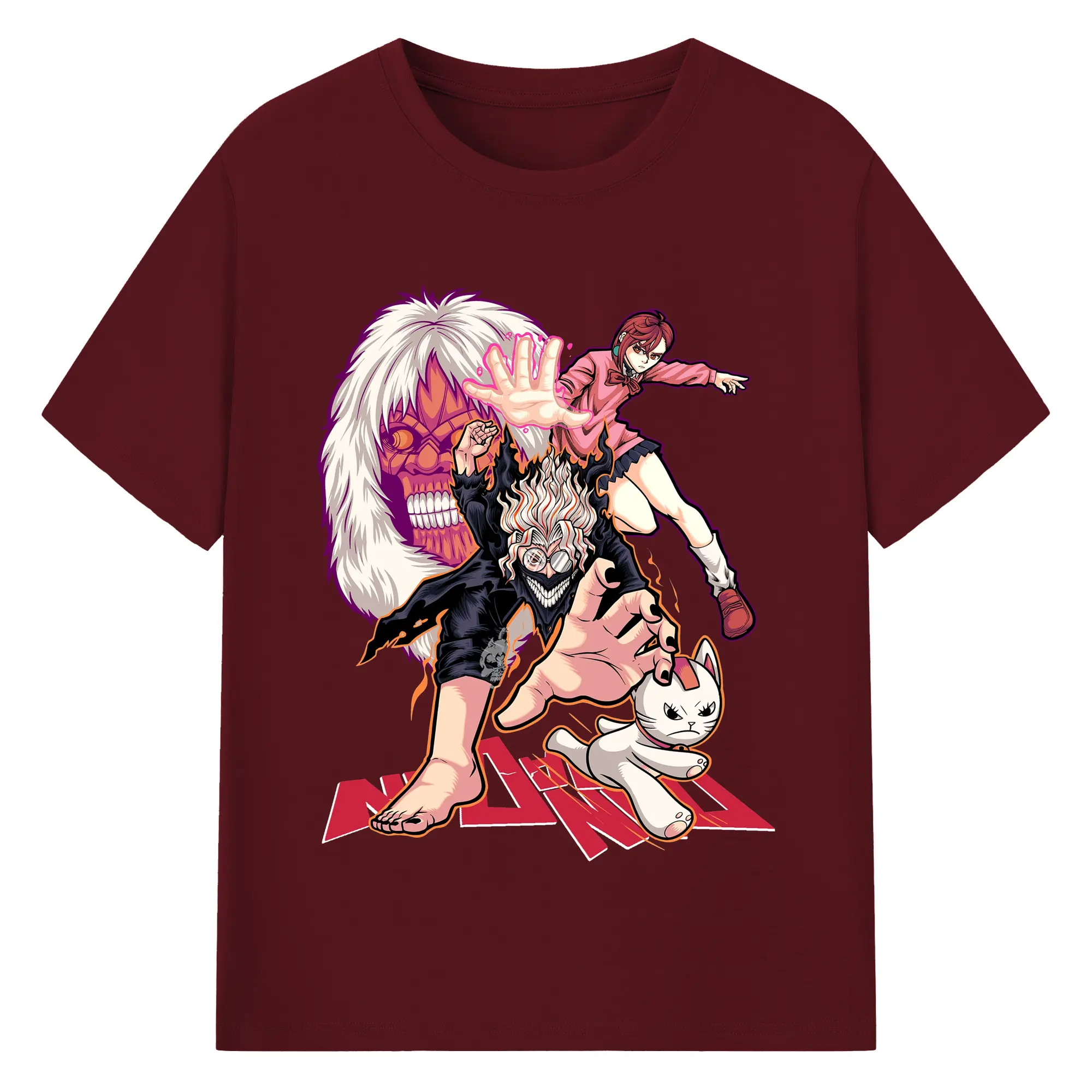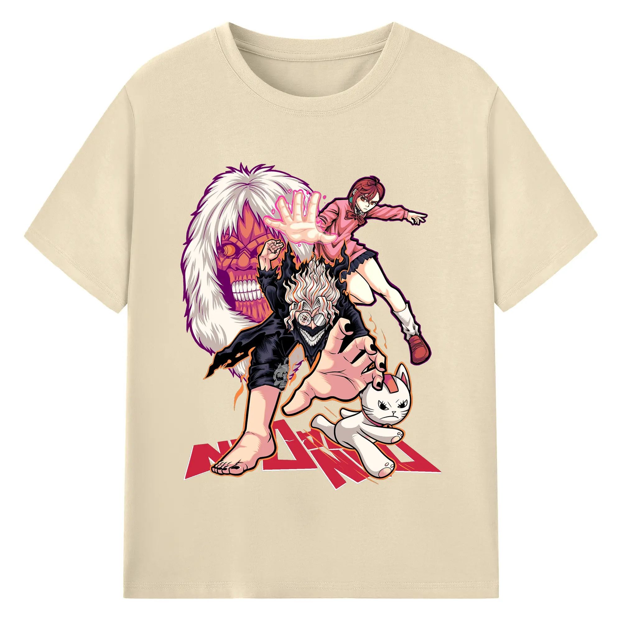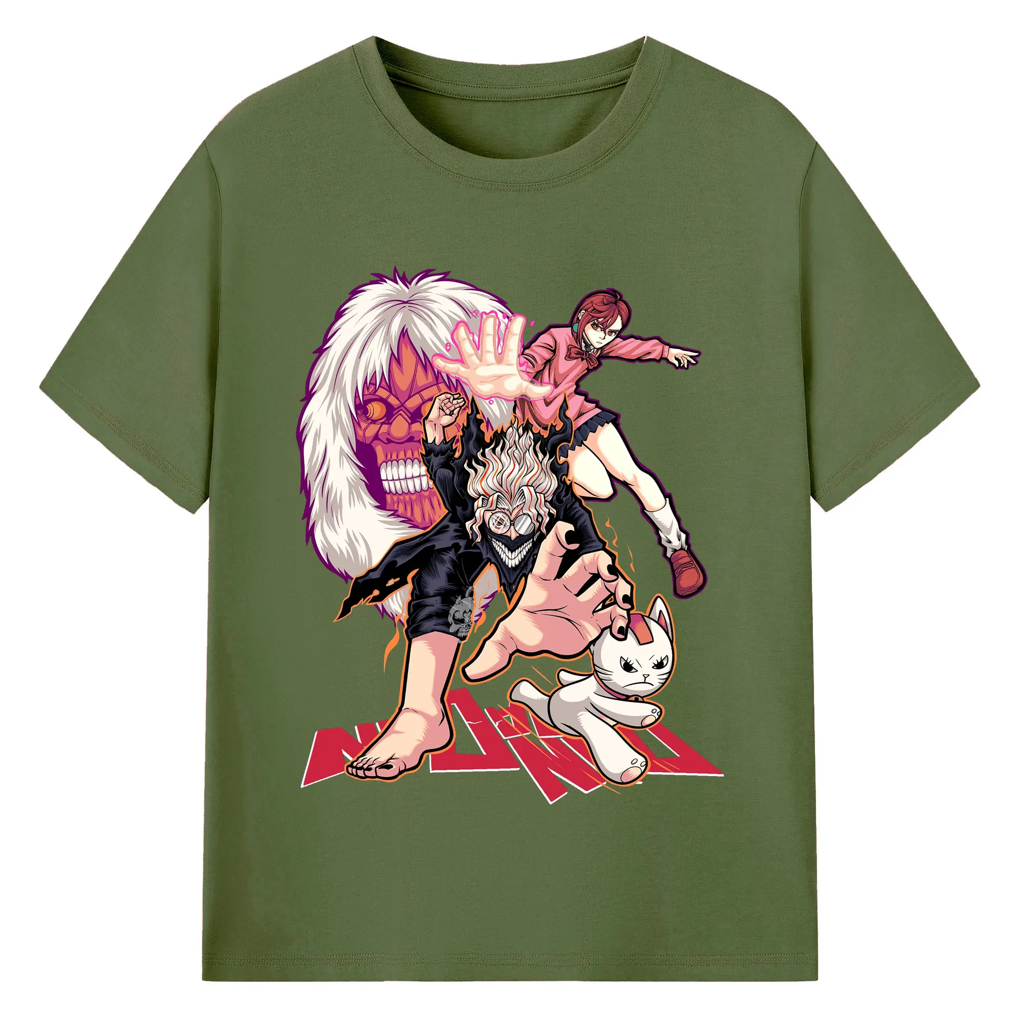 ダンダダンメインキャラクター - 綿100% ヴィンテージ風 半袖Tシャツ ・ フロントプリント ・ 柔らか肌触り ・ 通気性 快適 ・ スポーツ カジュアル 外出用