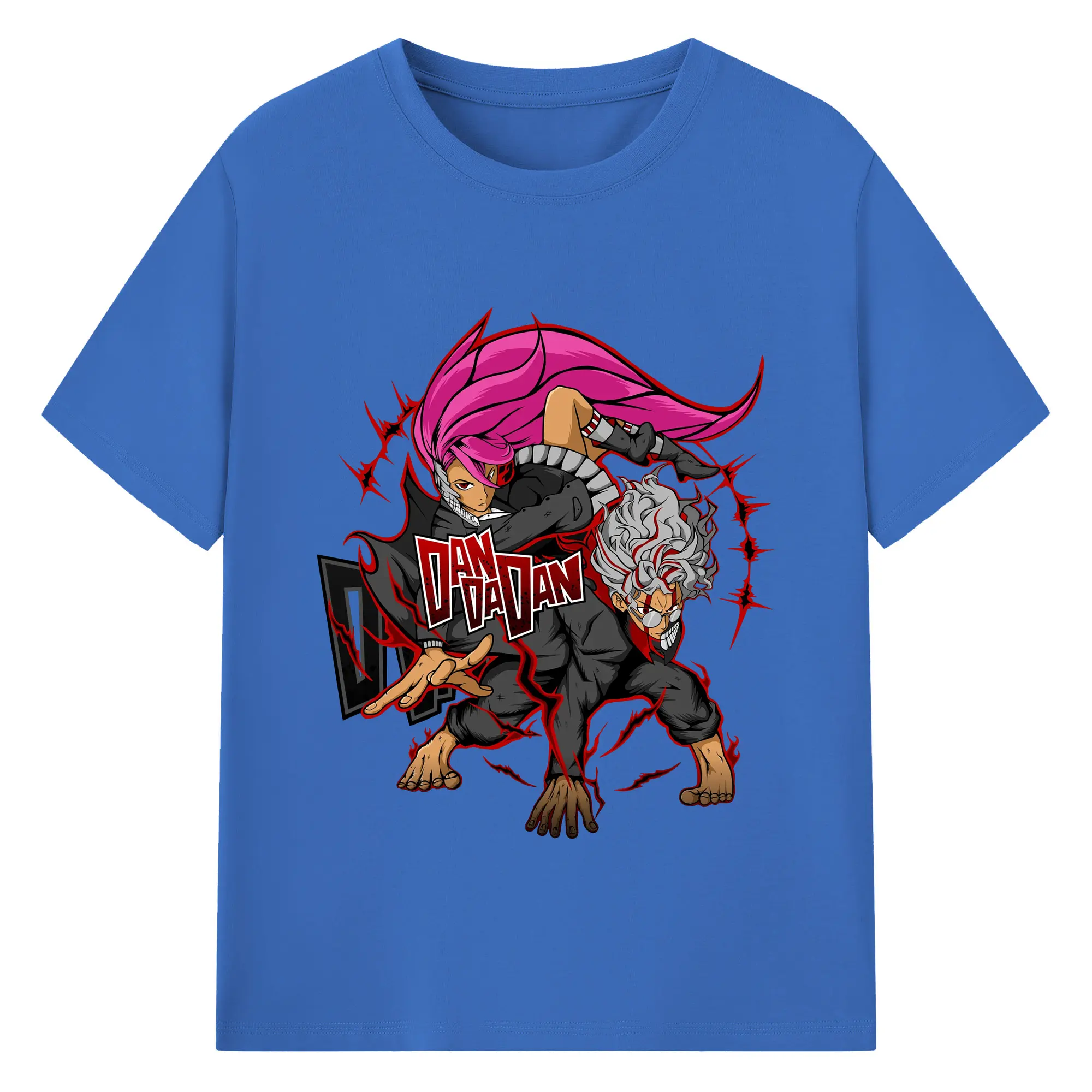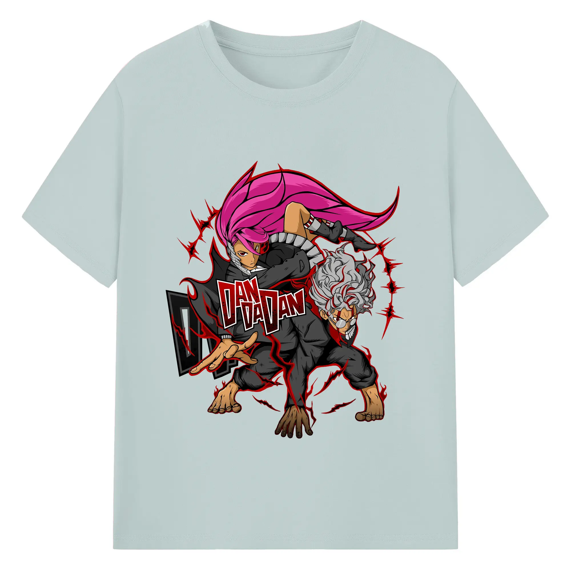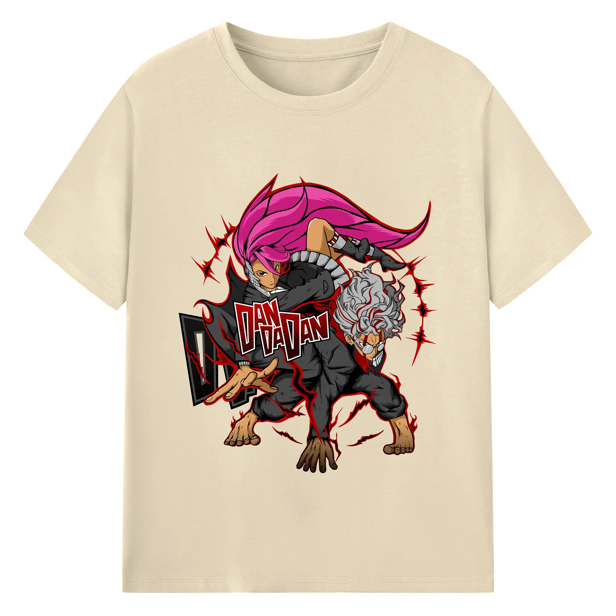 ダンダダン白鳥愛羅&高倉健 - 綿100% ヴィンテージ風 半袖Tシャツ ・ フロントプリント ・ 柔らか肌触り ・ 通気性 快適 ・ スポーツ カジュアル 外出用