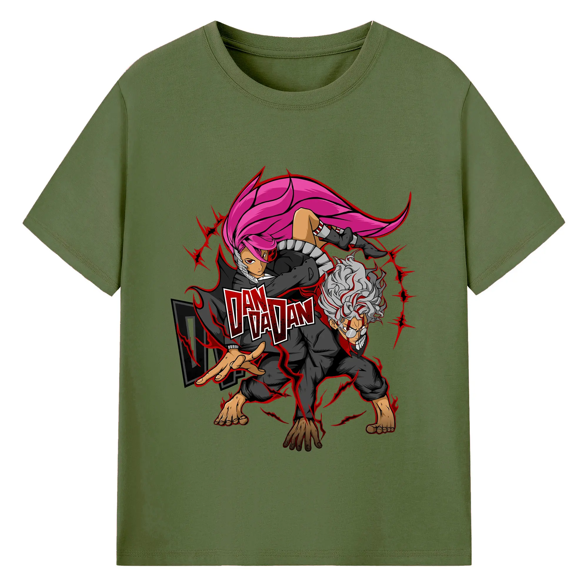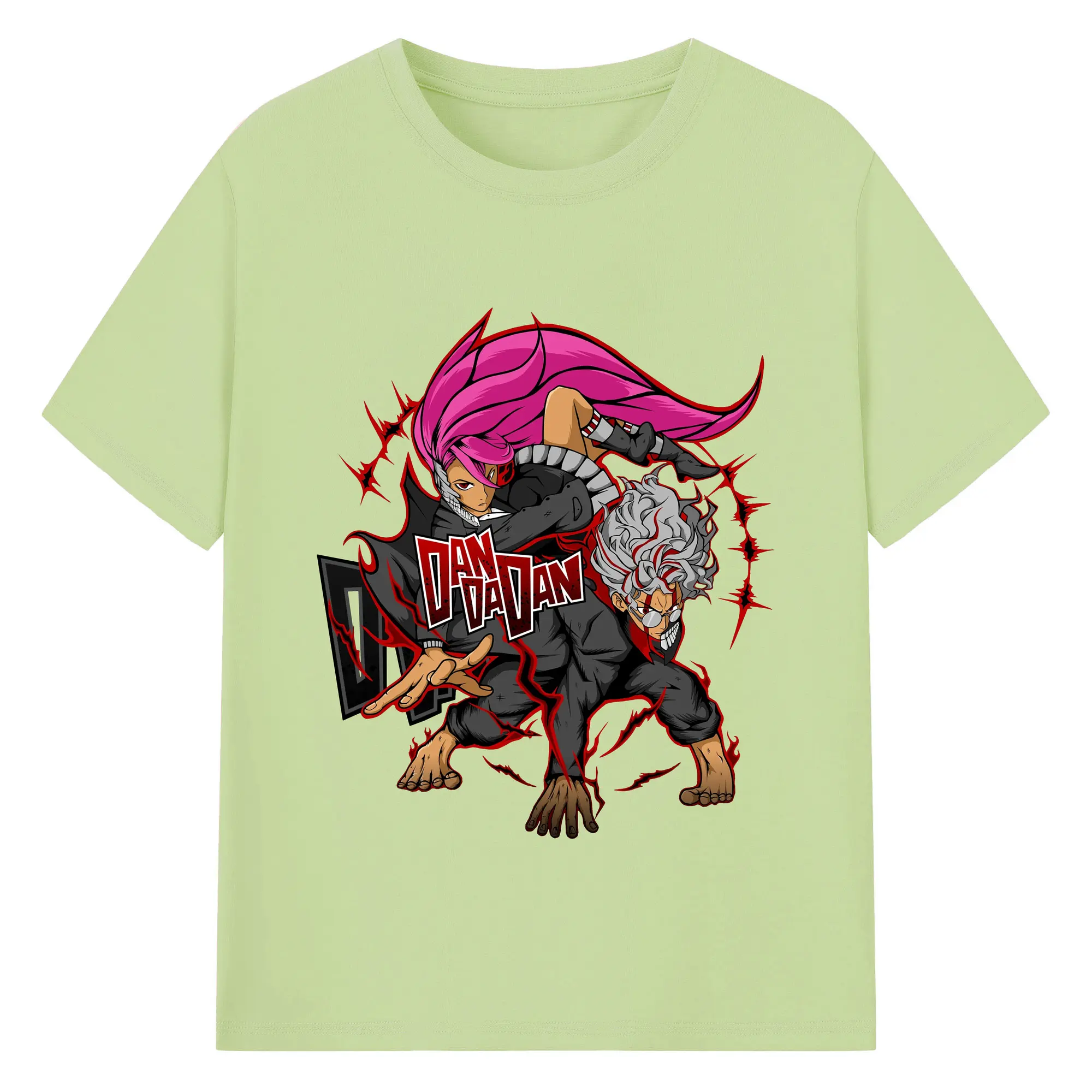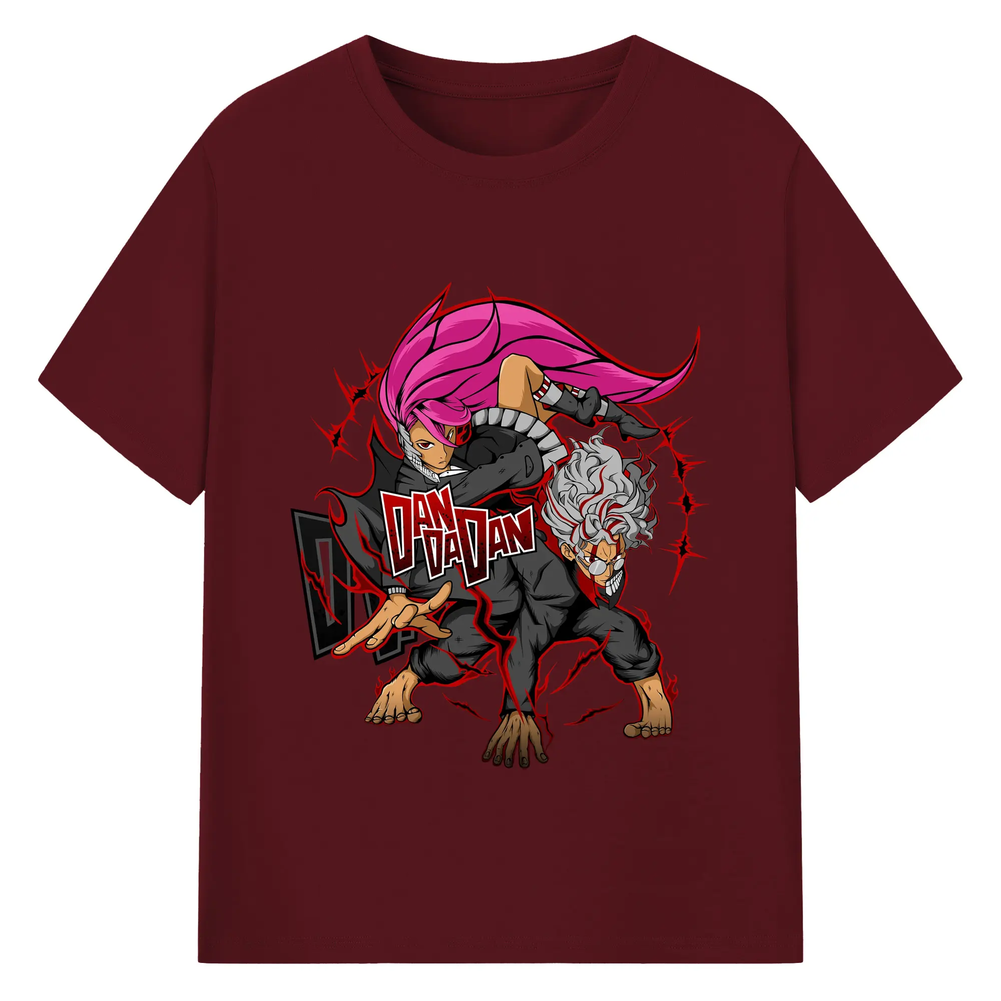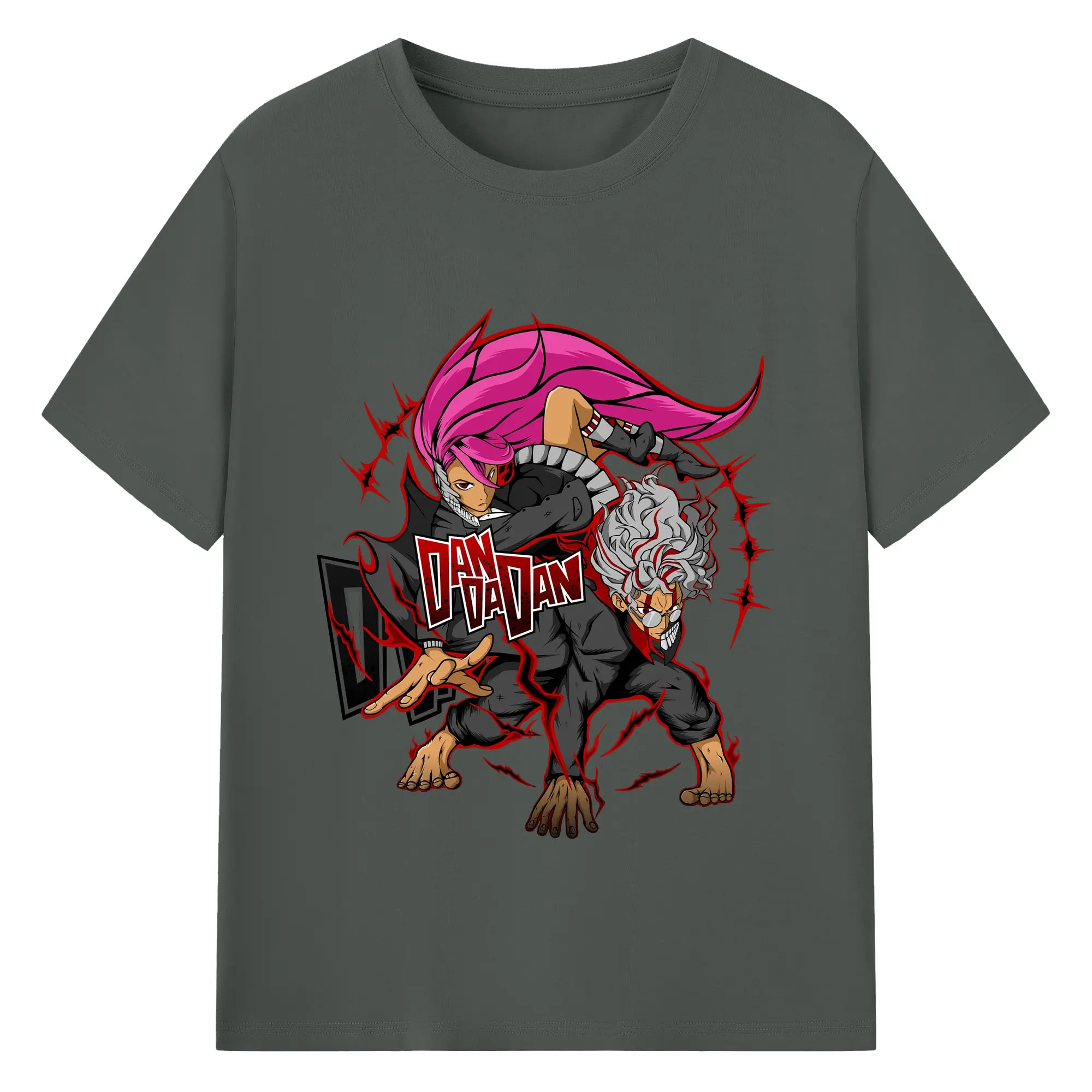 ダンダダン白鳥愛羅&高倉健 - 綿100% ヴィンテージ風 半袖Tシャツ ・ フロントプリント ・ 柔らか肌触り ・ 通気性 快適 ・ スポーツ カジュアル 外出用
