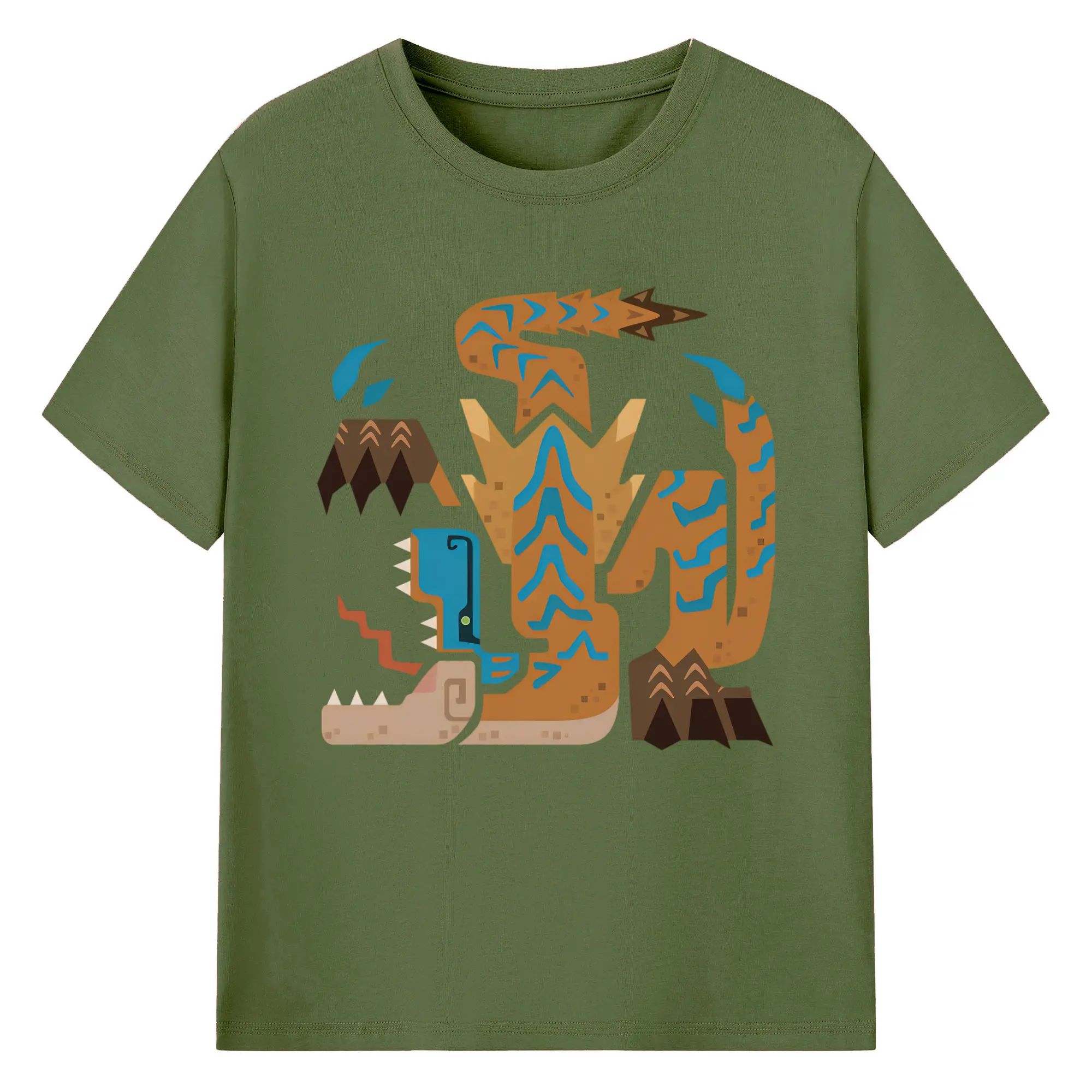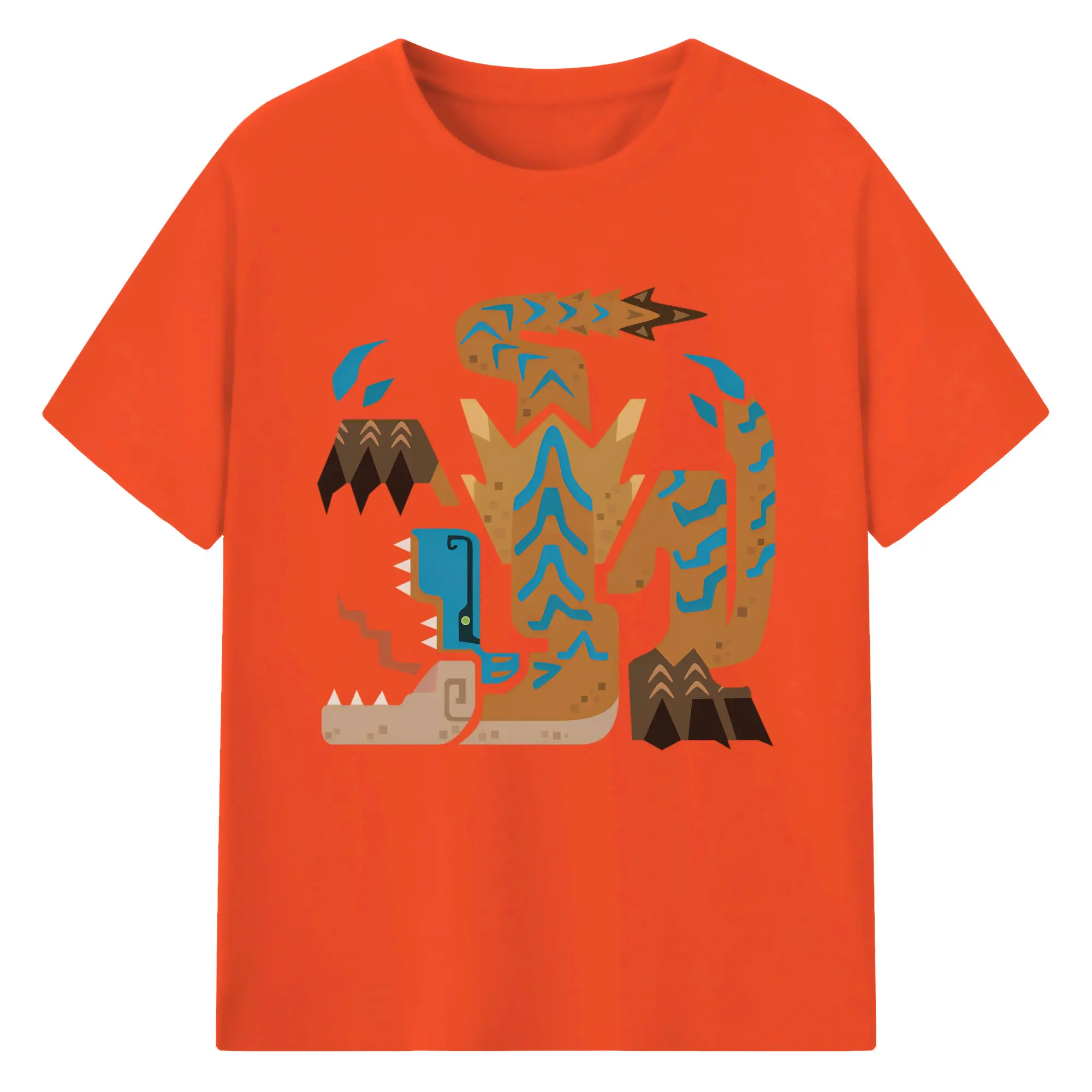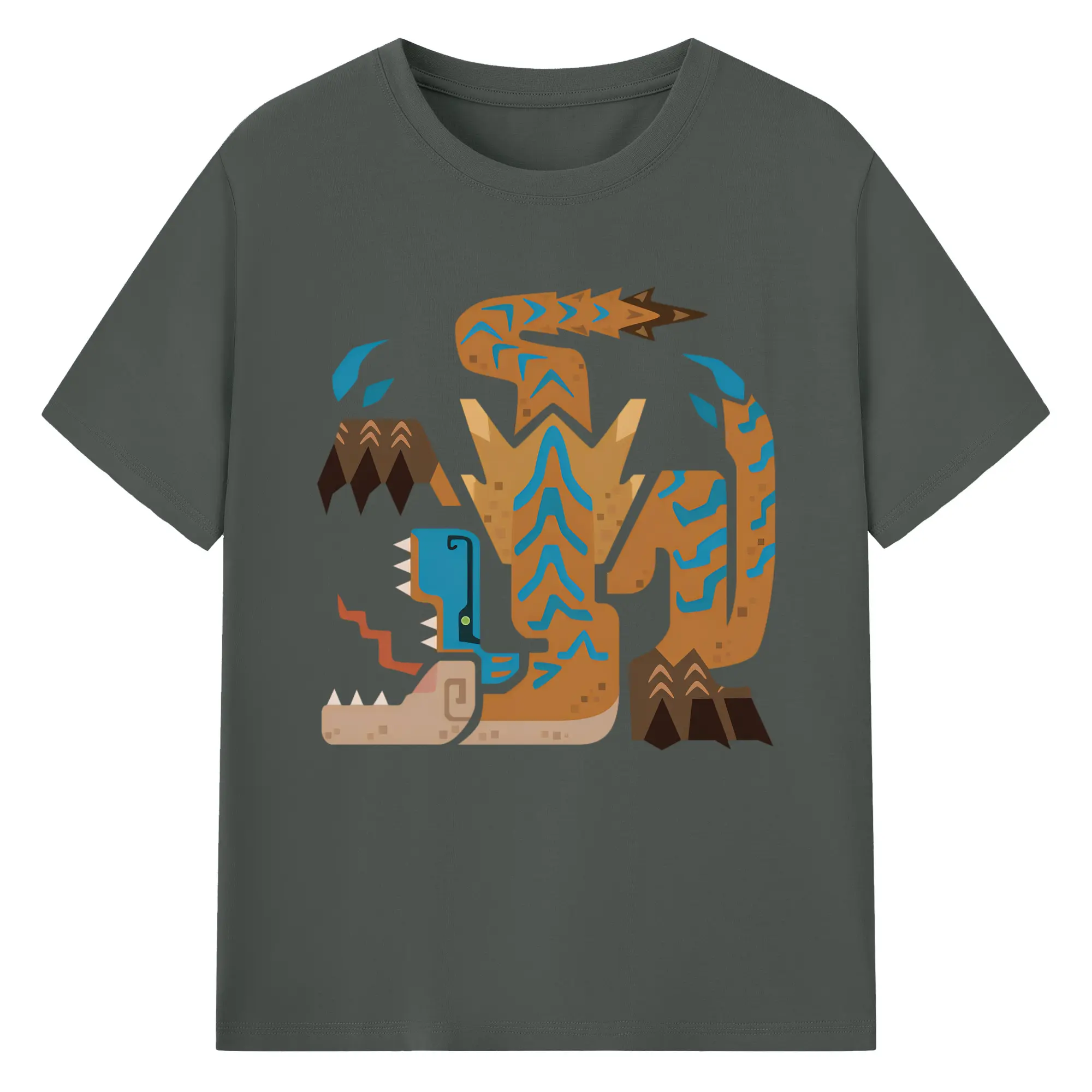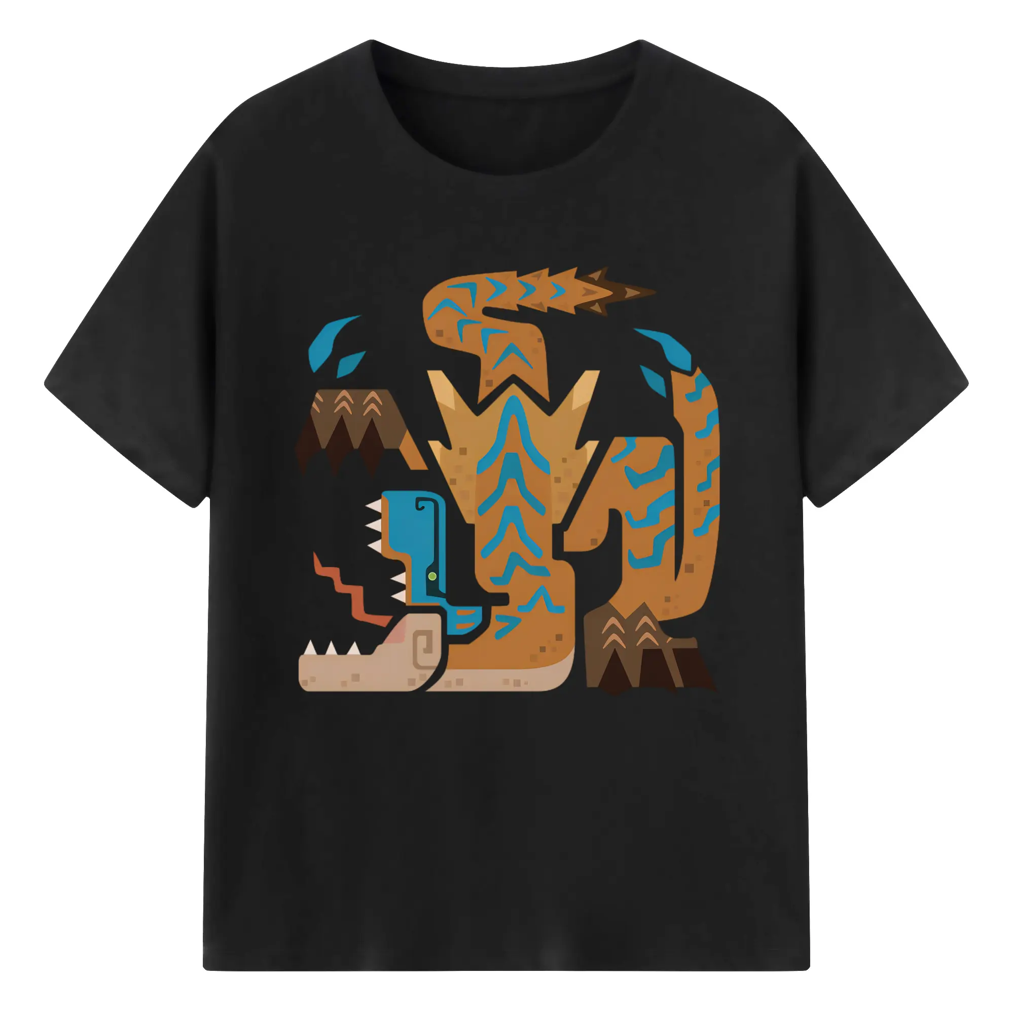 ティガレックス ハンター必見!迫力満点モンハン - 綿100% ヴィンテージ風 半袖Tシャツ ・ フロントプリント ・ 柔らか肌触り ・ 通気性 快適 ・ スポーツ カジュアル 外出用