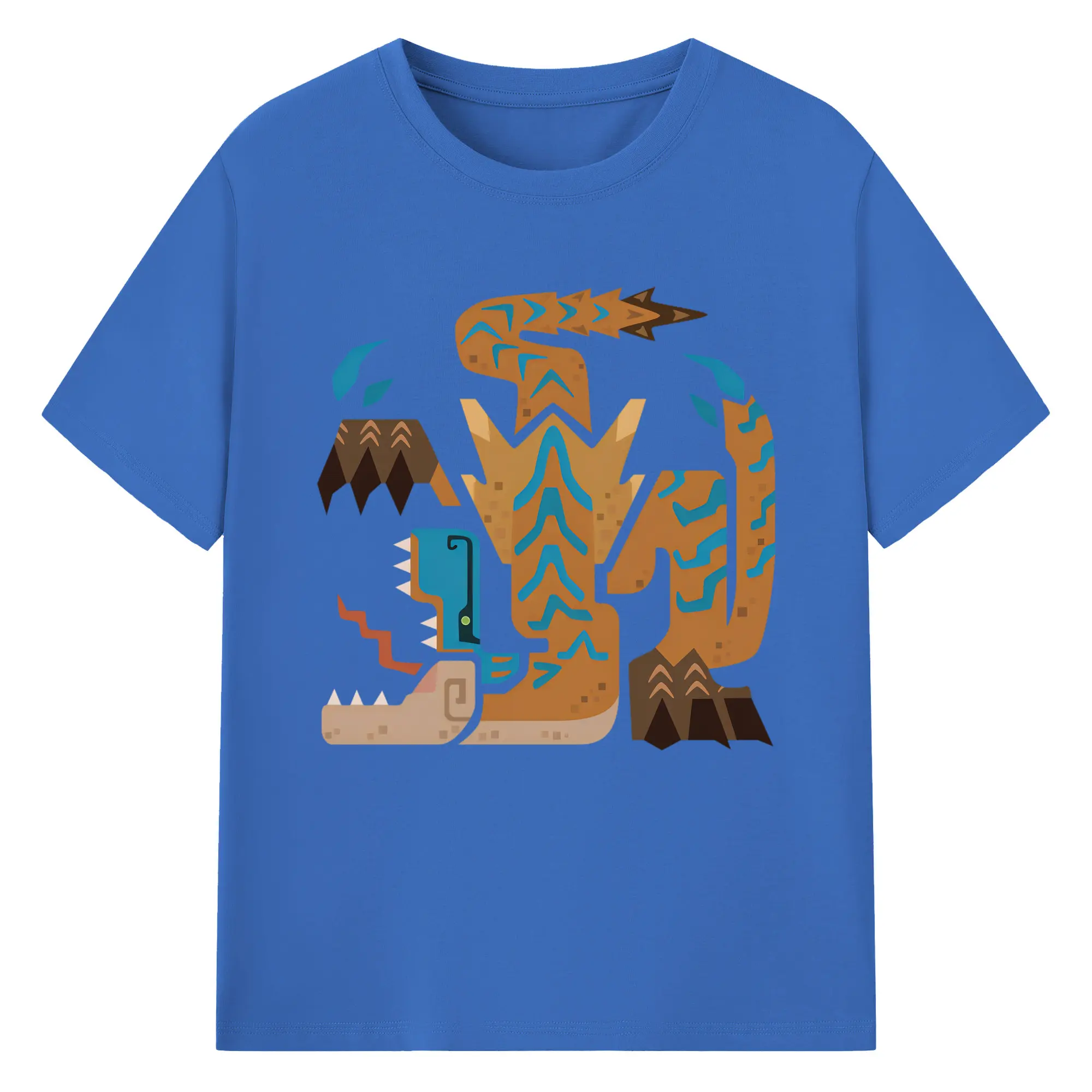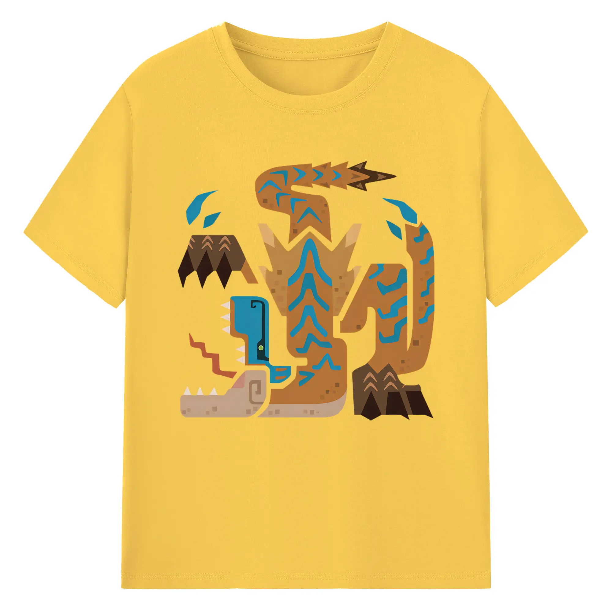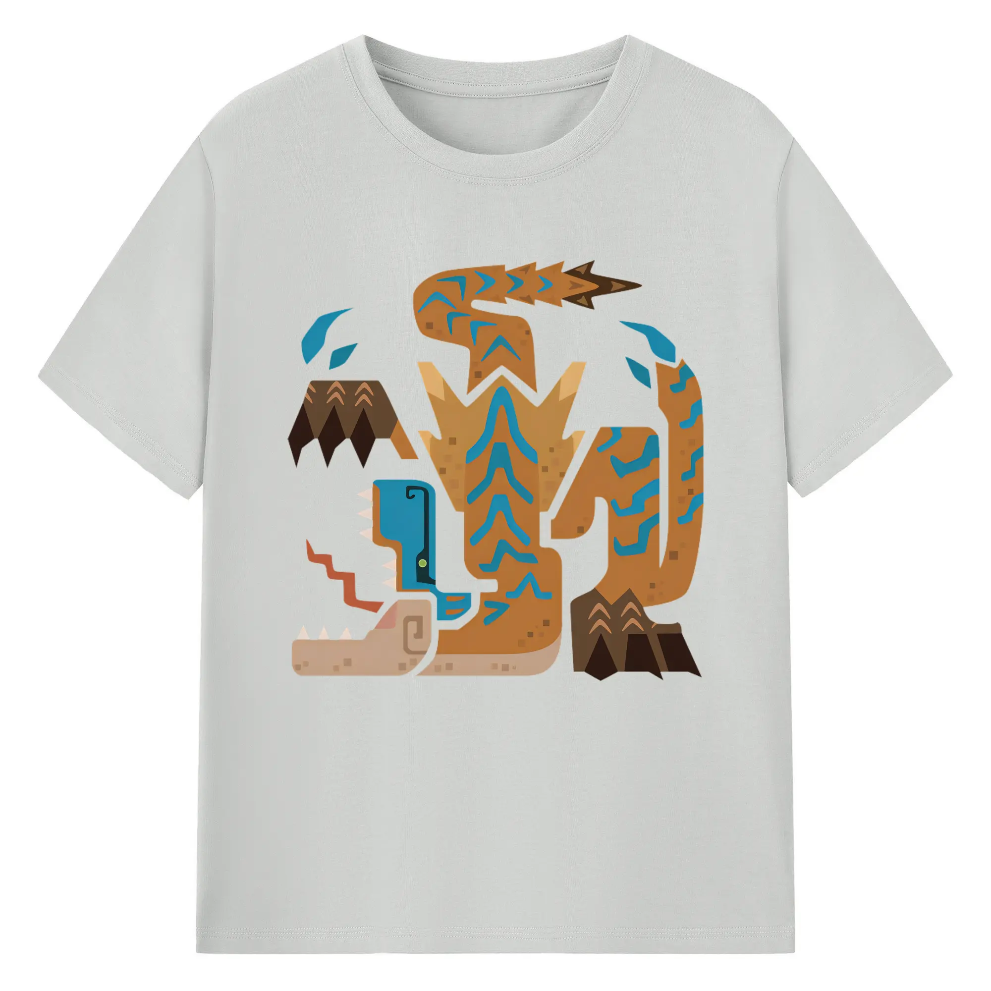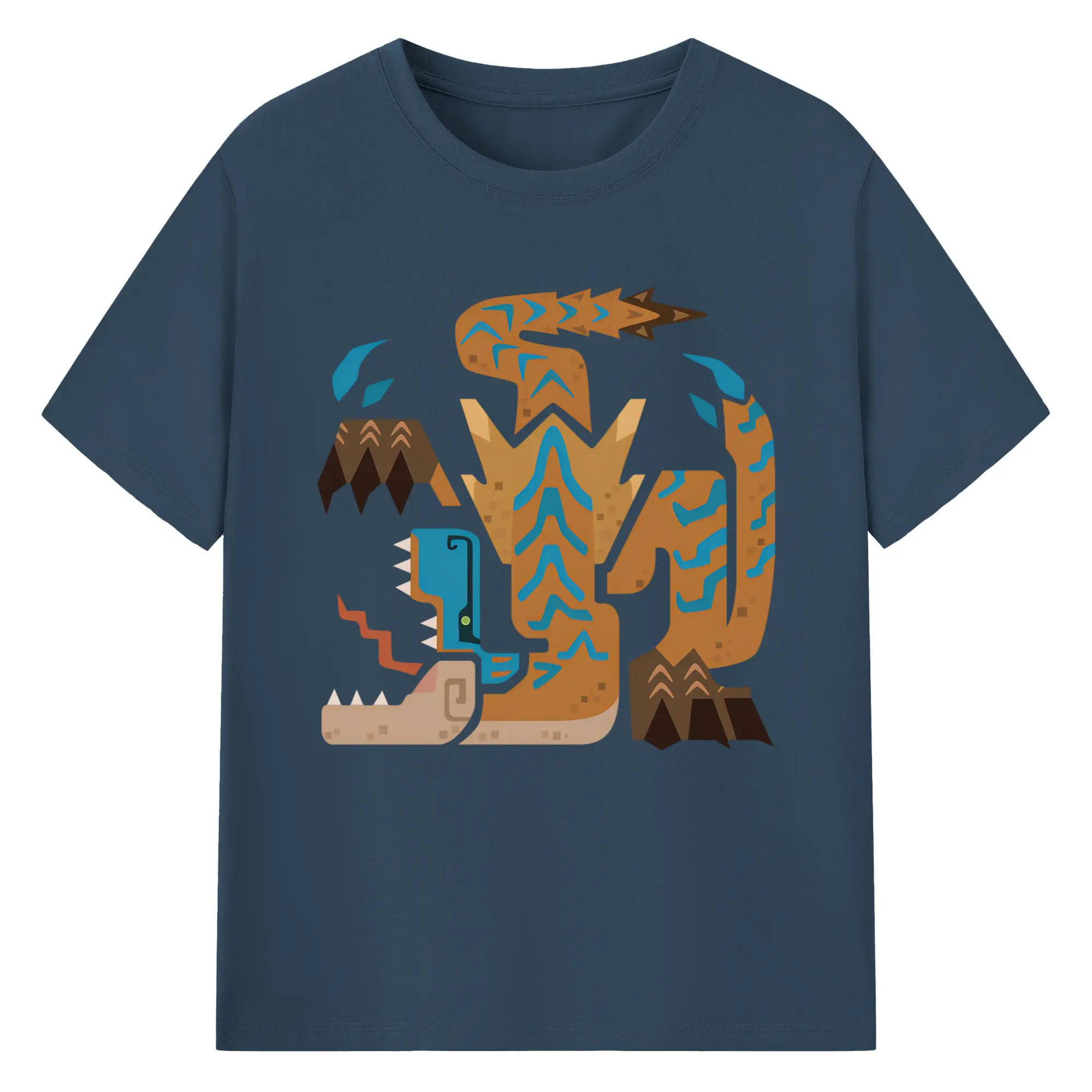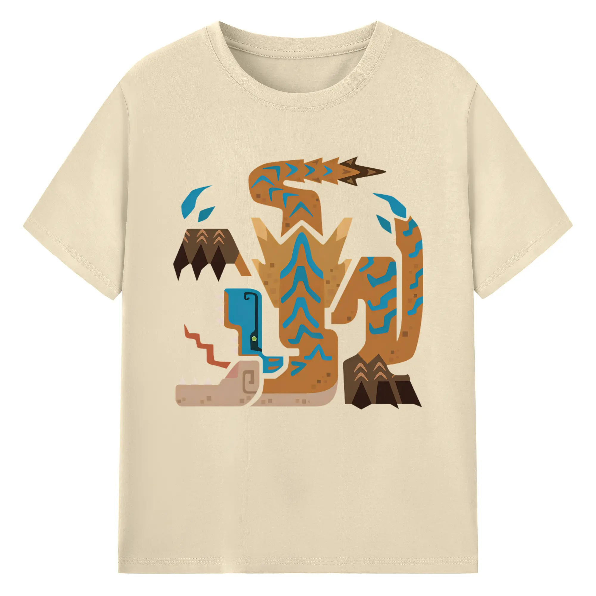 ティガレックス ハンター必見!迫力満点モンハン - 綿100% ヴィンテージ風 半袖Tシャツ ・ フロントプリント ・ 柔らか肌触り ・ 通気性 快適 ・ スポーツ カジュアル 外出用