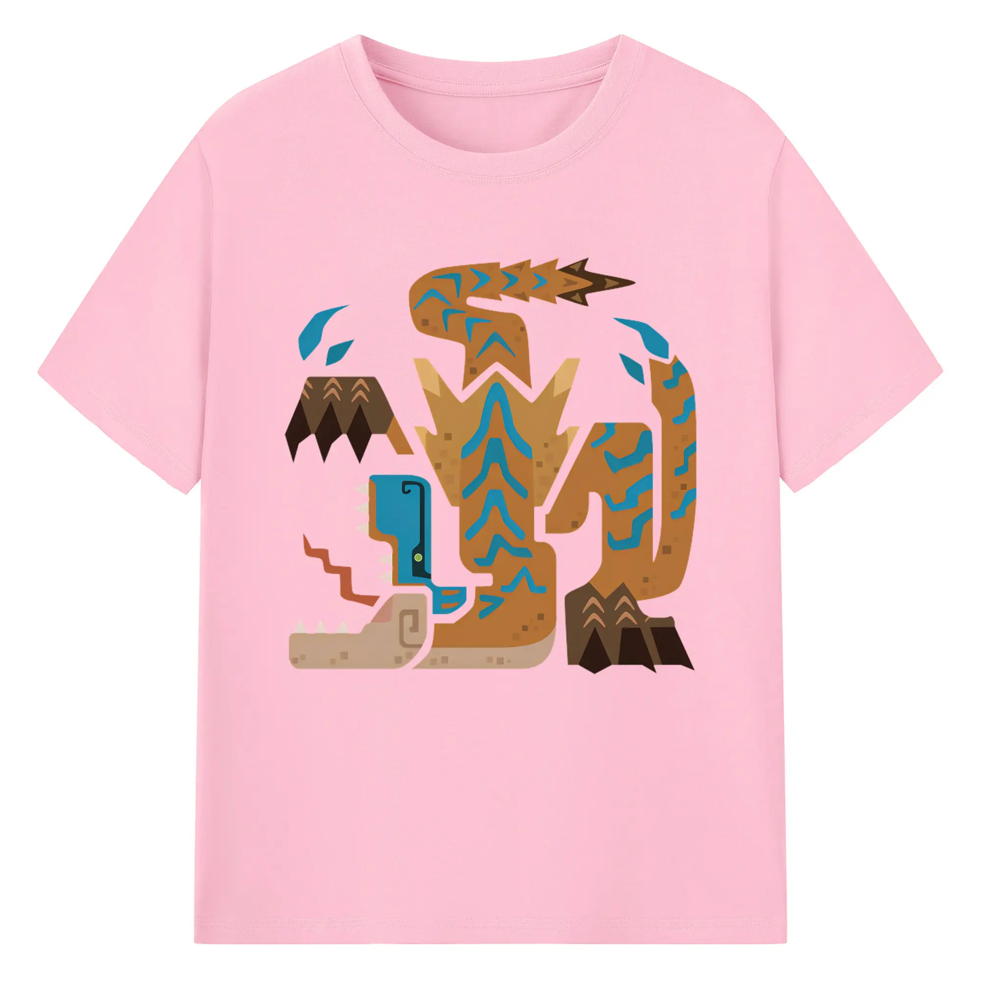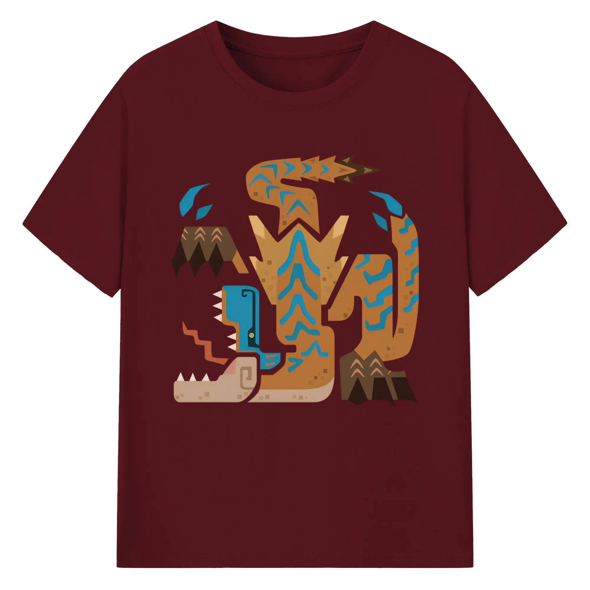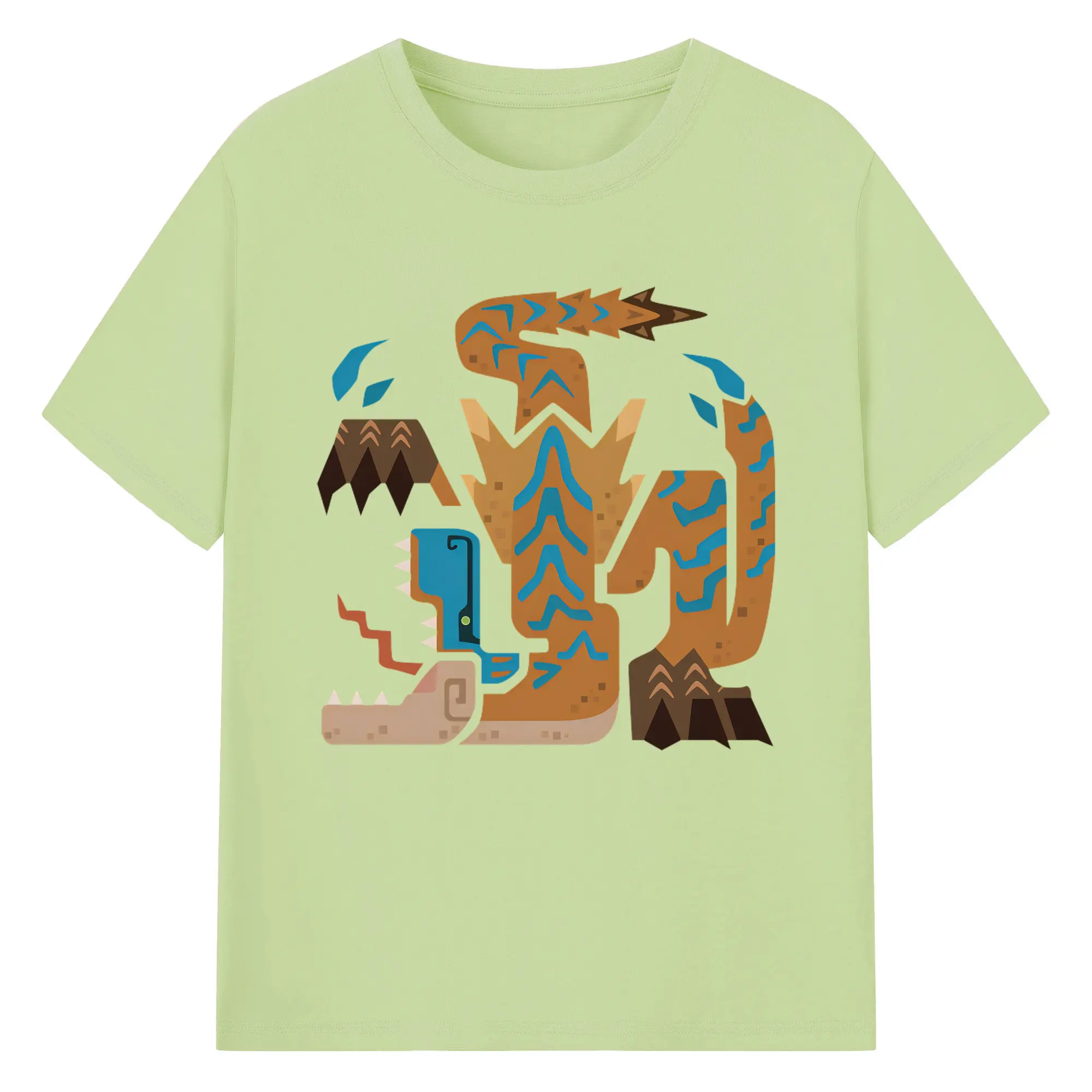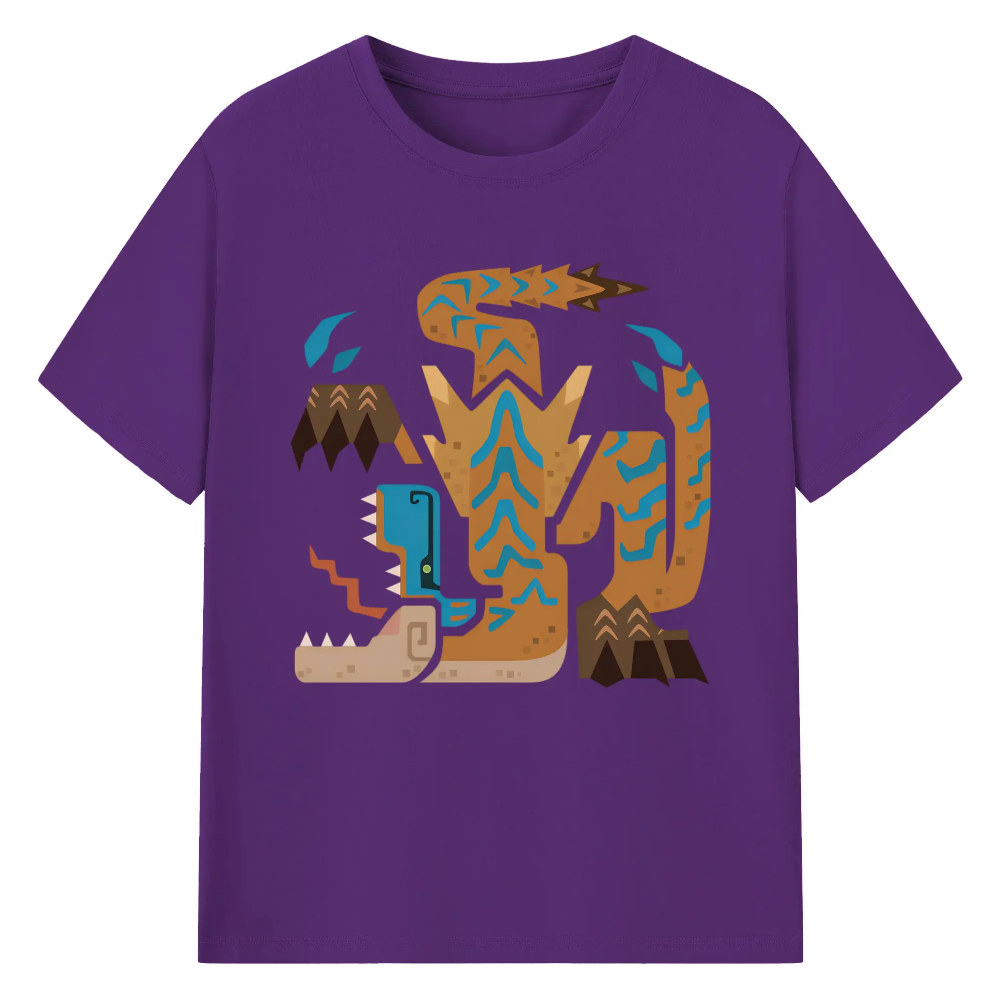 ティガレックス ハンター必見!迫力満点モンハン - 綿100% ヴィンテージ風 半袖Tシャツ ・ フロントプリント ・ 柔らか肌触り ・ 通気性 快適 ・ スポーツ カジュアル 外出用