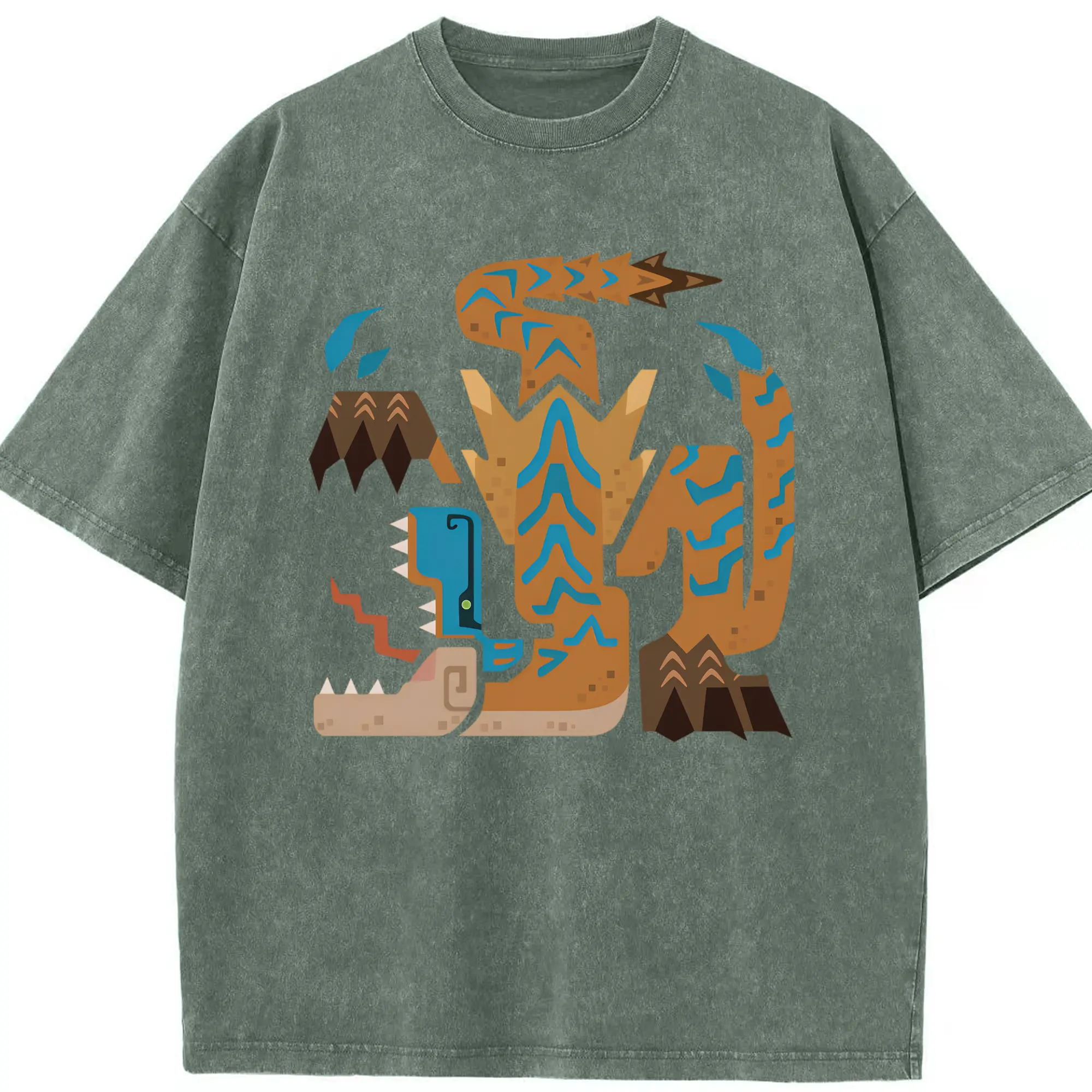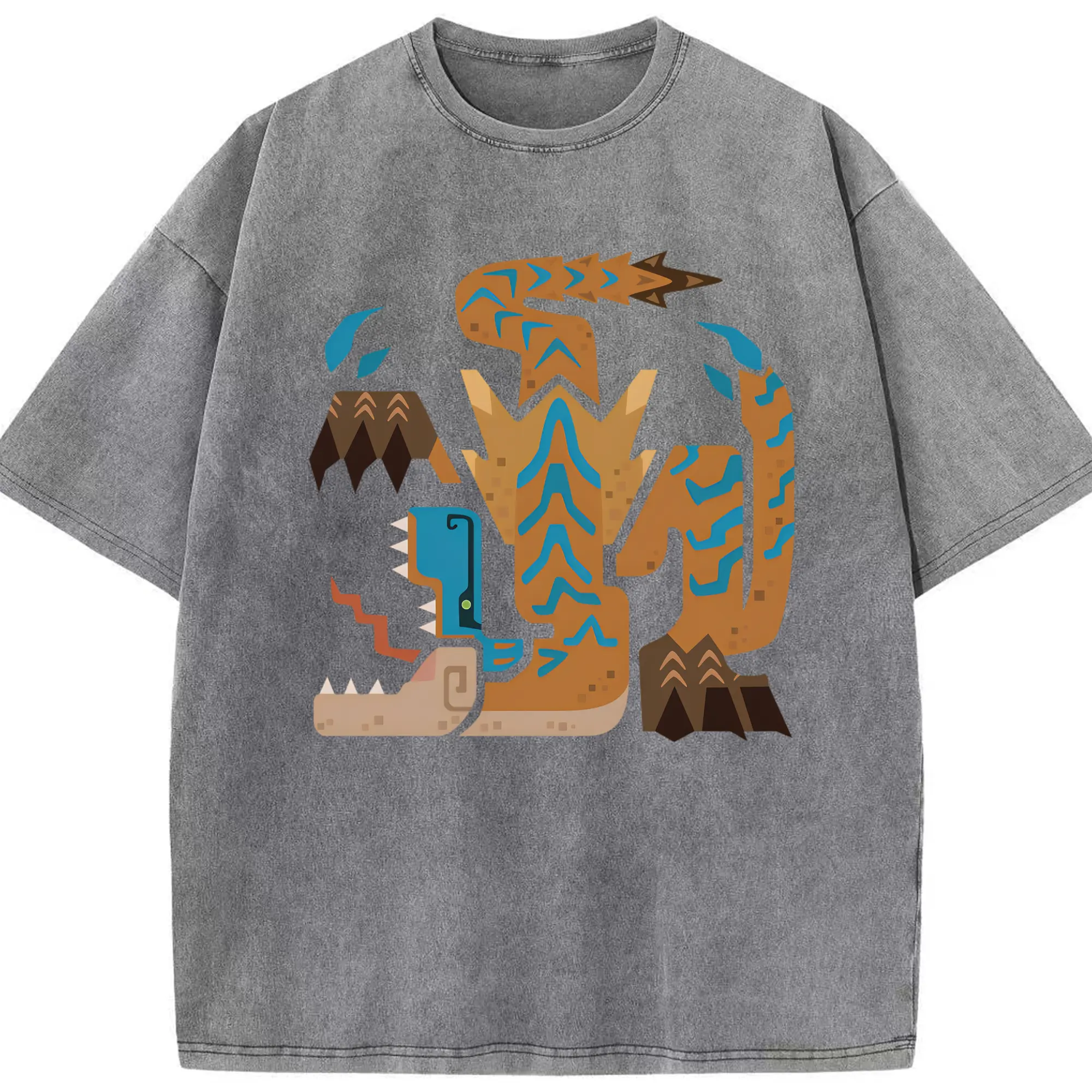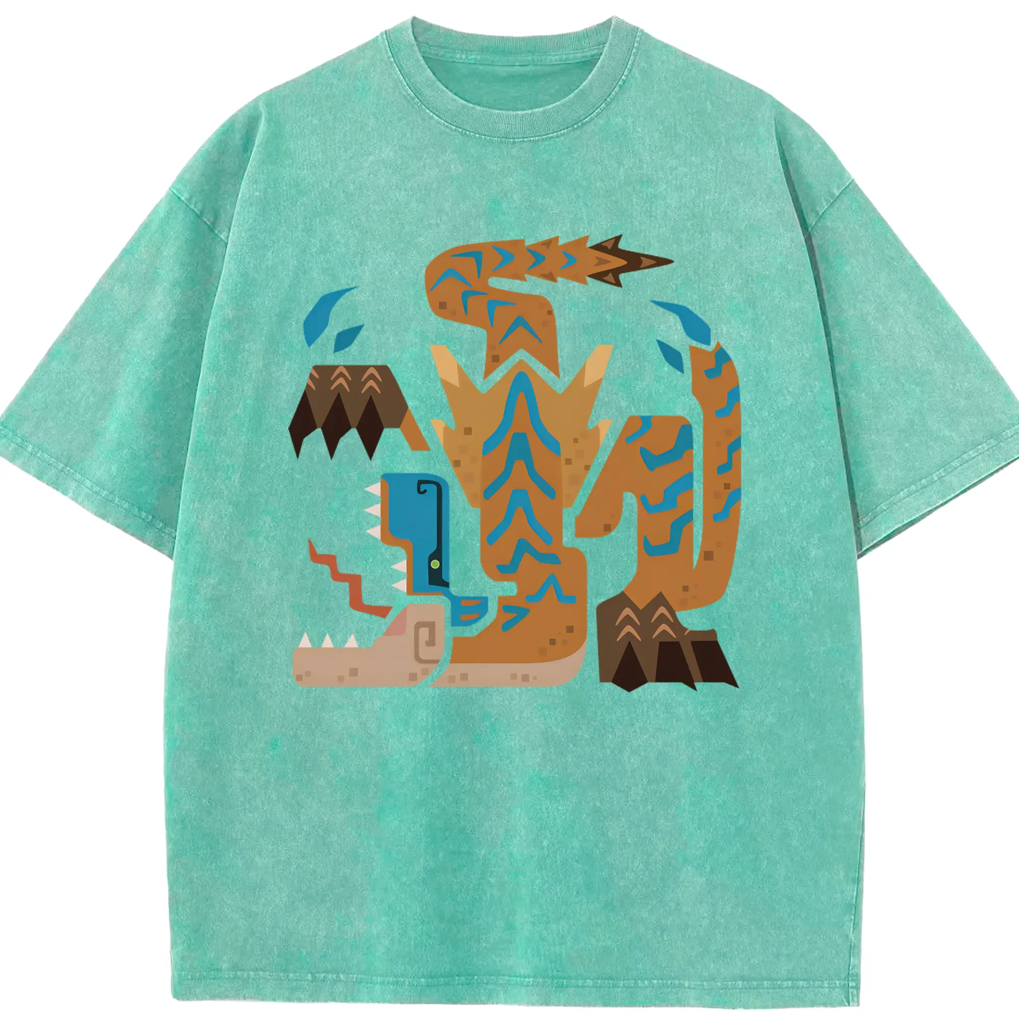 ティガレックス ハンター必見!迫力満点モンハン - 綿100% 半袖Tシャツ ・ フロントプリント ・ 快適 通気性 ・ 日常使い 散歩 スポーツ用