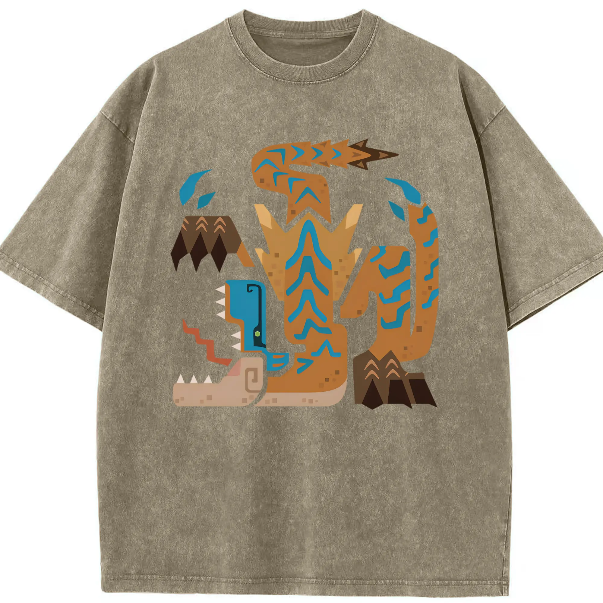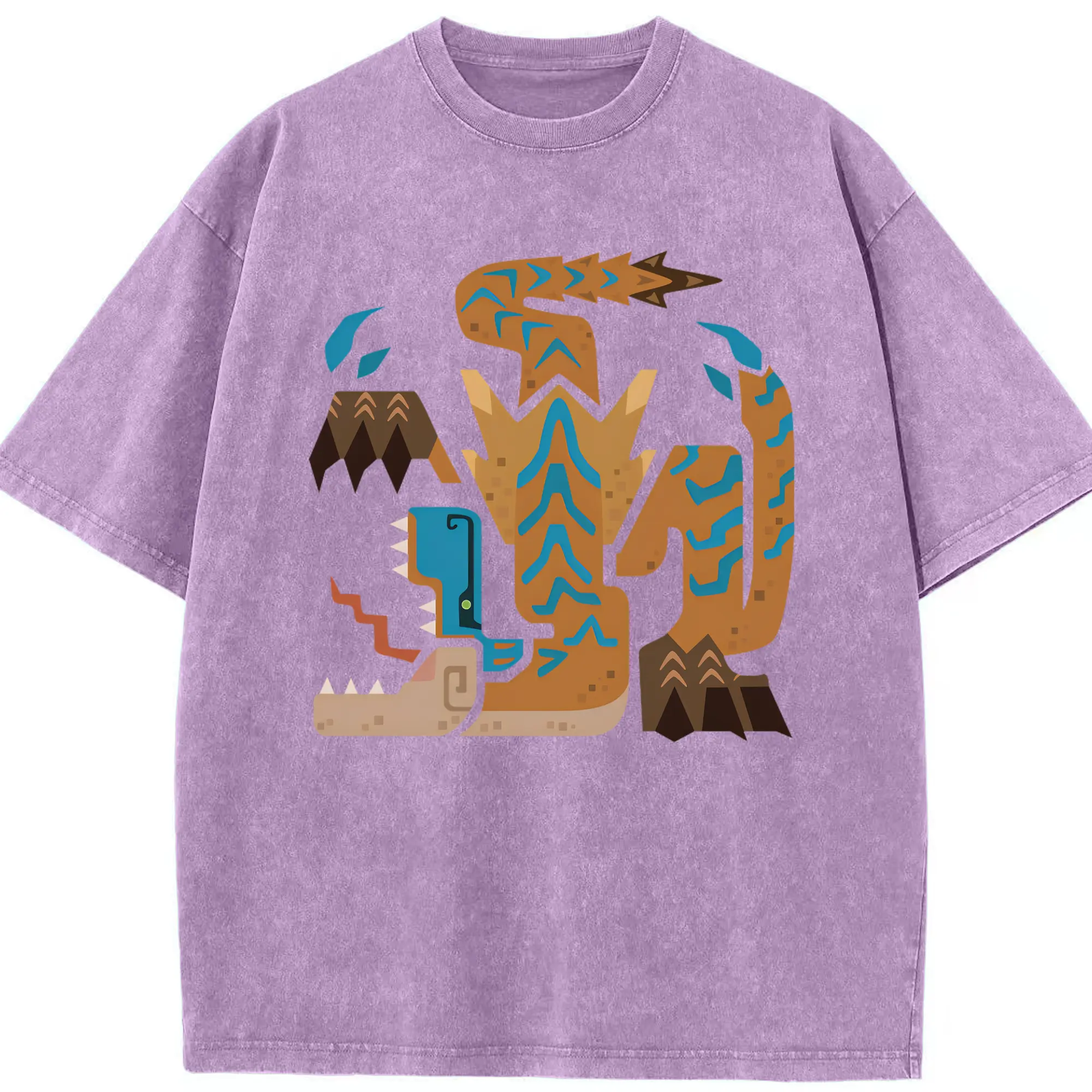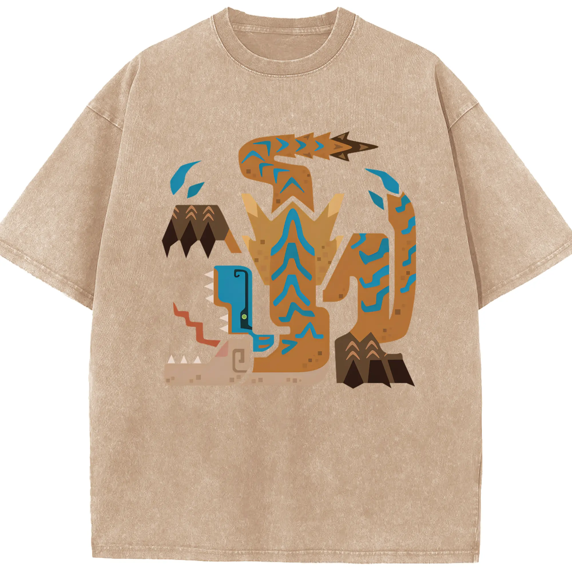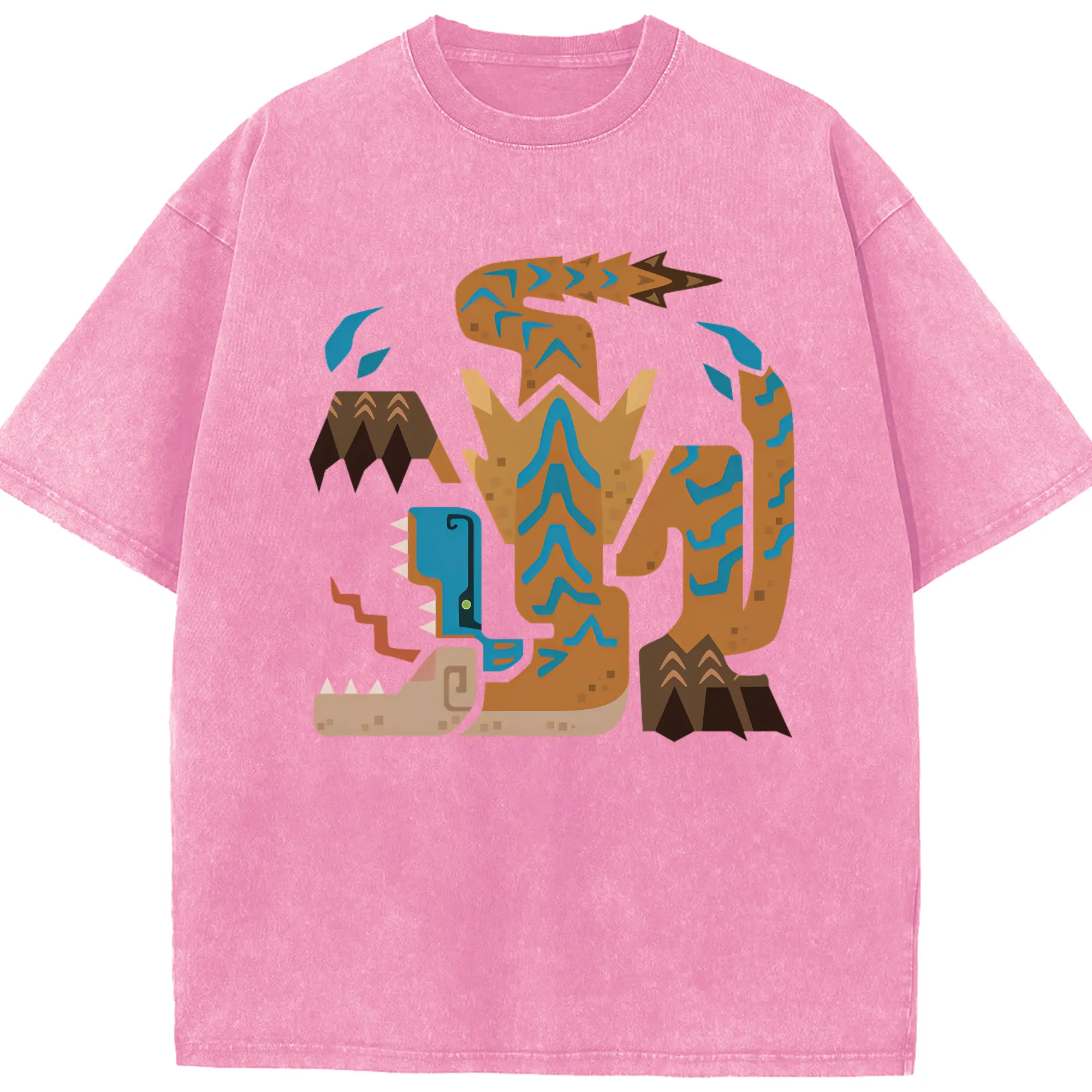 ティガレックス ハンター必見!迫力満点モンハン - 綿100% 半袖Tシャツ ・ フロントプリント ・ 快適 通気性 ・ 日常使い 散歩 スポーツ用