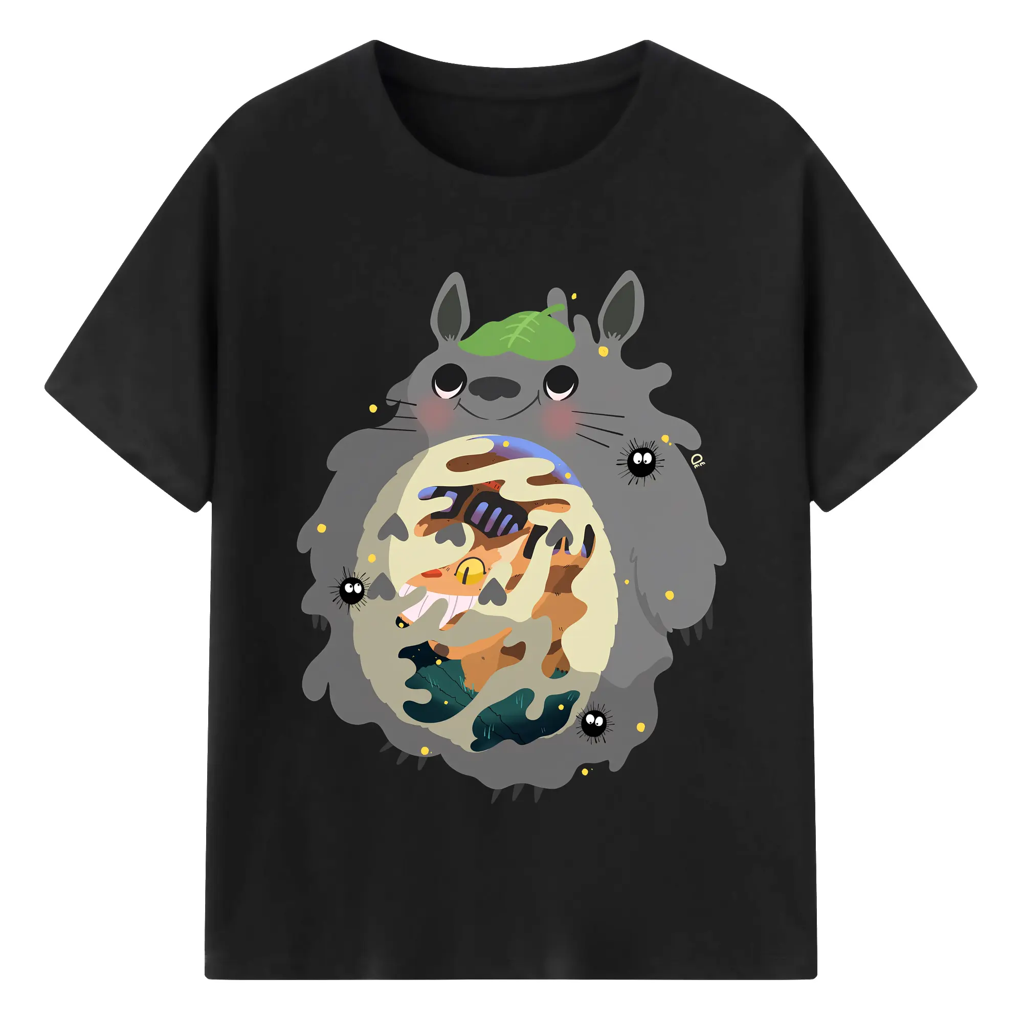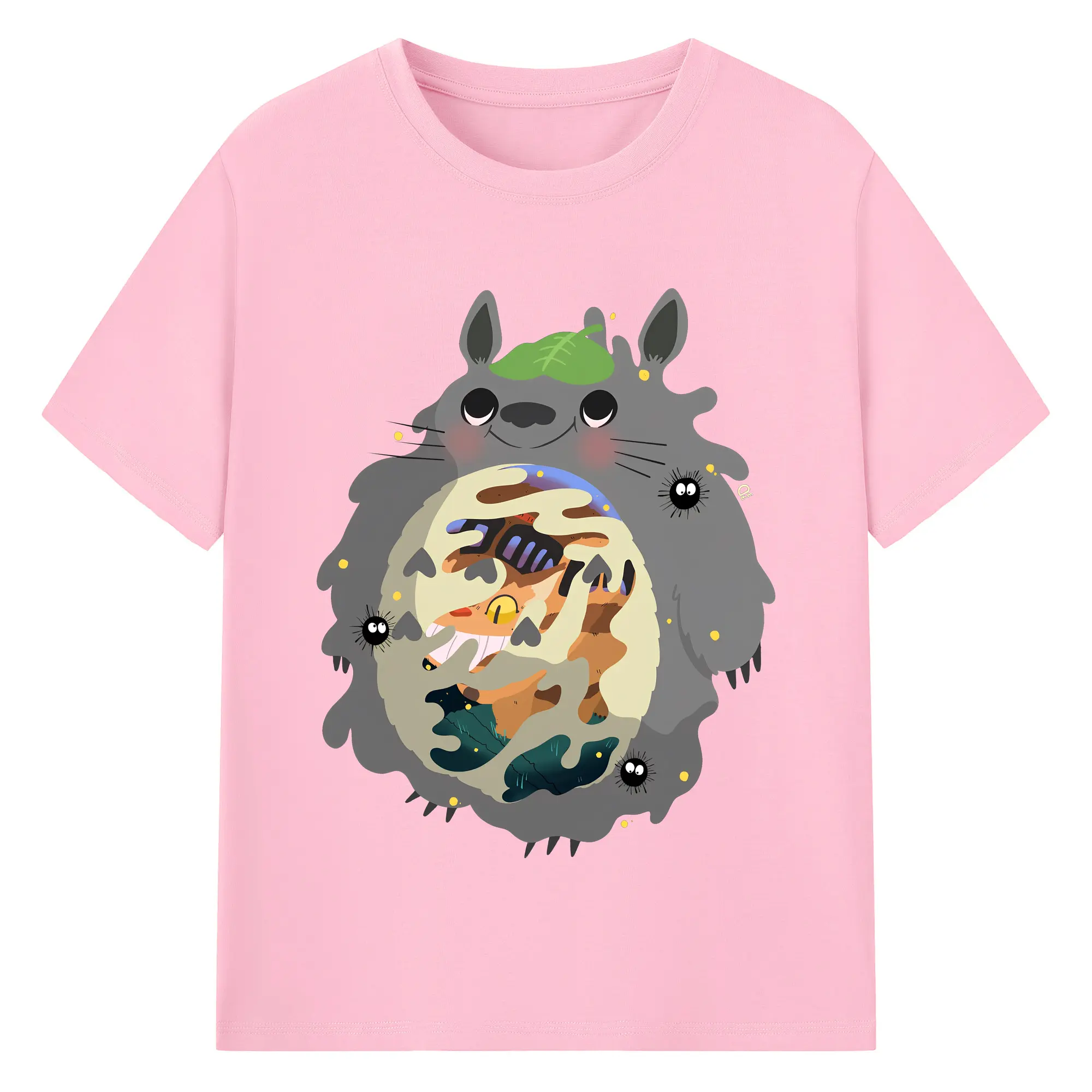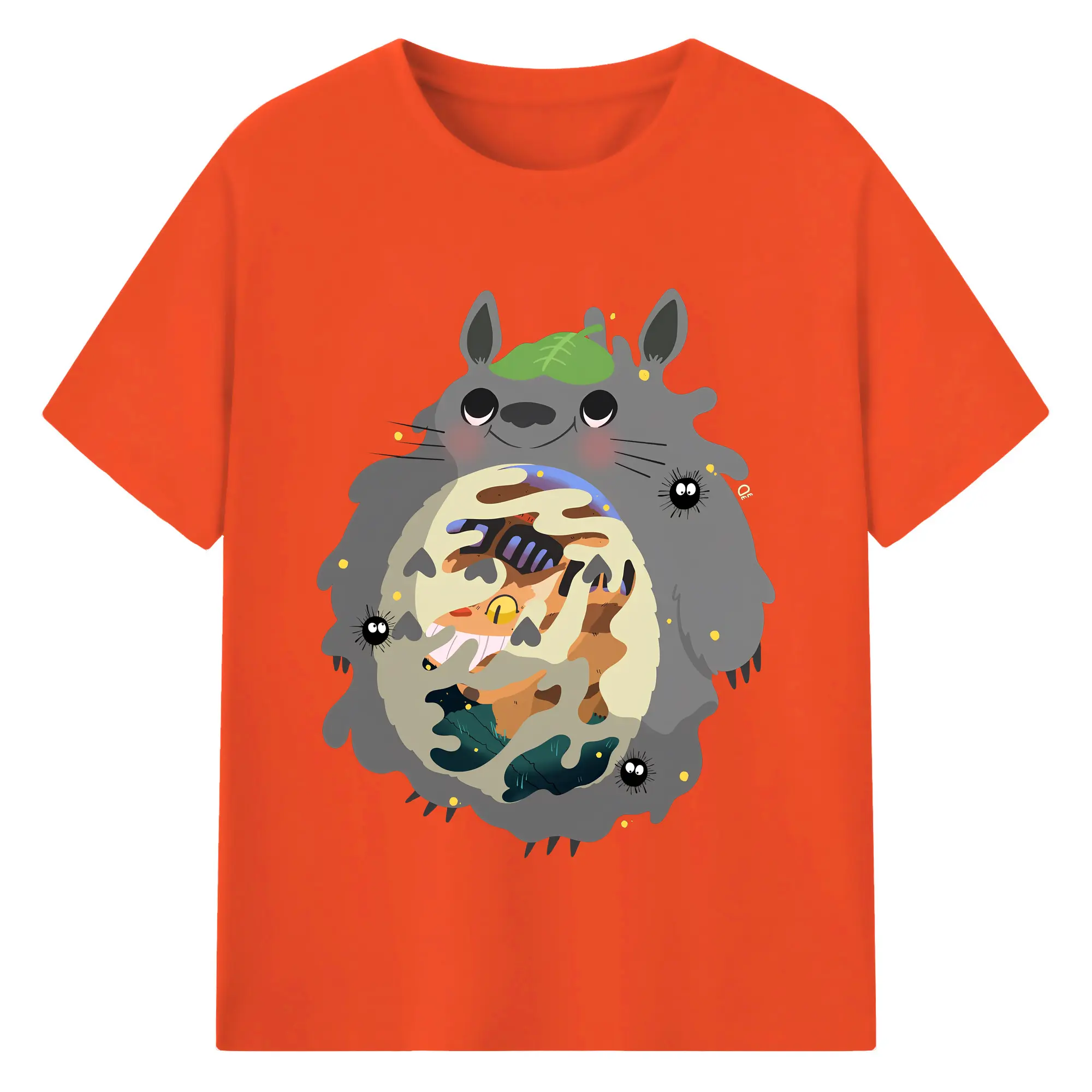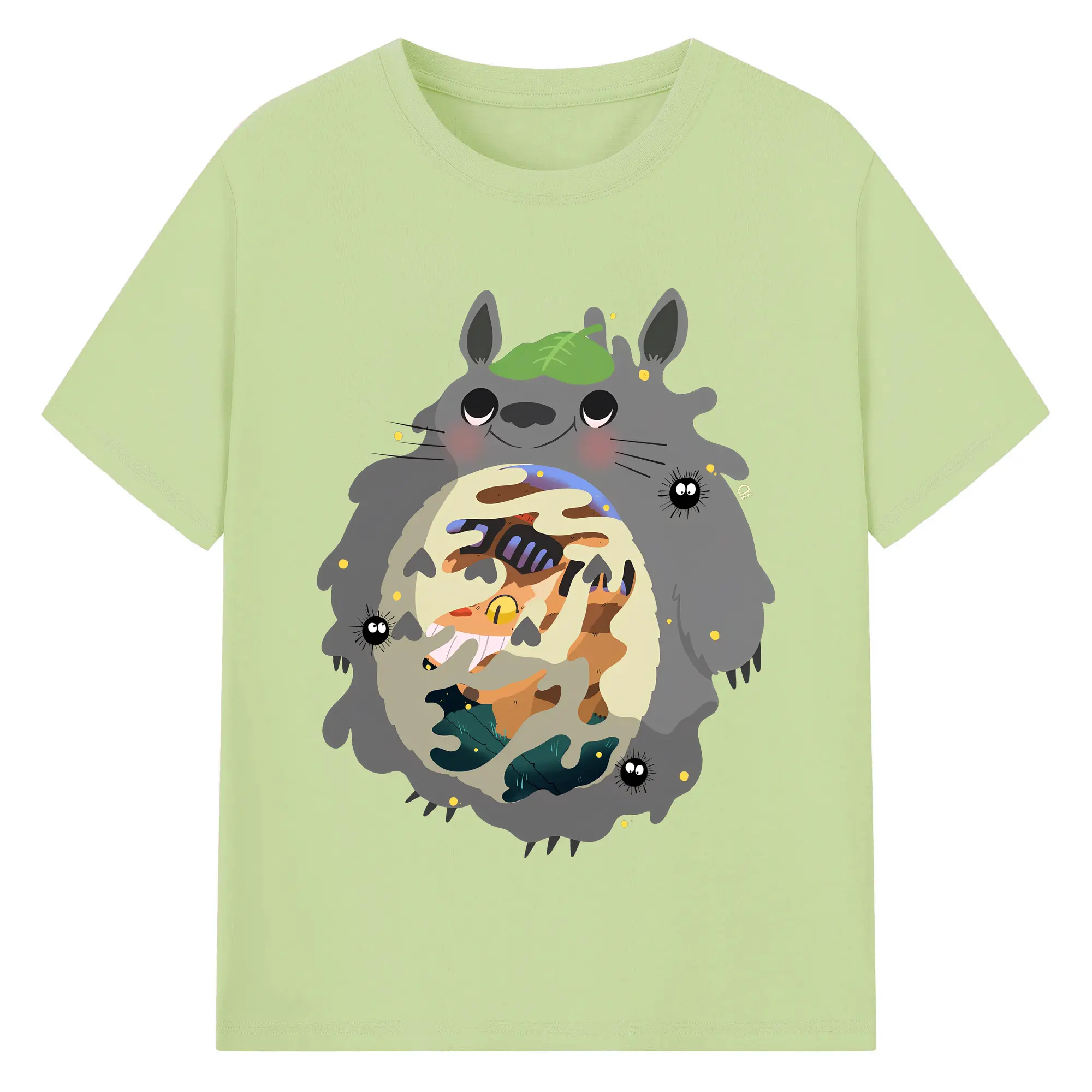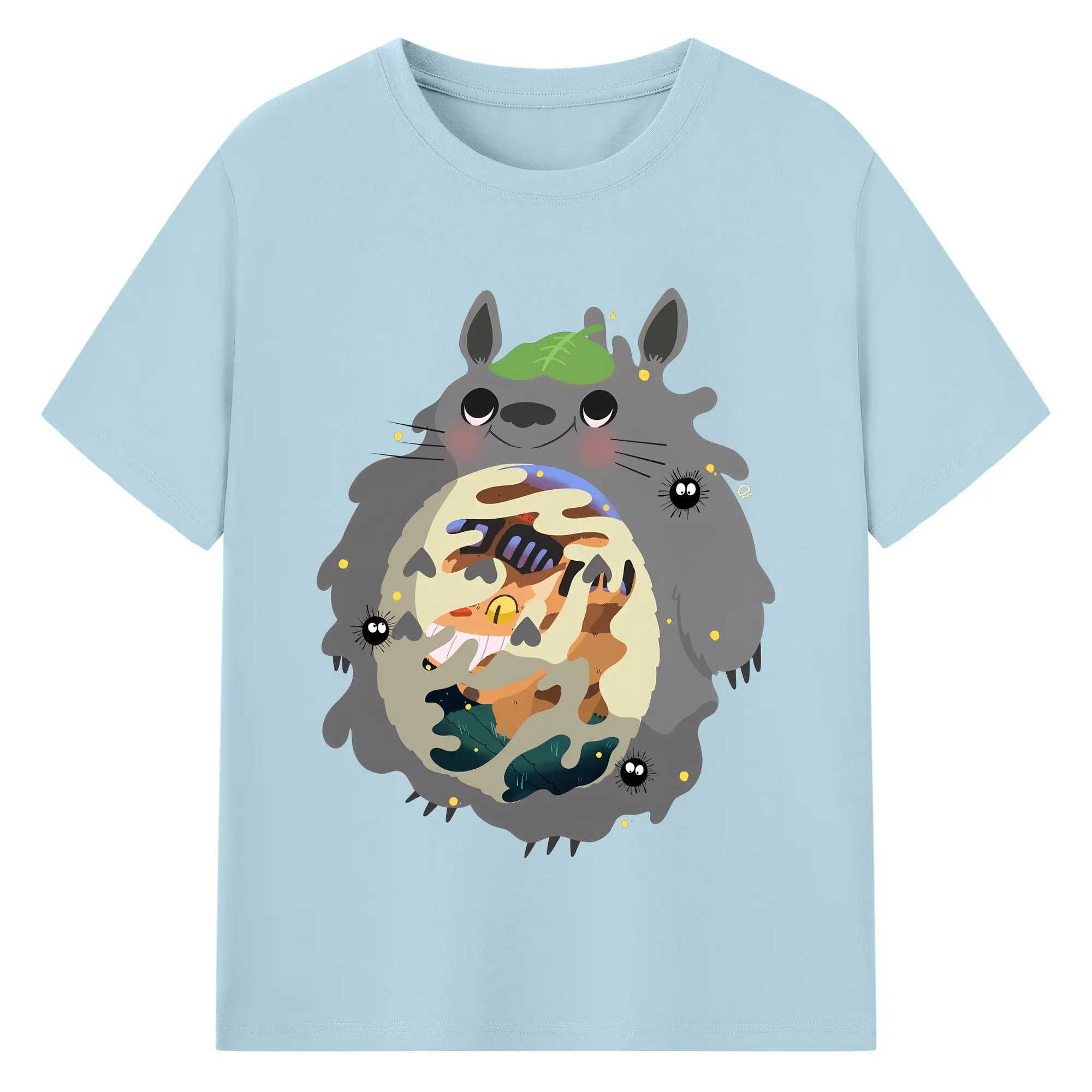 トトロ&ネコバス可愛い - 綿100% ヴィンテージ風 半袖Tシャツ ・ フロントプリント ・ 柔らか肌触り ・ 通気性 快適 ・ スポーツ カジュアル 外出用