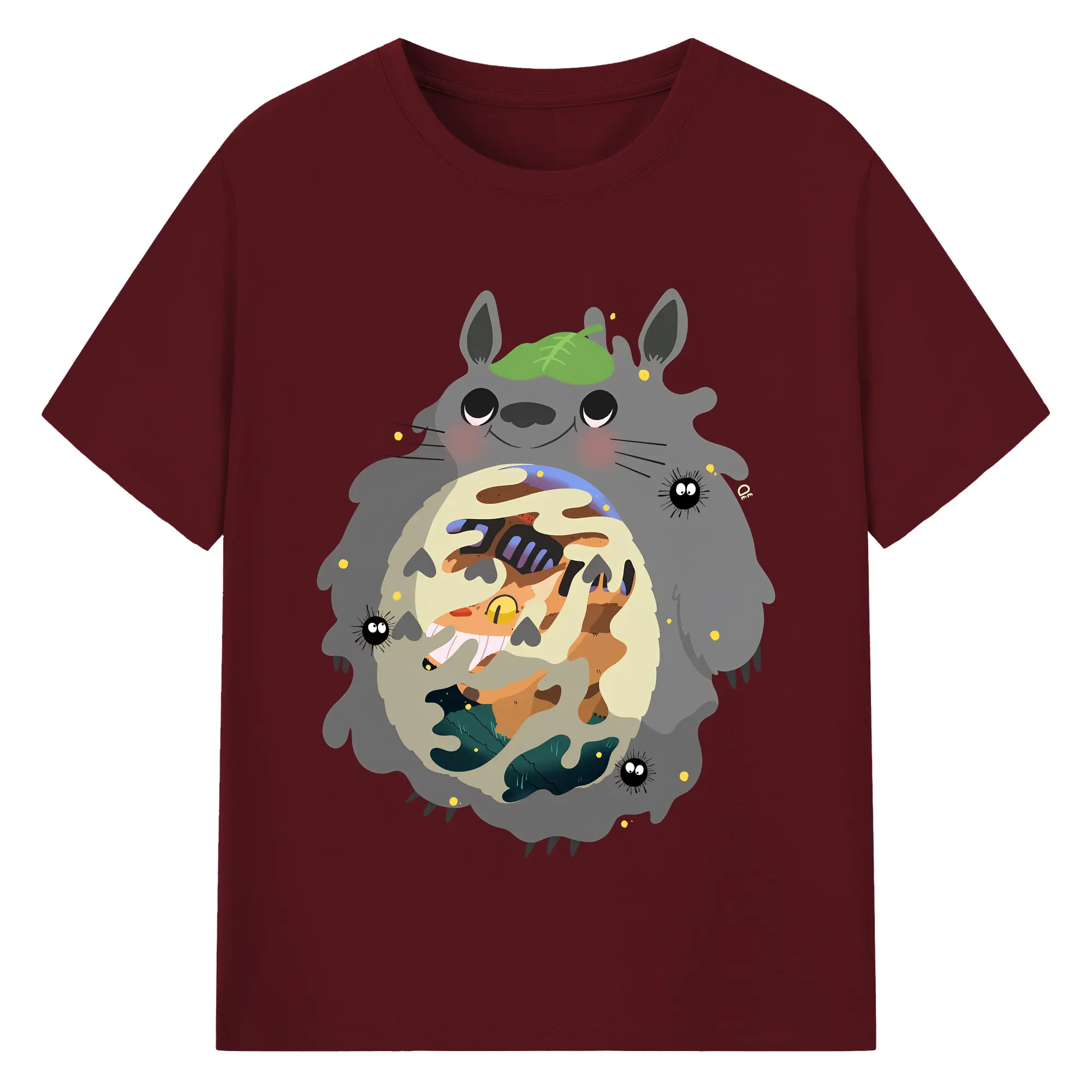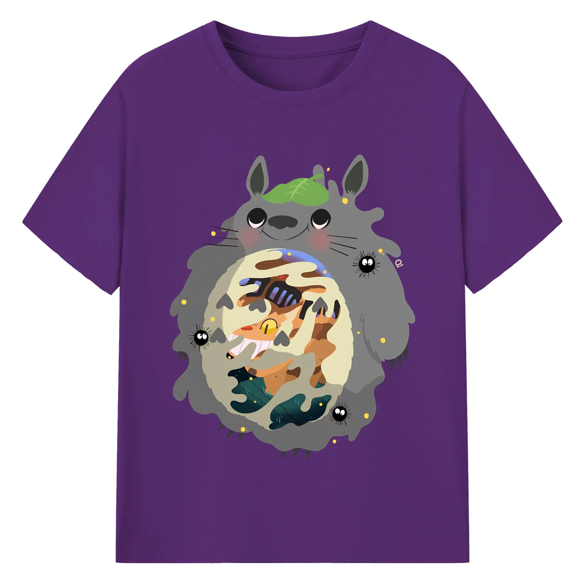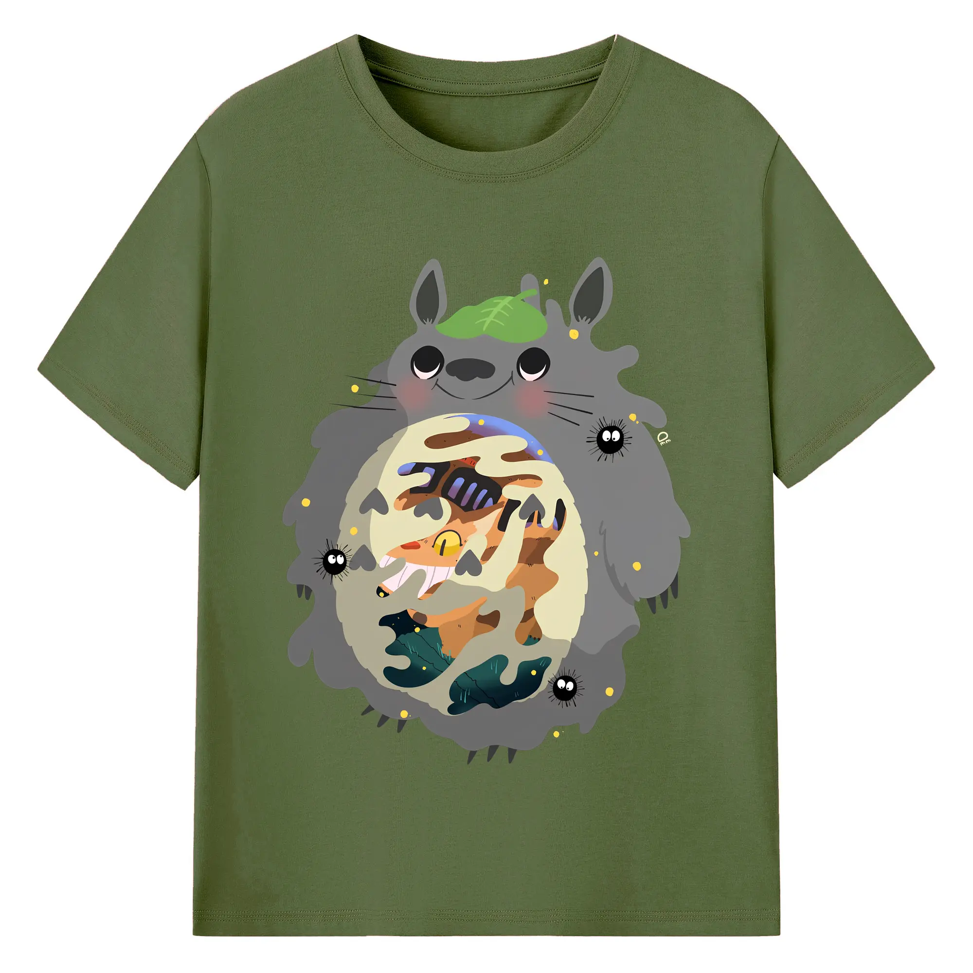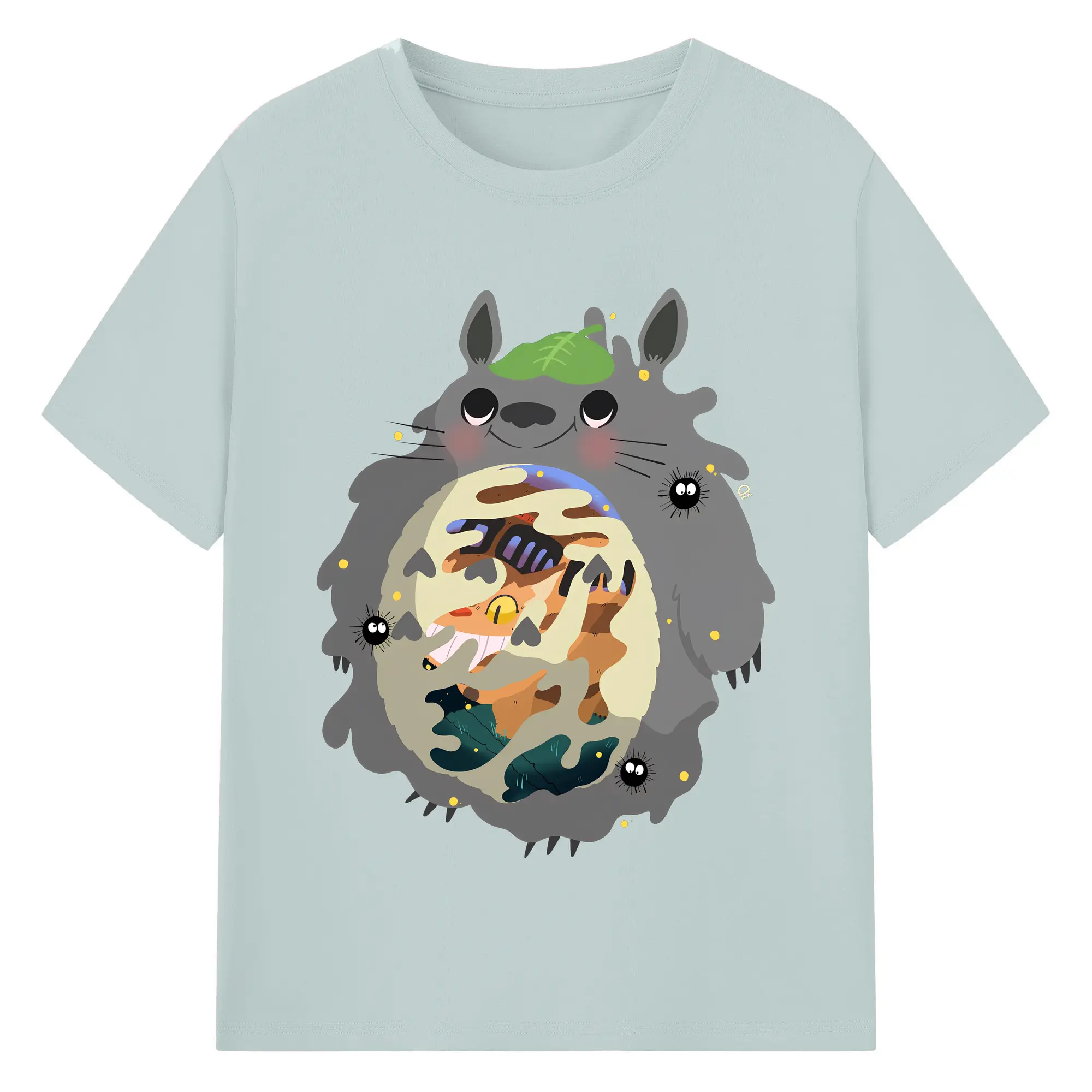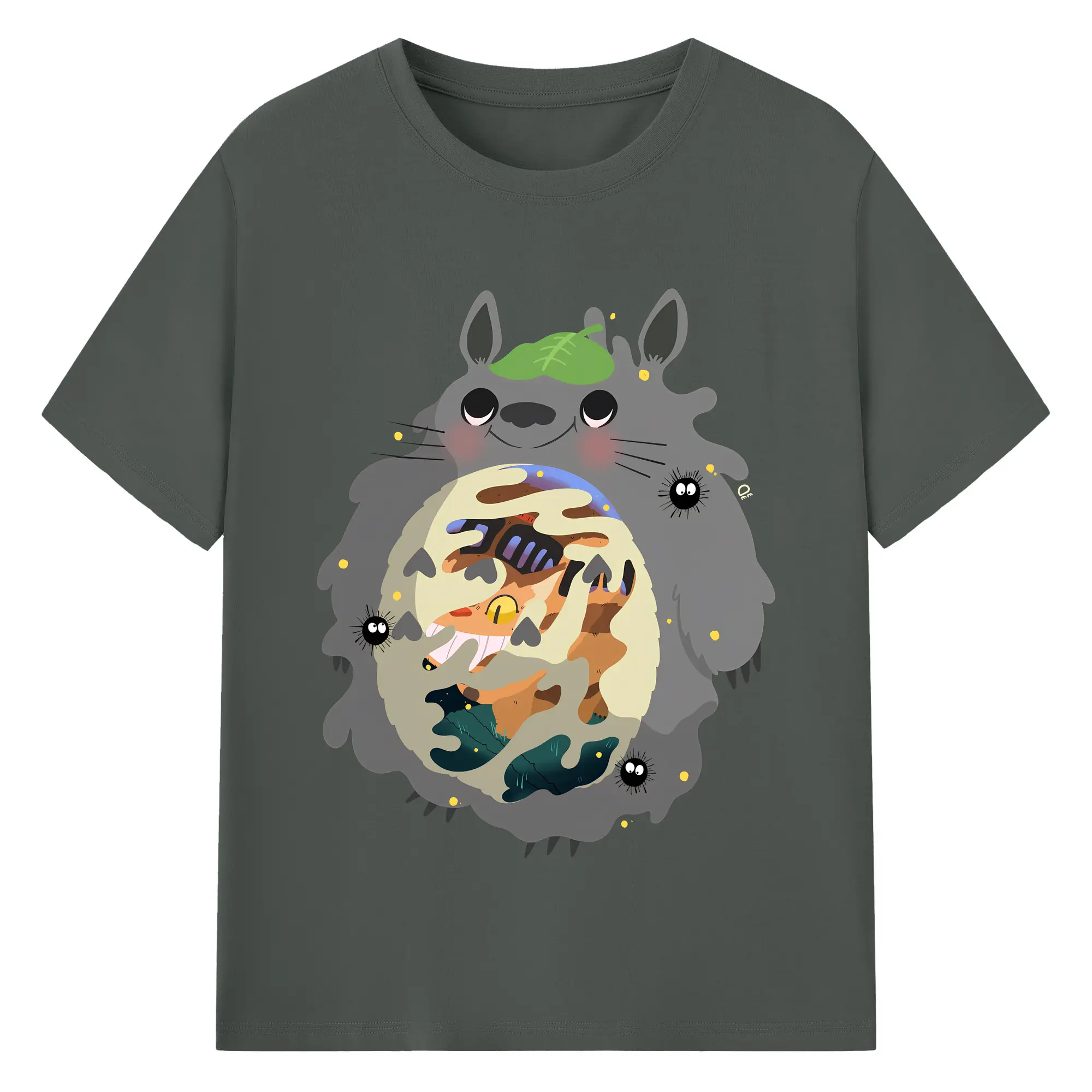 トトロ&ネコバス可愛い - 綿100% ヴィンテージ風 半袖Tシャツ ・ フロントプリント ・ 柔らか肌触り ・ 通気性 快適 ・ スポーツ カジュアル 外出用