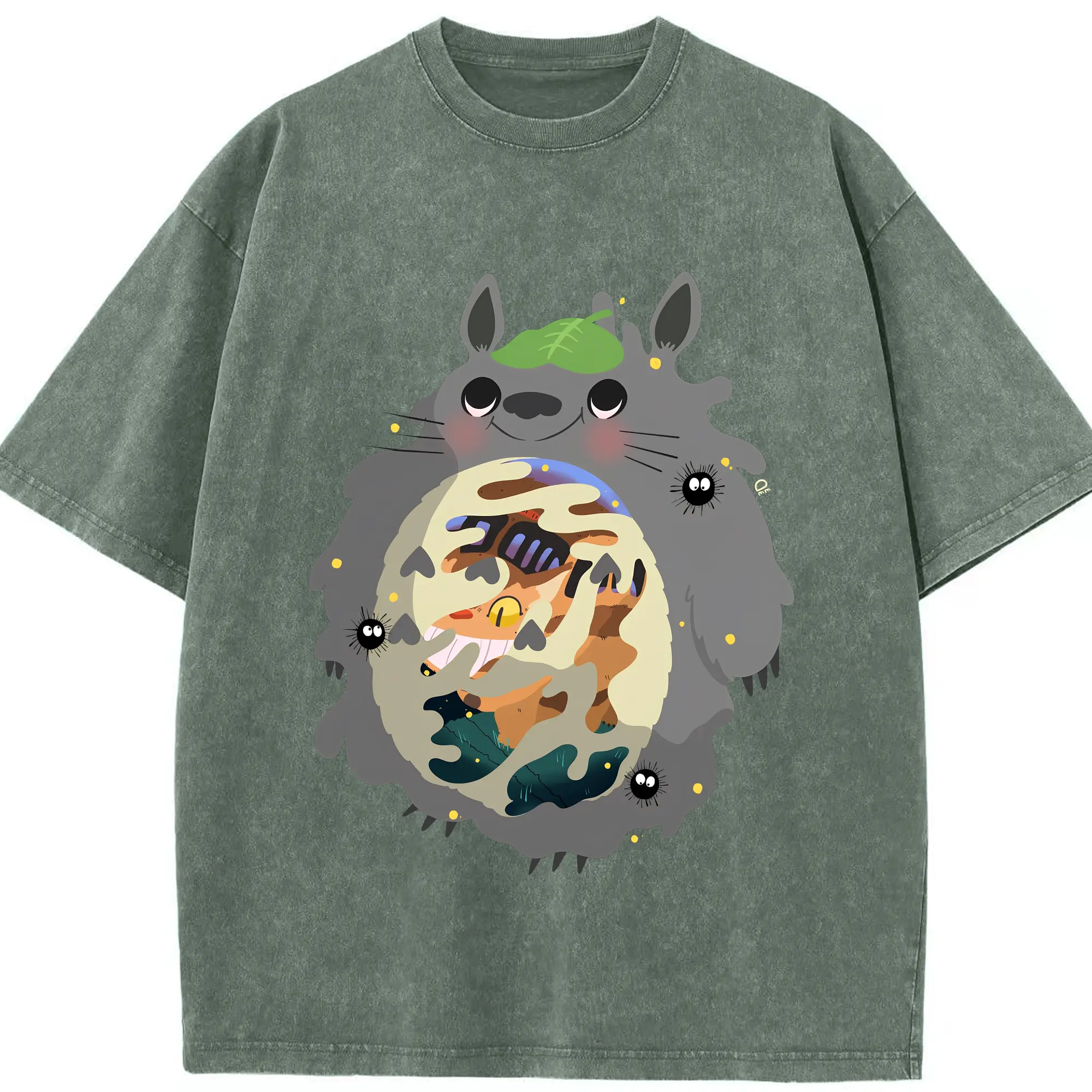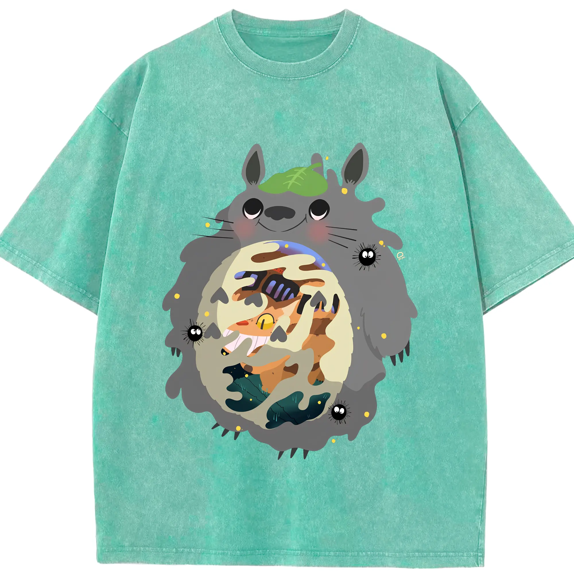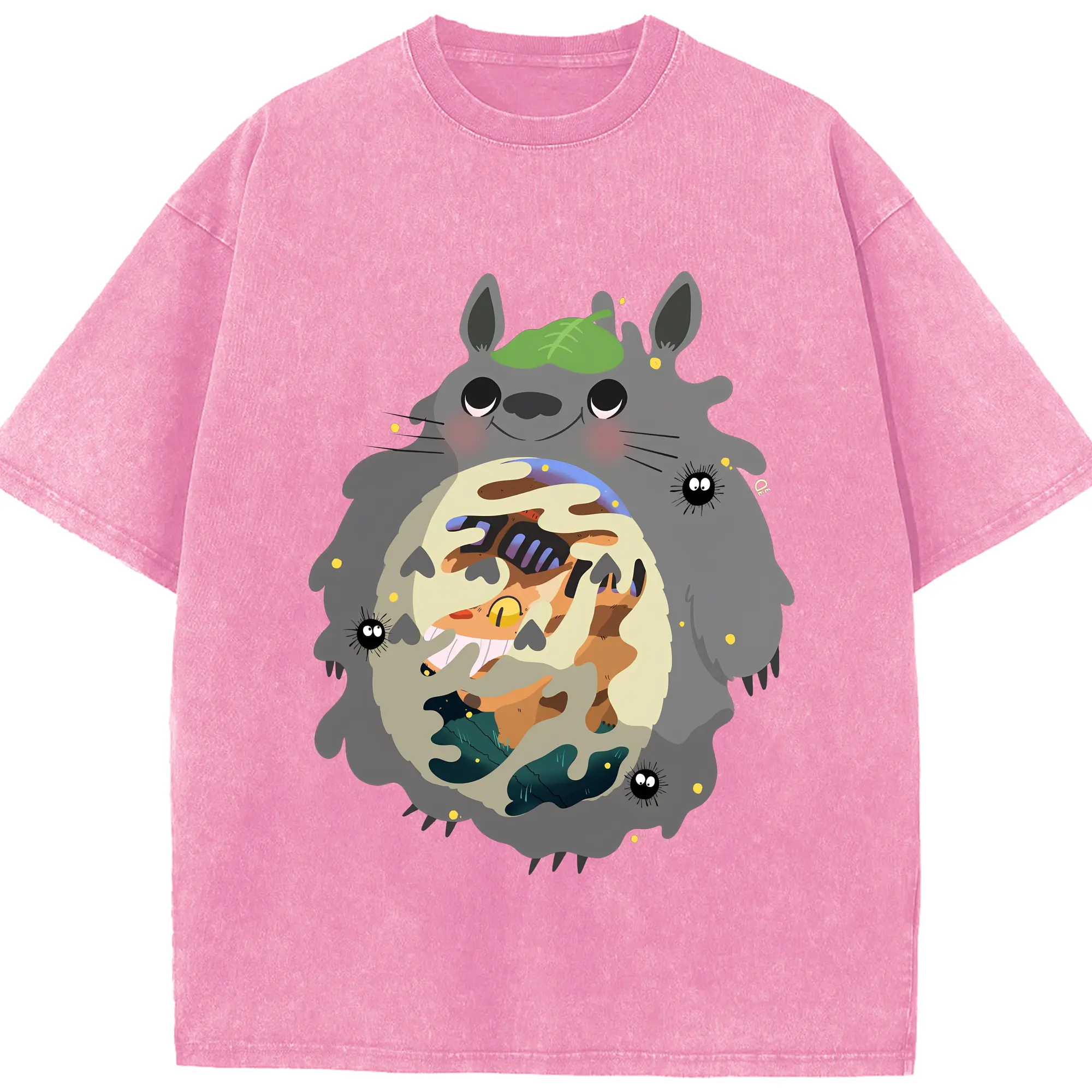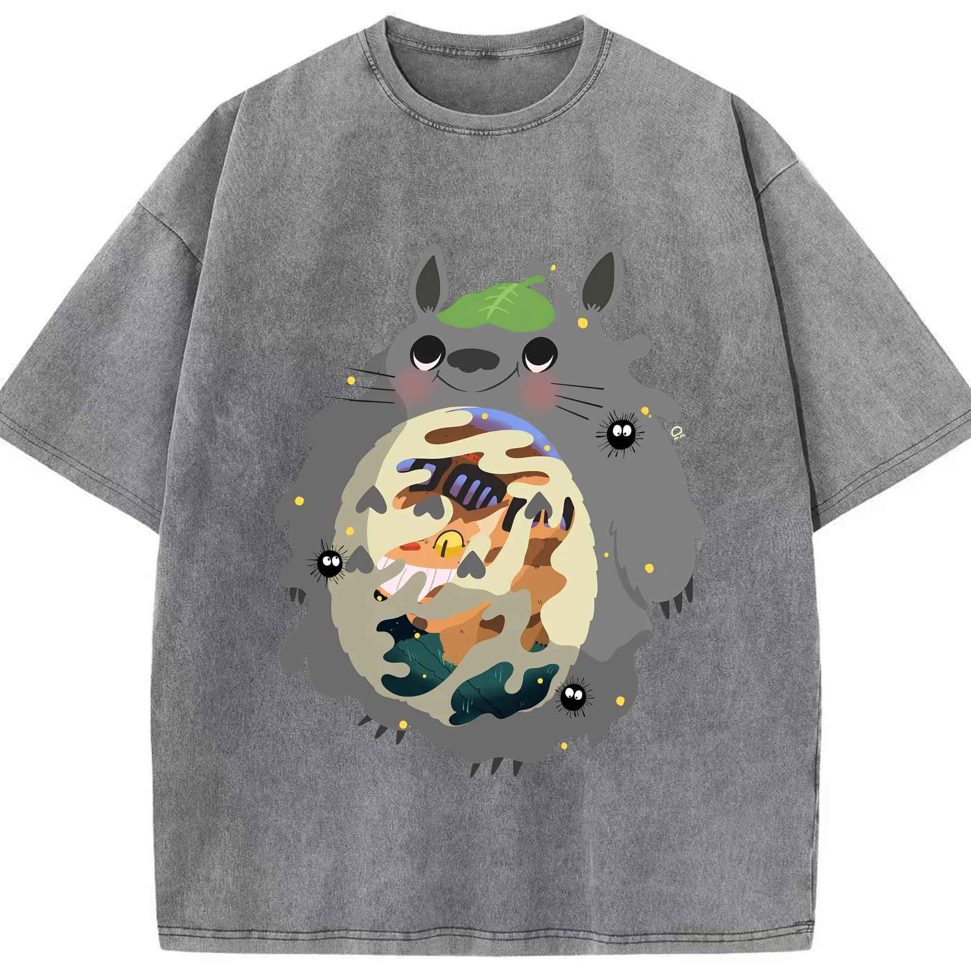 トトロ&ネコバス可愛い - 綿100% 半袖Tシャツ ・ フロントプリント ・ 快適 通気性 ・ 日常使い 散歩 スポーツ用