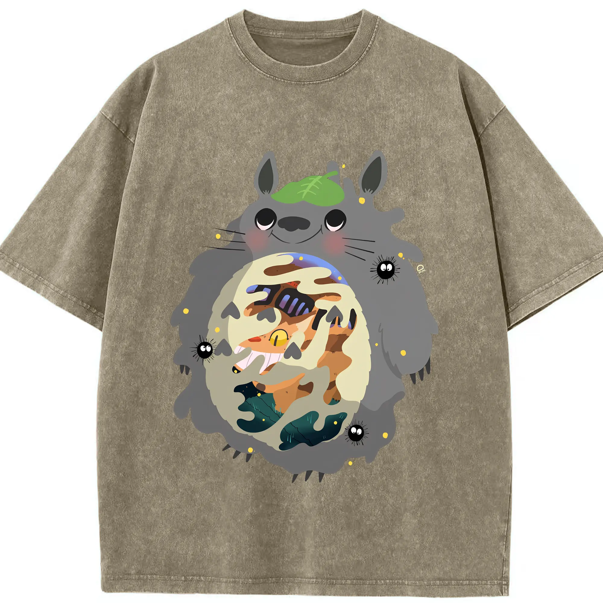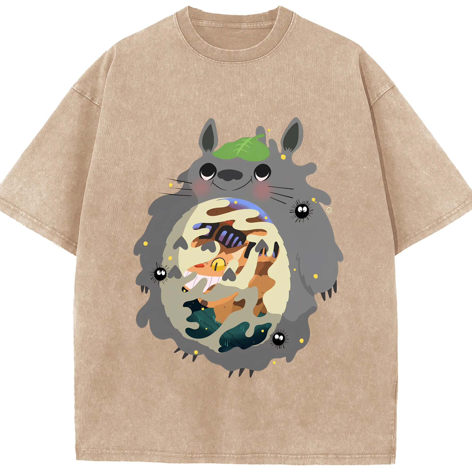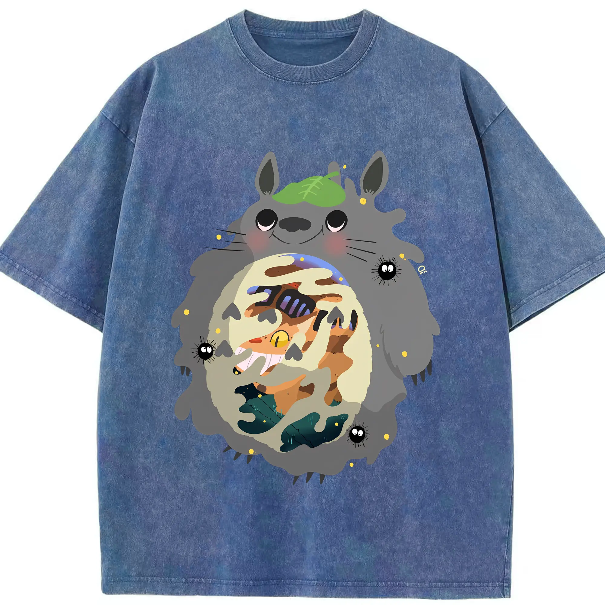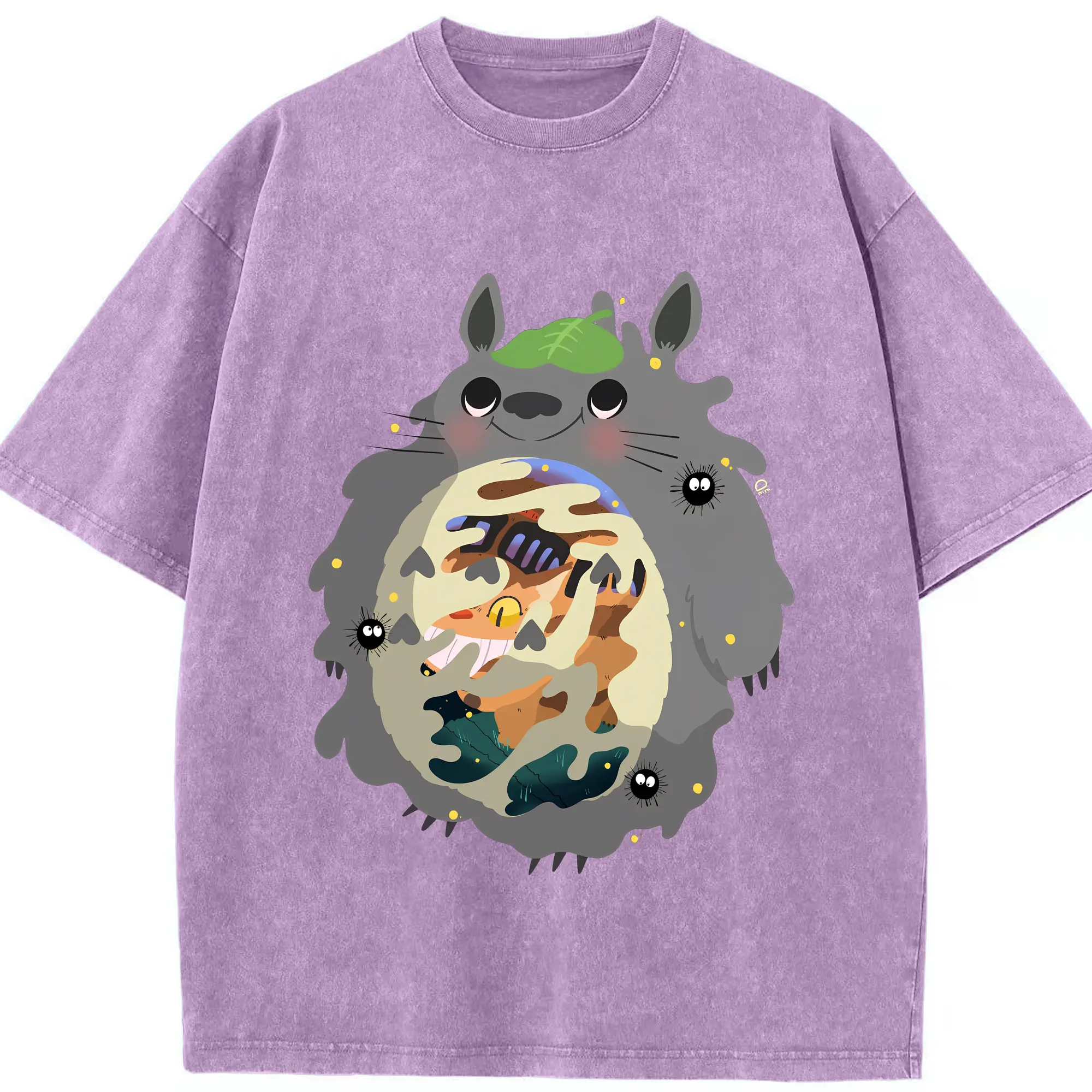 トトロ&ネコバス可愛い - 綿100% 半袖Tシャツ ・ フロントプリント ・ 快適 通気性 ・ 日常使い 散歩 スポーツ用