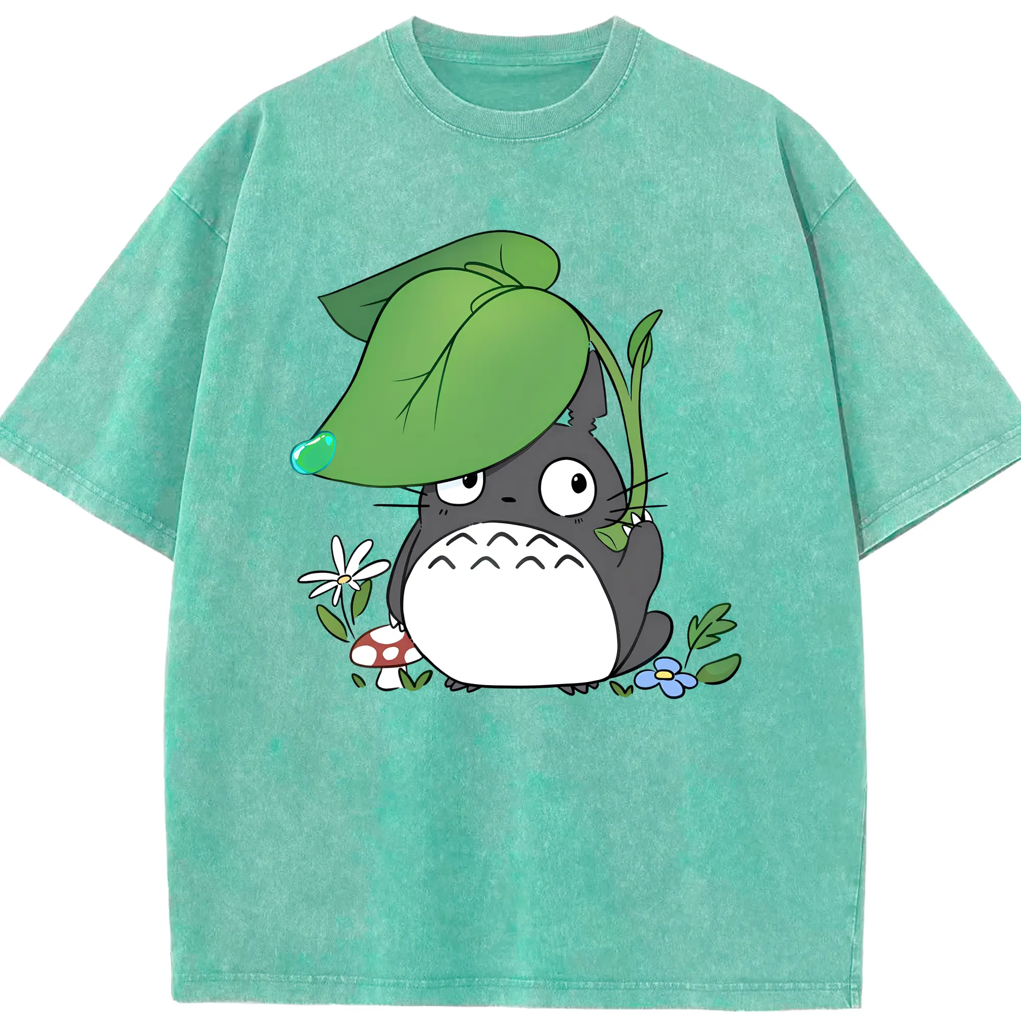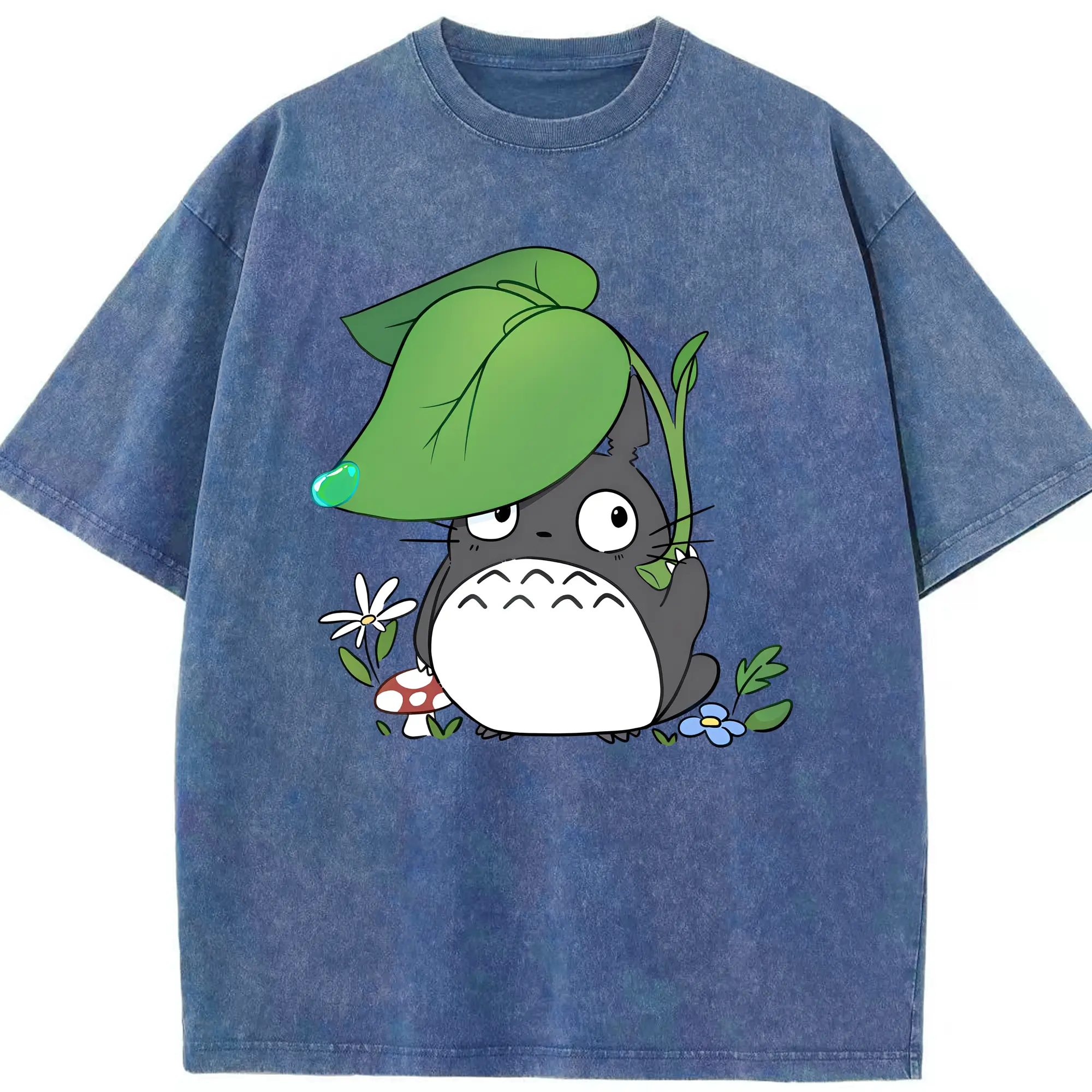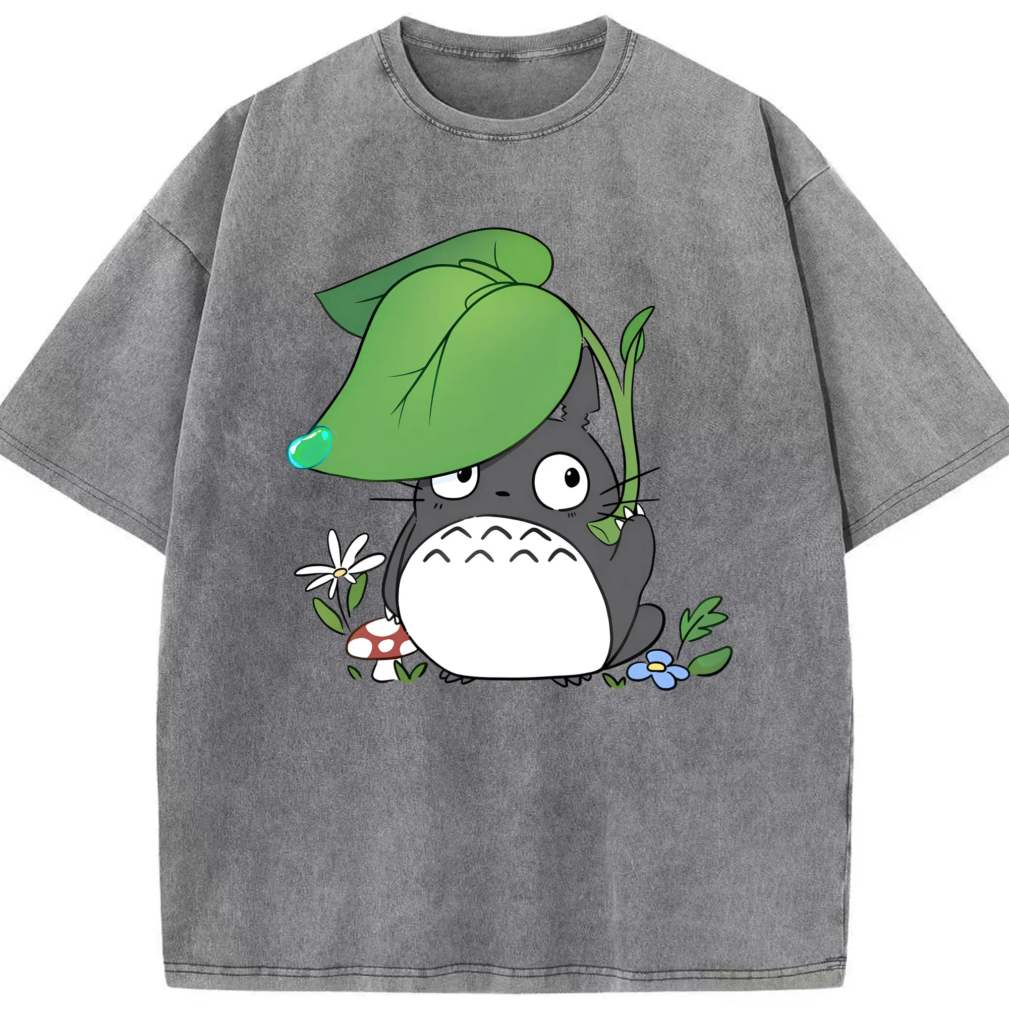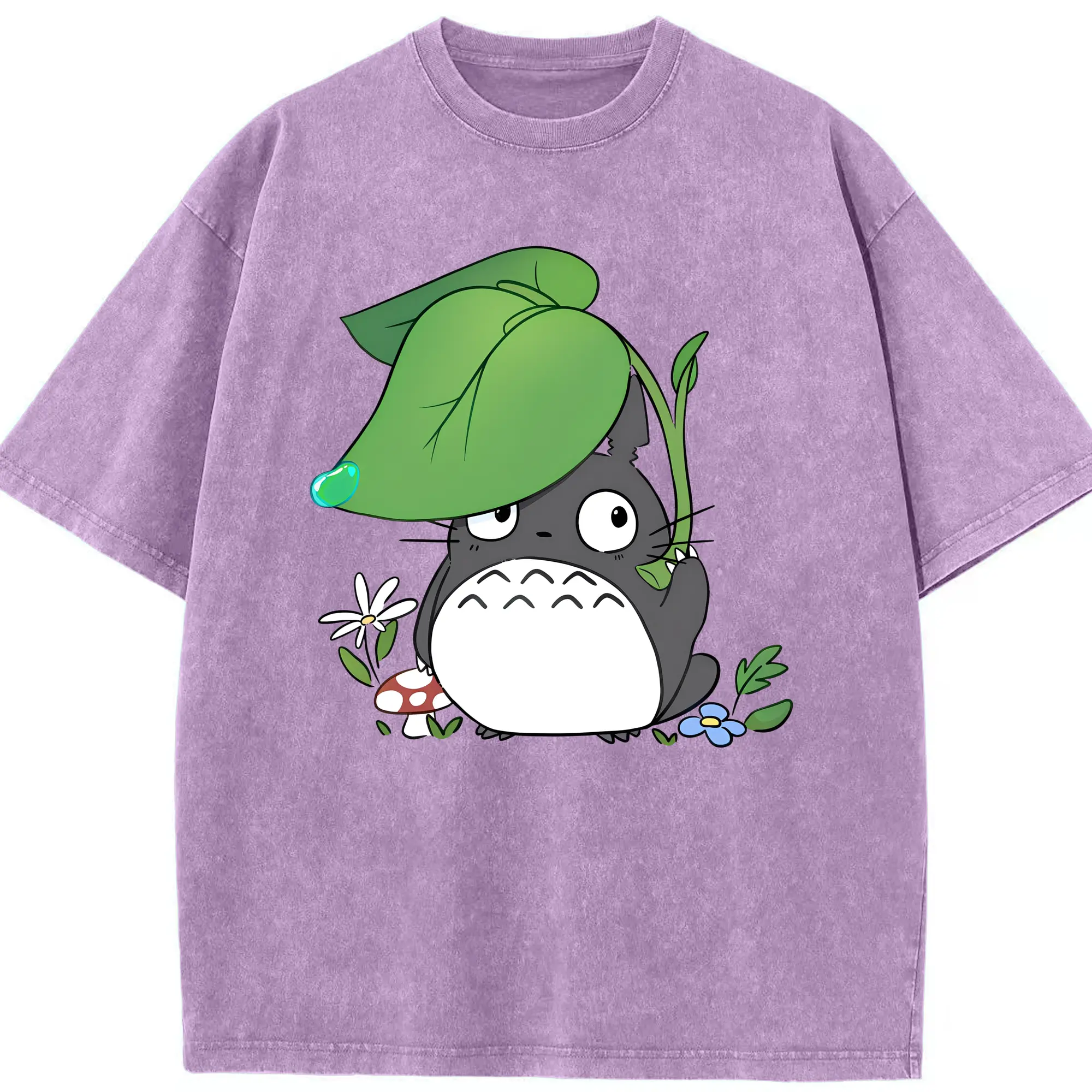 トトロ 雨の日 可愛い - 綿100% 半袖Tシャツ ・ フロントプリント ・ 快適 通気性 ・ 日常使い 散歩 スポーツ用
