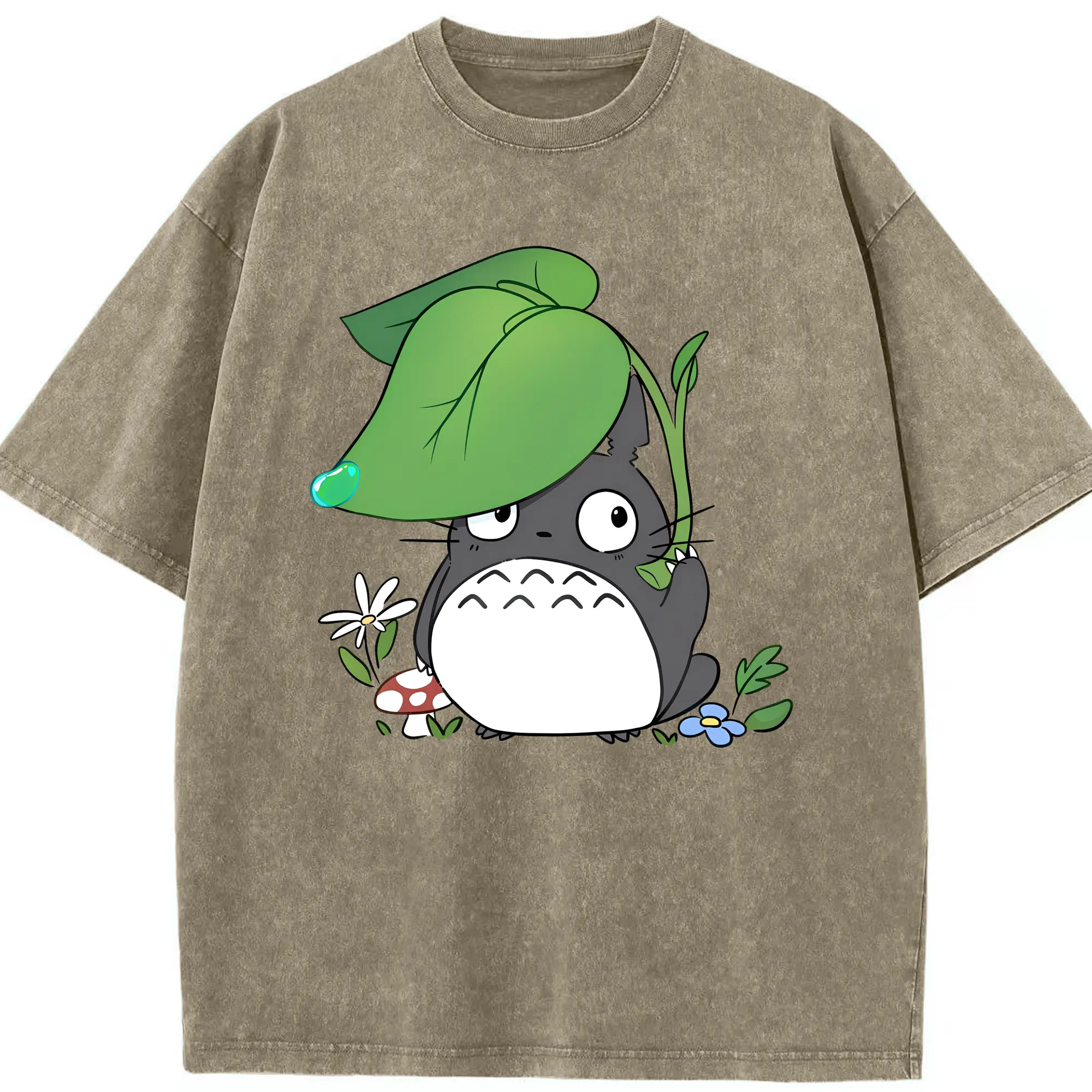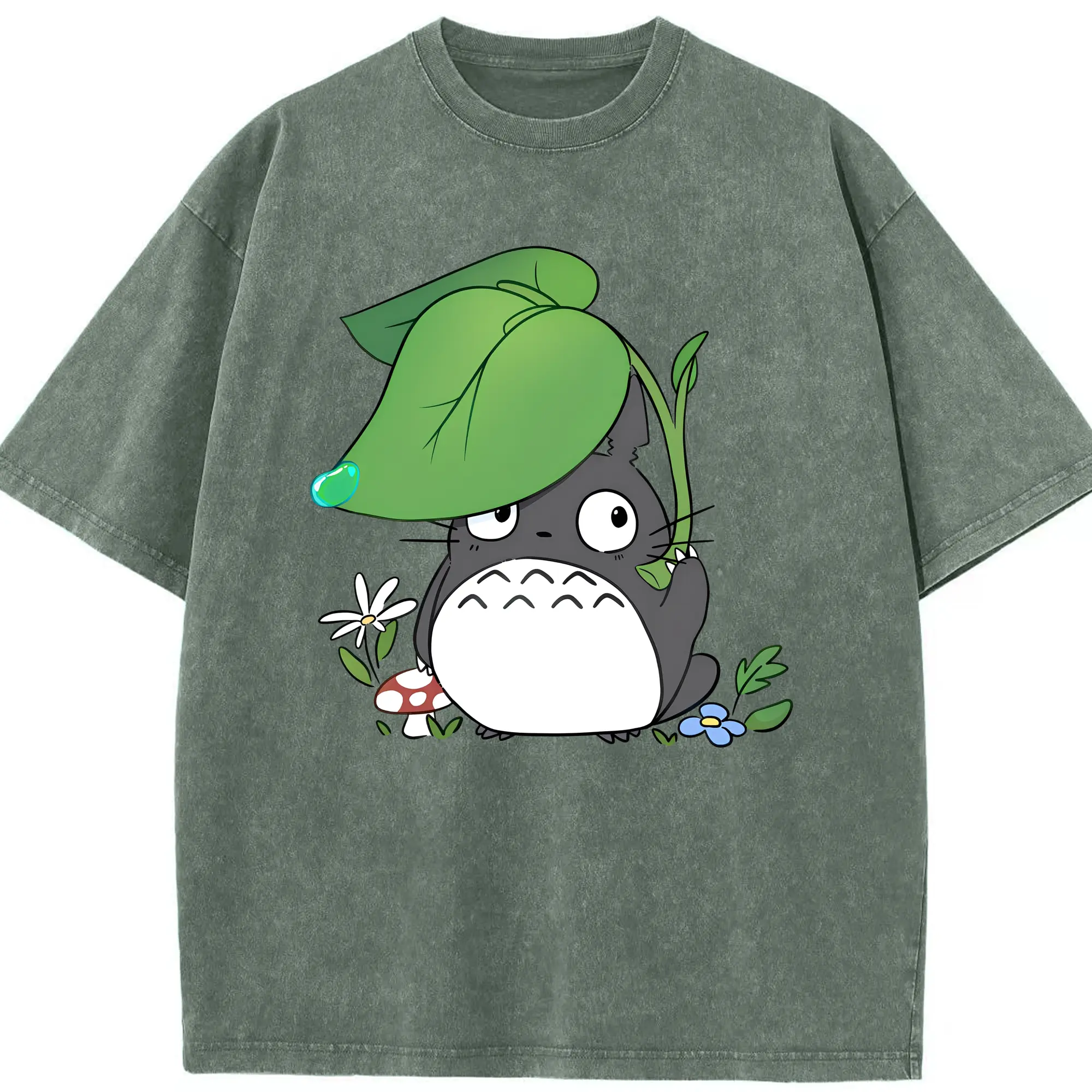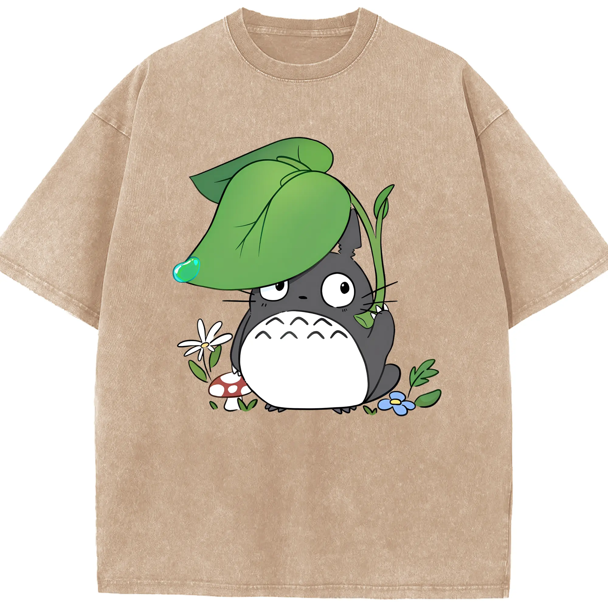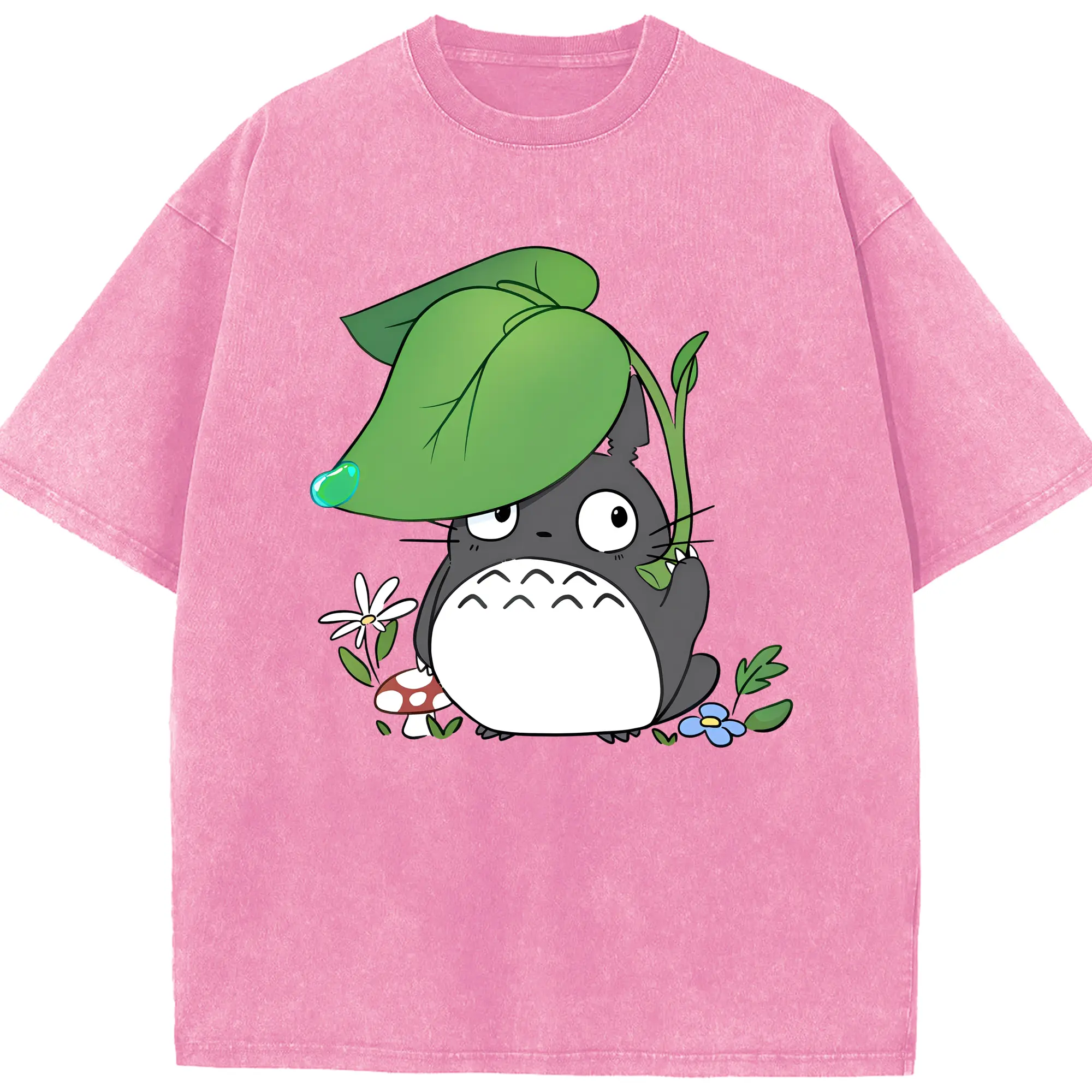 トトロ 雨の日 可愛い - 綿100% 半袖Tシャツ ・ フロントプリント ・ 快適 通気性 ・ 日常使い 散歩 スポーツ用