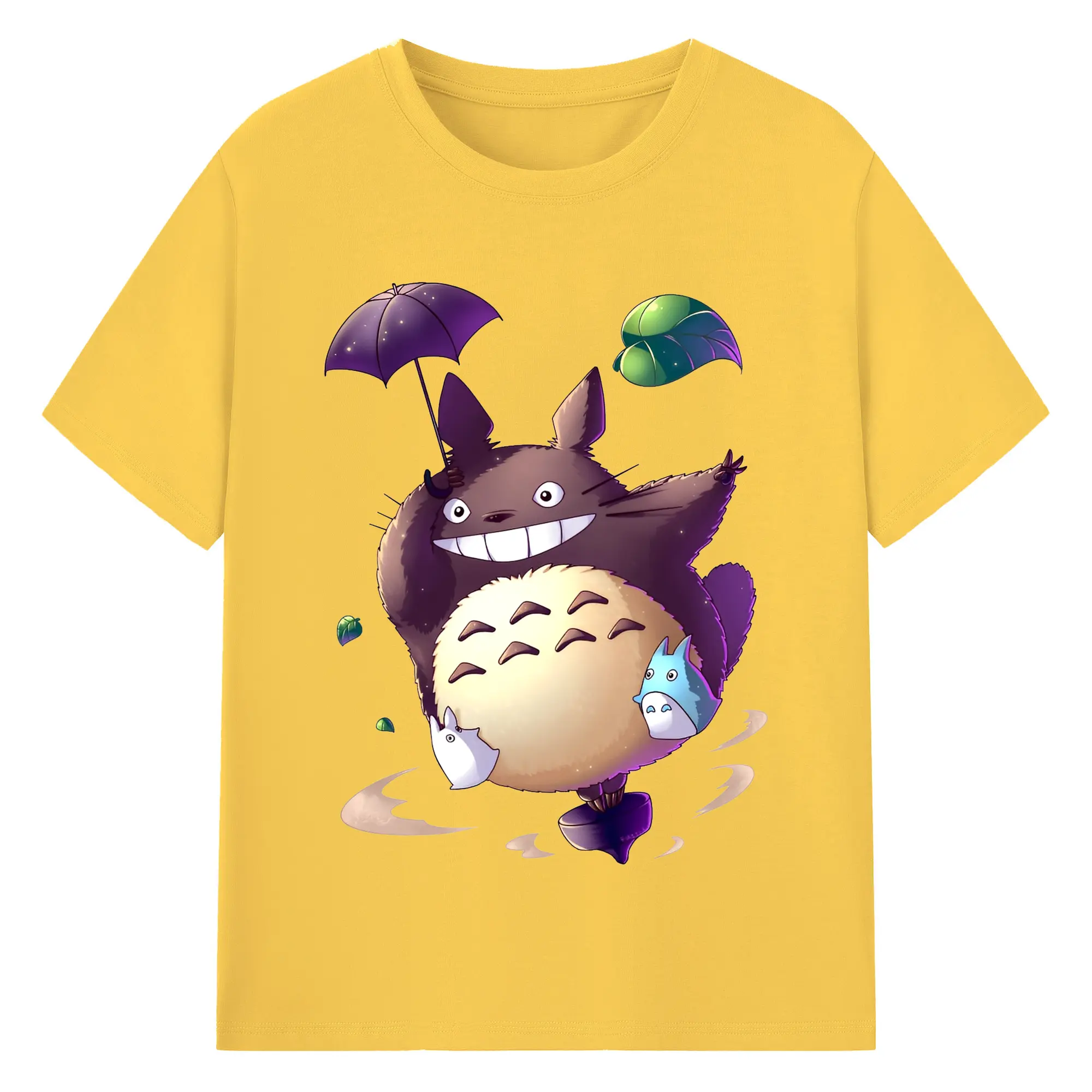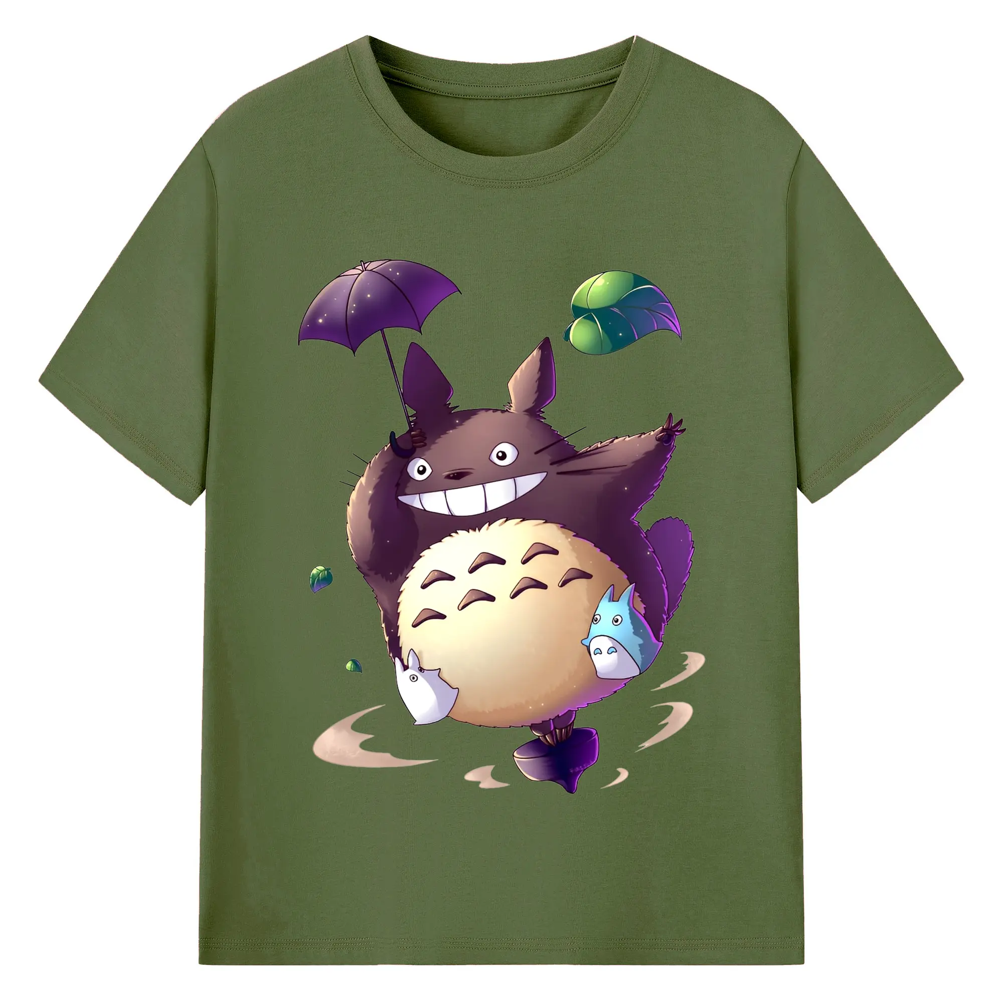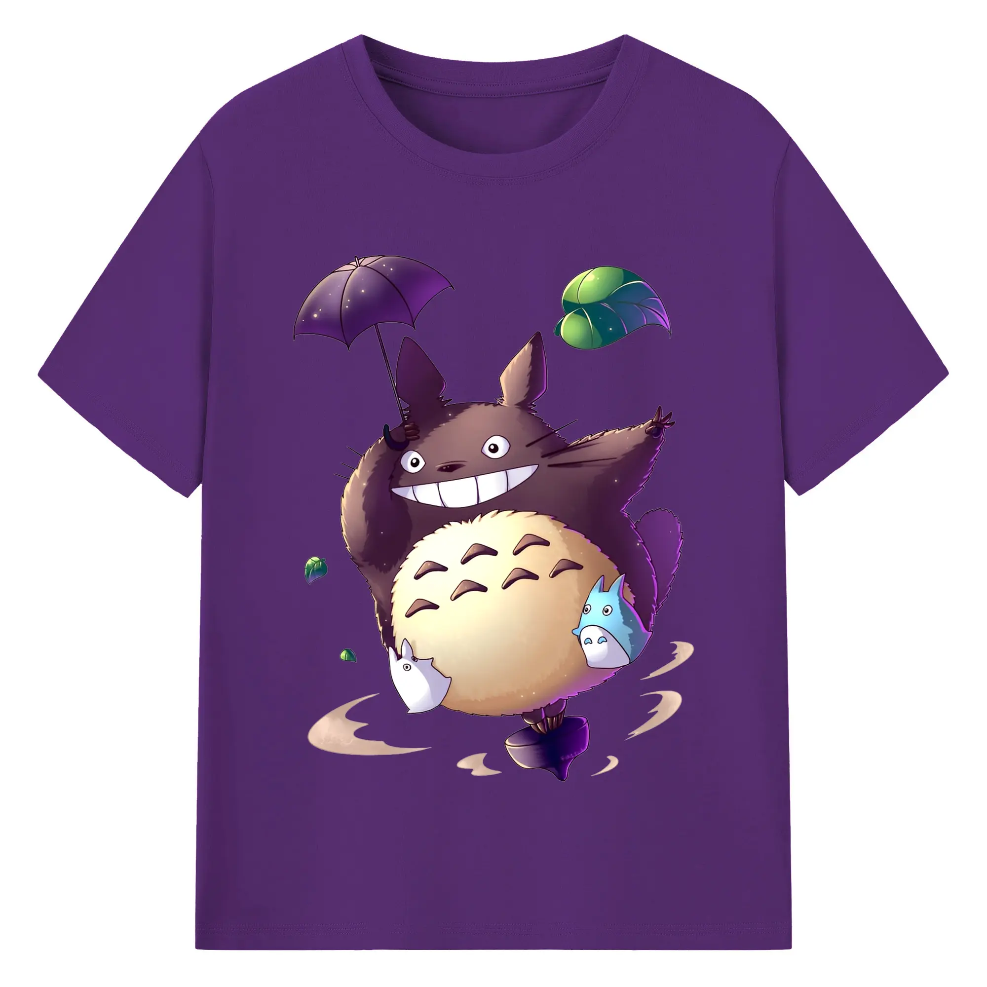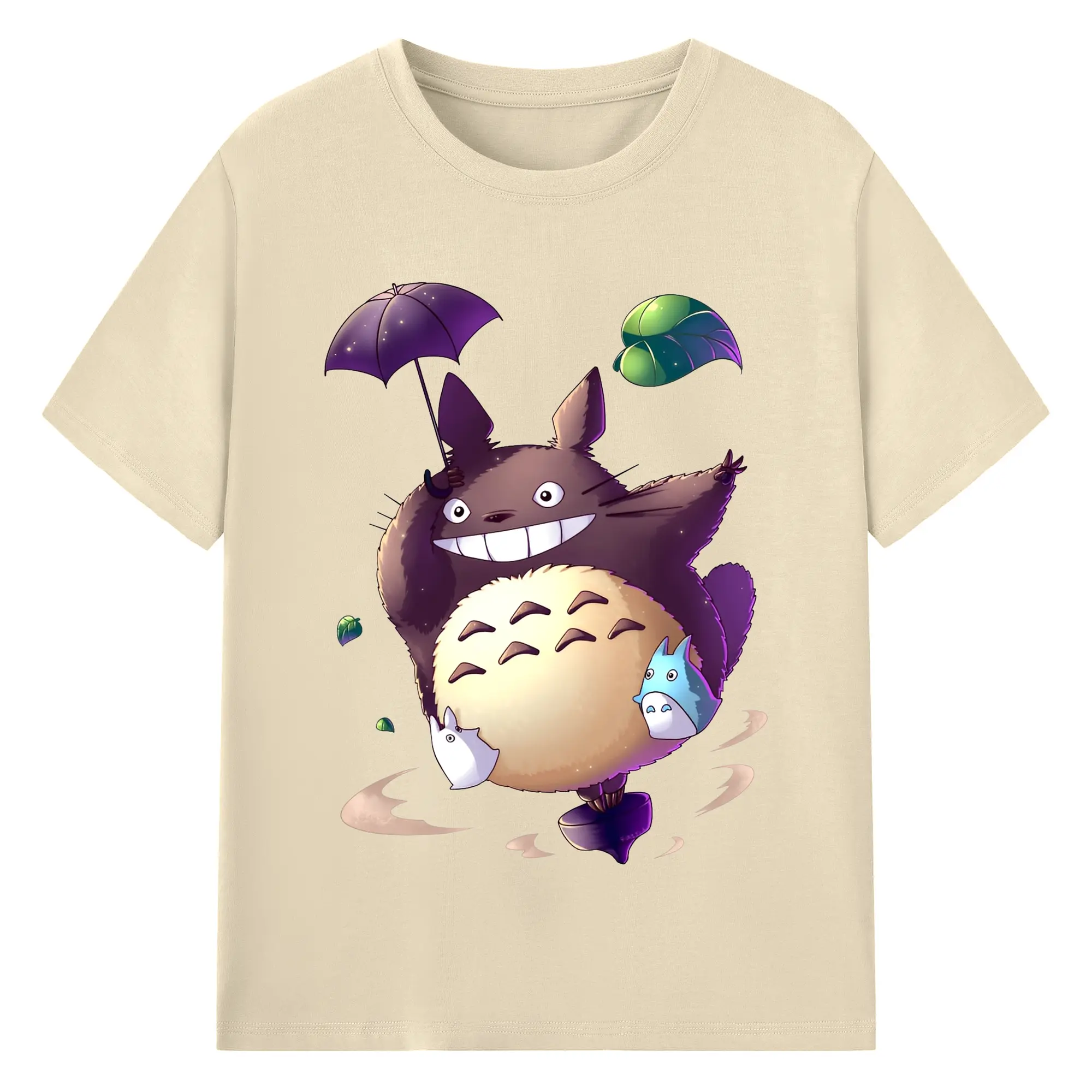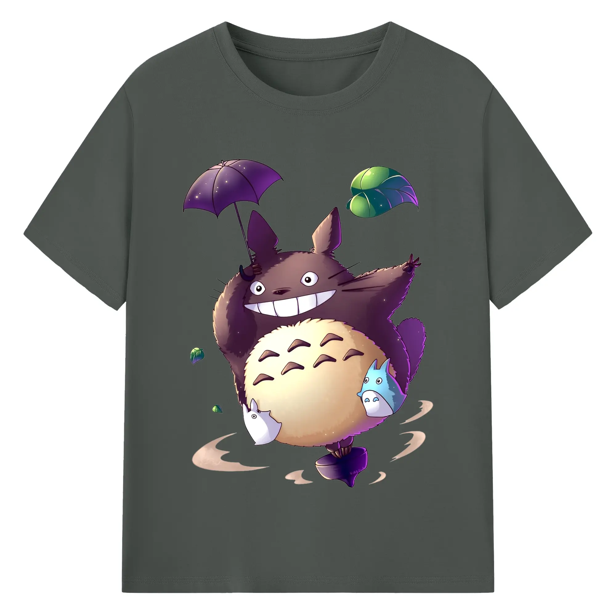 トトロ 飛翔キャラクター - 綿100% ヴィンテージ風 半袖Tシャツ ・ フロントプリント ・ 柔らか肌触り ・ 通気性 快適 ・ スポーツ カジュアル 外出用