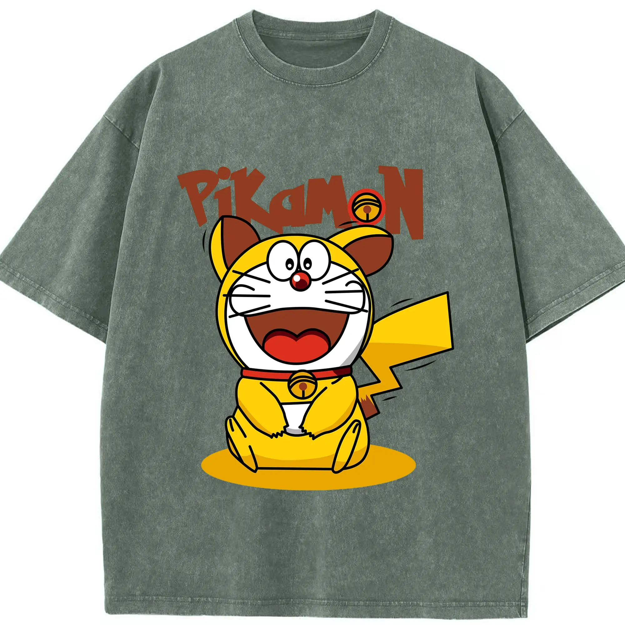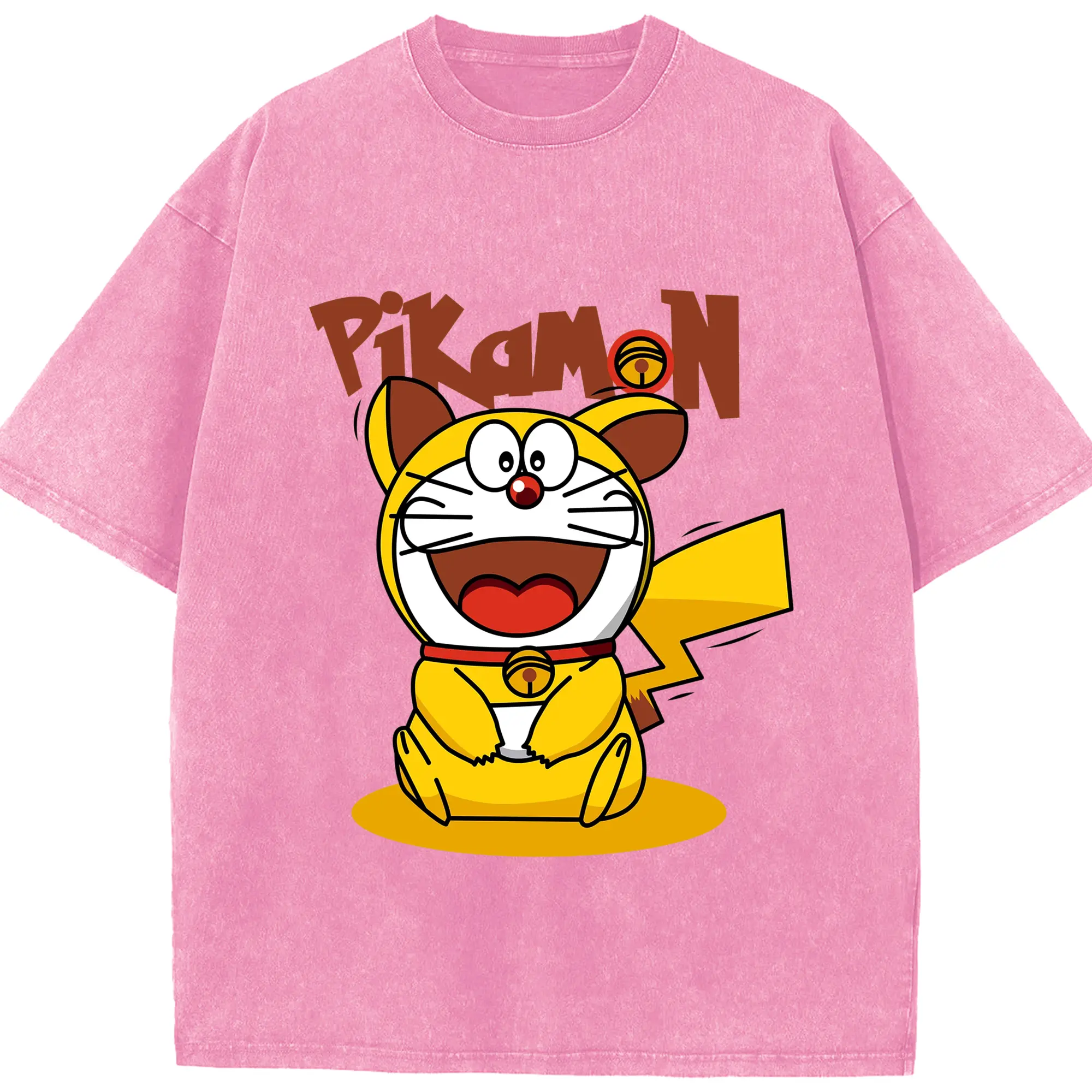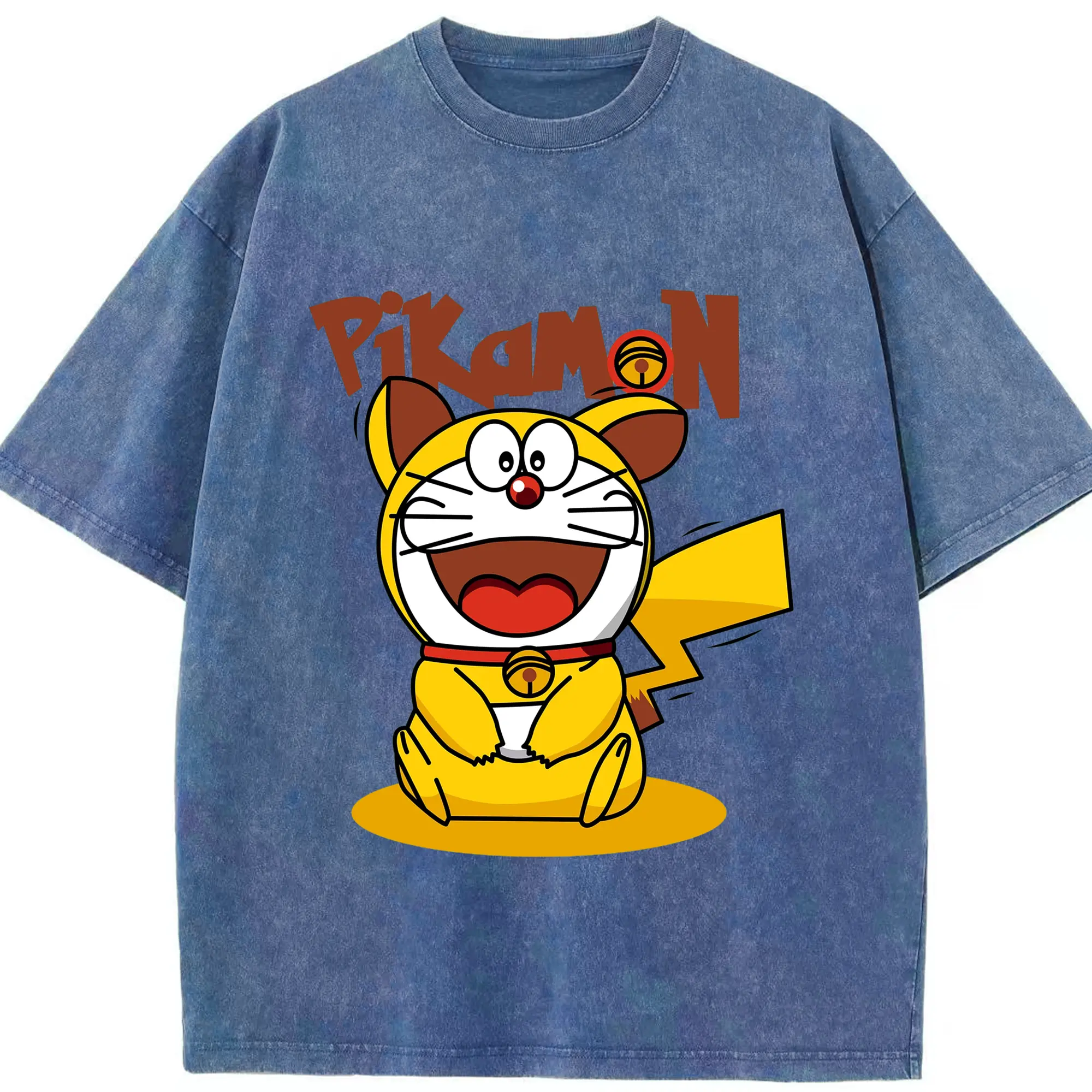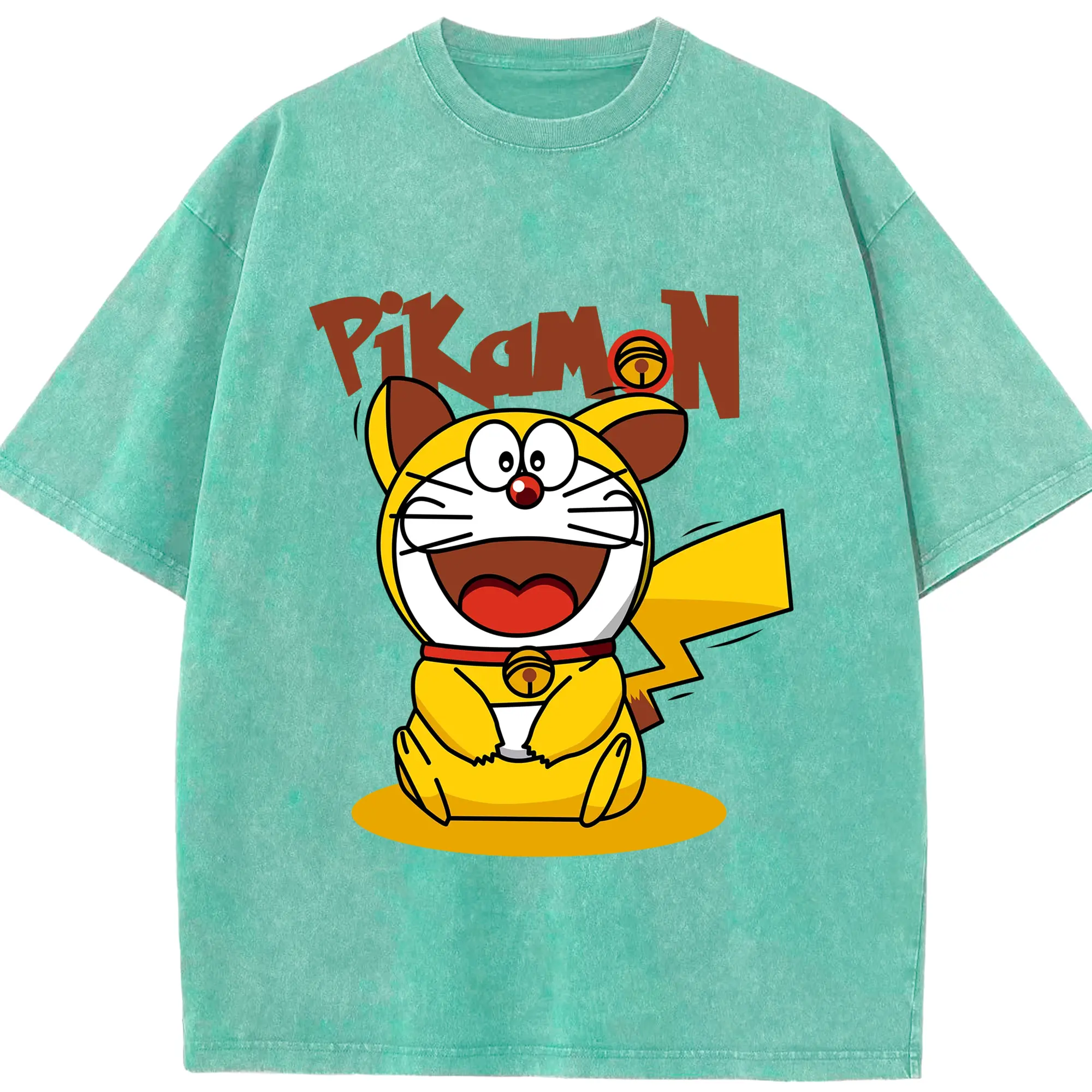 ドラえもん ×ピカチュウコラボ - 綿100% 半袖Tシャツ ・ フロントプリント ・ 快適 通気性 ・ 日常使い 散歩 スポーツ用
