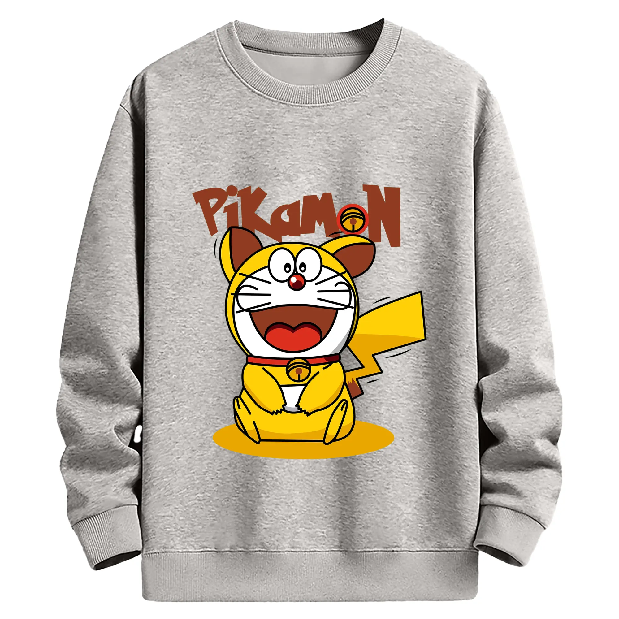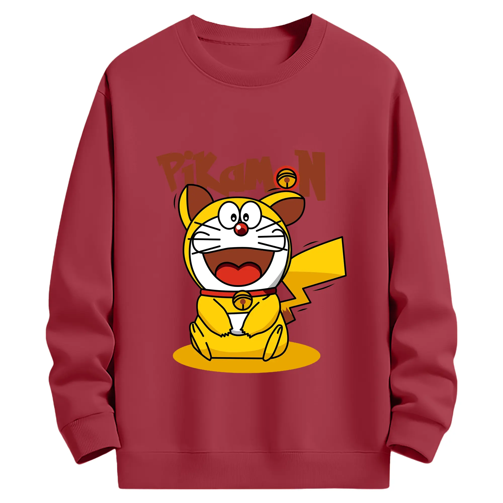 ドラえもん ×ラブブコラボ - 高品質 クルーネック スウェット ・ コットン59% ポリエステル41% ・ ユニセックス 長袖 トレーナー ・ カジュアル デイリー スポーツ 散歩用