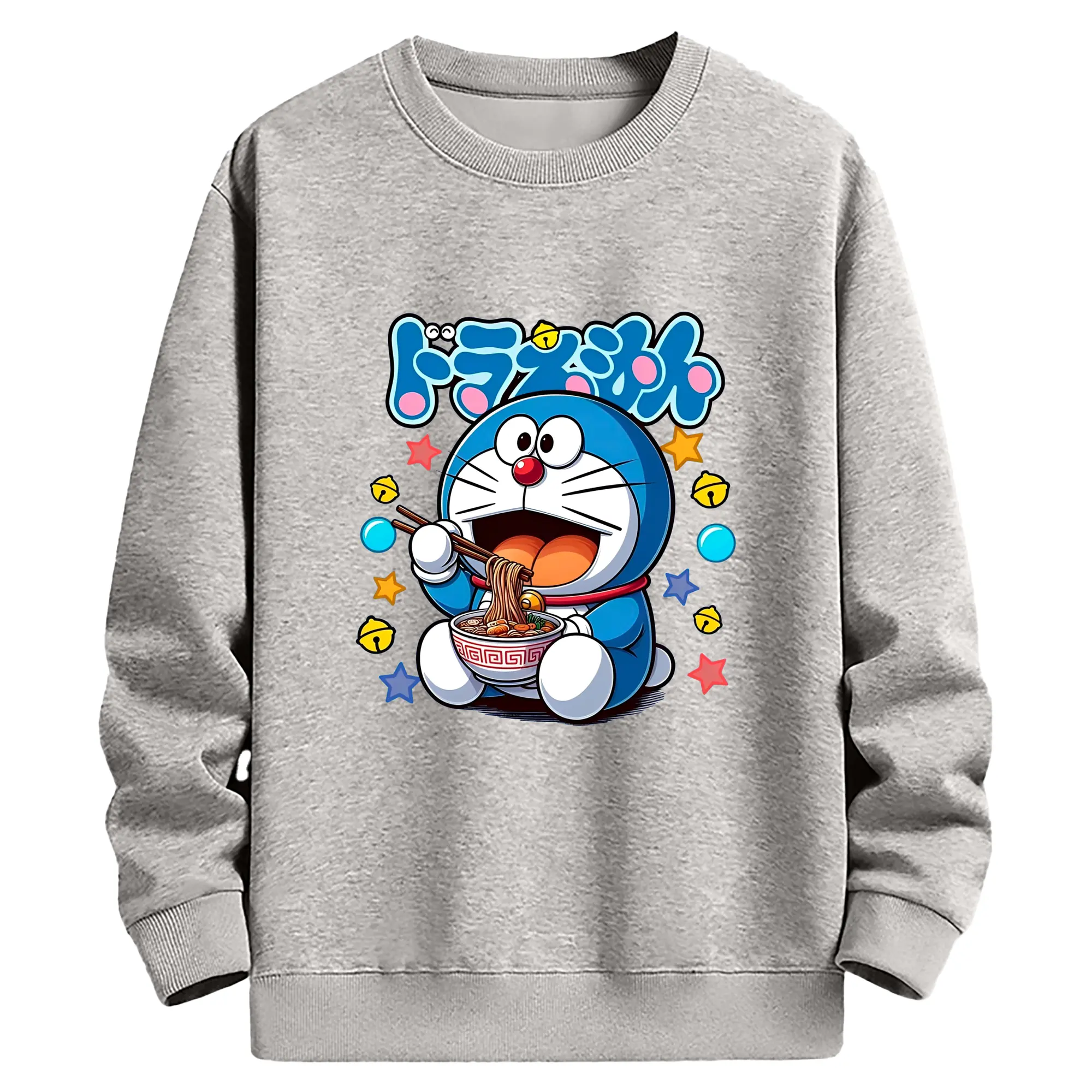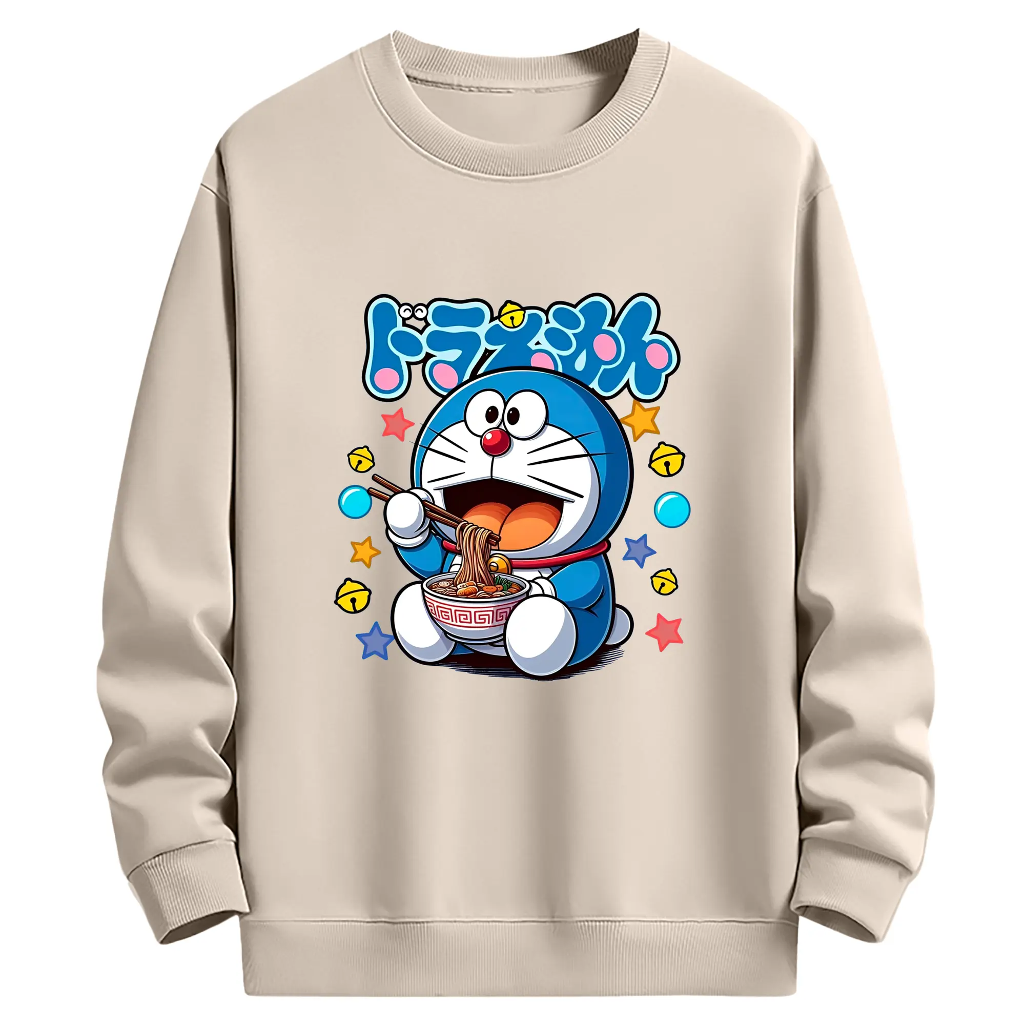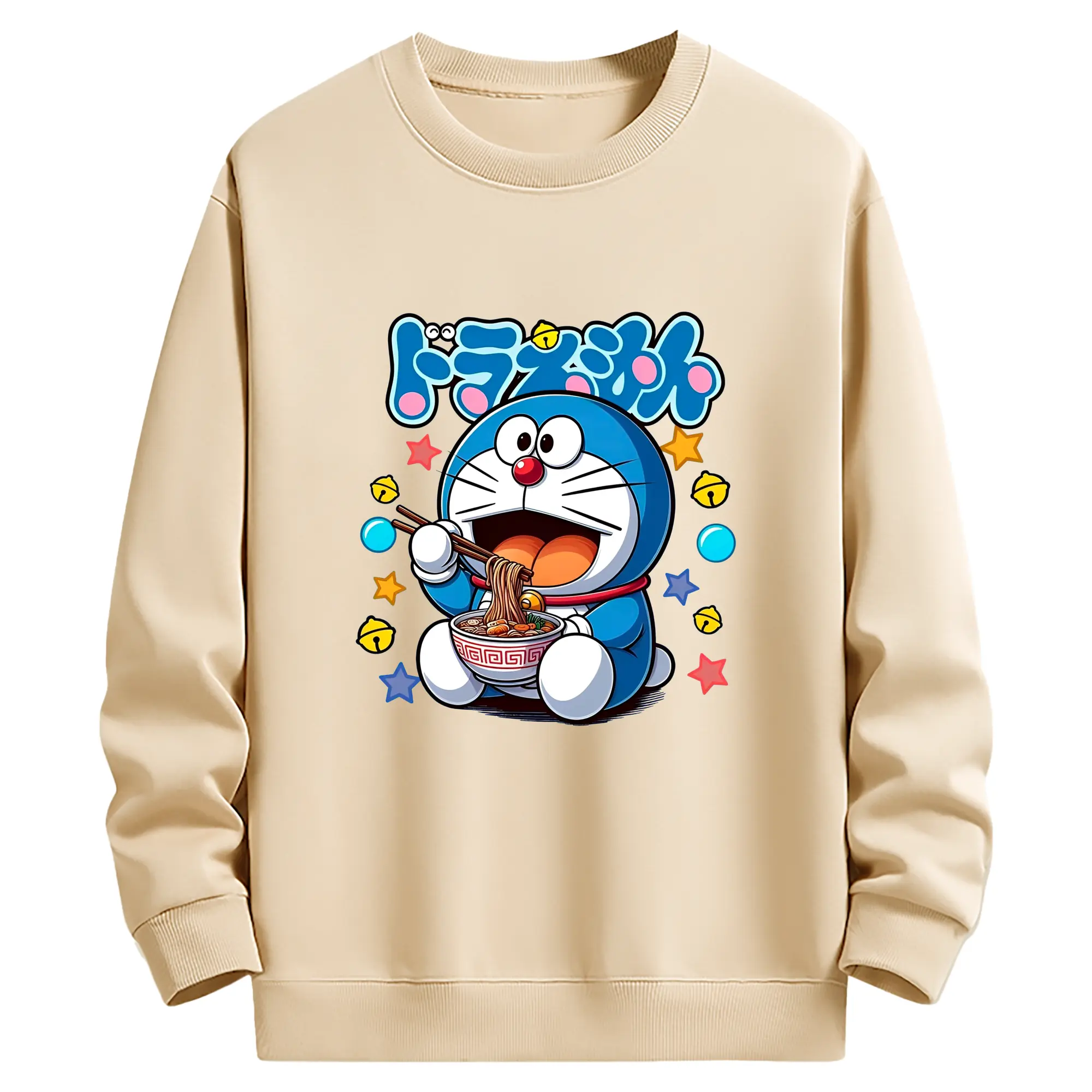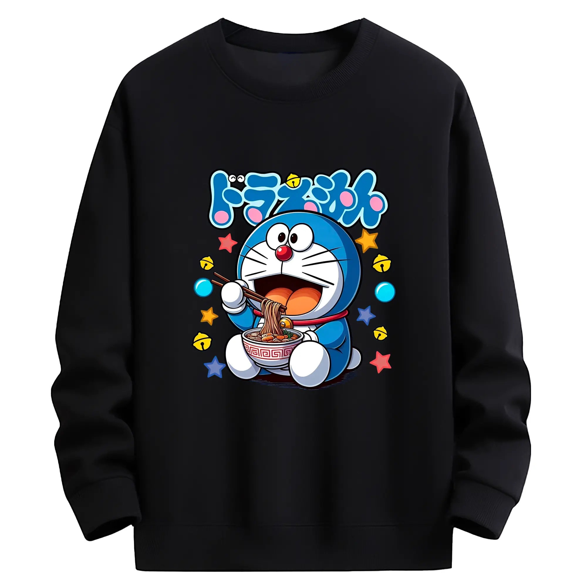 ドラえもん ラーメン柄 - 綿100% 半袖Tシャツ ・ フロントプリント ・ 快適 通気性 ・ 日常使い 散歩 スポーツ用