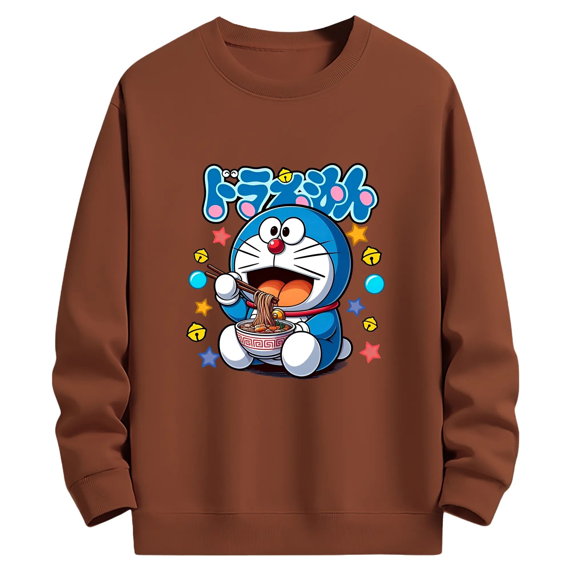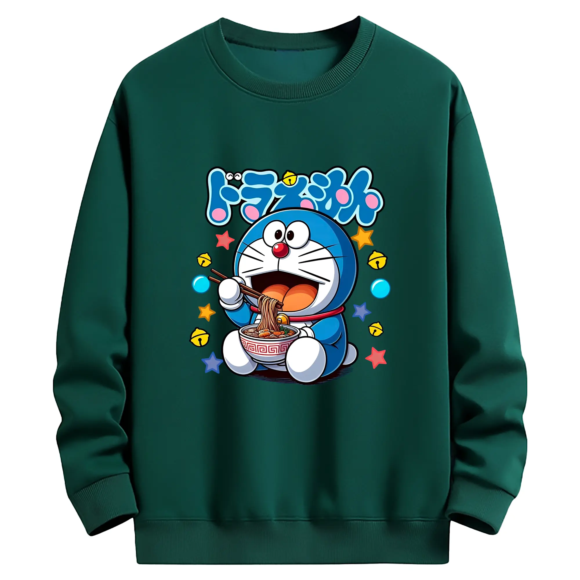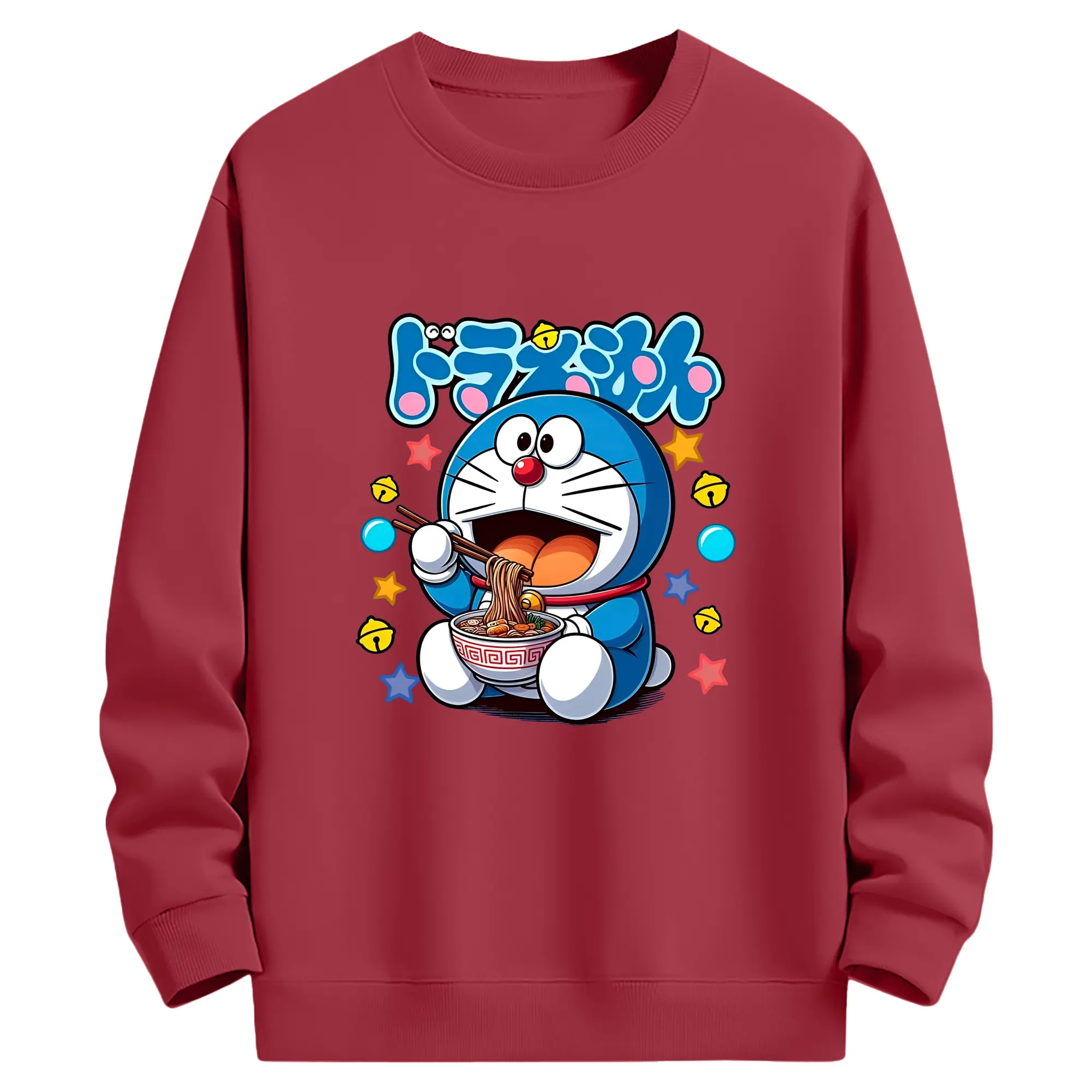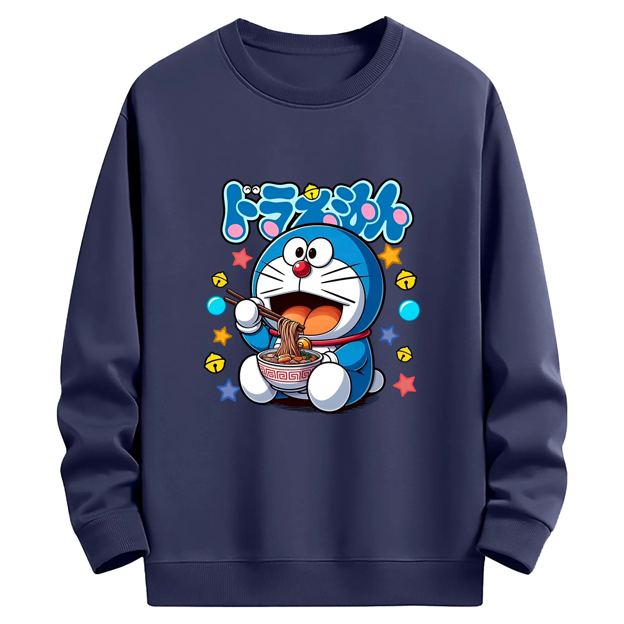 ドラえもん ラーメン柄 - 綿100% 半袖Tシャツ ・ フロントプリント ・ 快適 通気性 ・ 日常使い 散歩 スポーツ用