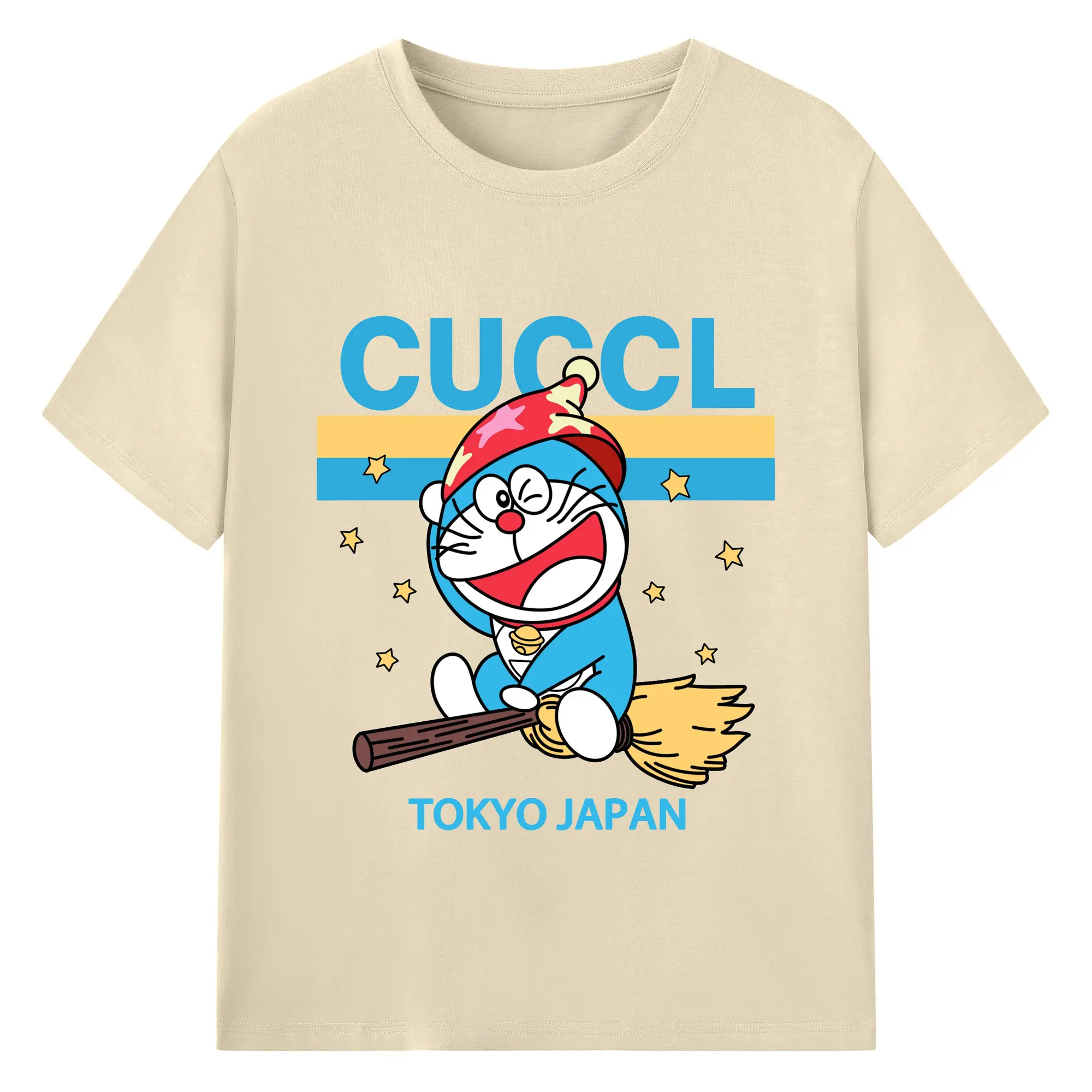 ドラえもんCUCCL日本・東京 - 綿100% ヴィンテージ風 半袖Tシャツ ・ フロントプリント ・ 柔らか肌触り ・ 通気性 快適 ・ スポーツ カジュアル 外出用