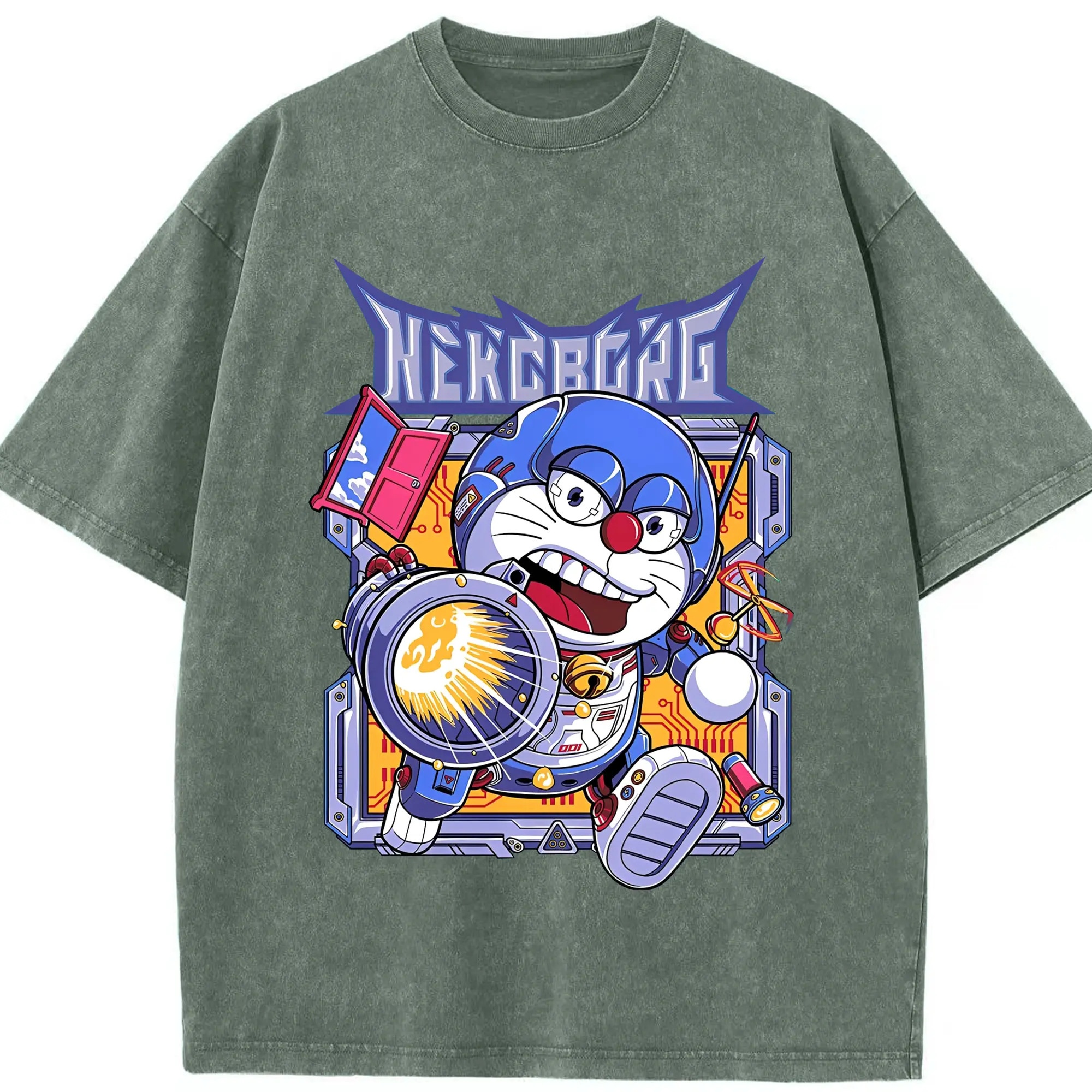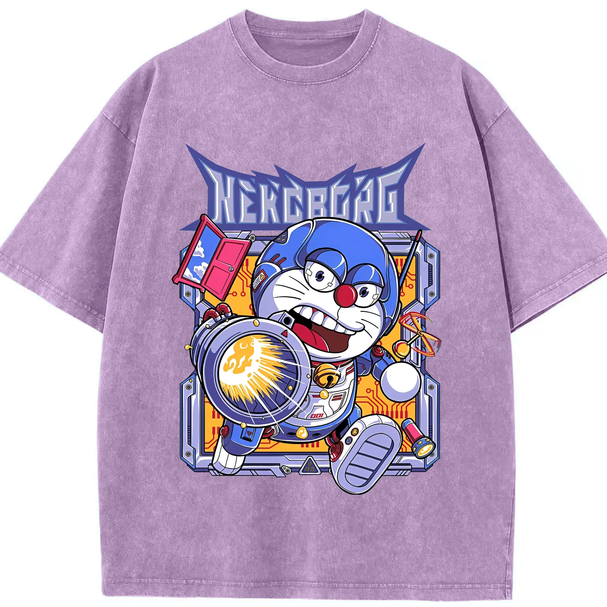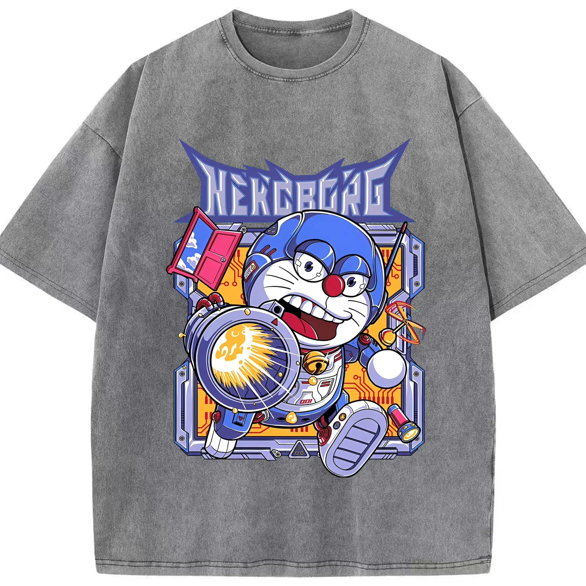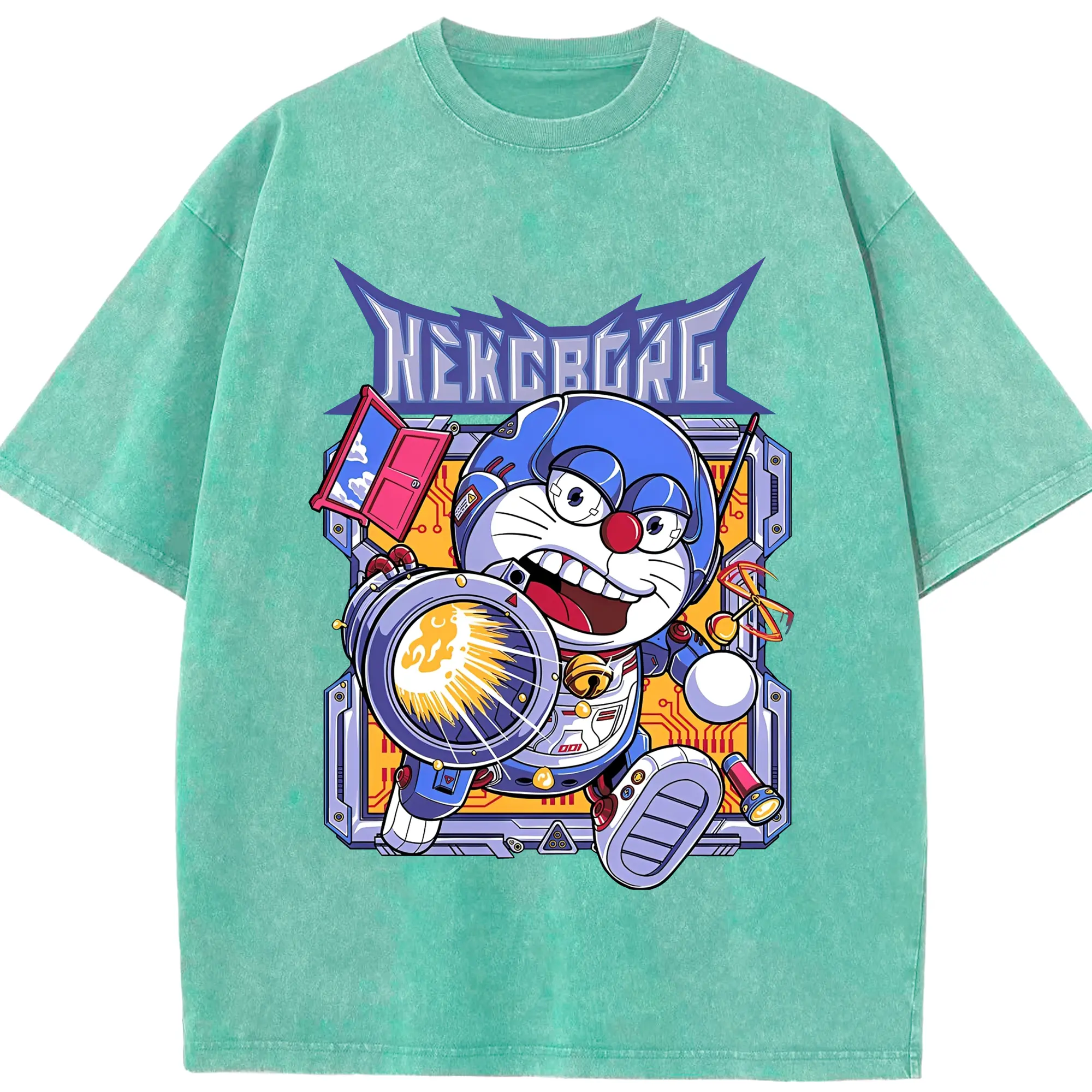 ドラえもんNEKOBORG - 綿100% 半袖Tシャツ ・ フロントプリント ・ 快適 通気性 ・ 日常使い 散歩 スポーツ用