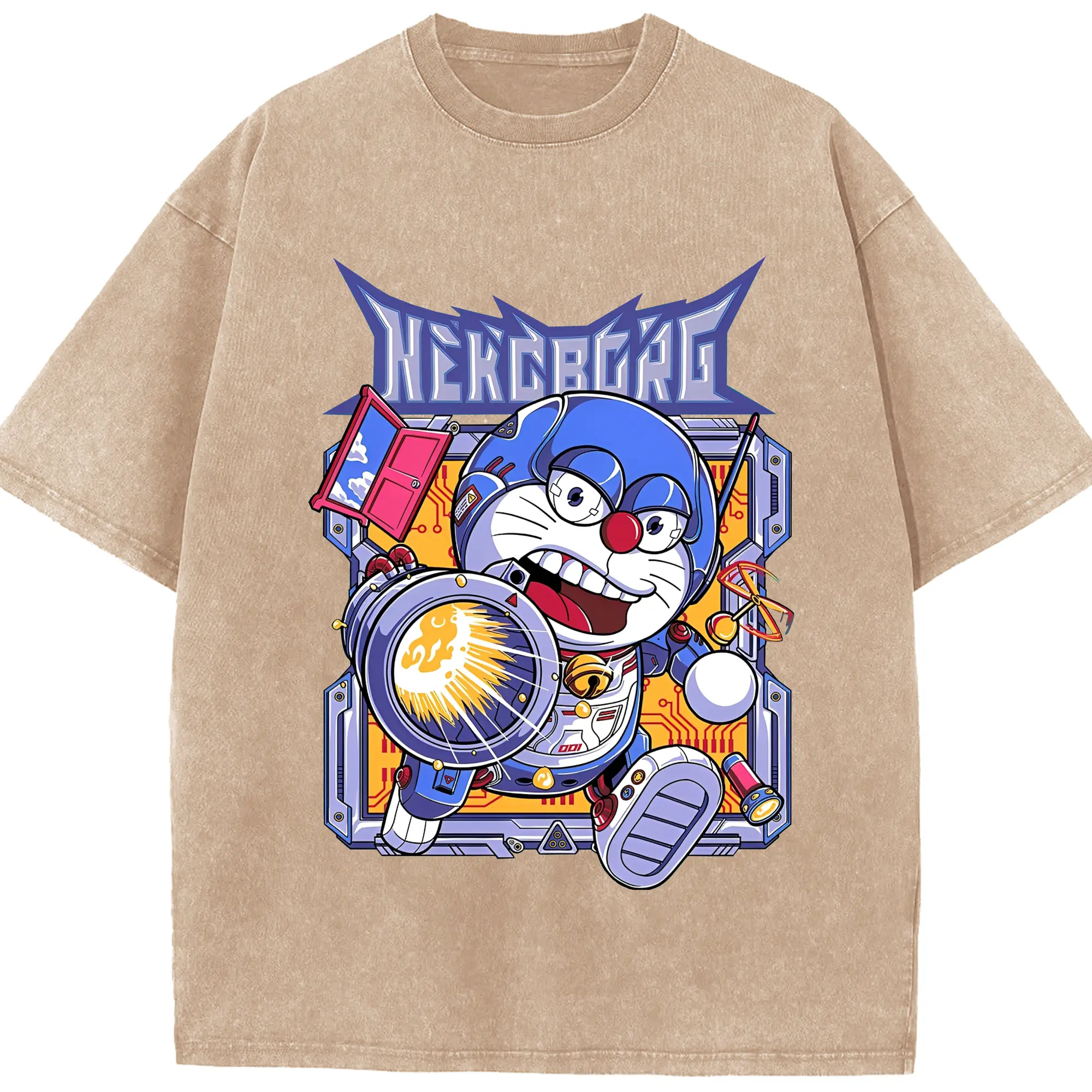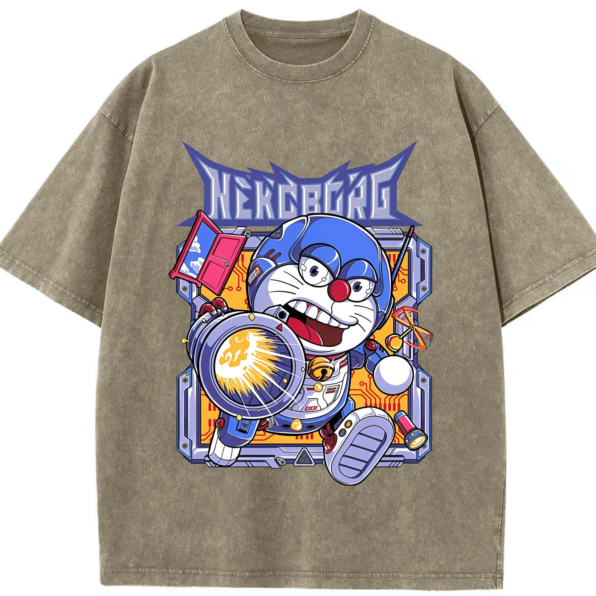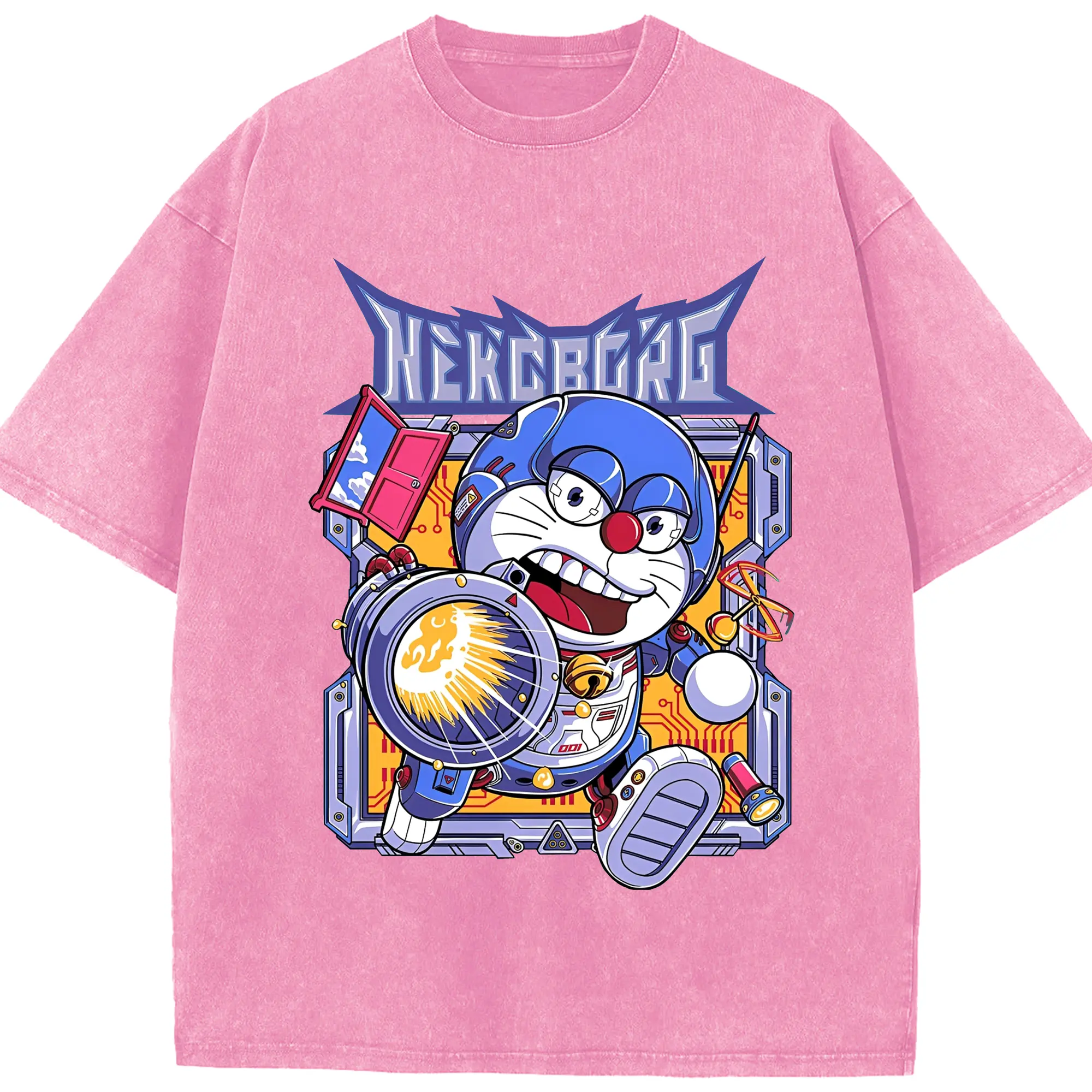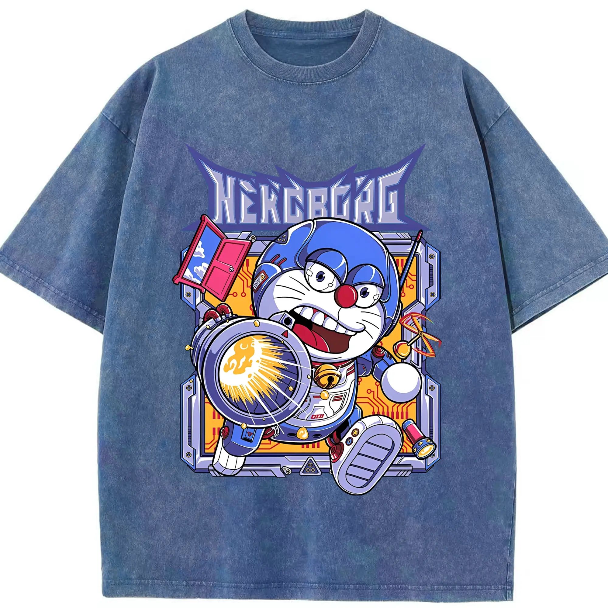ドラえもんNEKOBORG - 綿100% 半袖Tシャツ ・ フロントプリント ・ 快適 通気性 ・ 日常使い 散歩 スポーツ用