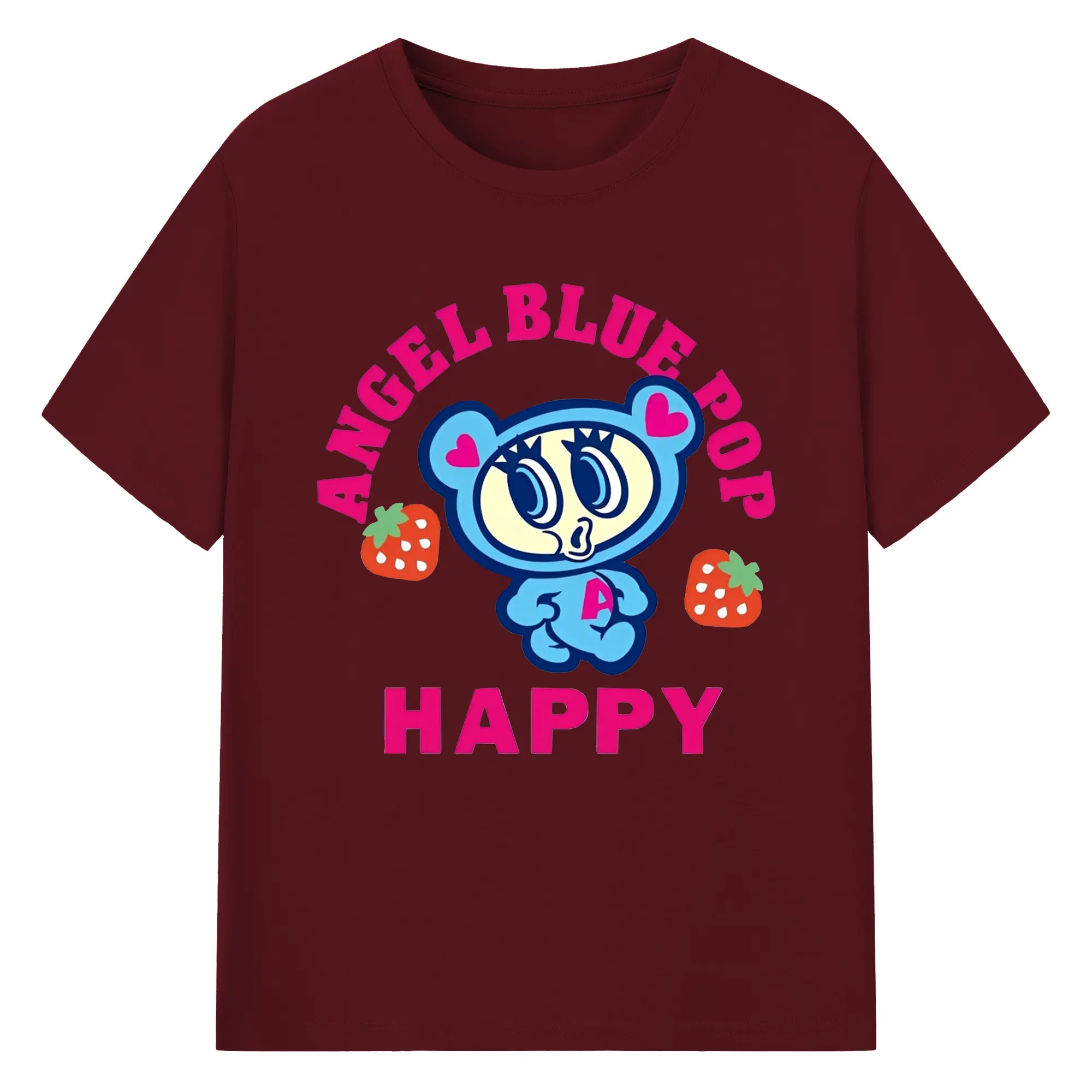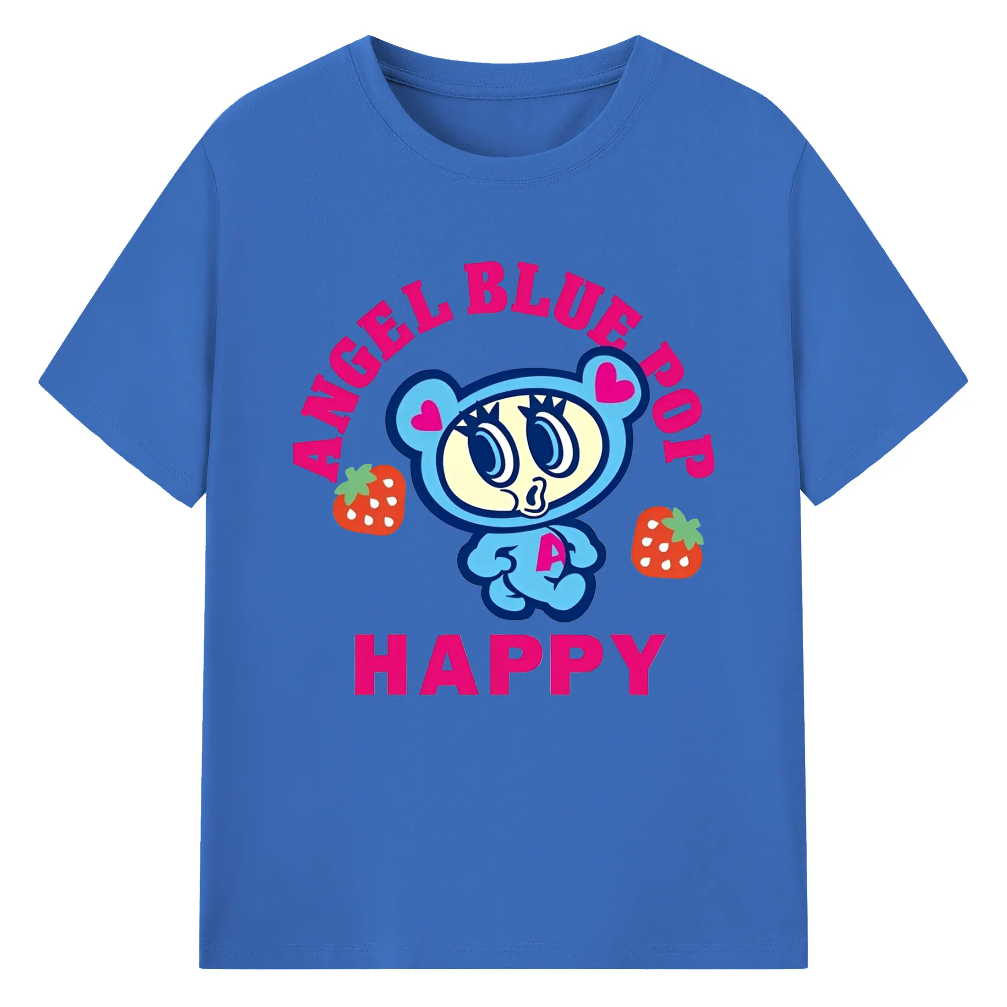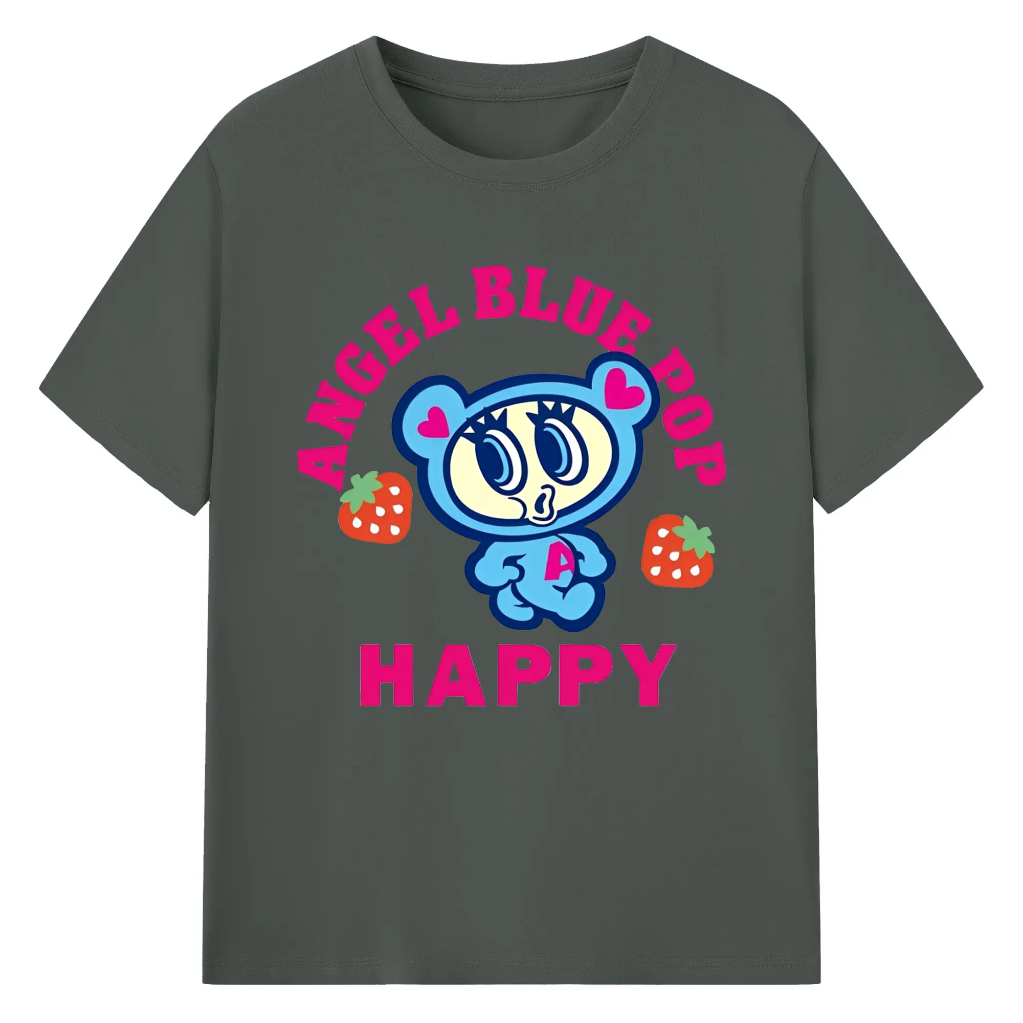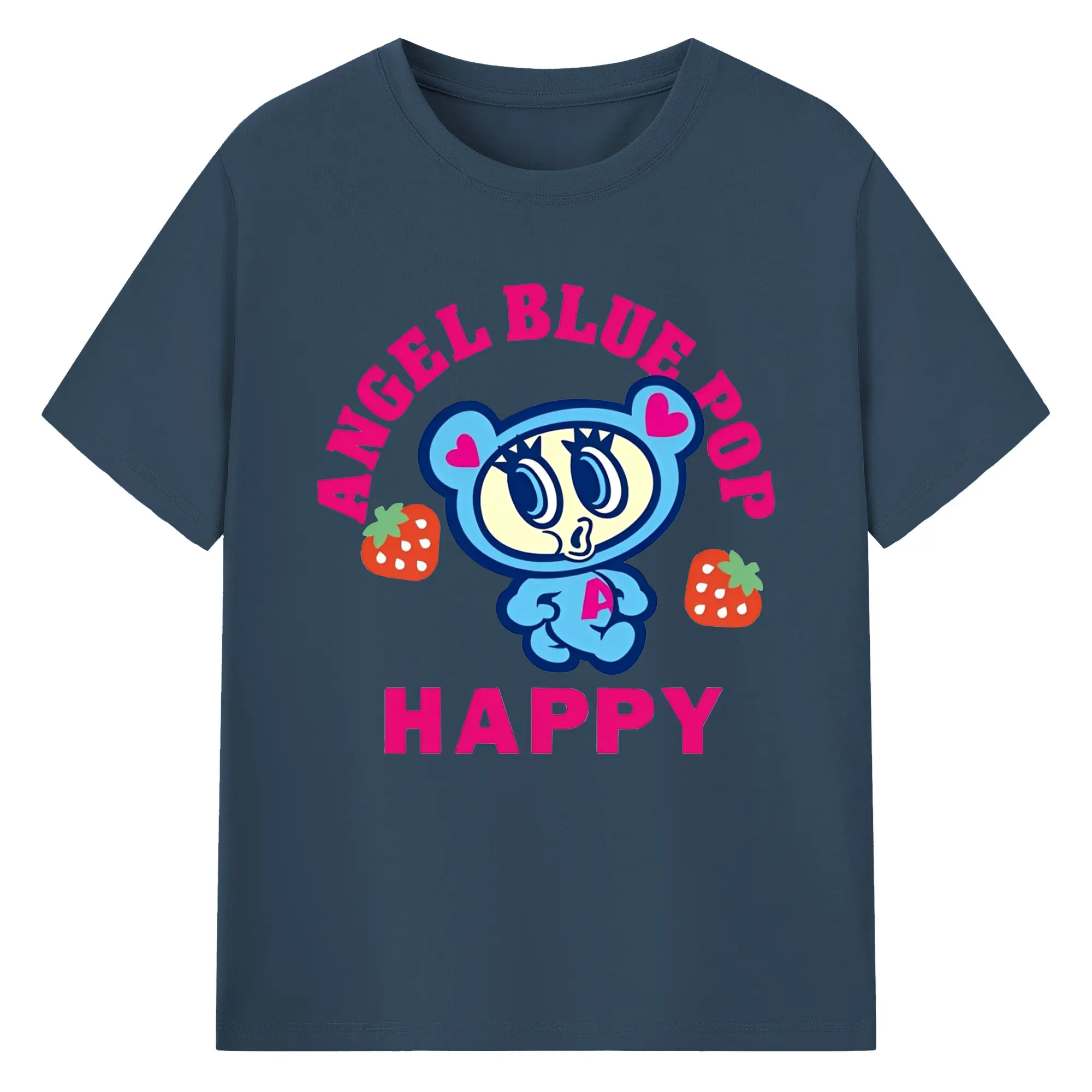 ハッピーストロベリーエンジェルブルーナカムラ君 - 綿100% ヴィンテージ風 半袖Tシャツ ・ フロントプリント ・ 柔らか肌触り ・ 通気性 快適 ・ スポーツ カジュアル 外出用