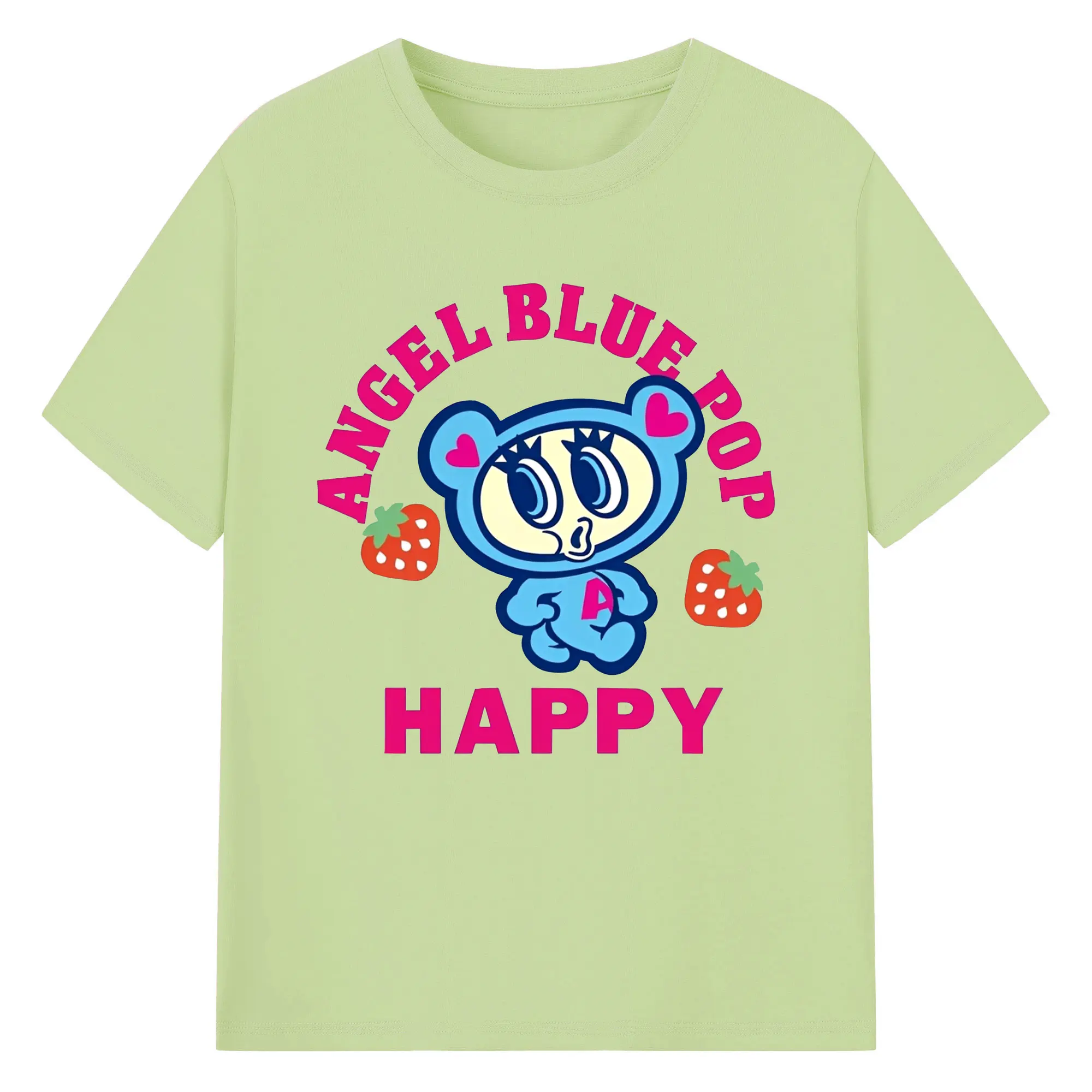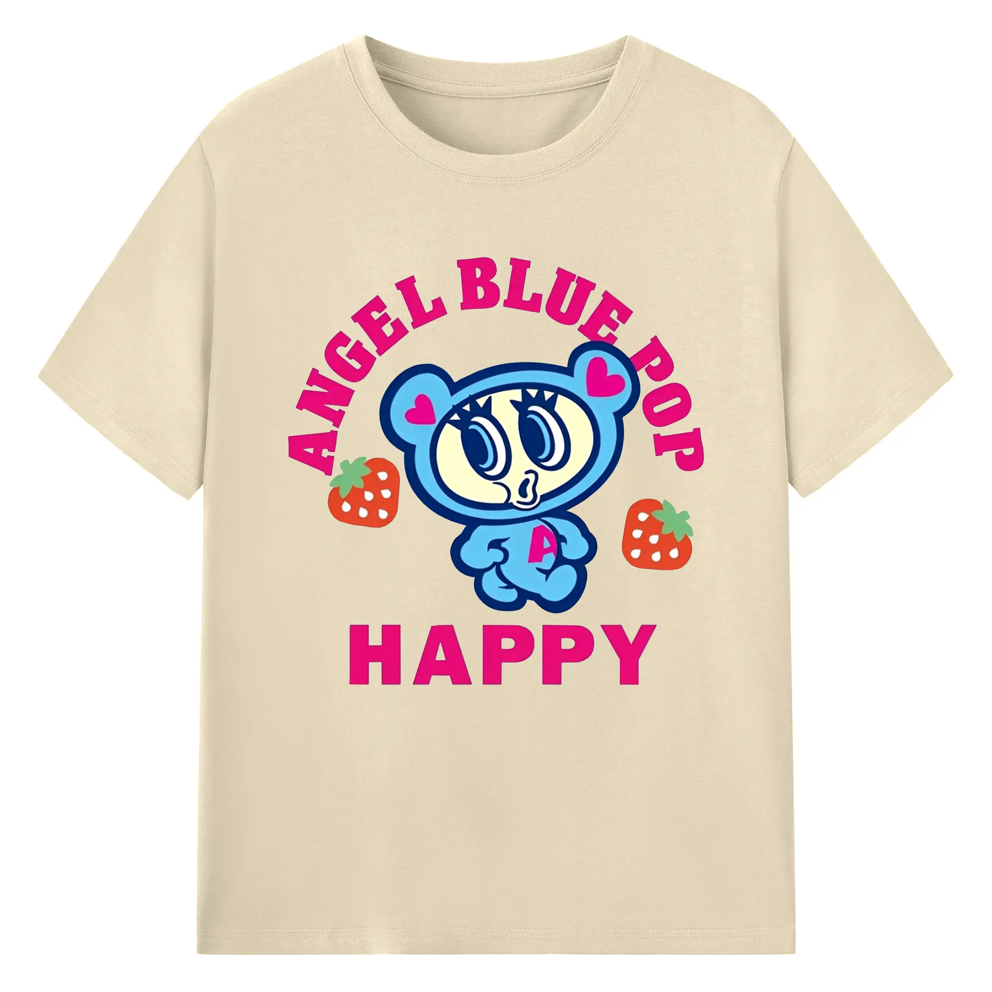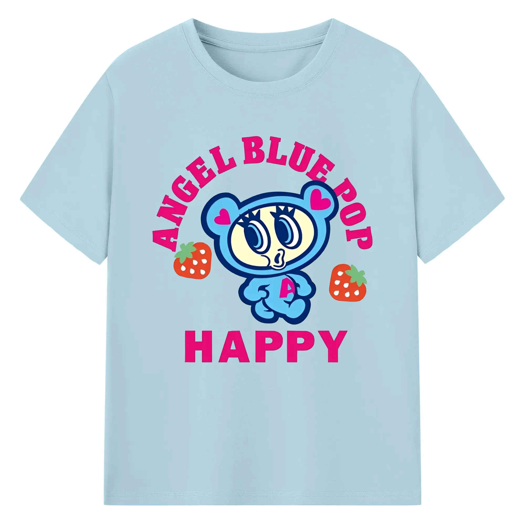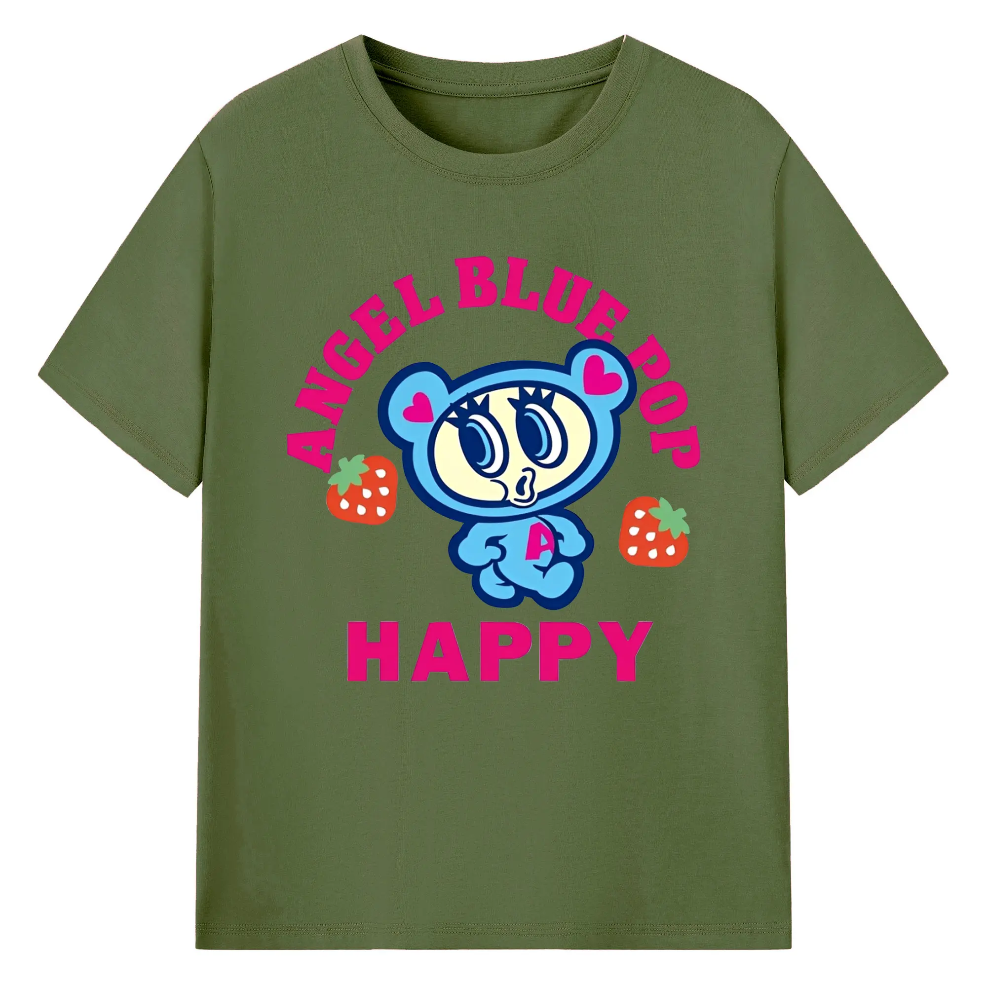 ハッピーストロベリーエンジェルブルーナカムラ君 - 綿100% ヴィンテージ風 半袖Tシャツ ・ フロントプリント ・ 柔らか肌触り ・ 通気性 快適 ・ スポーツ カジュアル 外出用
