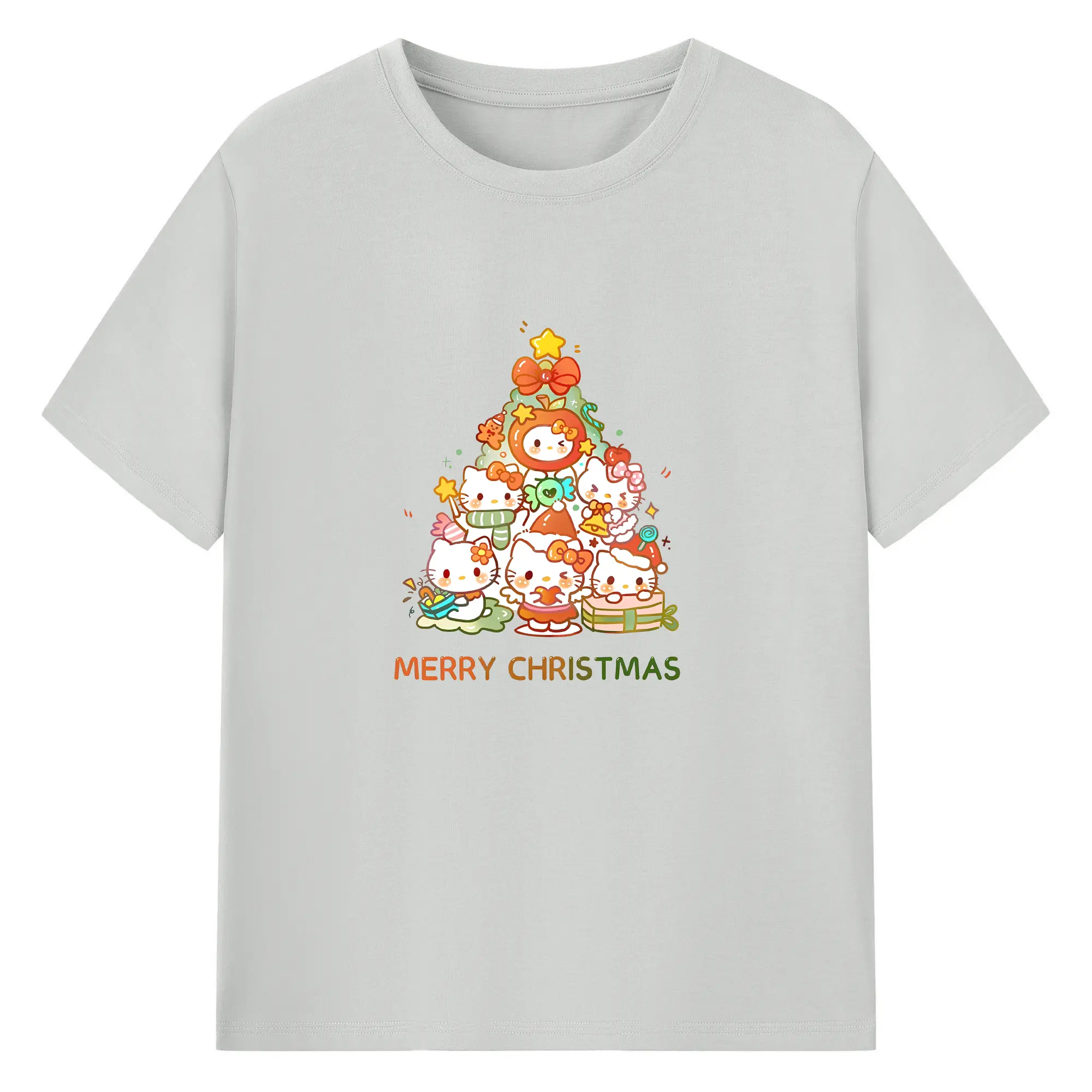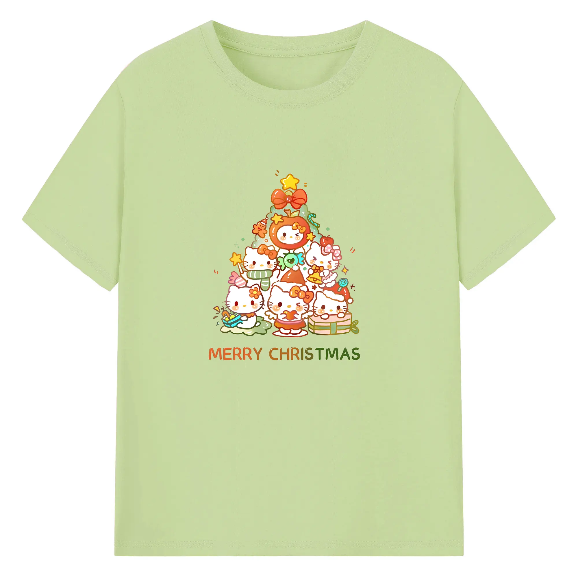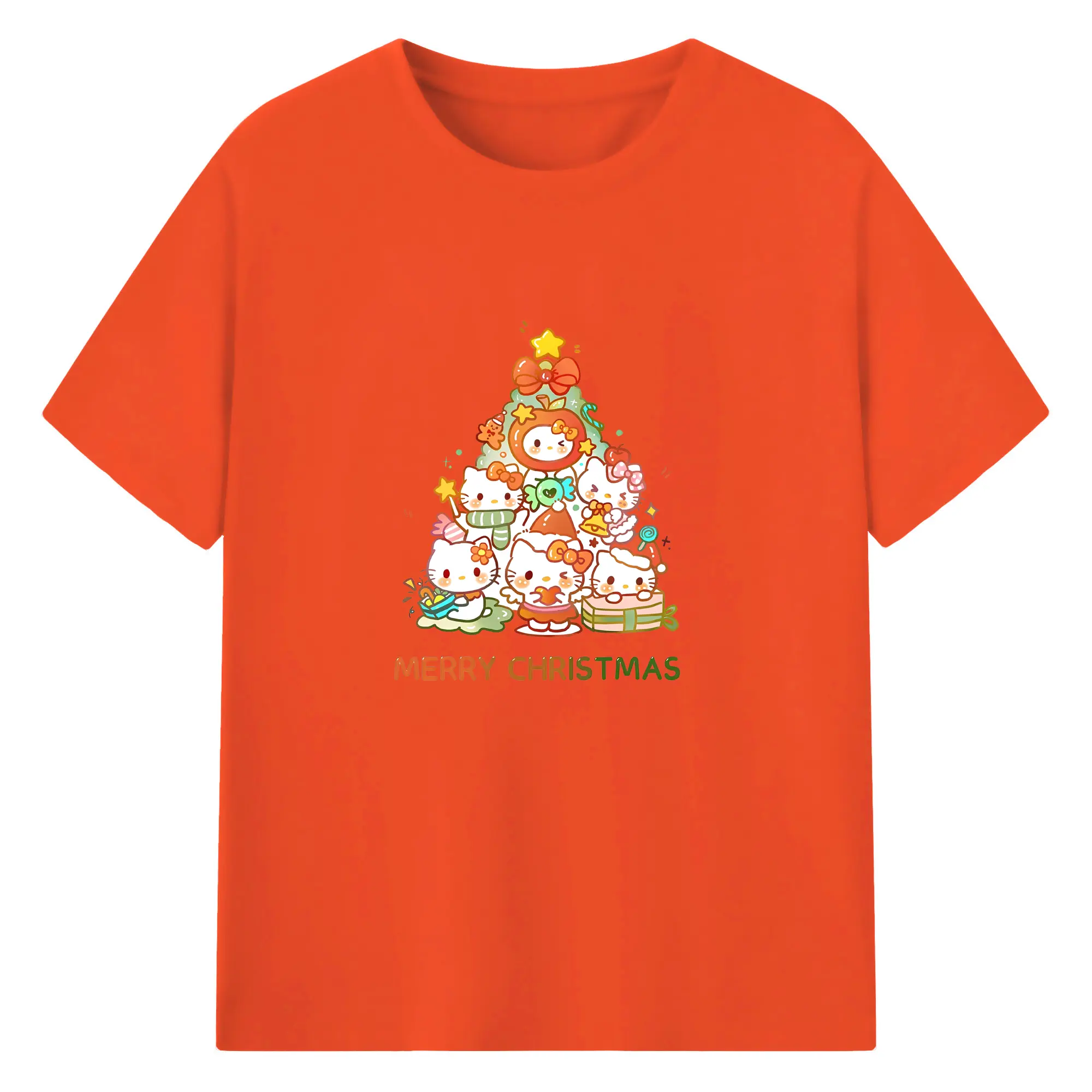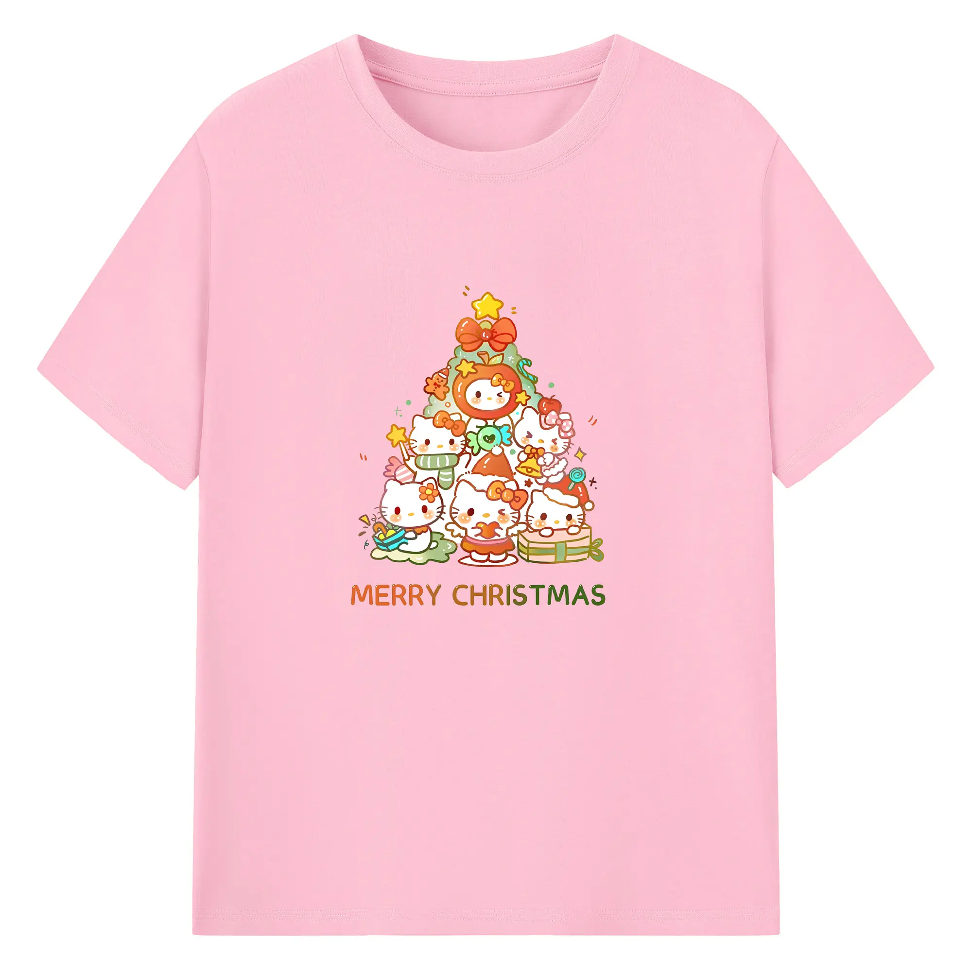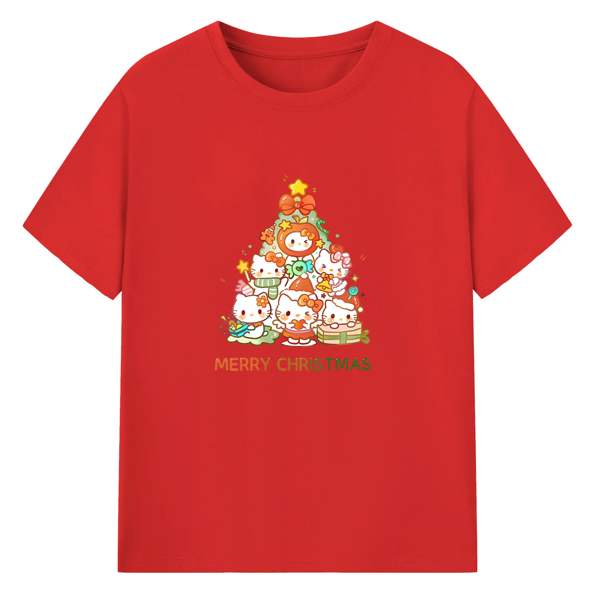 ハローキティ クリスマス2025✨ サンタ風×花輪デコレーション - 綿100% 半袖Tシャツ ・ フロントプリント ・ 快適 通気性 ・ 日常使い 散歩 スポーツ用