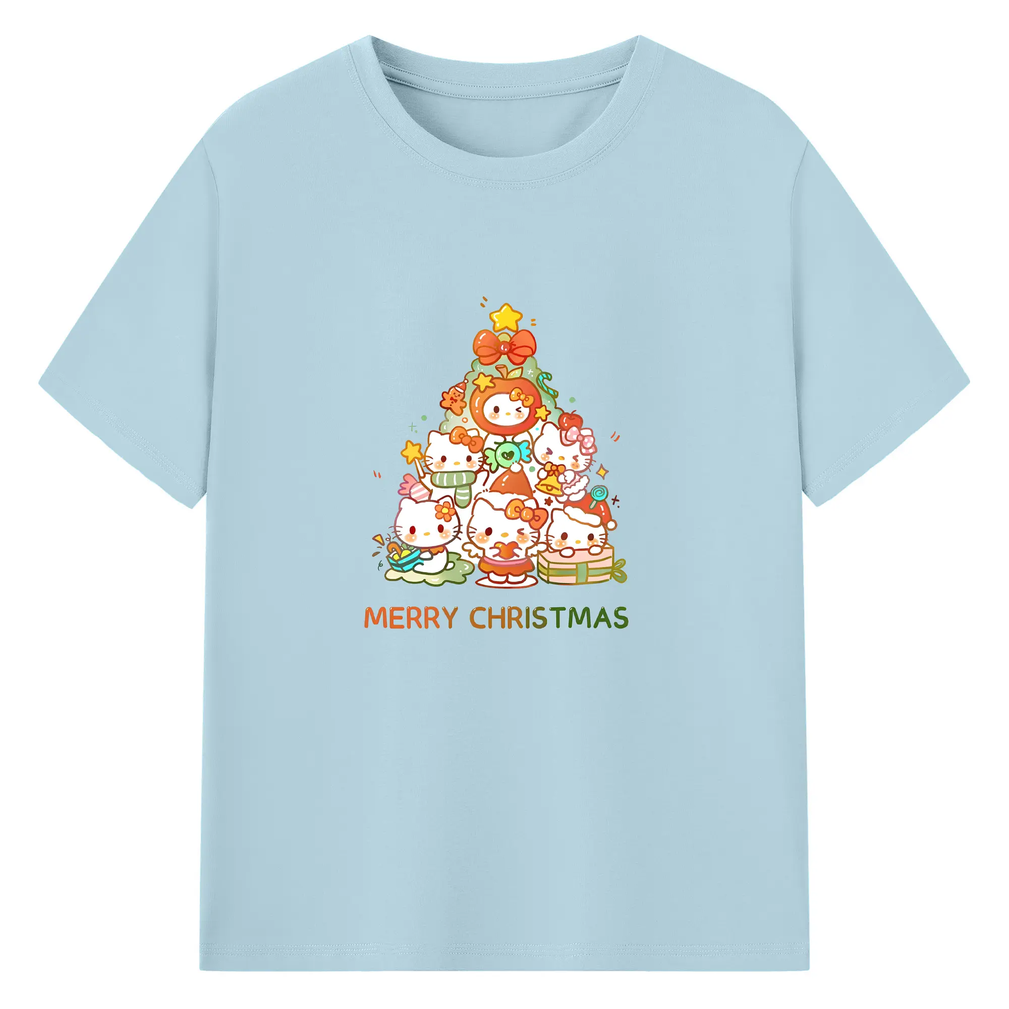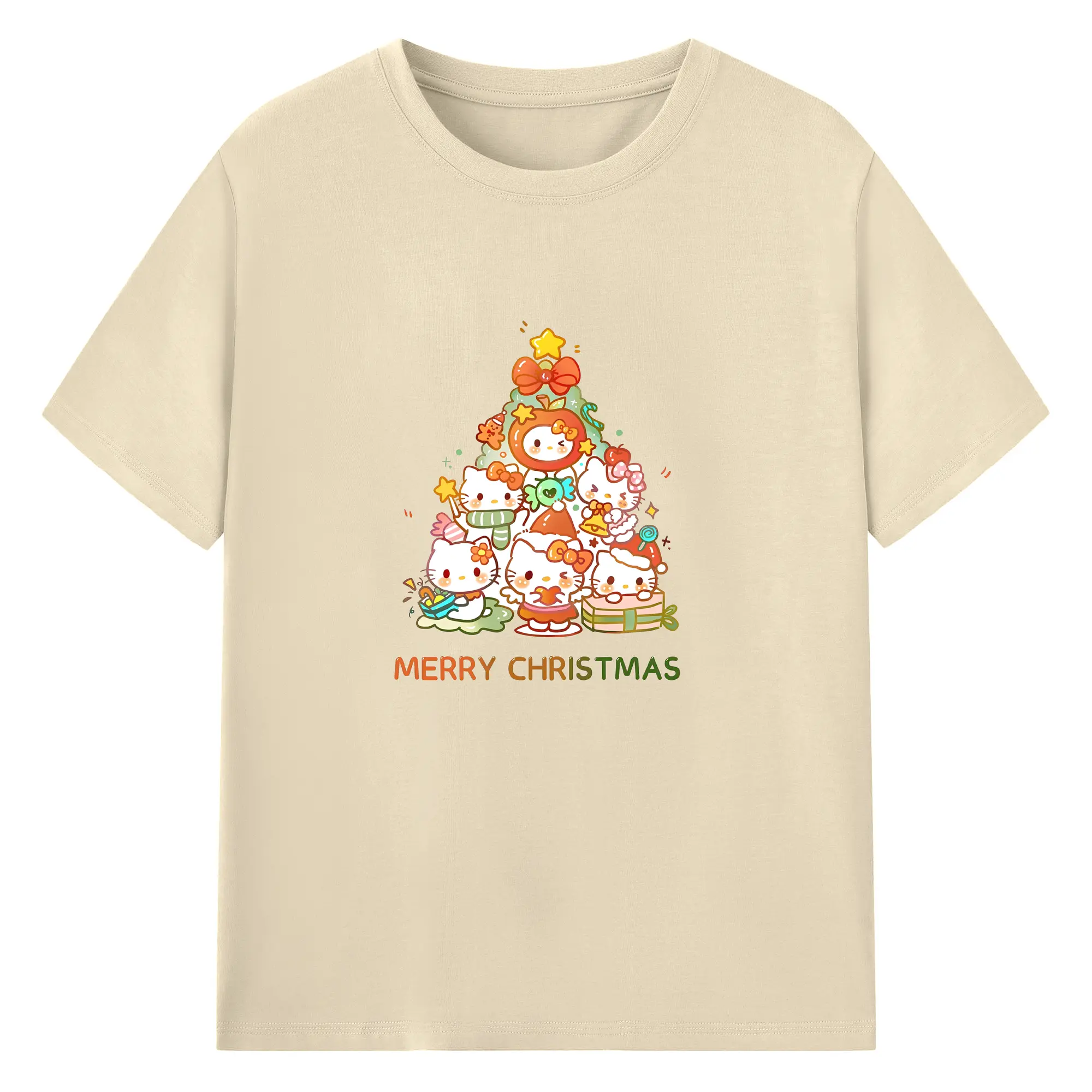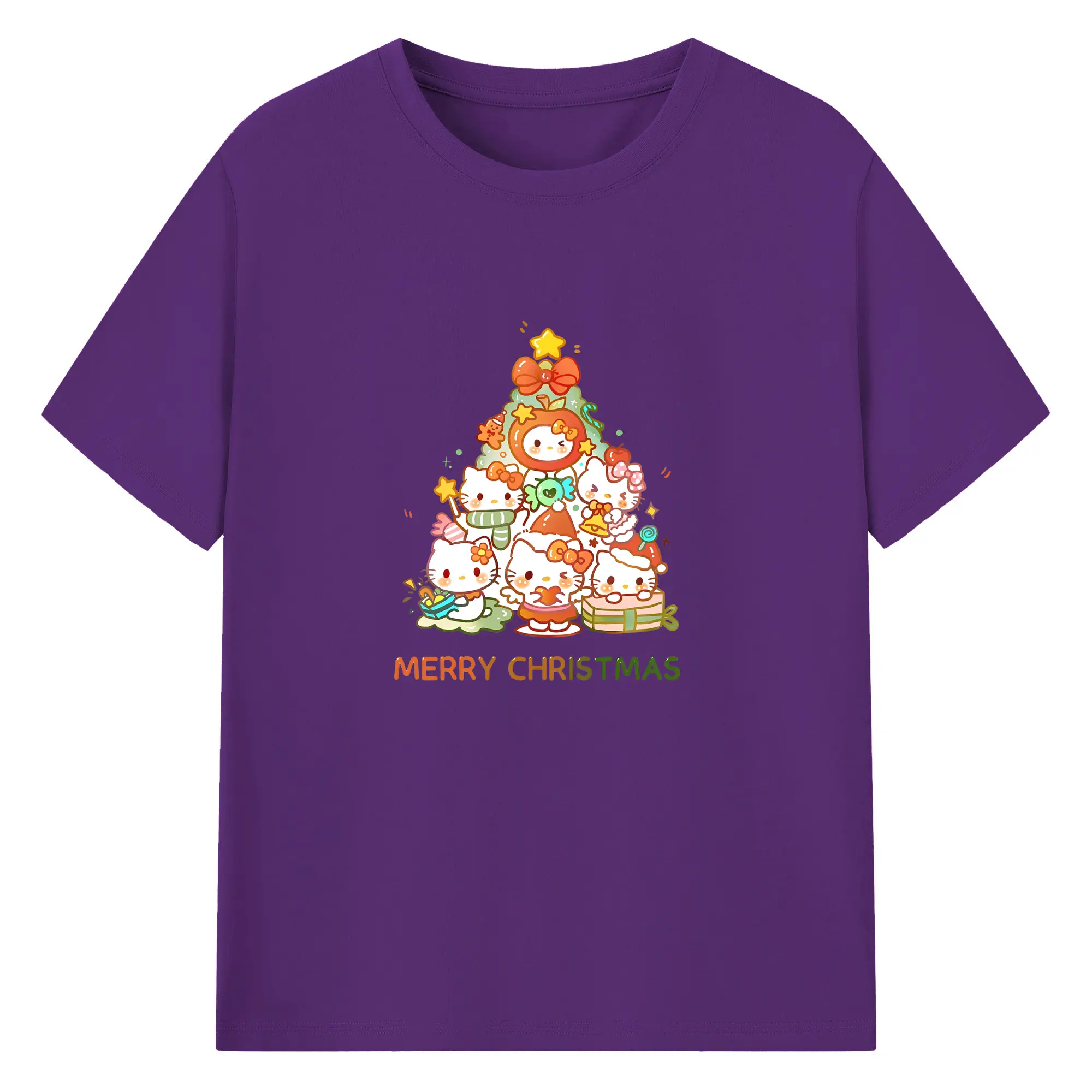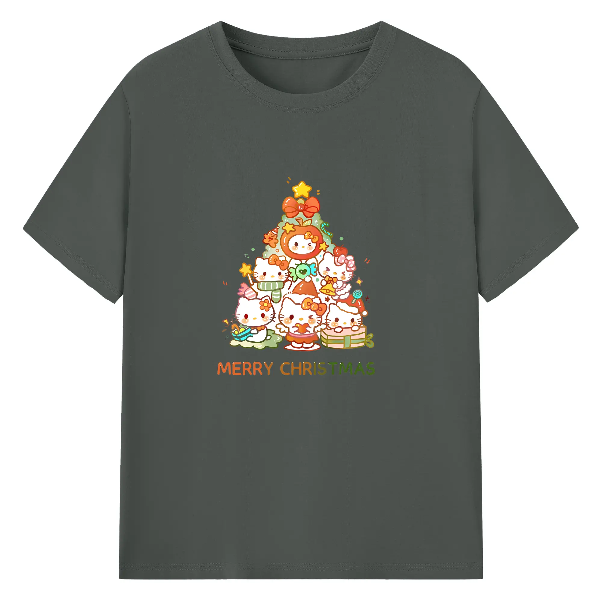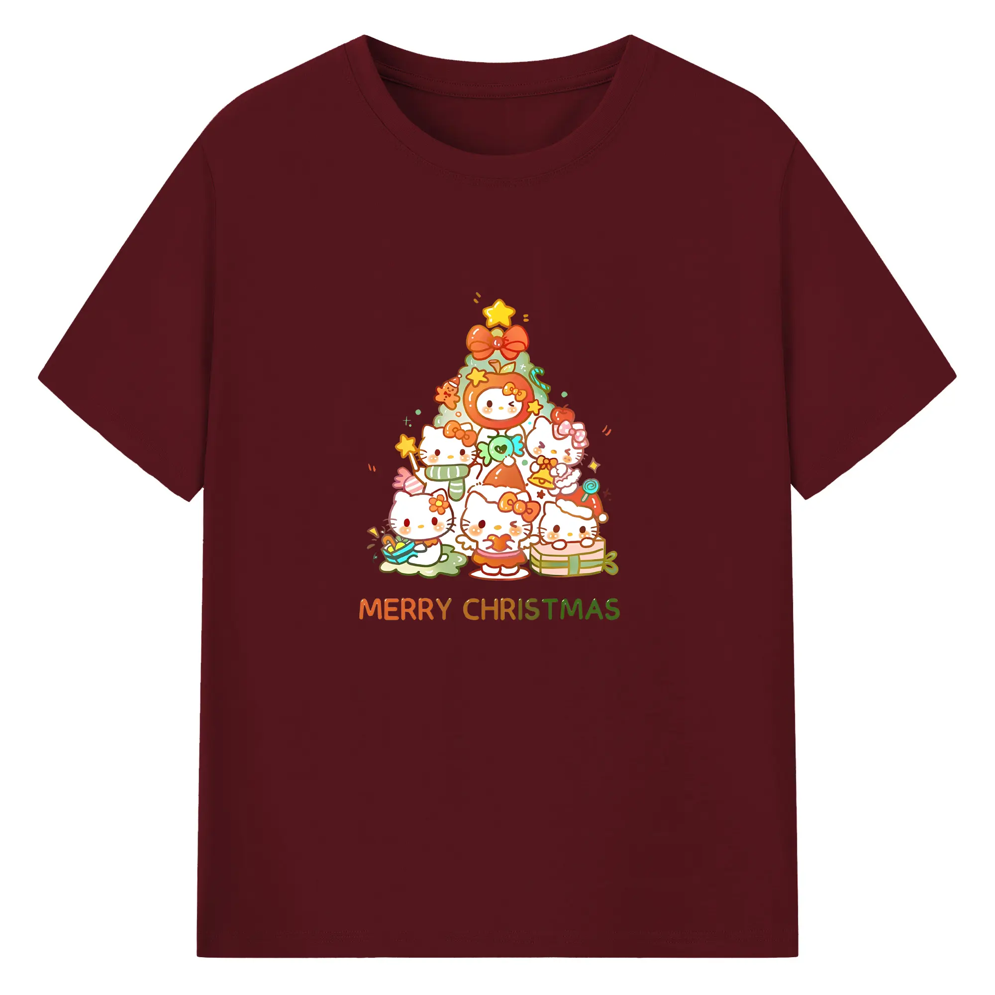 ハローキティ クリスマス2025✨ サンタ風×花輪デコレーション - 綿100% 半袖Tシャツ ・ フロントプリント ・ 快適 通気性 ・ 日常使い 散歩 スポーツ用