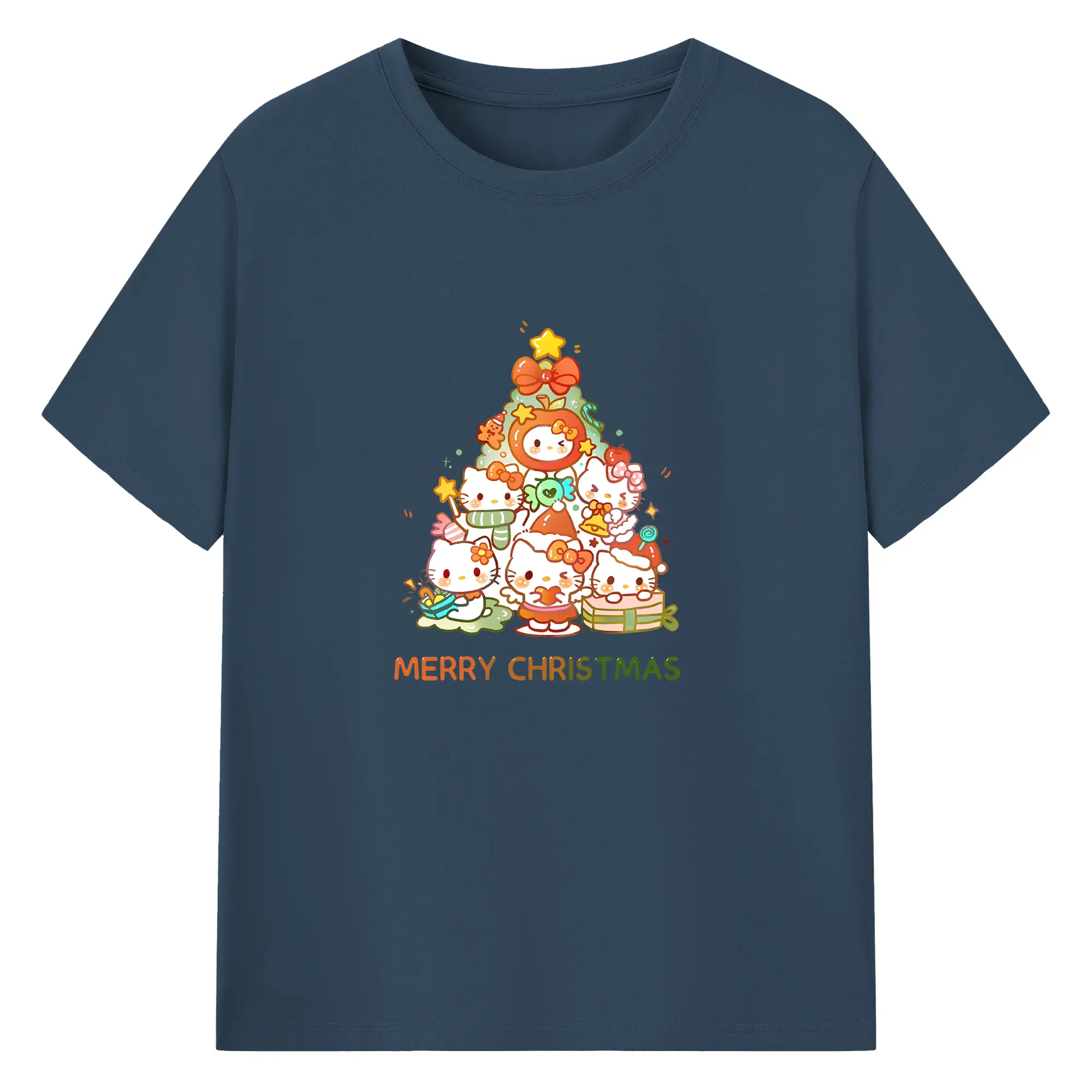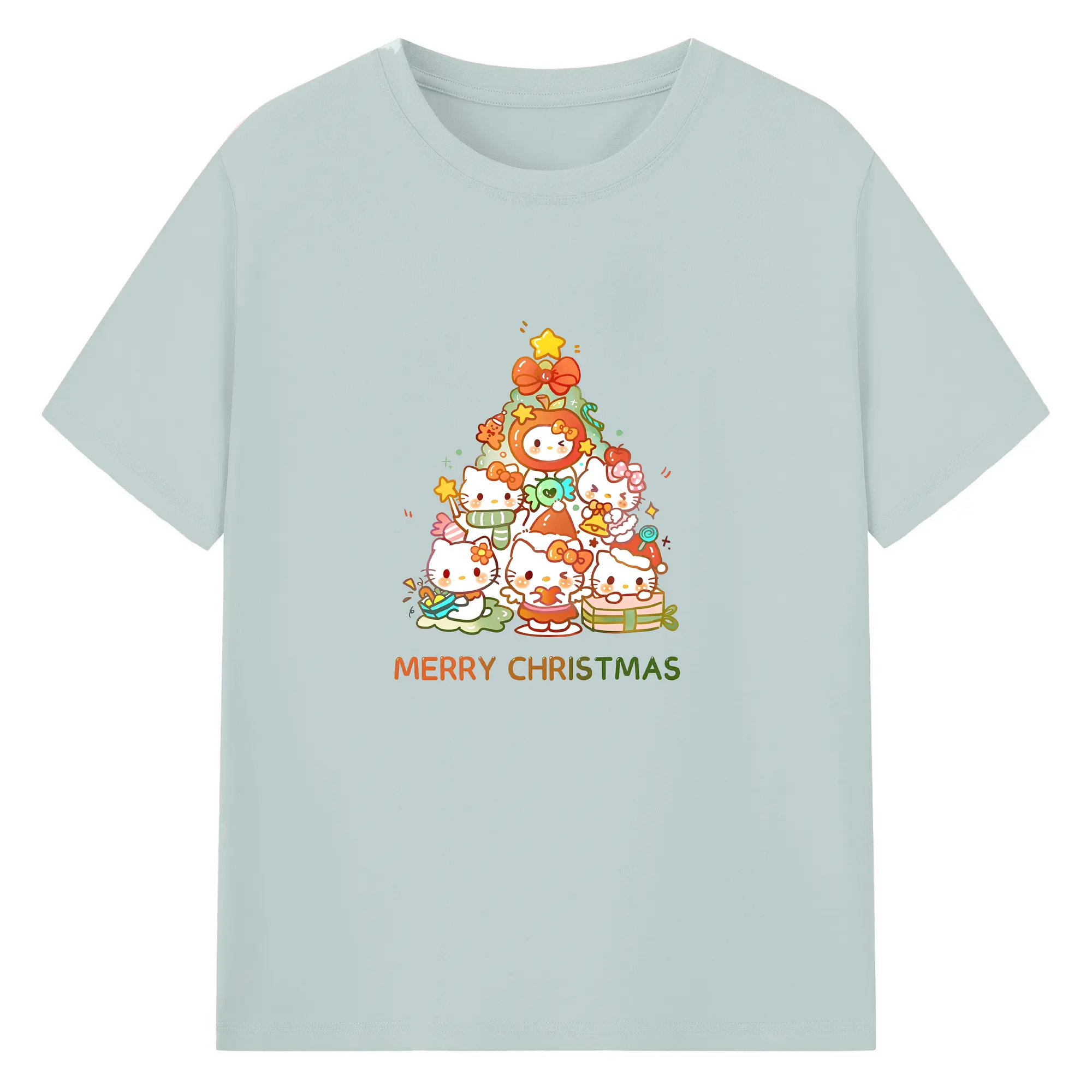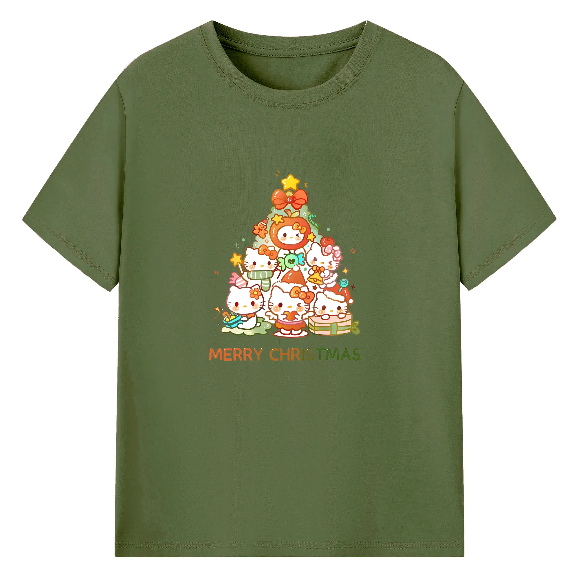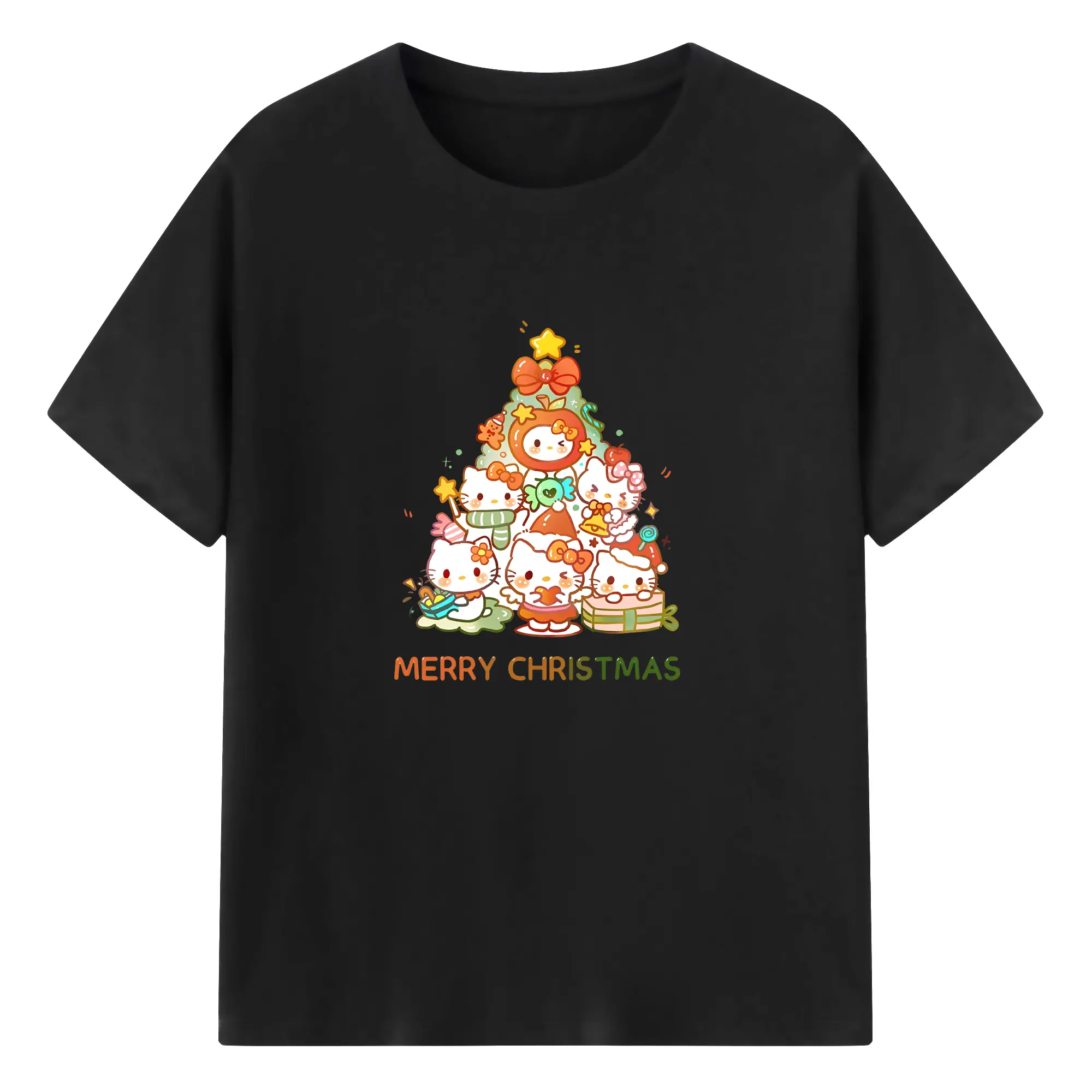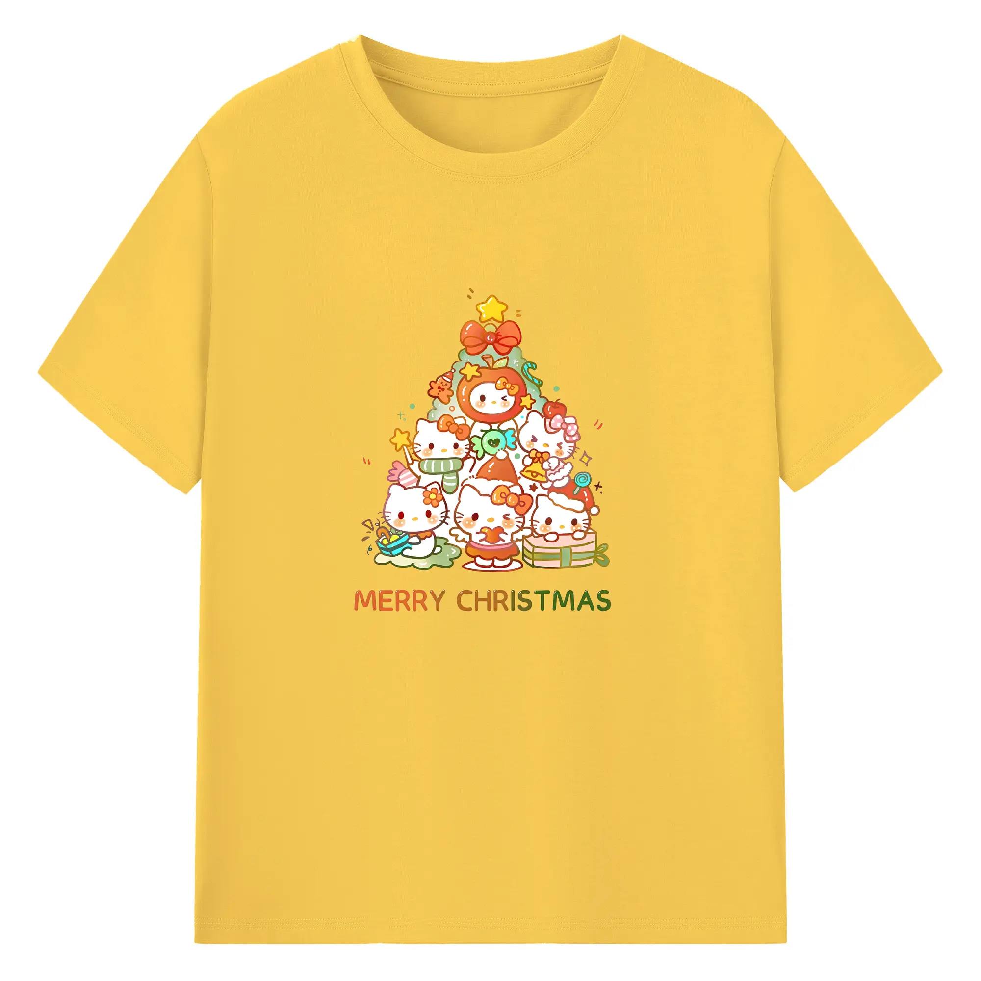 ハローキティ クリスマス2025✨ サンタ風×花輪デコレーション - 綿100% 半袖Tシャツ ・ フロントプリント ・ 快適 通気性 ・ 日常使い 散歩 スポーツ用