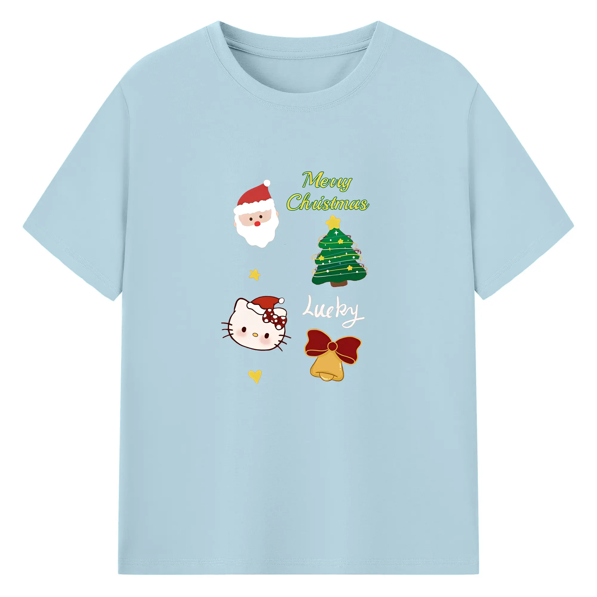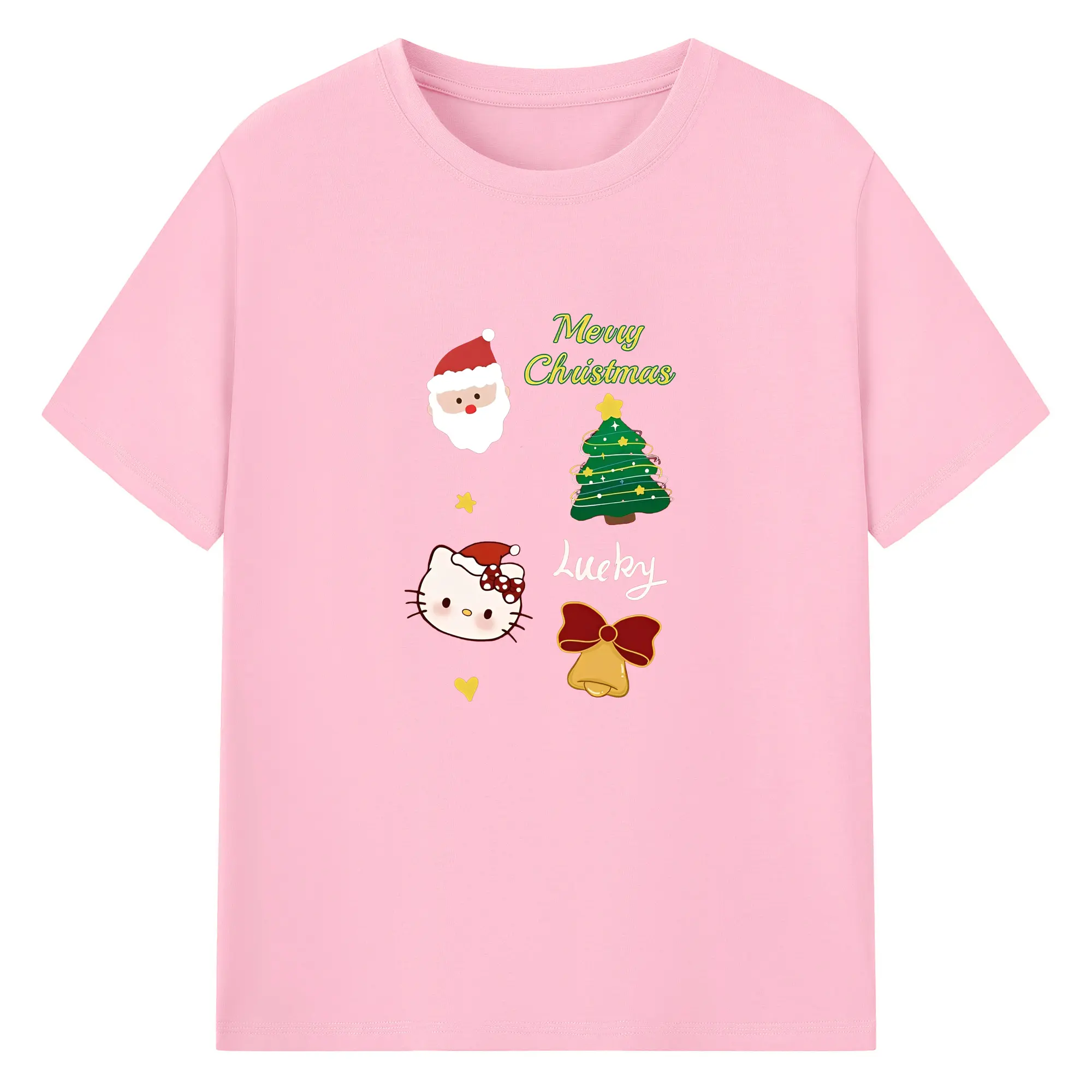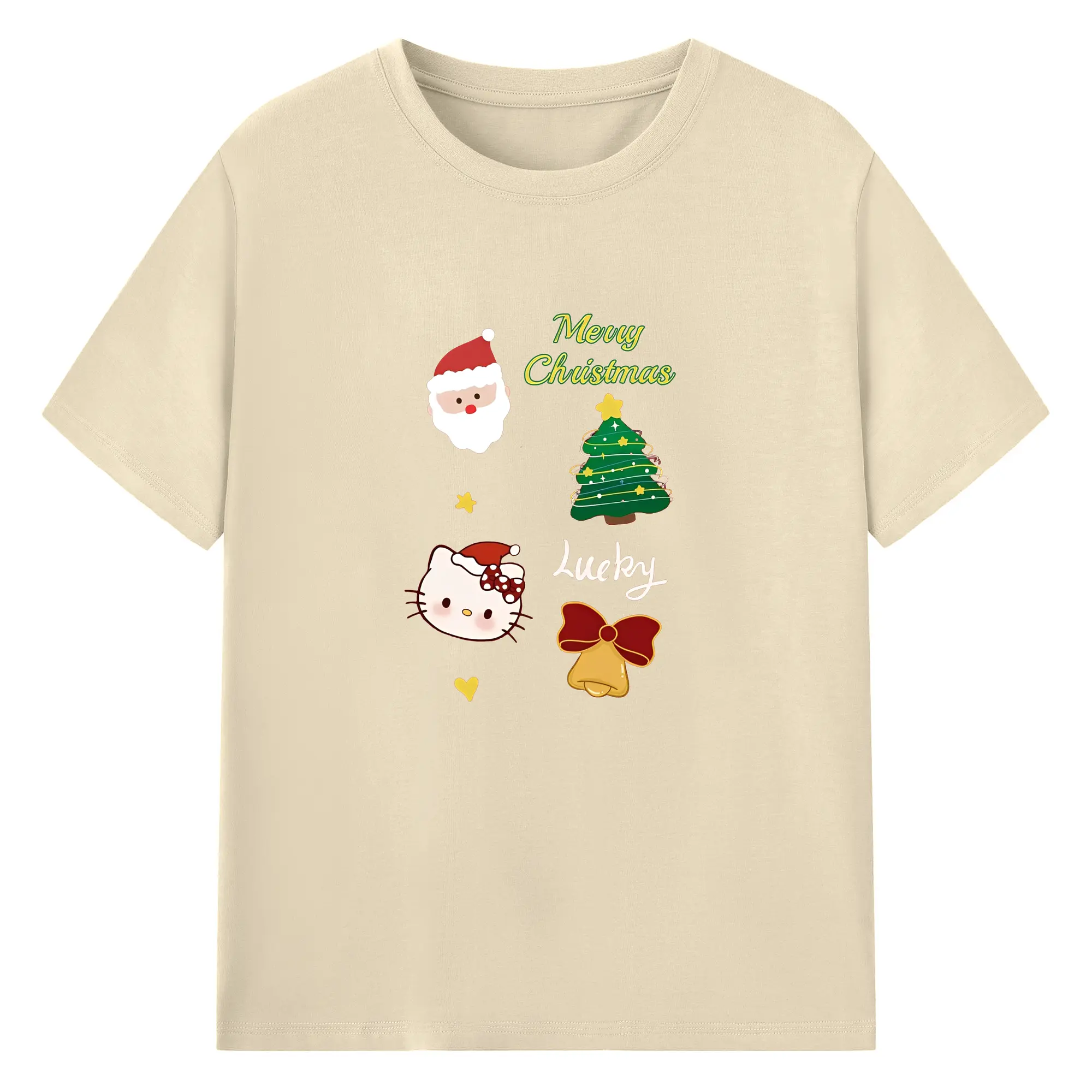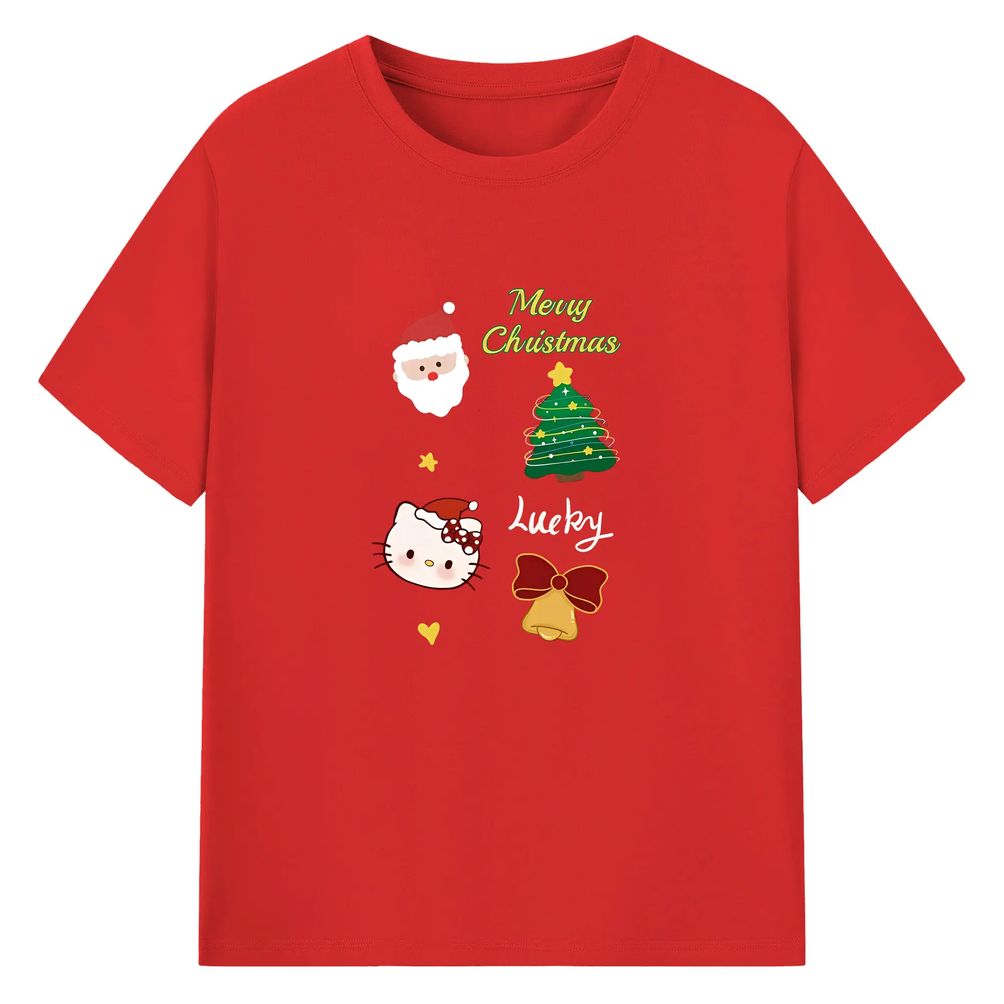 ハローキティ&シナモロール クリスマス限定🎄 サンタ×ツリーの可愛い新作デザイン - 綿100% 半袖Tシャツ ・ フロントプリント ・ 快適 通気性 ・ 日常使い 散歩 スポーツ用
