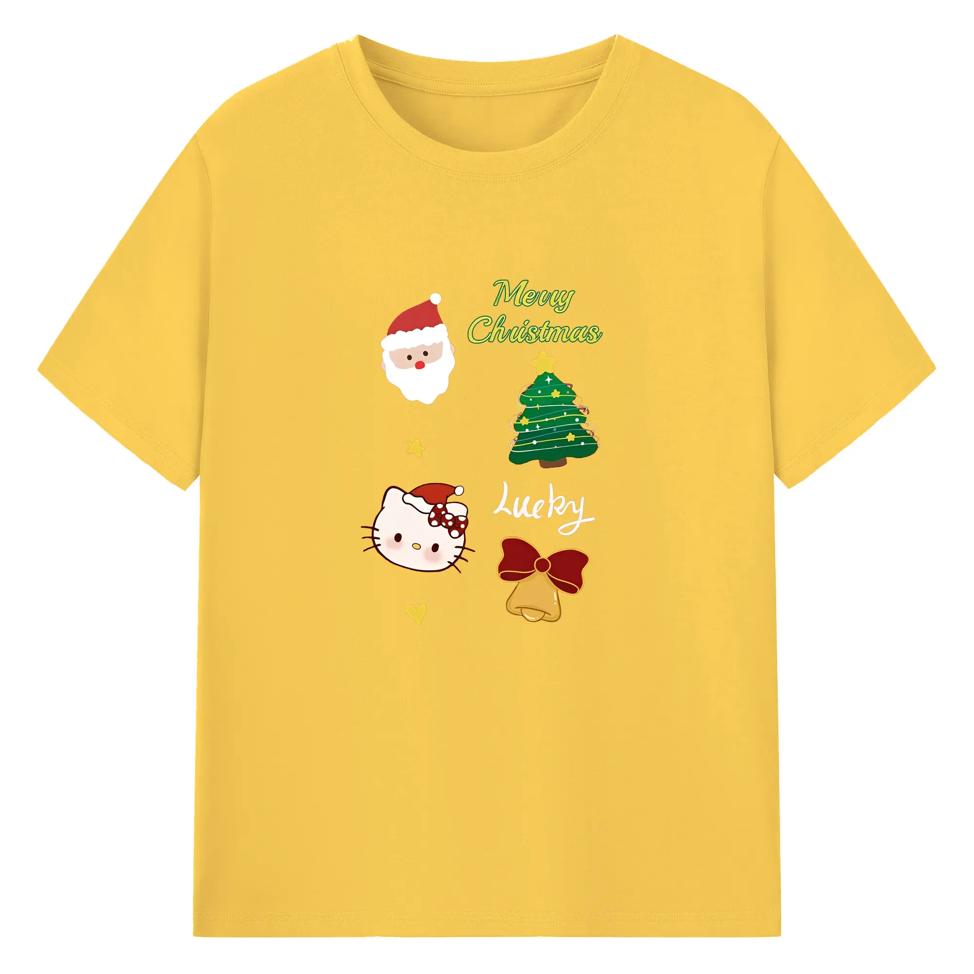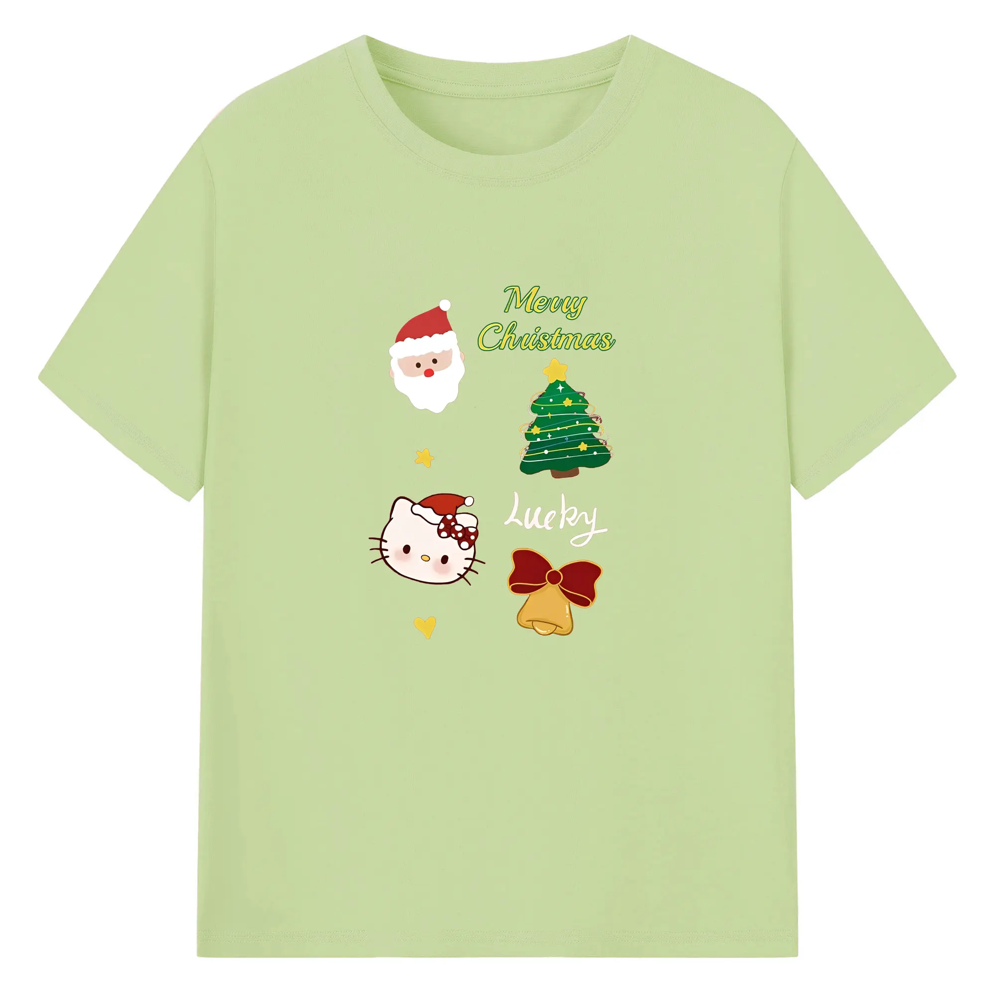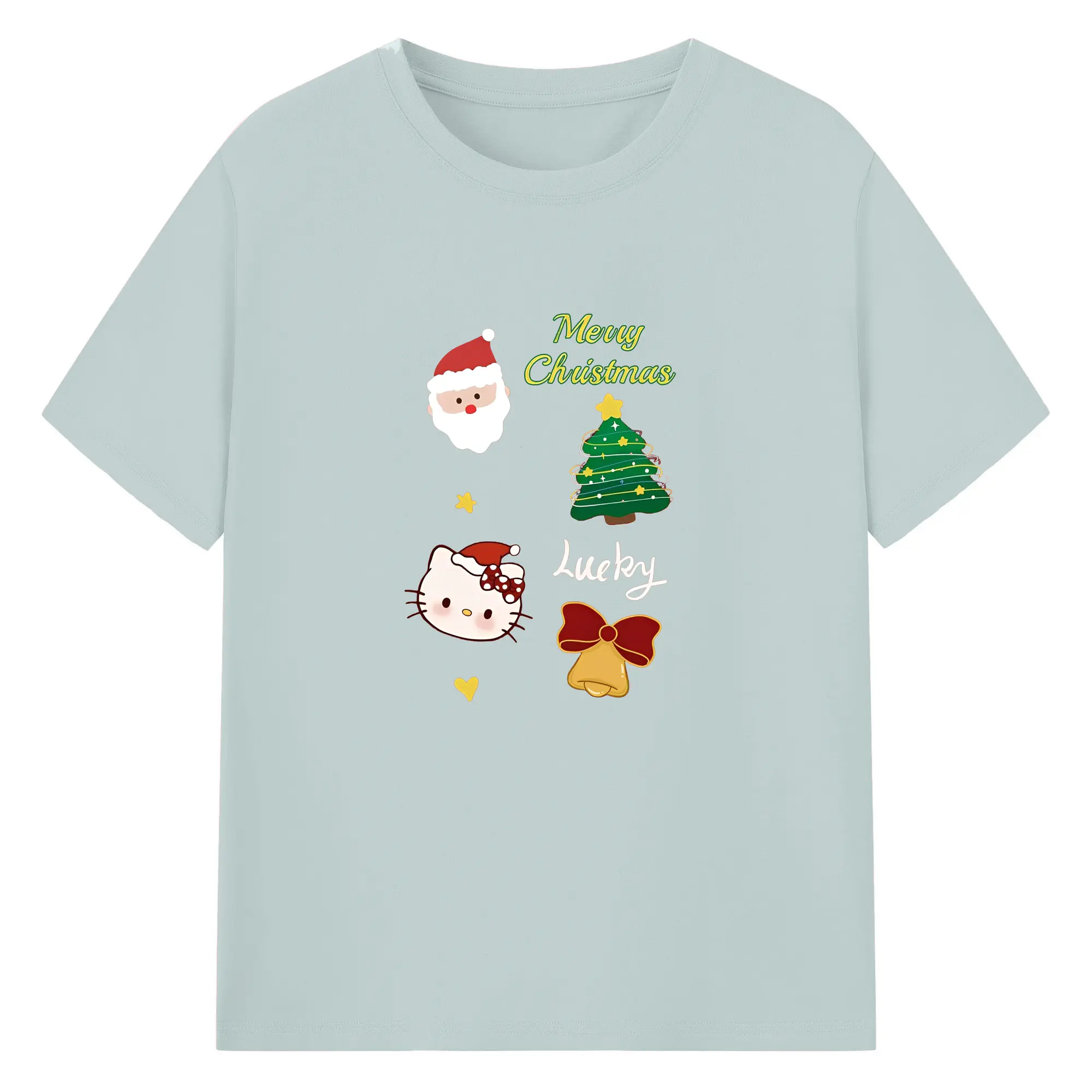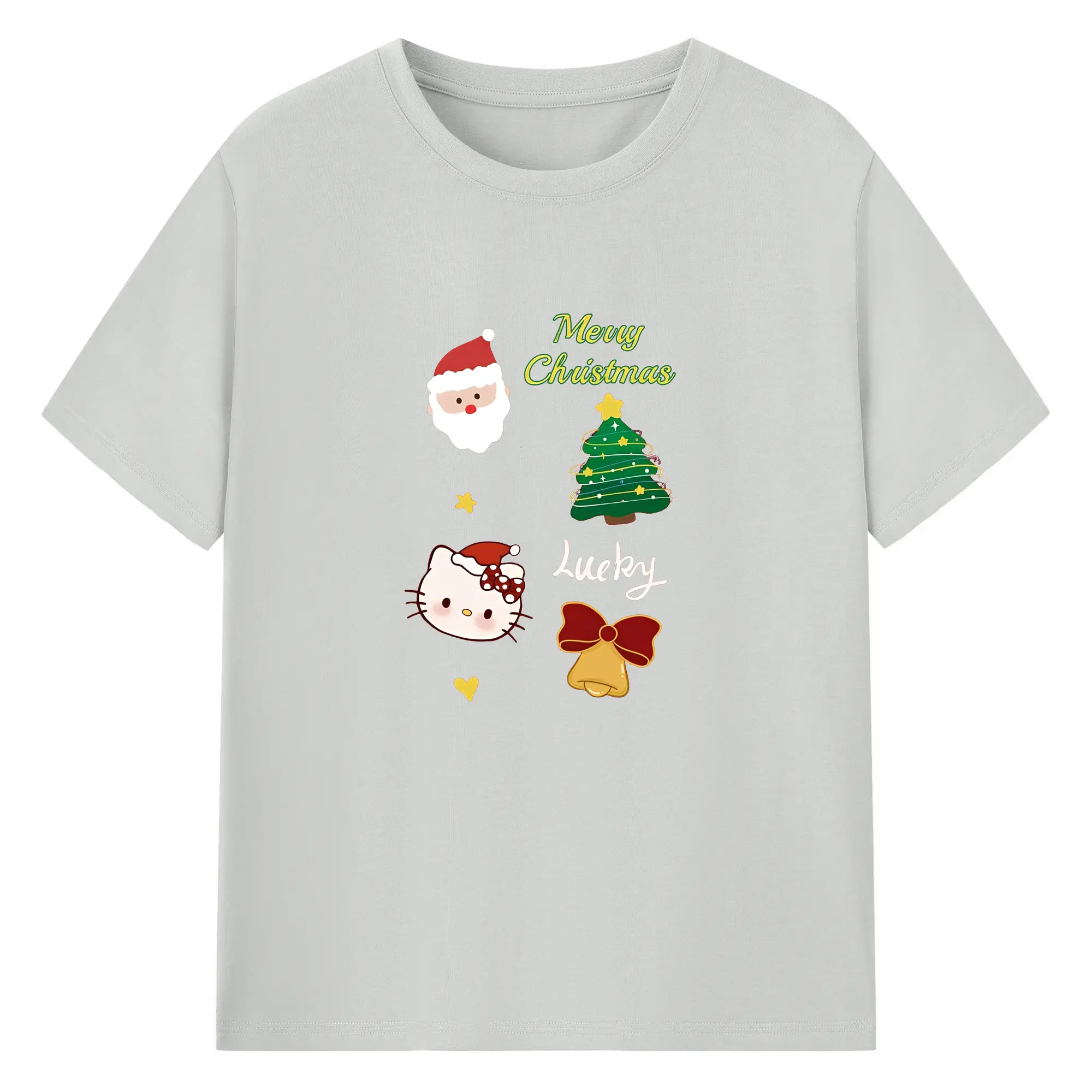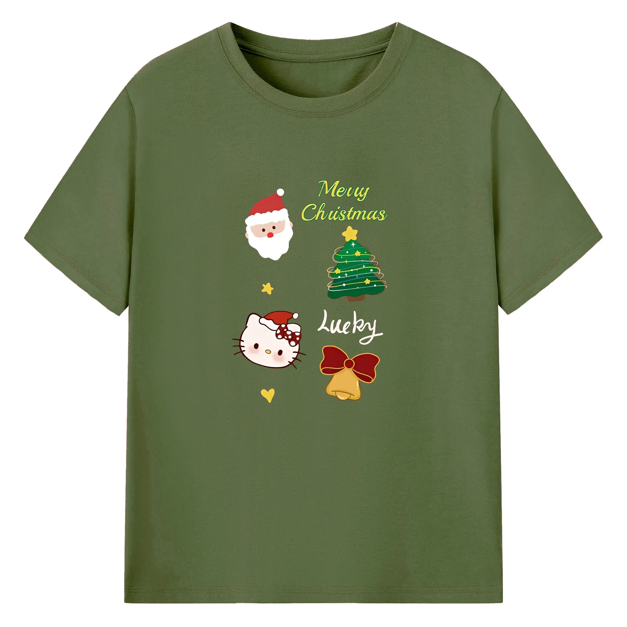ハローキティ&シナモロール クリスマス限定🎄 サンタ×ツリーの可愛い新作デザイン - 綿100% 半袖Tシャツ ・ フロントプリント ・ 快適 通気性 ・ 日常使い 散歩 スポーツ用