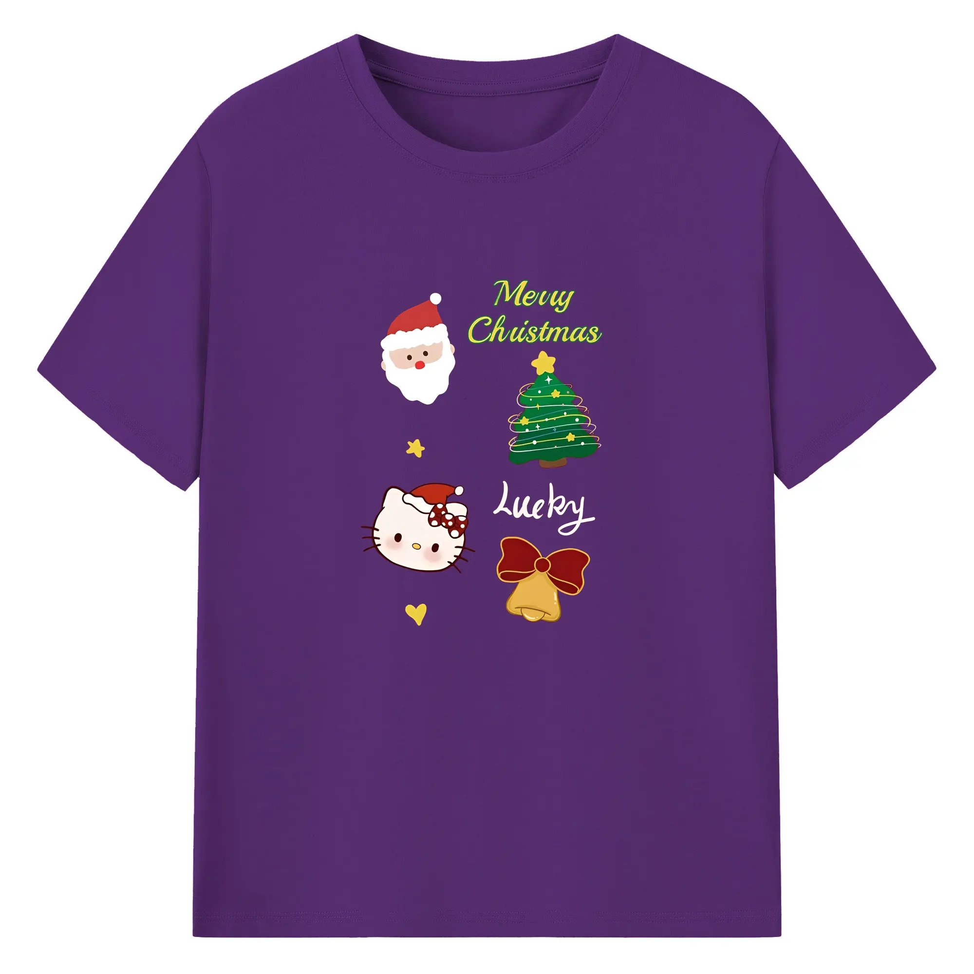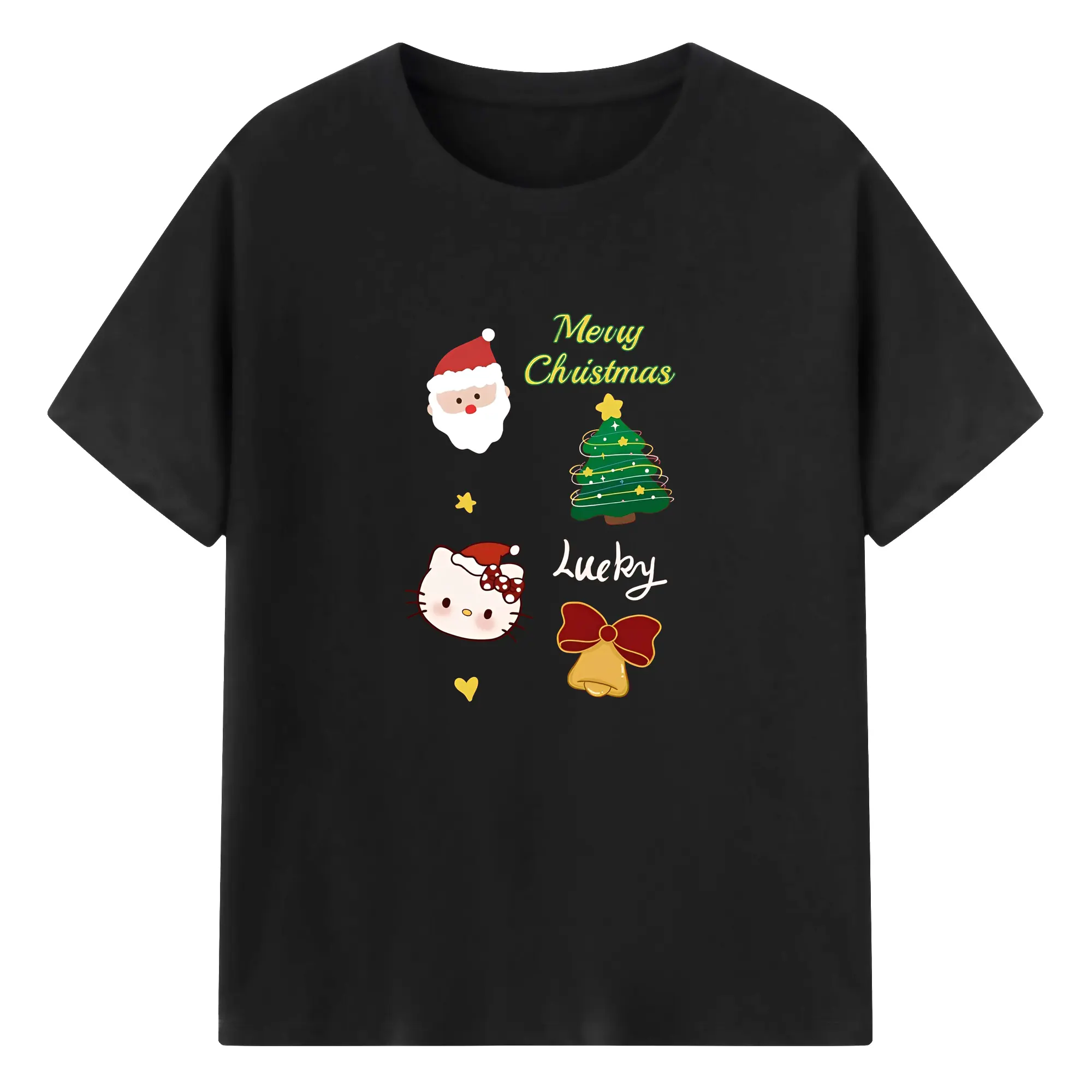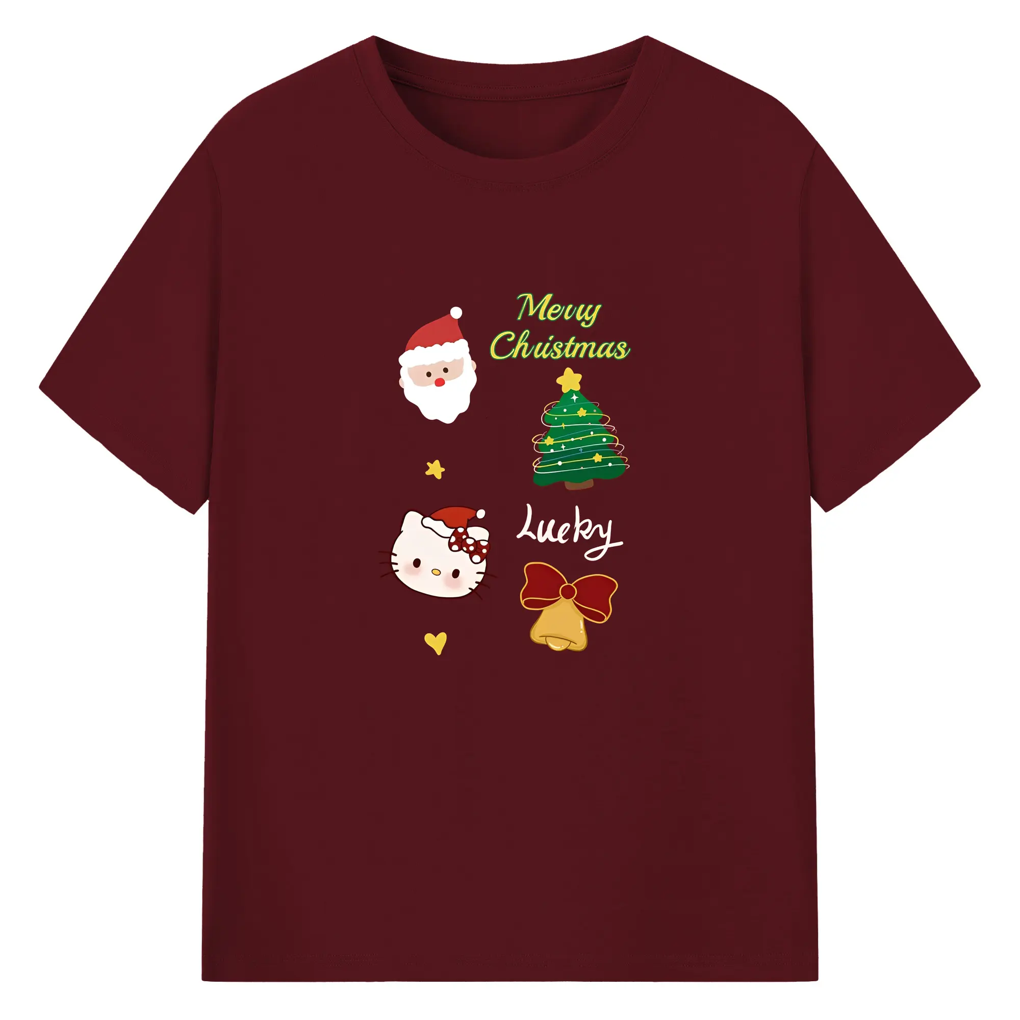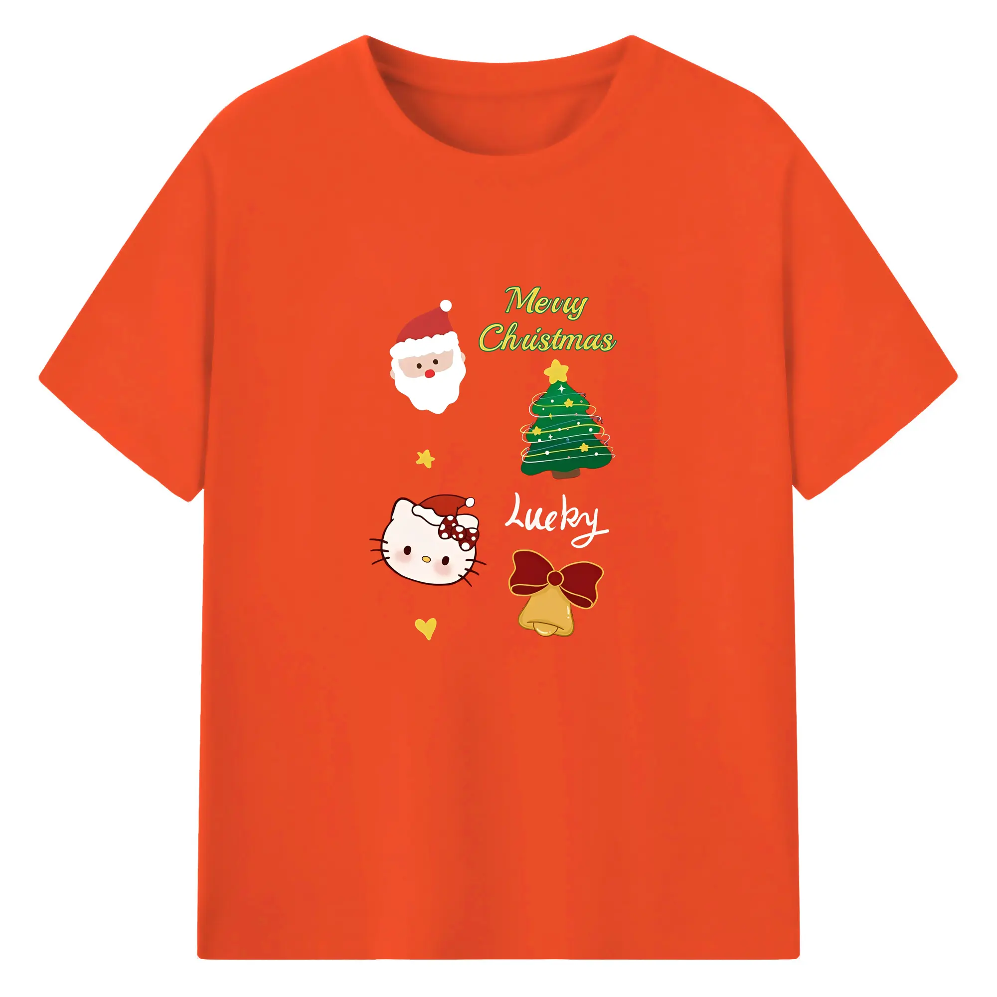 ハローキティ&シナモロール クリスマス限定🎄 サンタ×ツリーの可愛い新作デザイン - 綿100% 半袖Tシャツ ・ フロントプリント ・ 快適 通気性 ・ 日常使い 散歩 スポーツ用