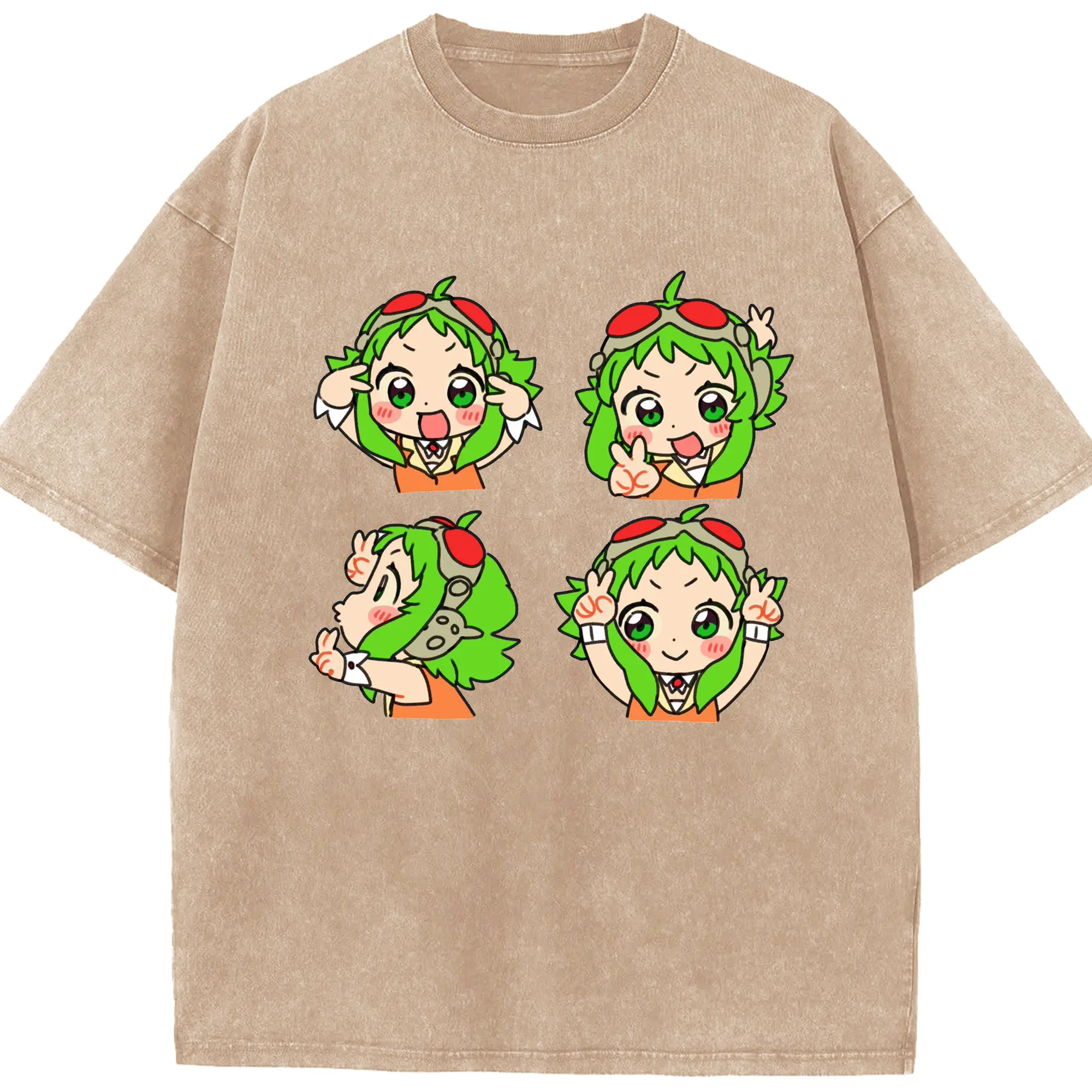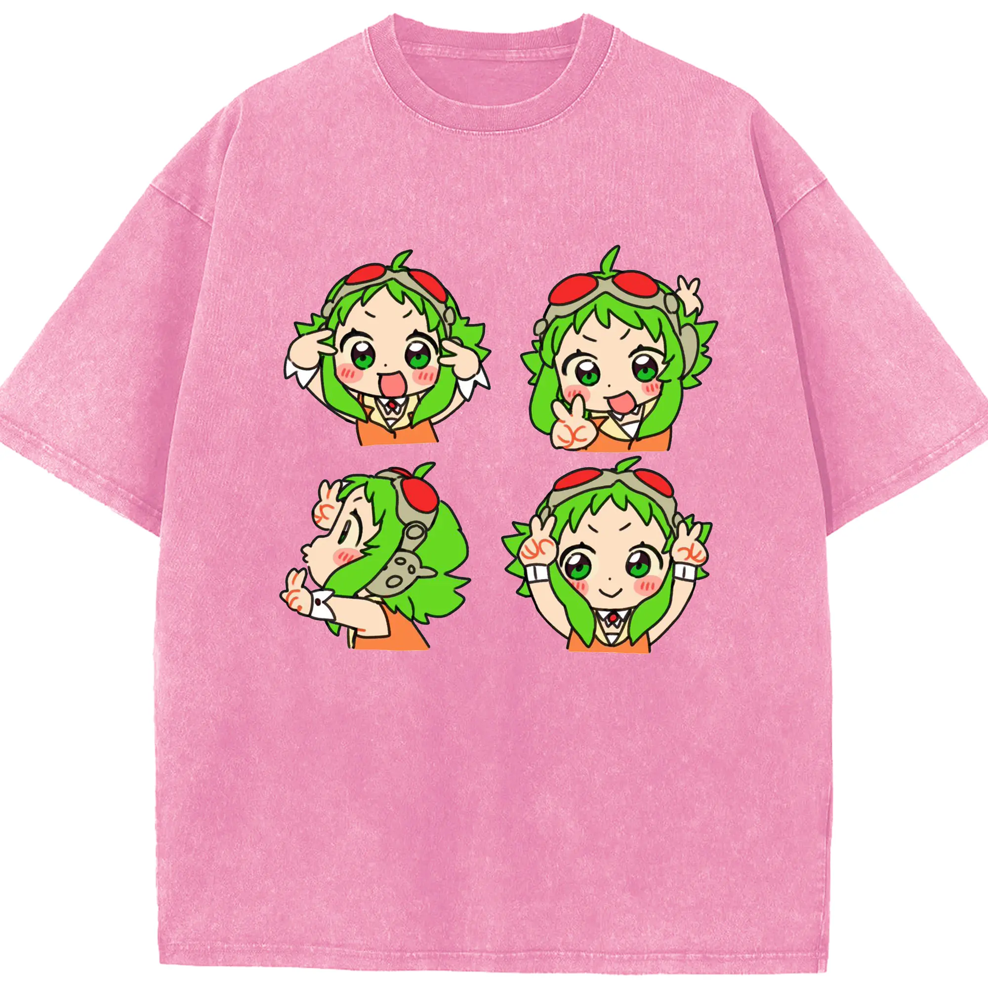 パッチワーク風バーチャル歌手GUMIファン専用 - 綿100% 半袖Tシャツ ・ フロントプリント ・ 快適 通気性 ・ 日常使い 散歩 スポーツ用