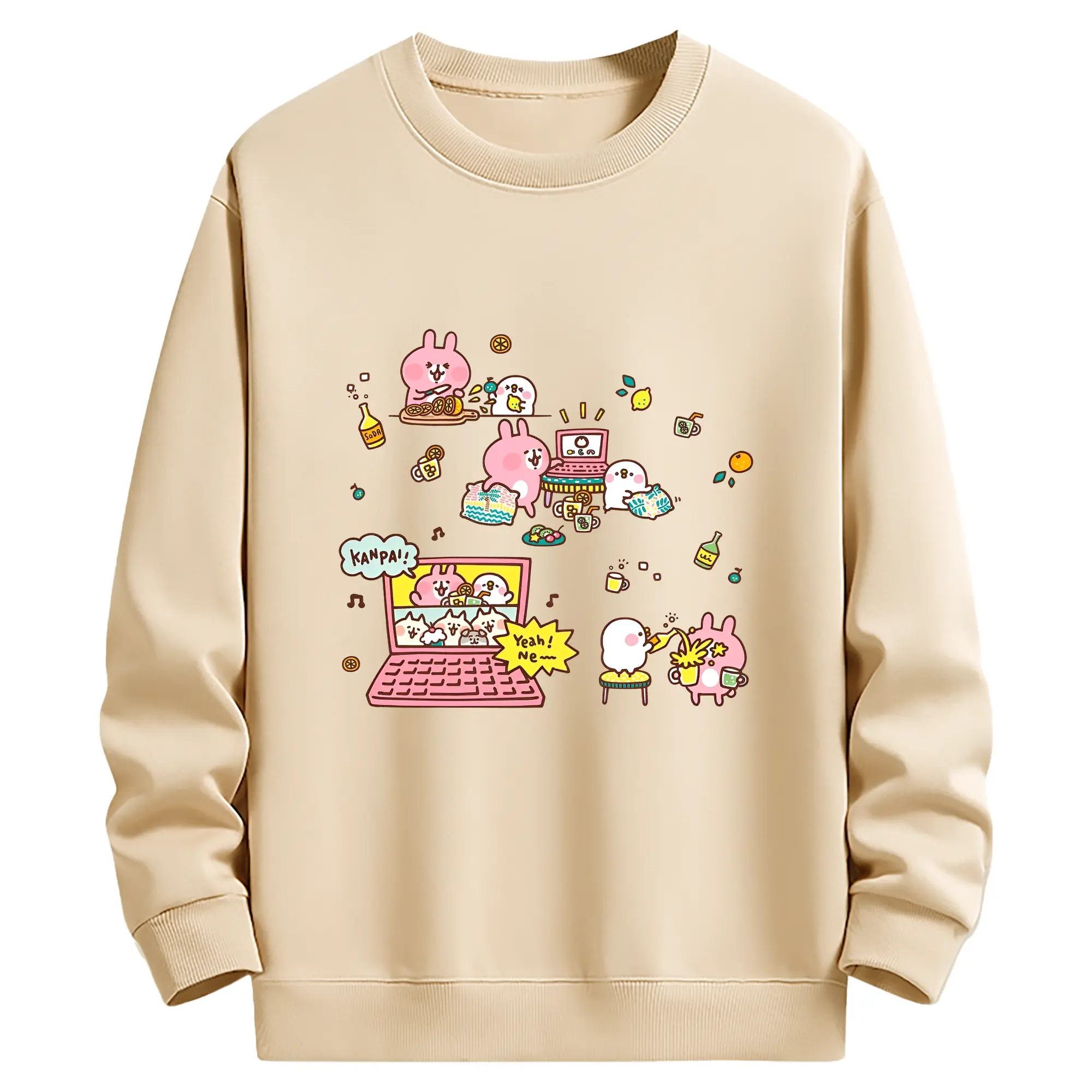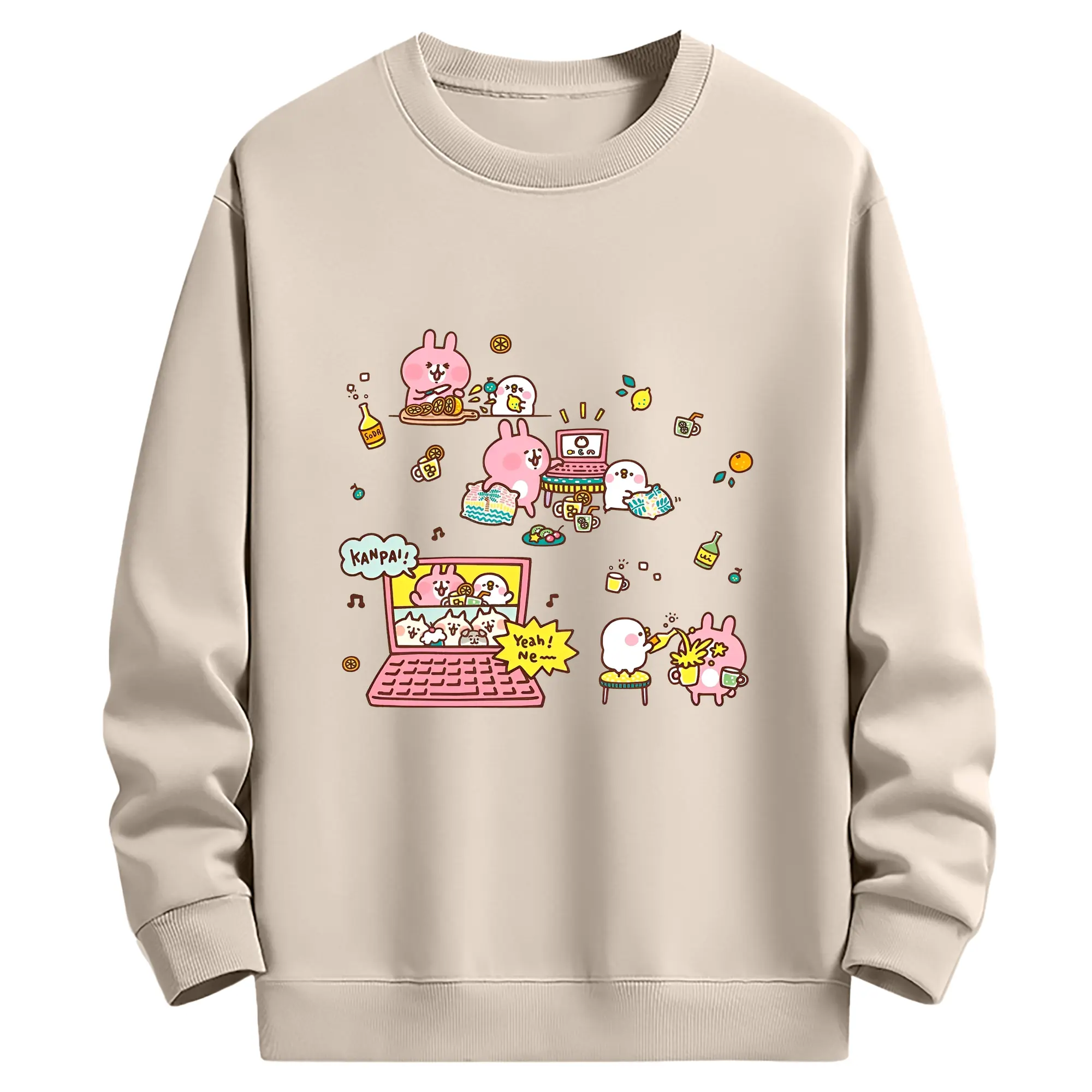ピスケ&うさぎカナヘイの小動物 - 高品質 クルーネック スウェット ・ コットン59% ポリエステル41% ・ ユニセックス 長袖 トレーナー ・ カジュアル デイリー スポーツ 散歩用