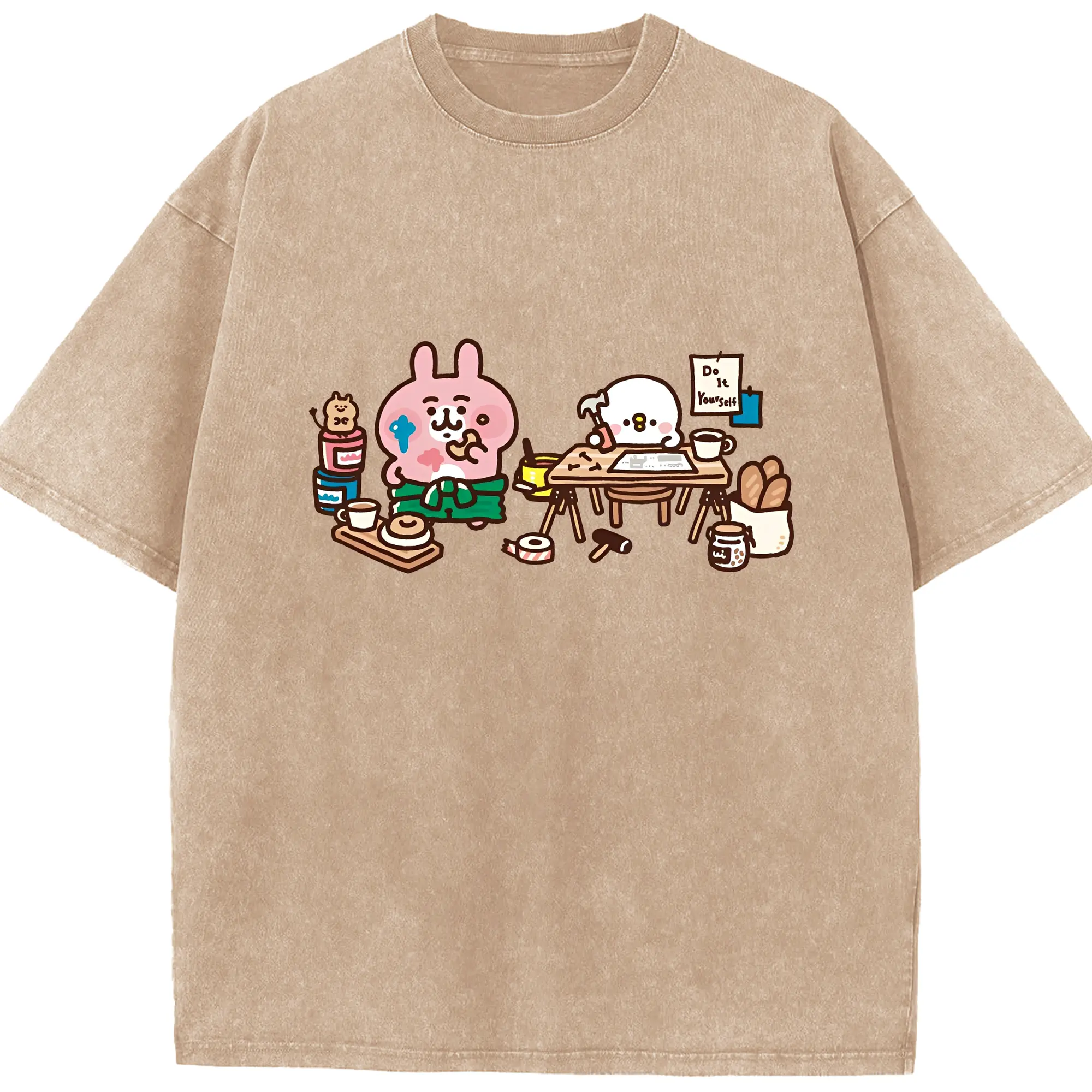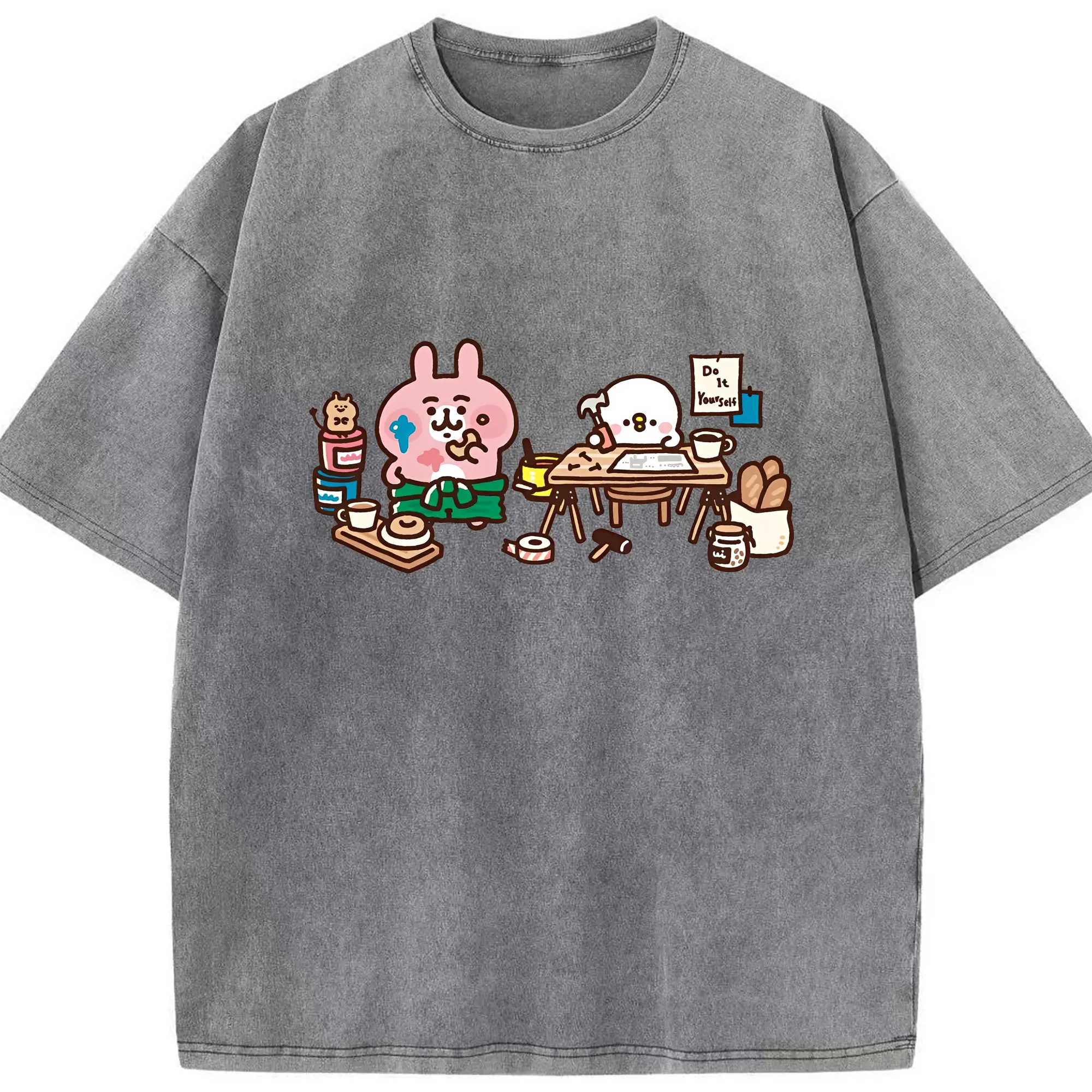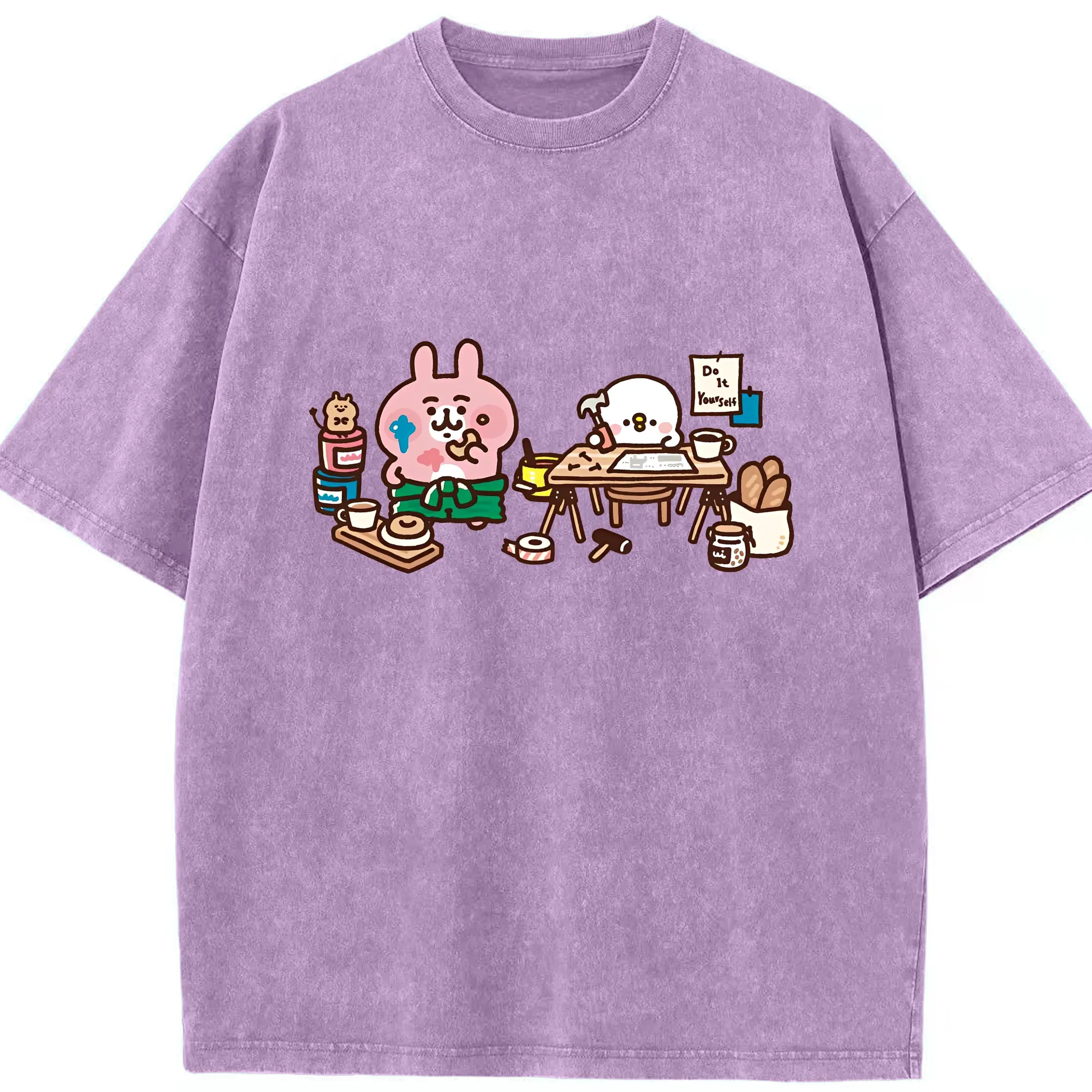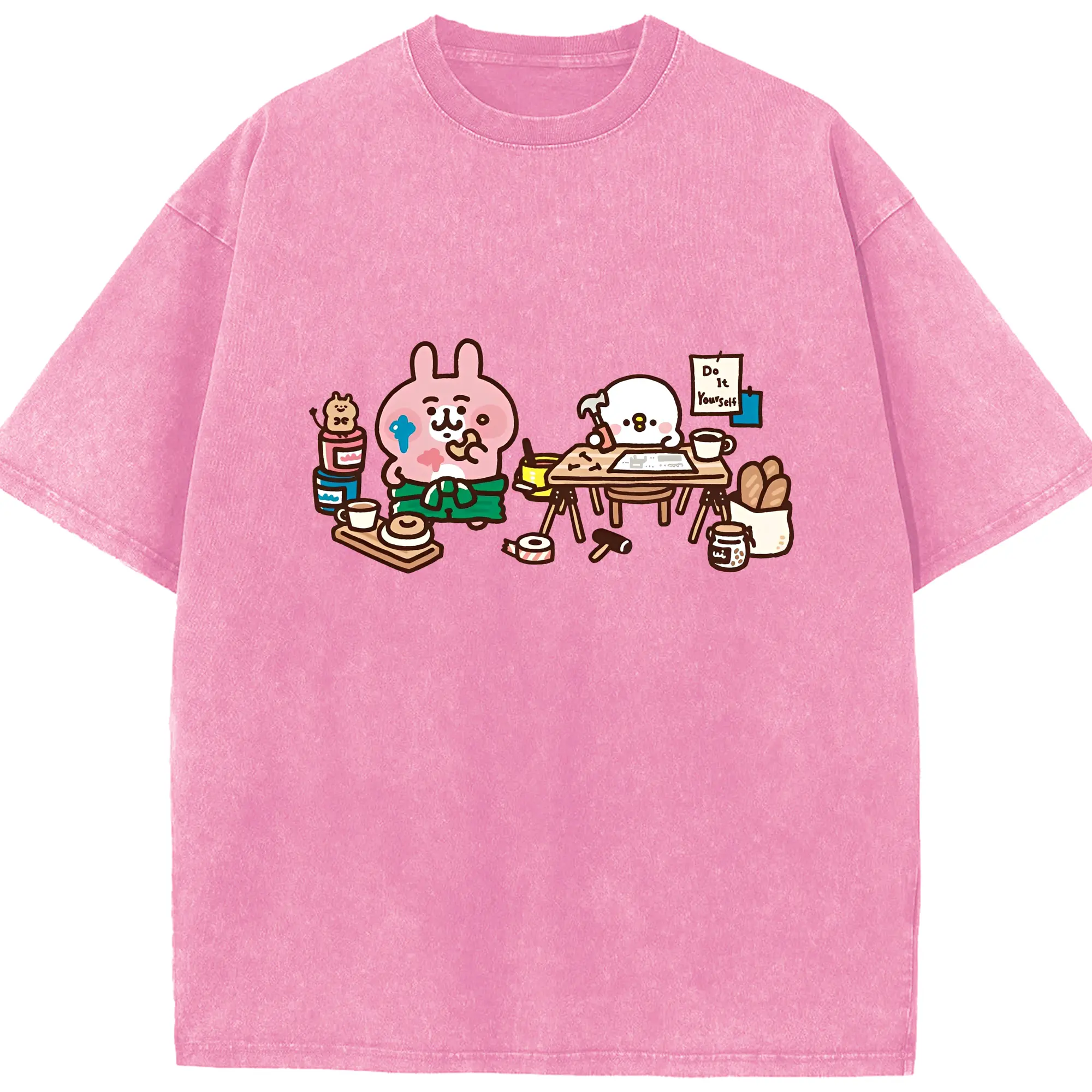 ピスケ&うさぎカナヘイの小動物 - 綿100% 半袖Tシャツ ・ フロントプリント ・ 快適 通気性 ・ 日常使い 散歩 スポーツ用