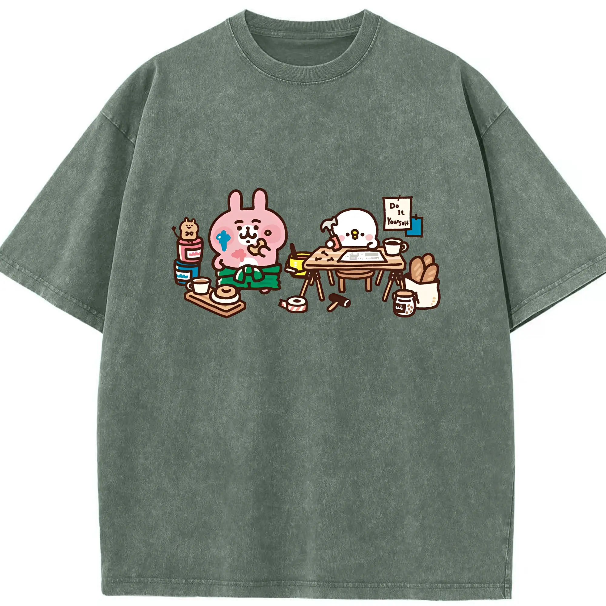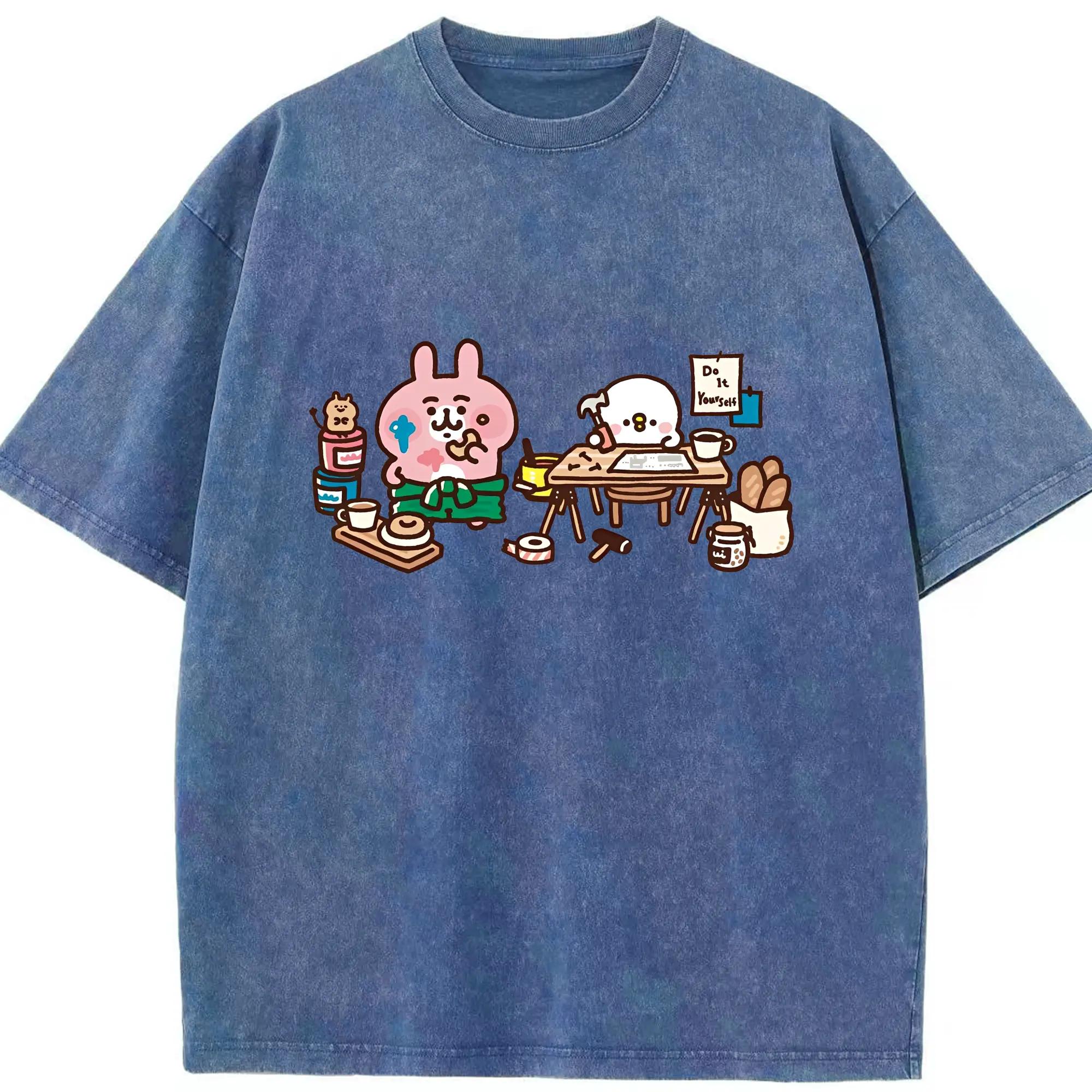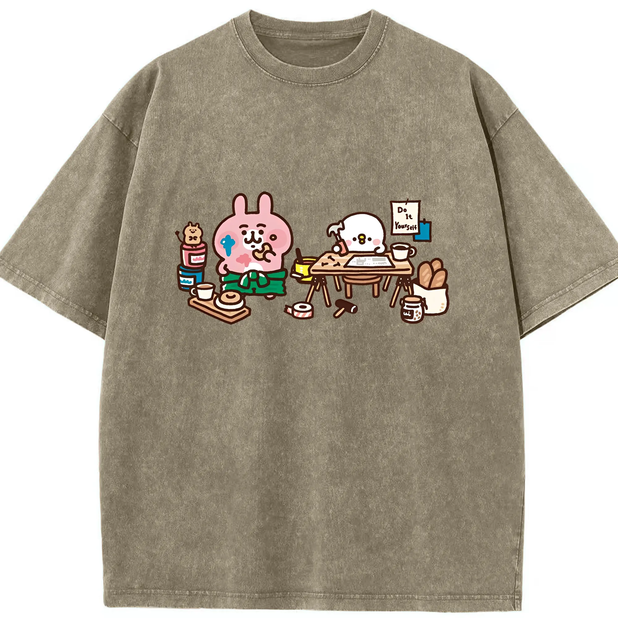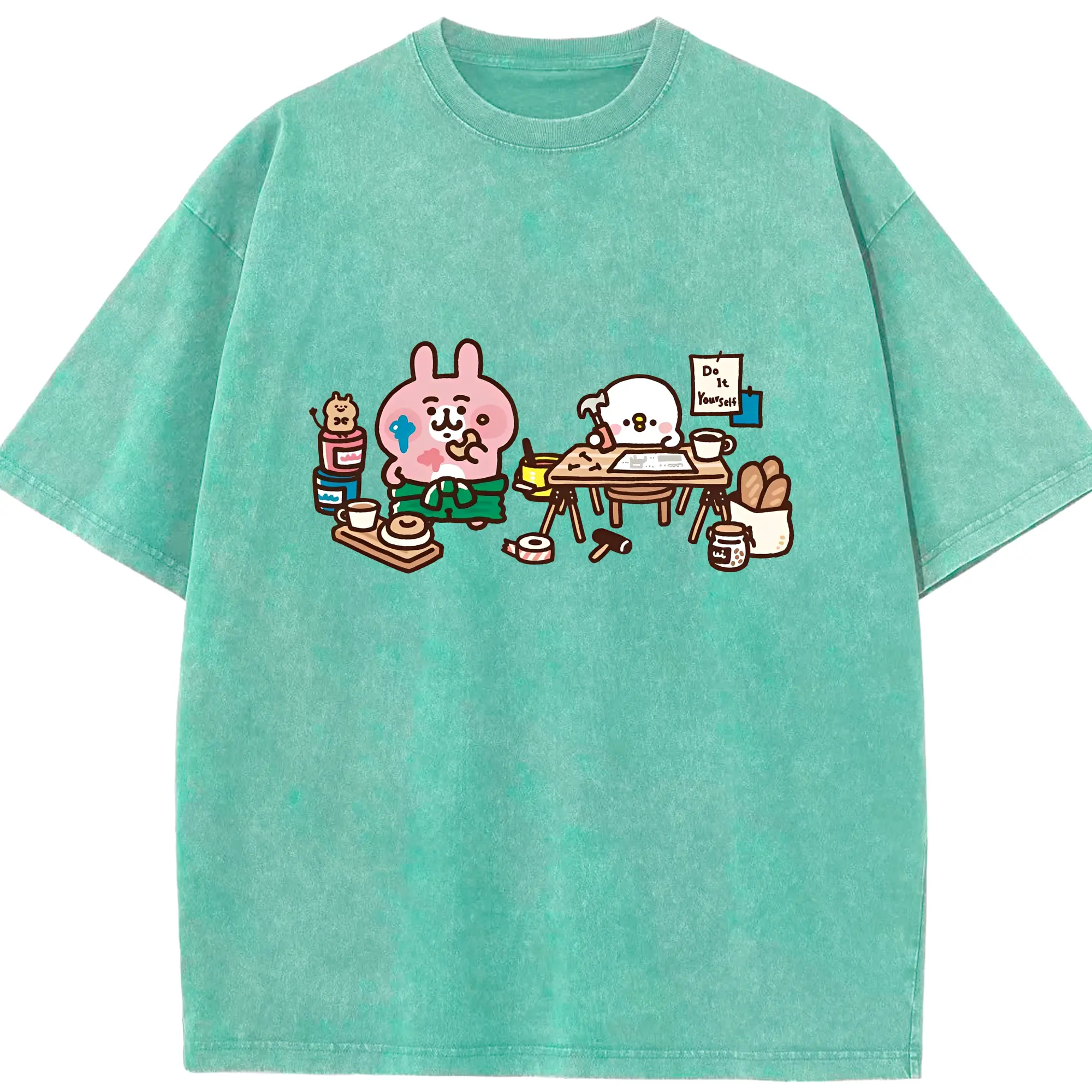 ピスケ&うさぎカナヘイの小動物 - 綿100% 半袖Tシャツ ・ フロントプリント ・ 快適 通気性 ・ 日常使い 散歩 スポーツ用