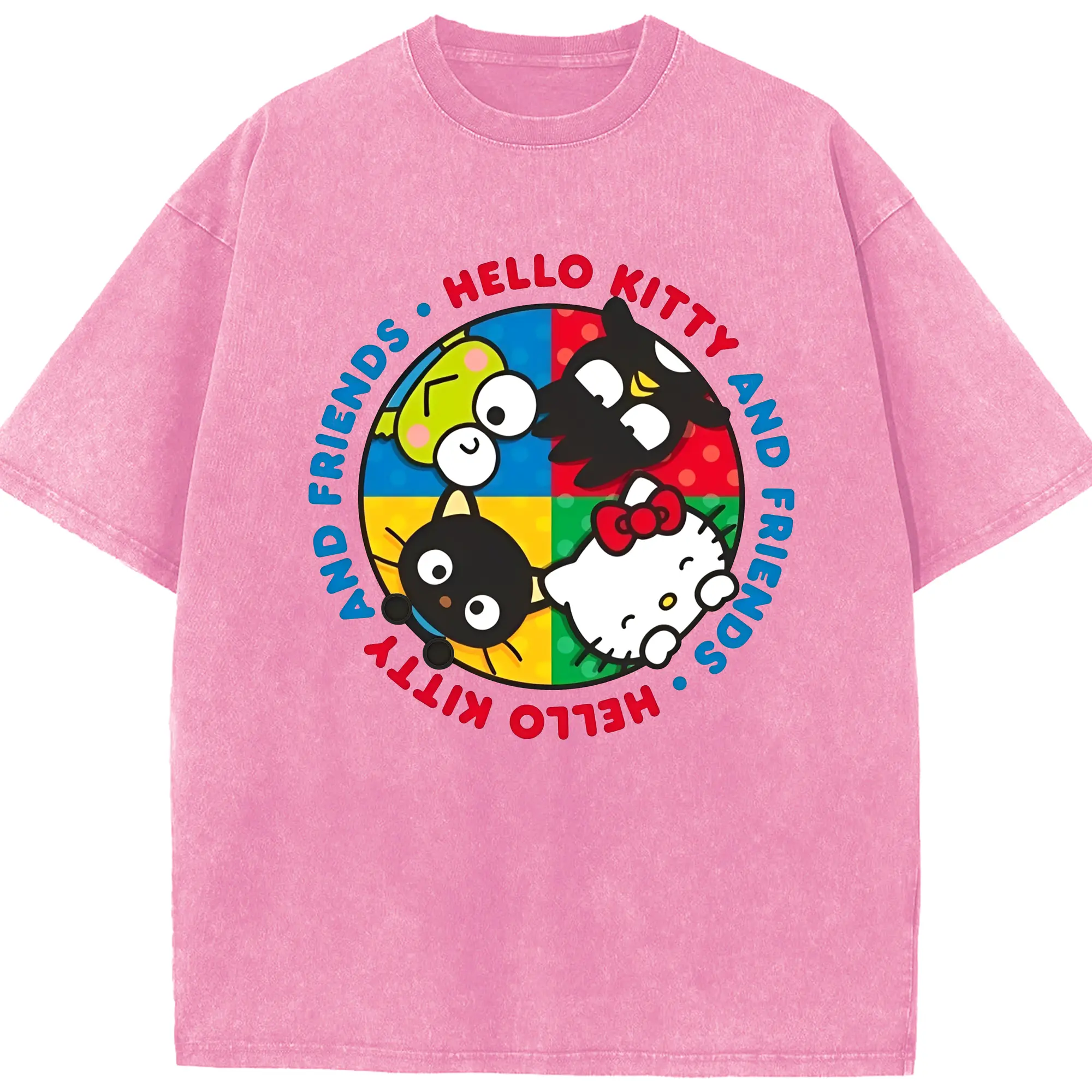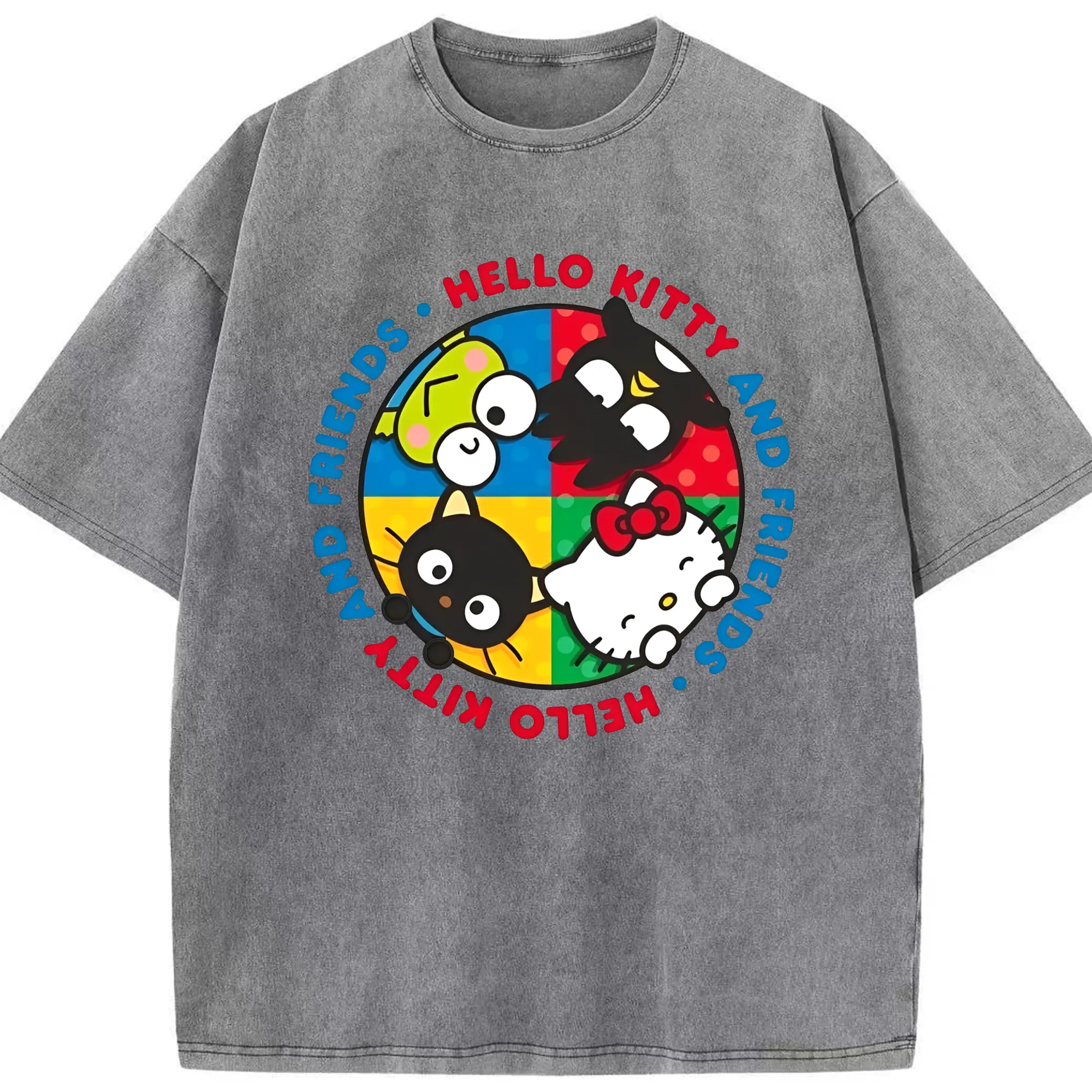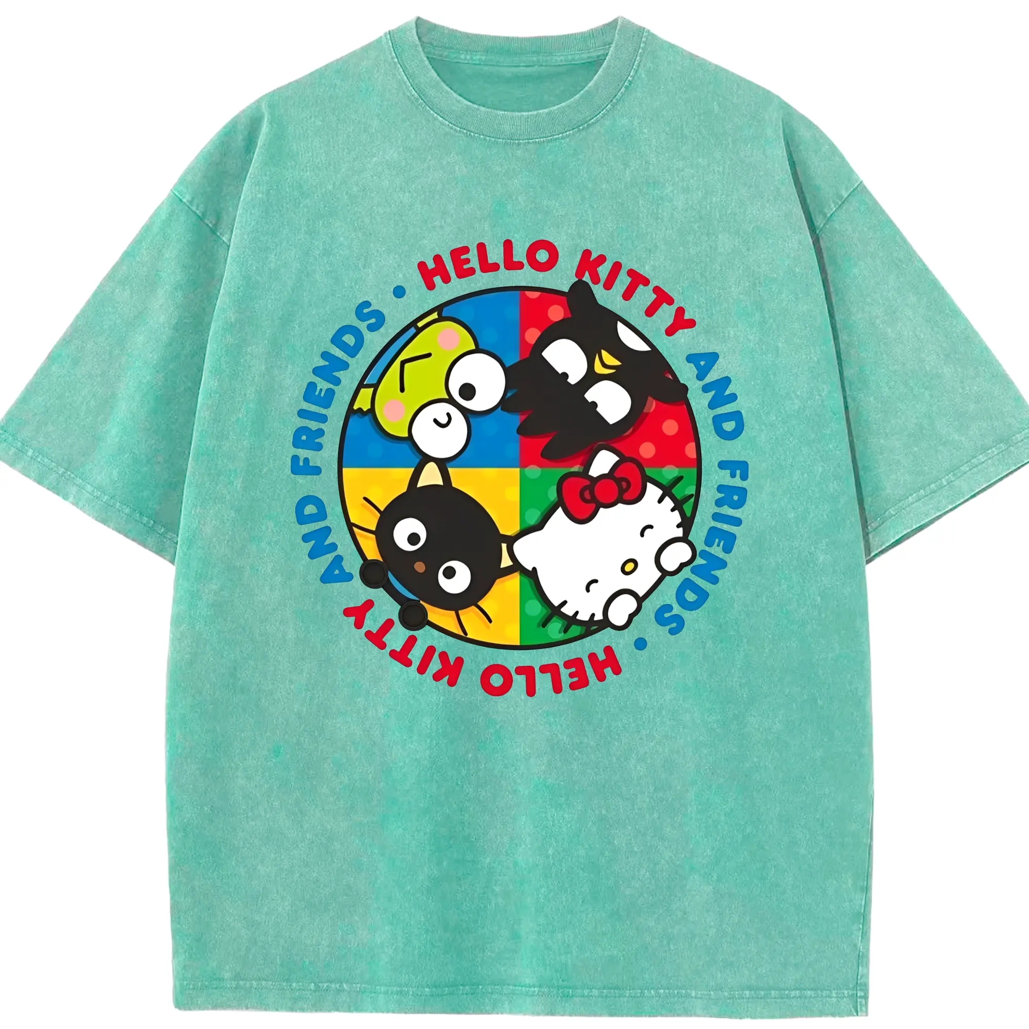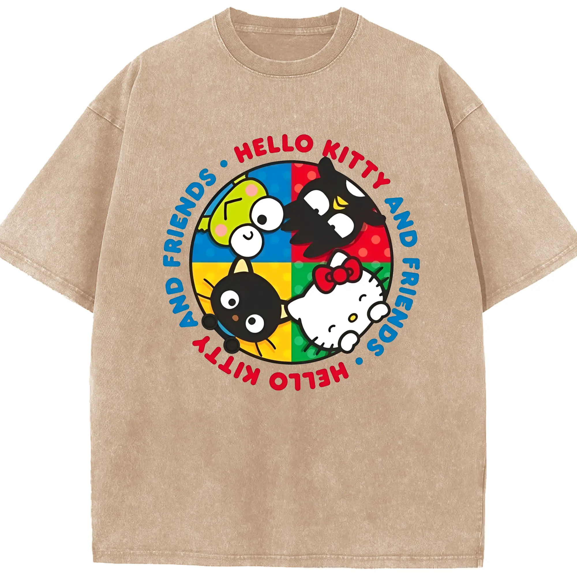 【人気急上昇】サンリオ 新作キャラクター - 綿100% ヴィンテージ風 半袖Tシャツ ・ フロントプリント ・ 柔らか肌触り ・ 通気性 快適 ・ スポーツ カジュアル 外出用