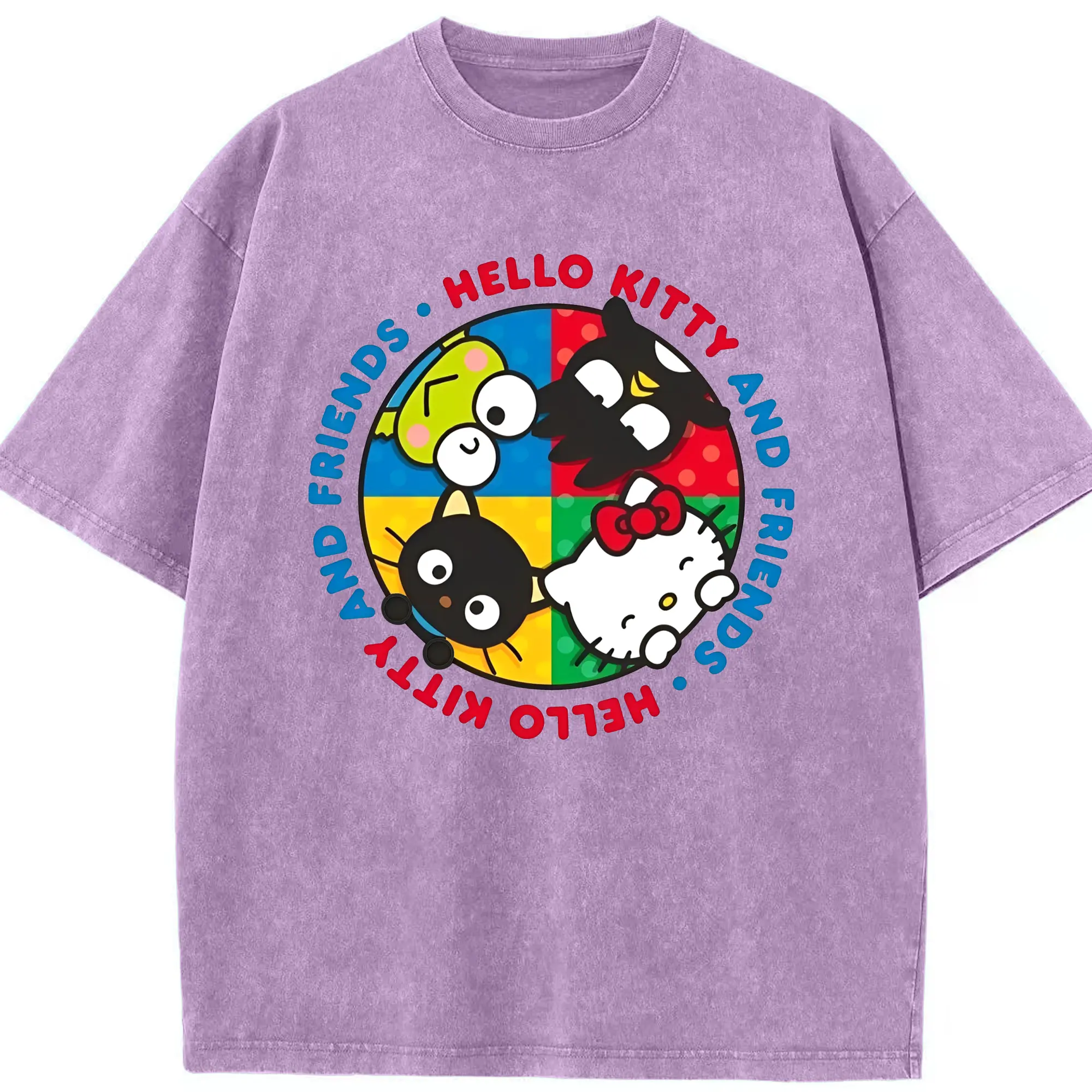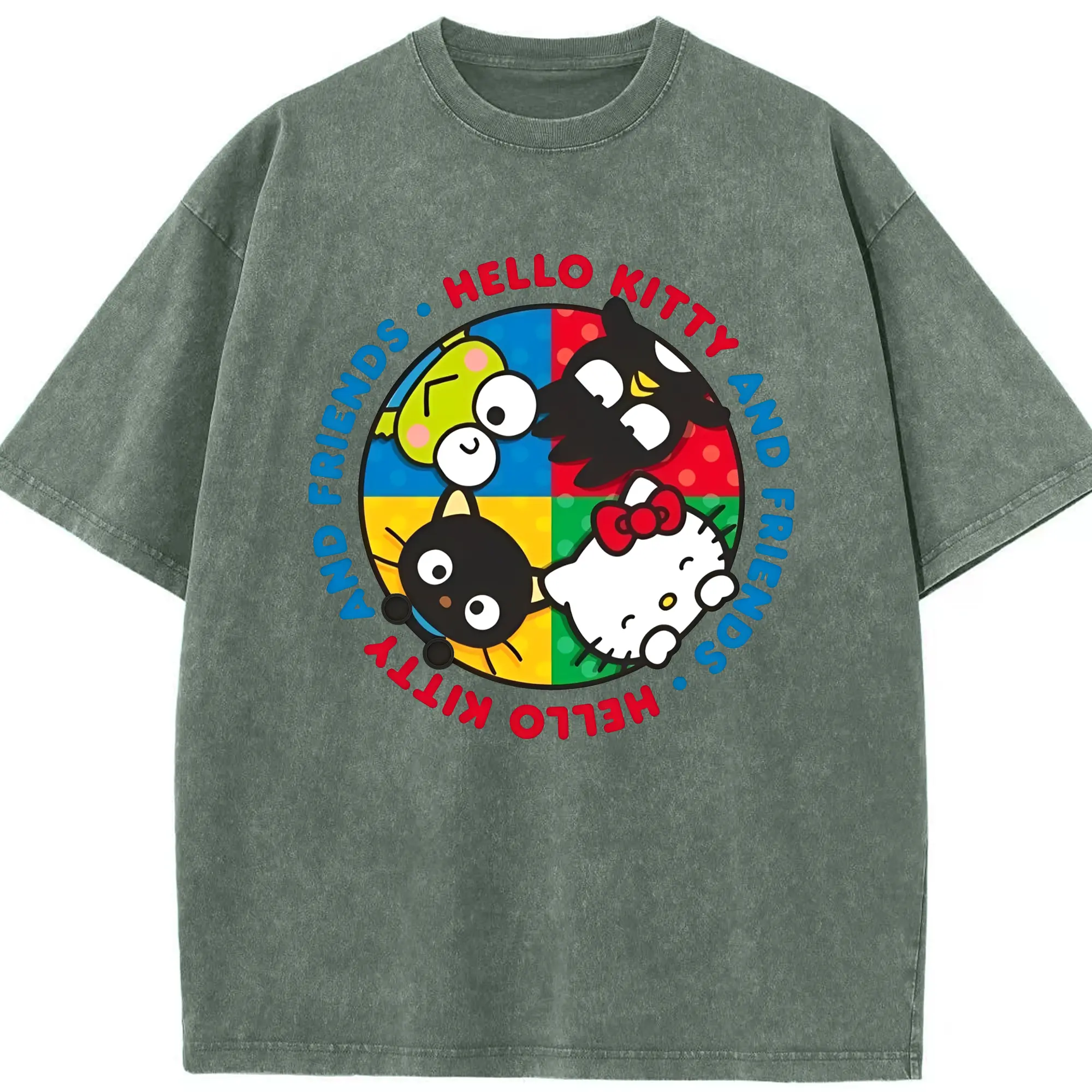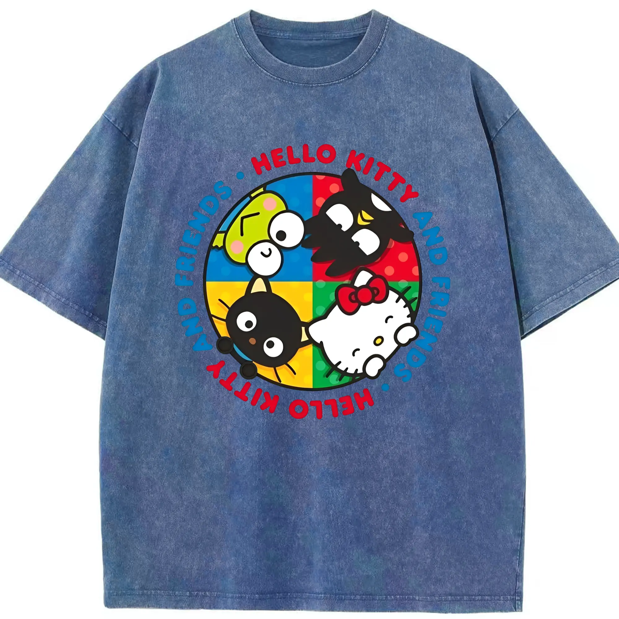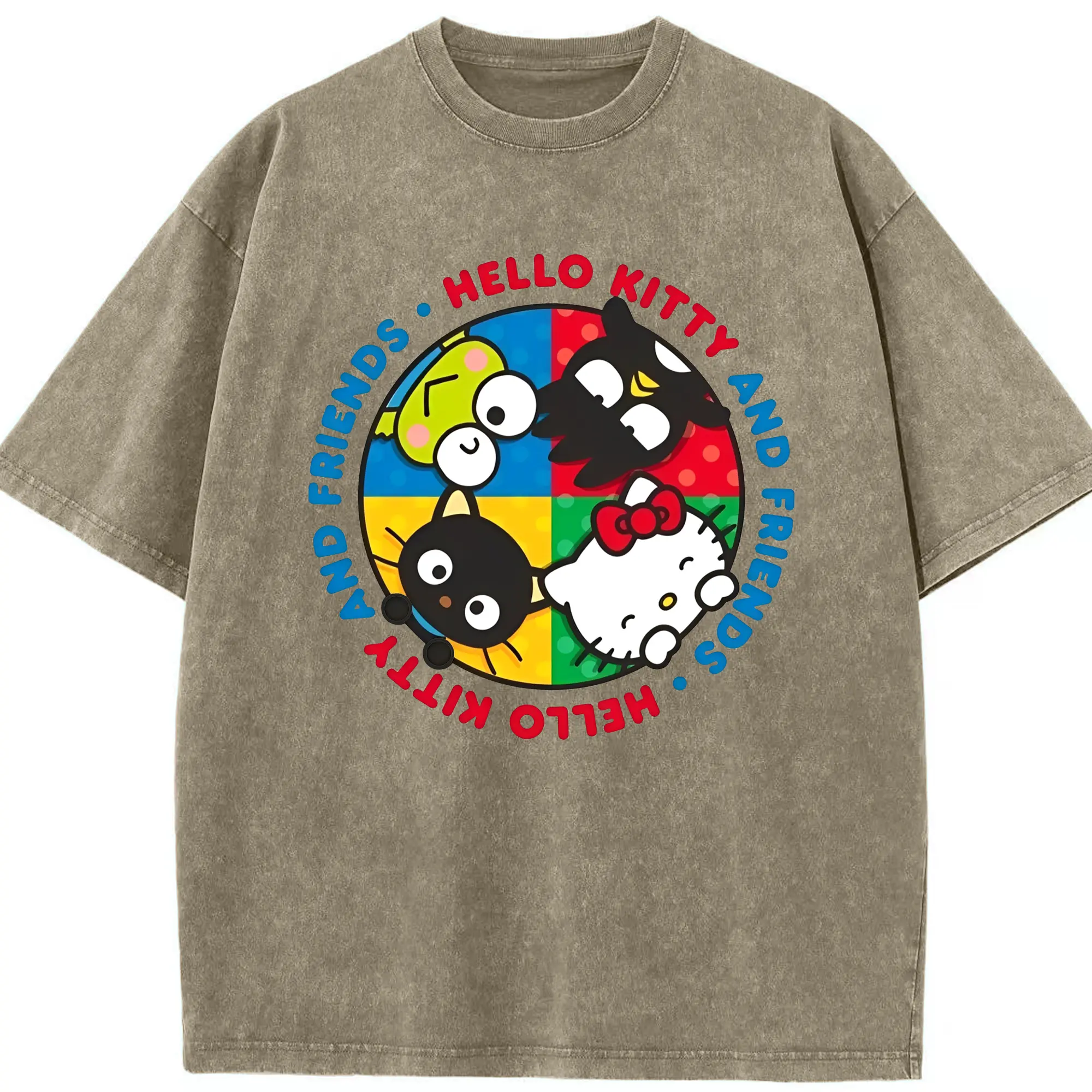 【人気急上昇】サンリオ 新作キャラクター - 綿100% ヴィンテージ風 半袖Tシャツ ・ フロントプリント ・ 柔らか肌触り ・ 通気性 快適 ・ スポーツ カジュアル 外出用