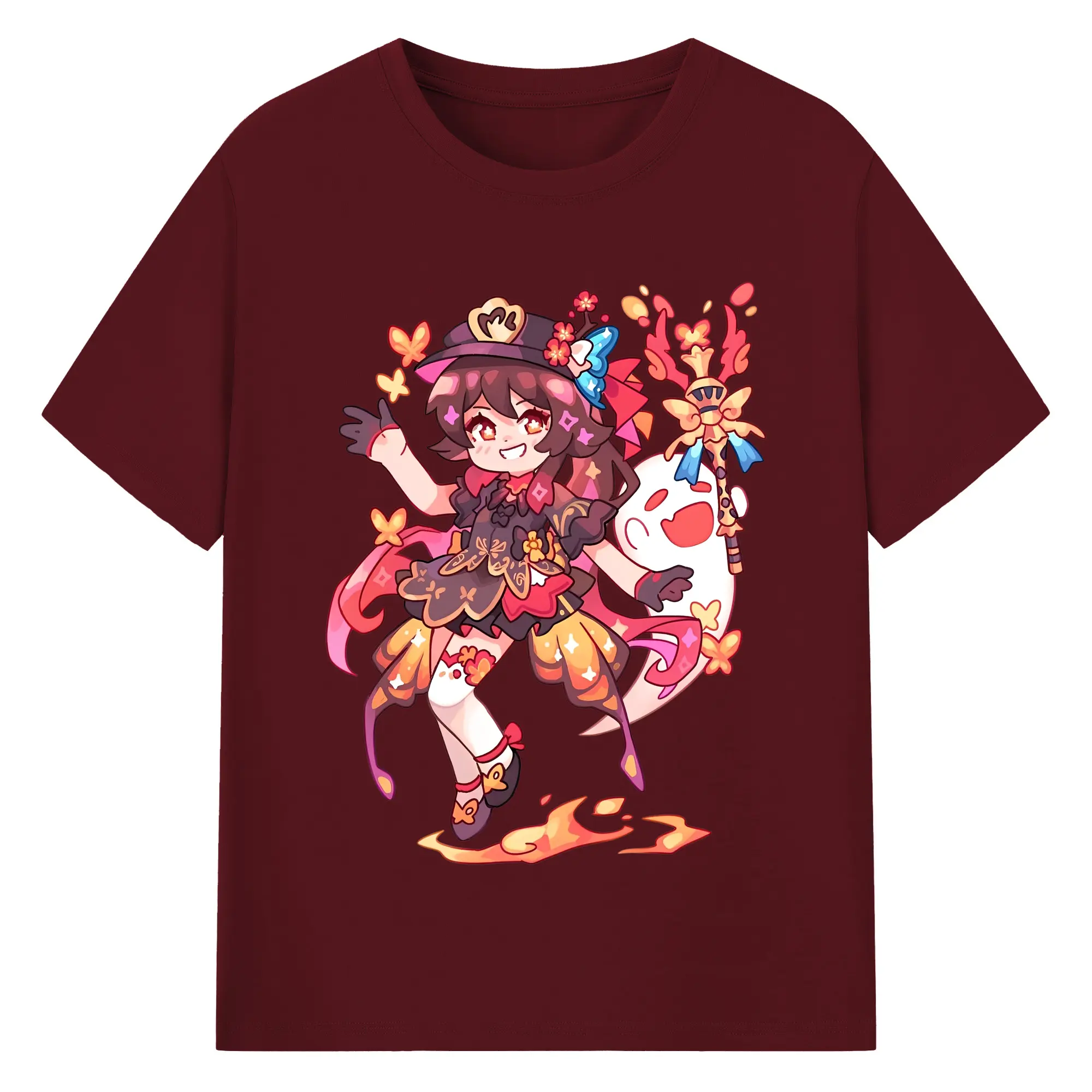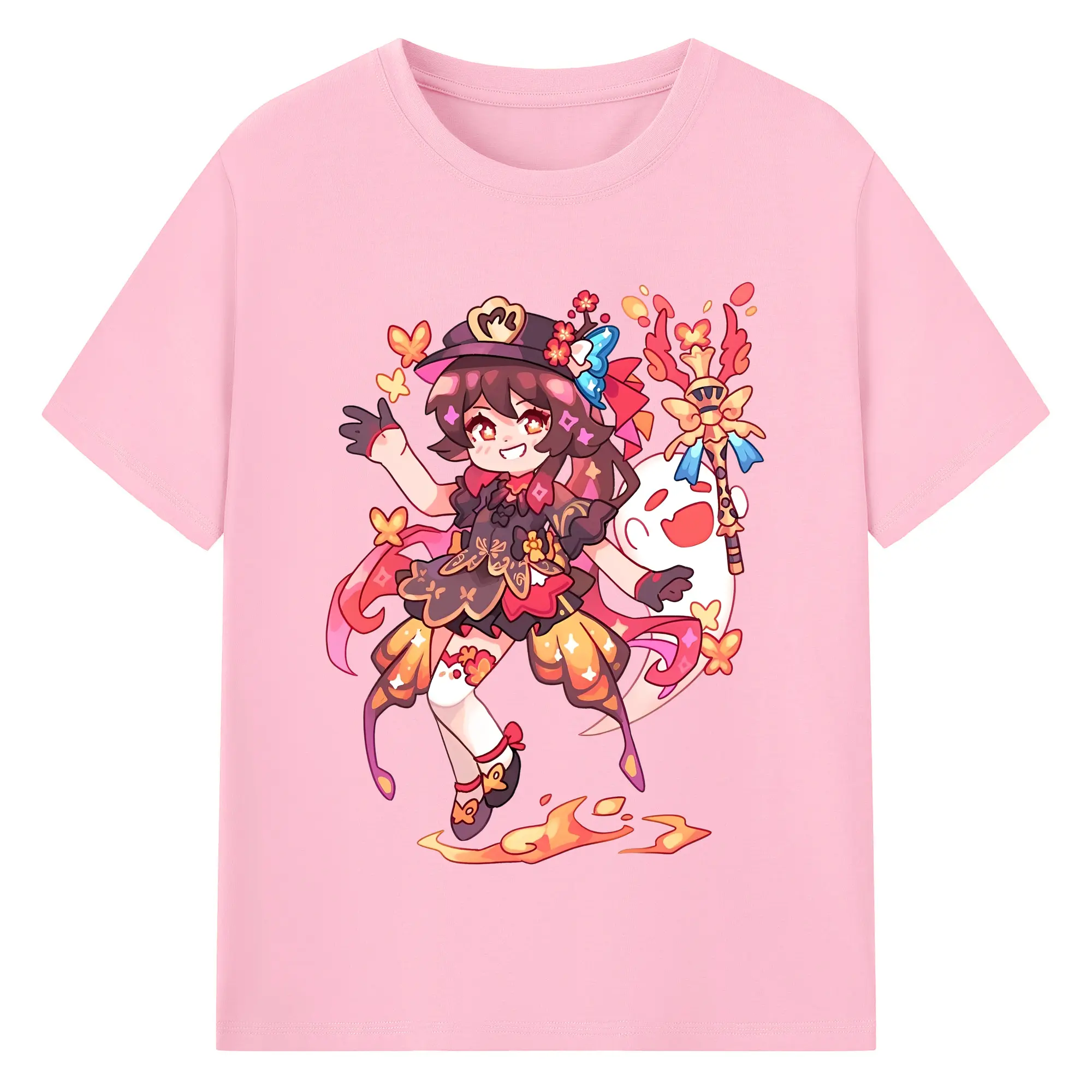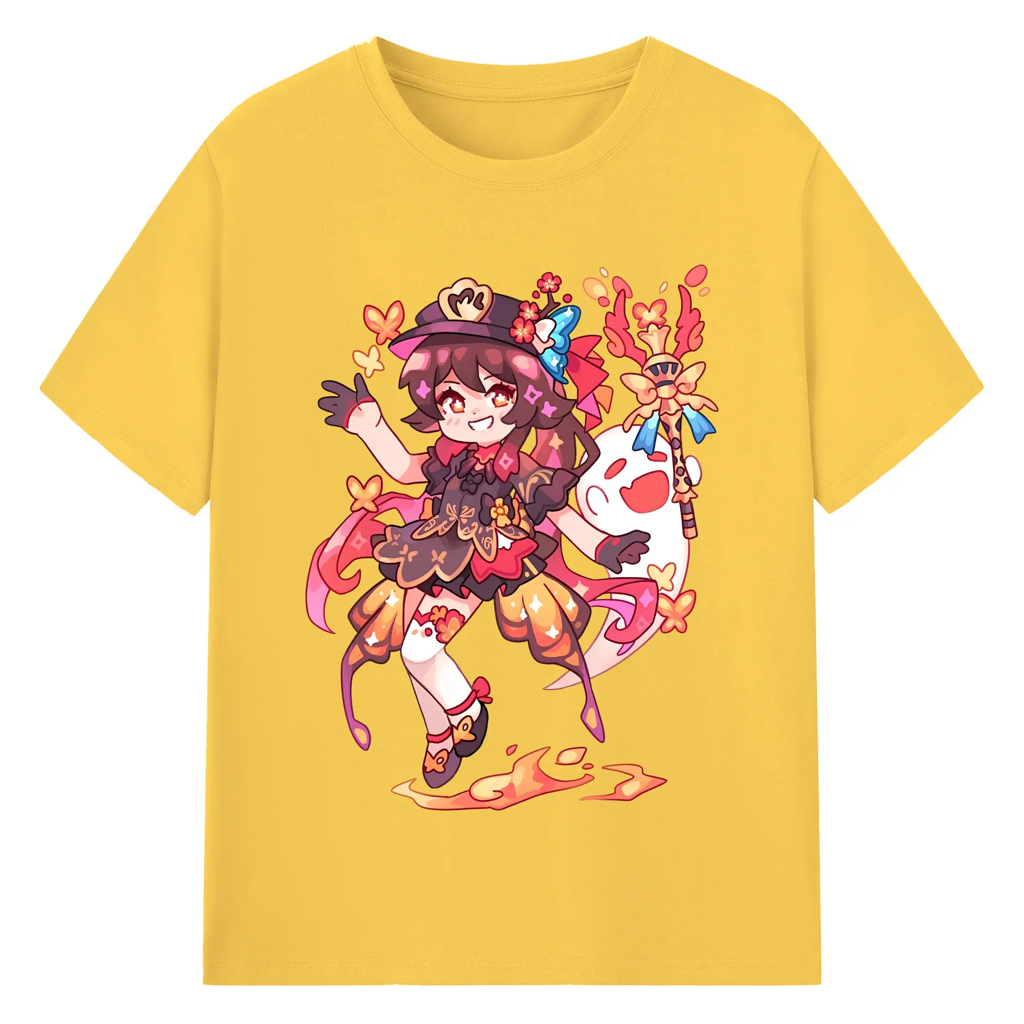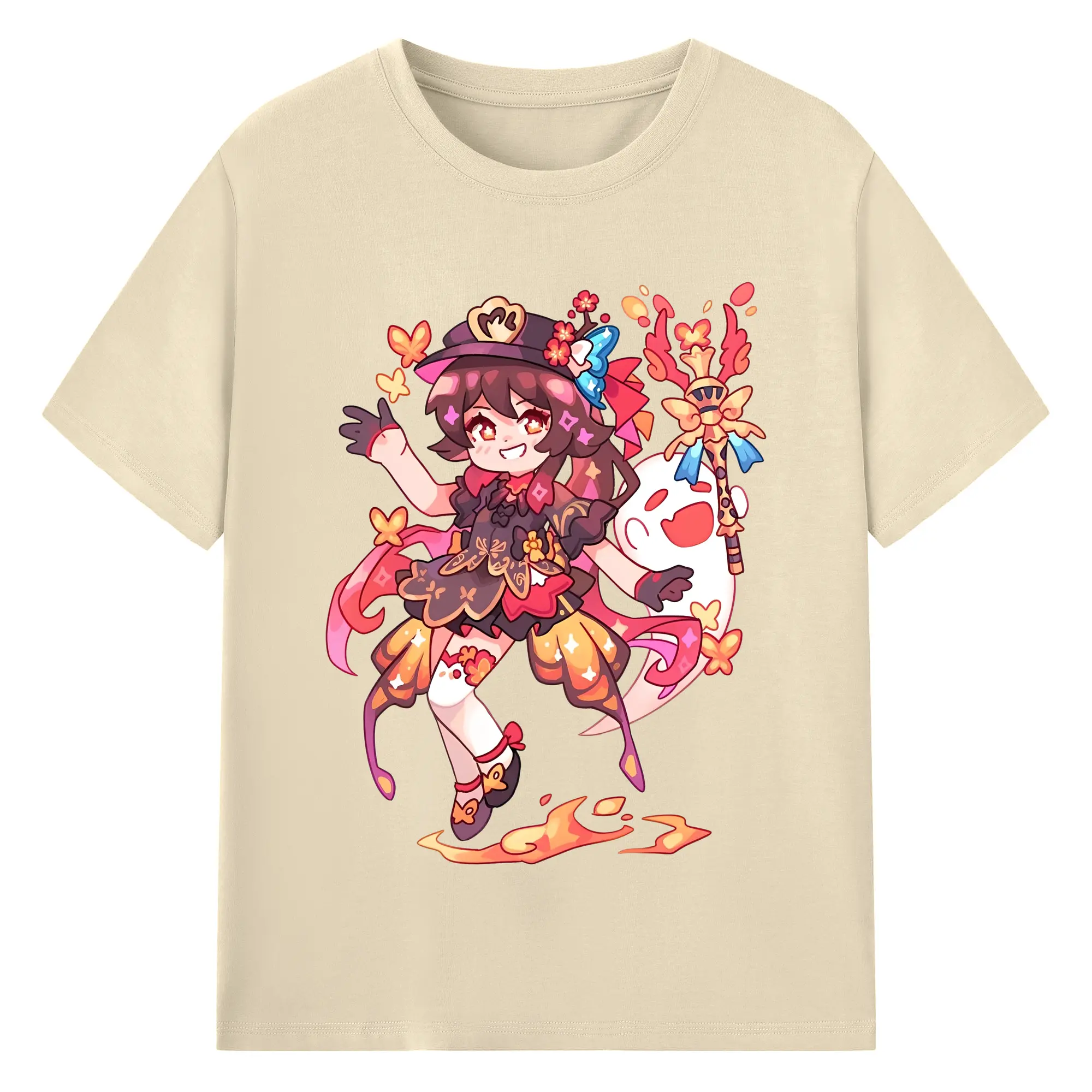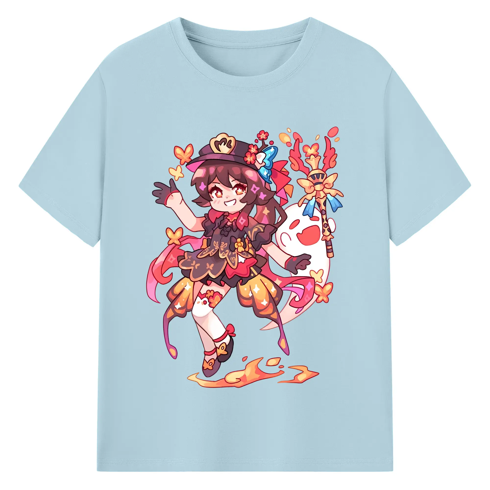 Genshin Impact 放浪者 Q版キャラクター 可愛いファングッズ - 綿100% 半袖Tシャツ ・ フロントプリント ・ 快適 通気性 ・ 日常使い 散歩 スポーツ用