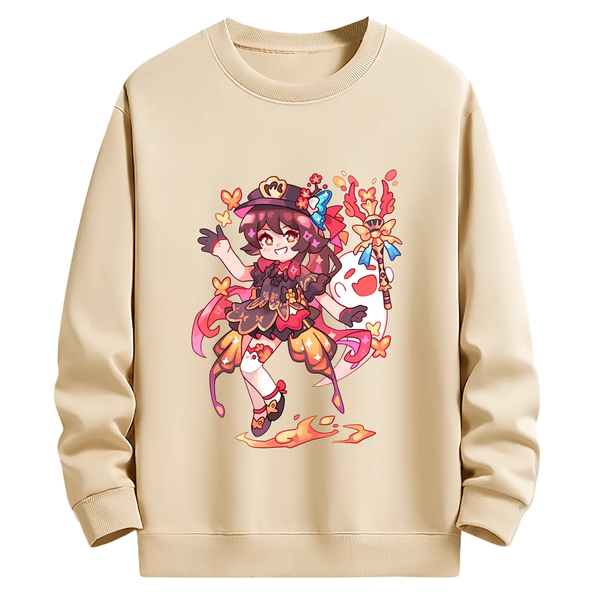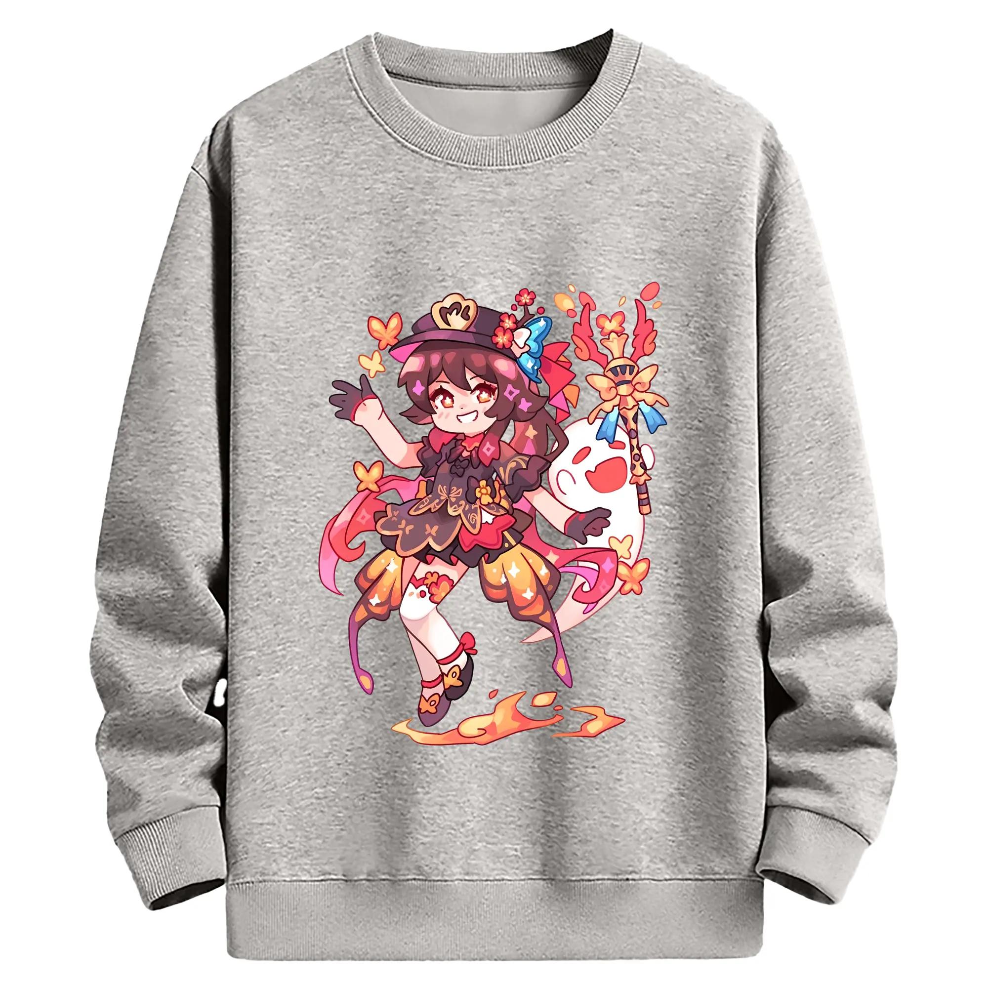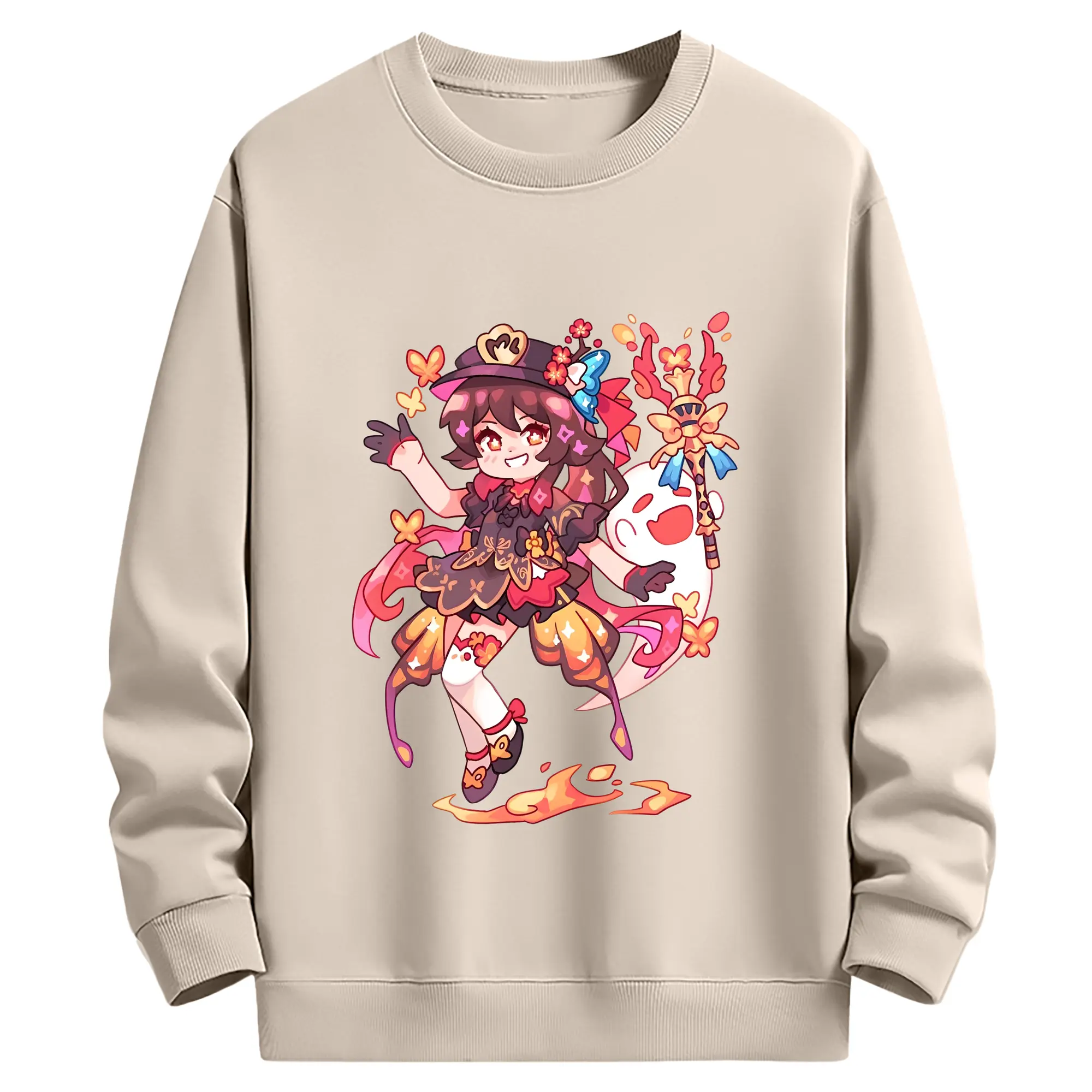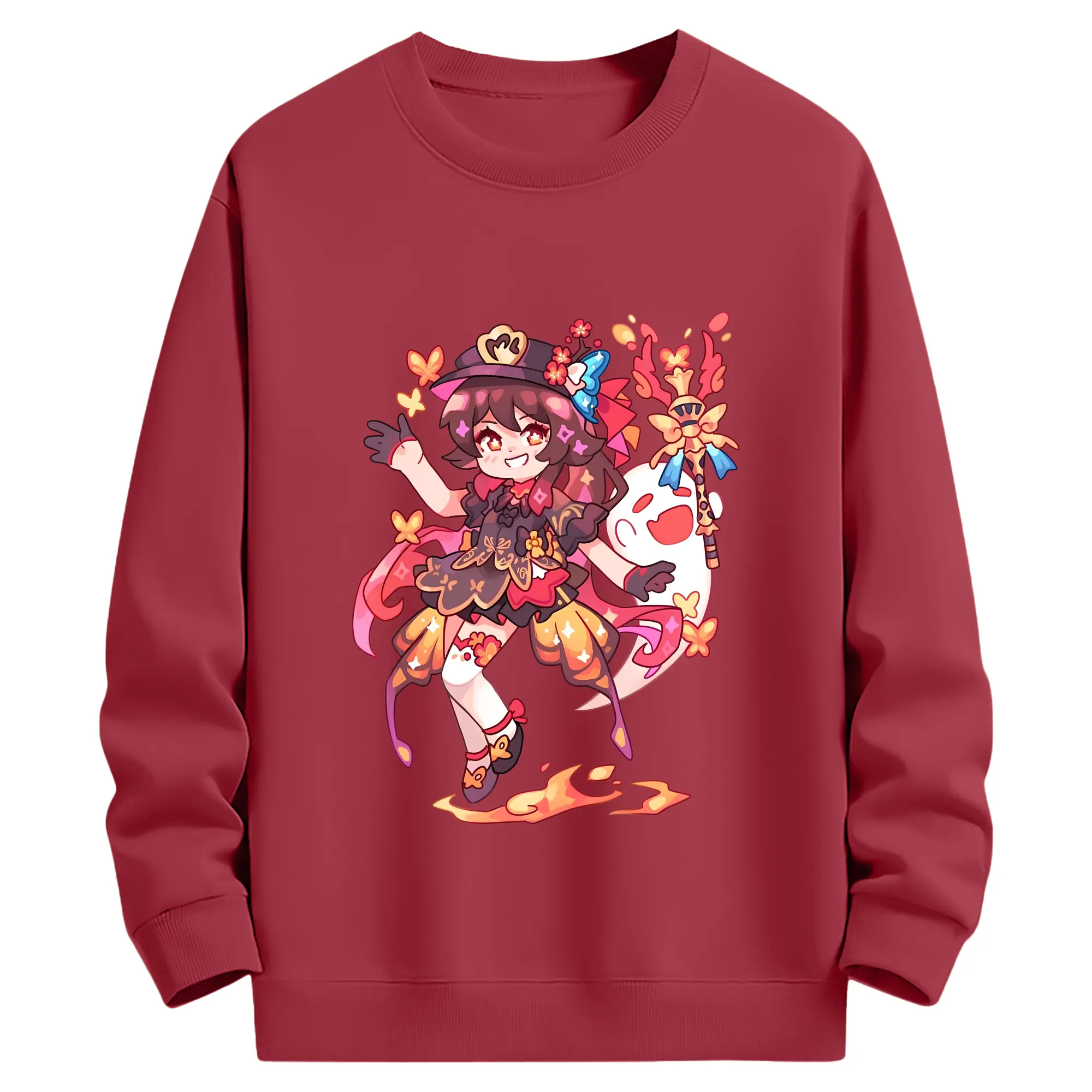 原神胡桃 Hu Tao大人気 キャラクターグッズ 周辺 - 高品質 クルーネック スウェット ・ コットン59% ポリエステル41% ・ ユニセックス 長袖 トレーナー ・ カジュアル デイリー スポーツ 散歩用