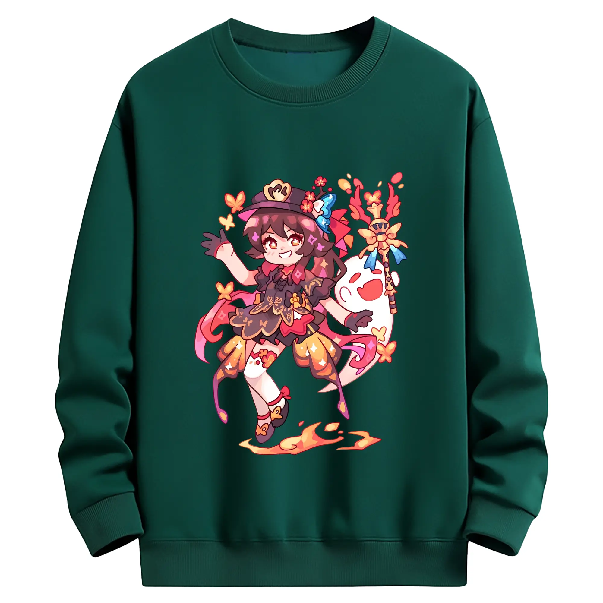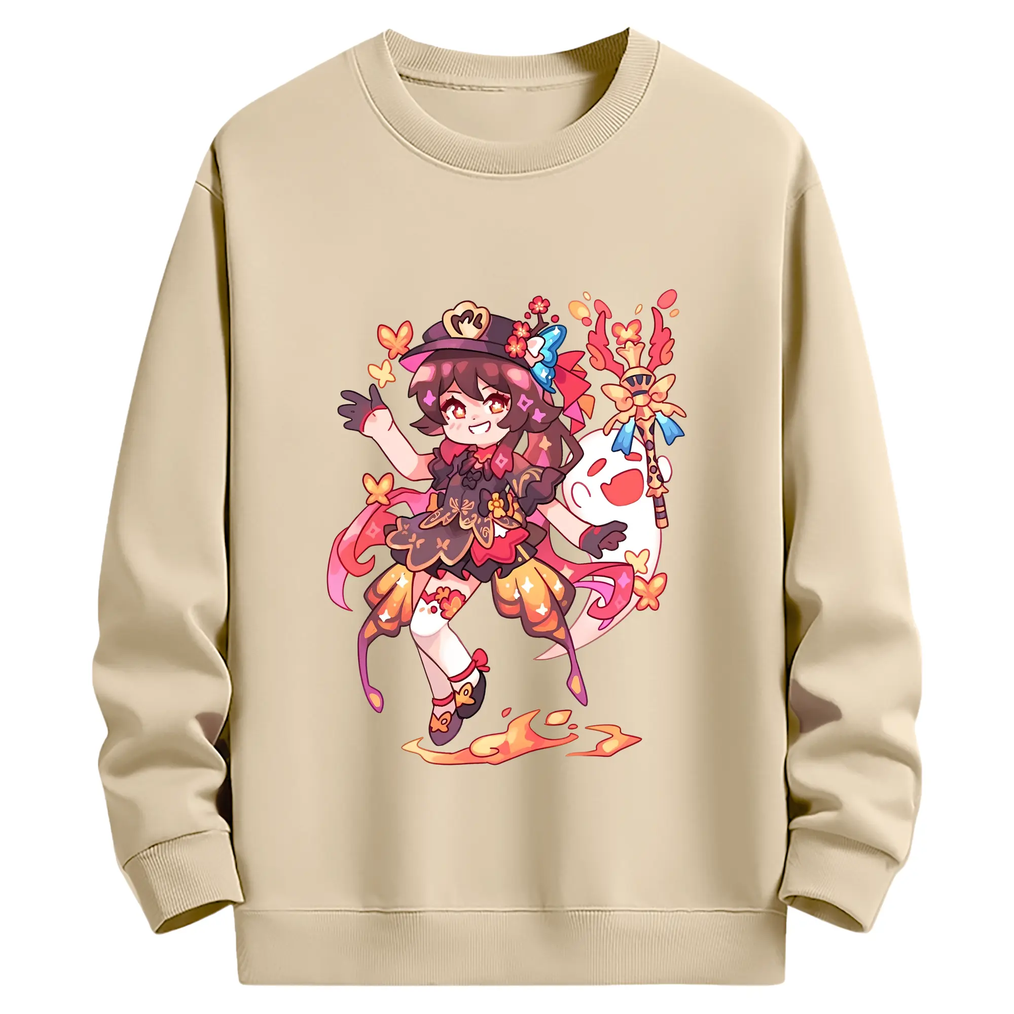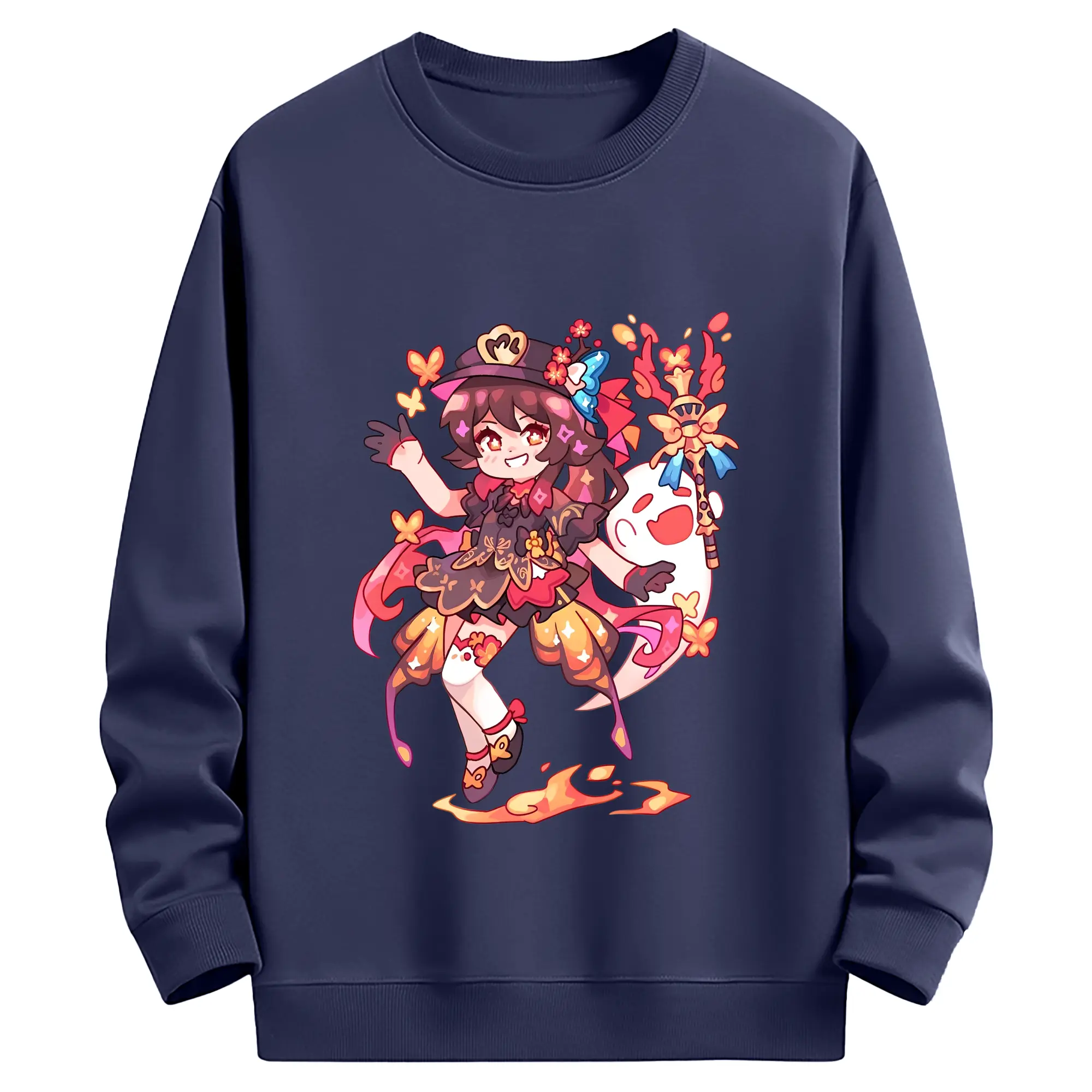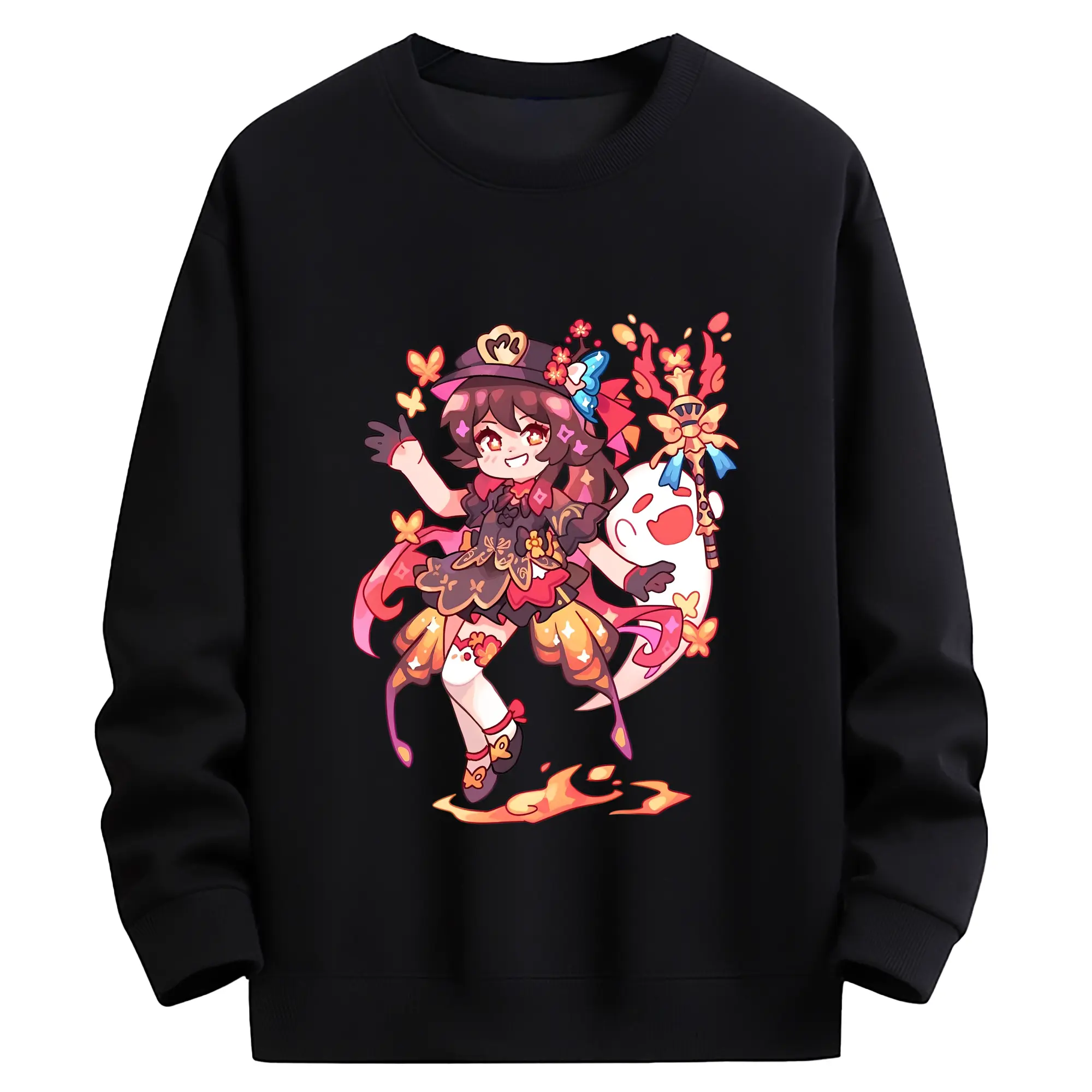 原神胡桃 Hu Tao大人気 キャラクターグッズ 周辺 - 高品質 クルーネック スウェット ・ コットン59% ポリエステル41% ・ ユニセックス 長袖 トレーナー ・ カジュアル デイリー スポーツ 散歩用