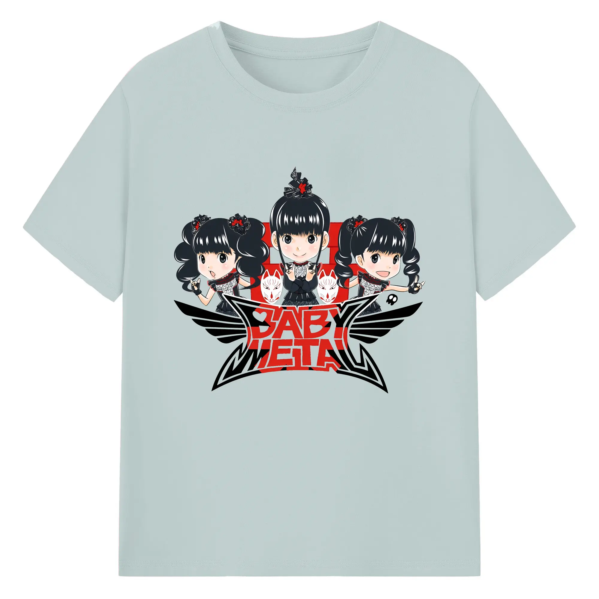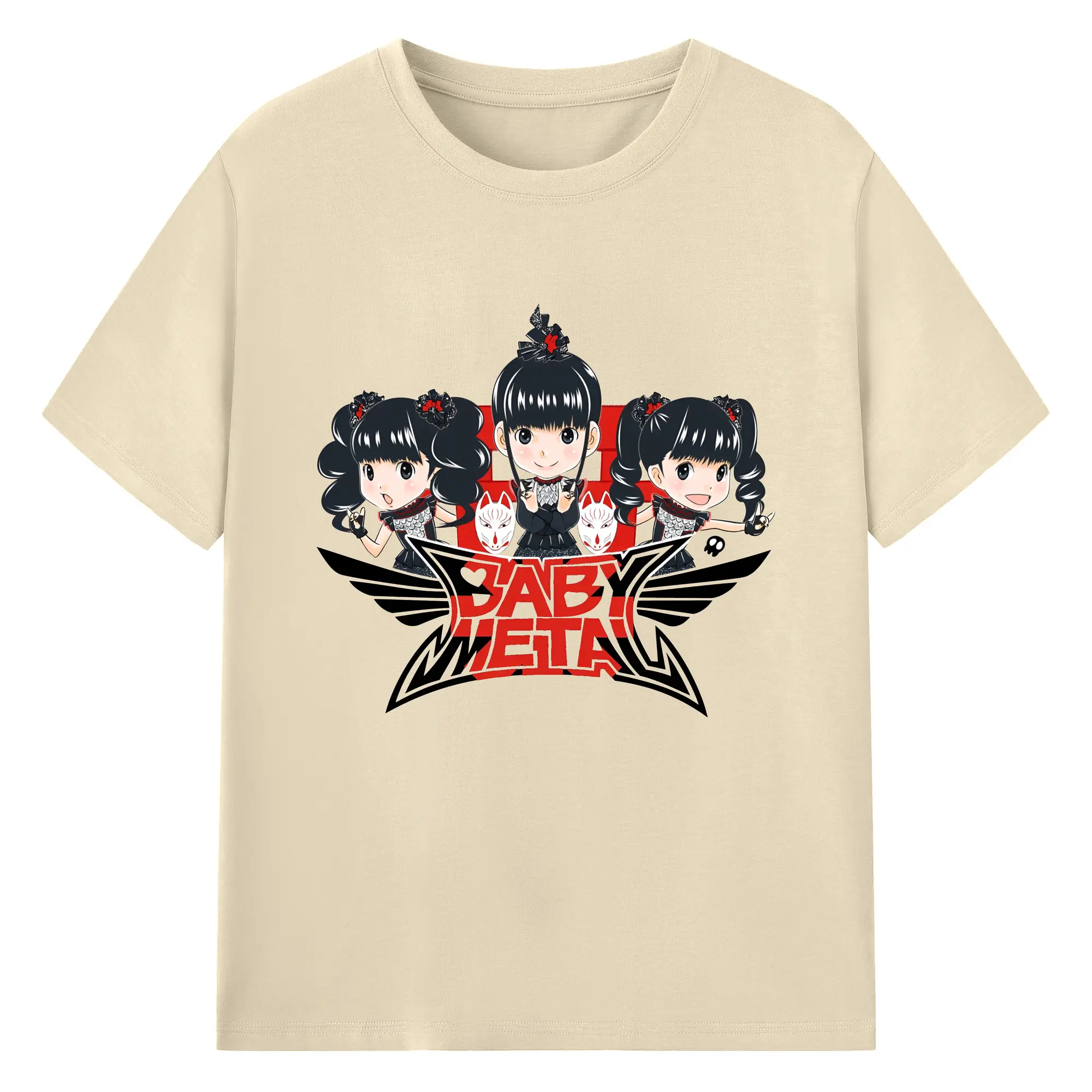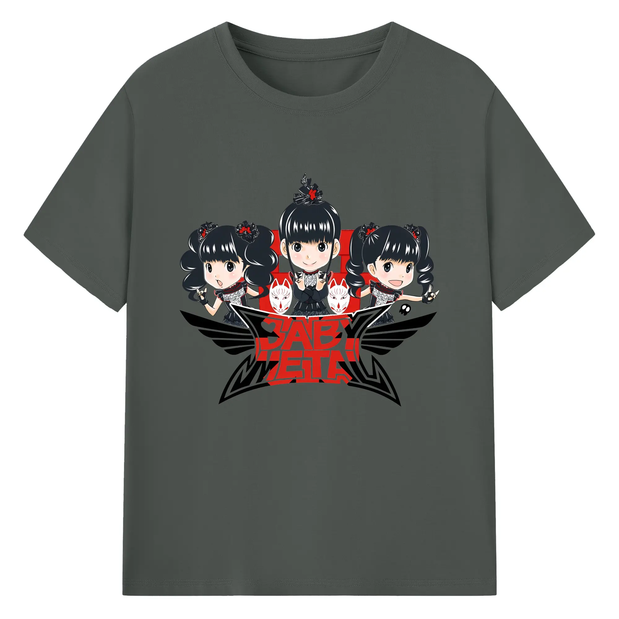 ベビーメタル BABYMETAL限定 - 綿100% ヴィンテージ風 半袖Tシャツ ・ フロントプリント ・ 柔らか肌触り ・ 通気性 快適 ・ スポーツ カジュアル 外出用