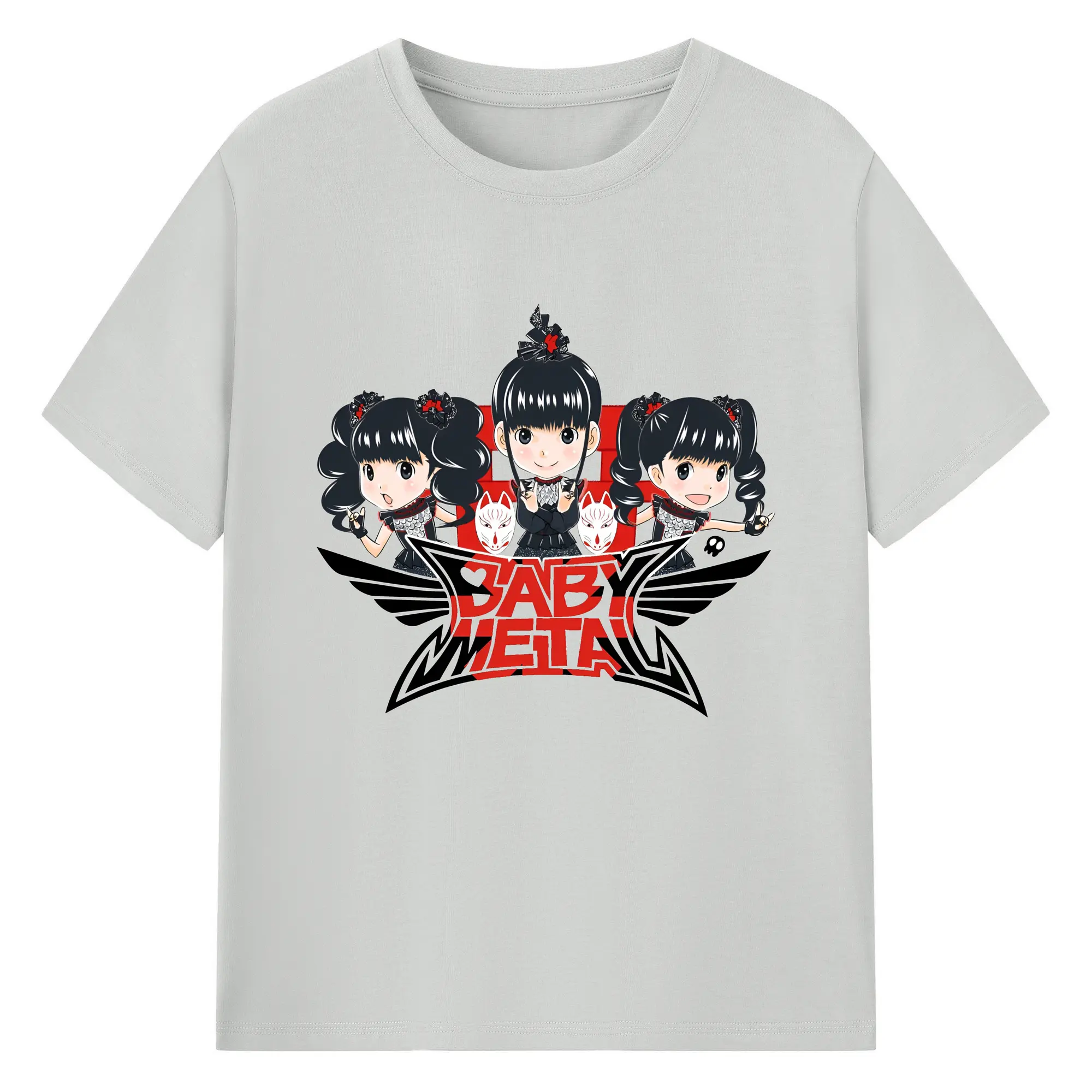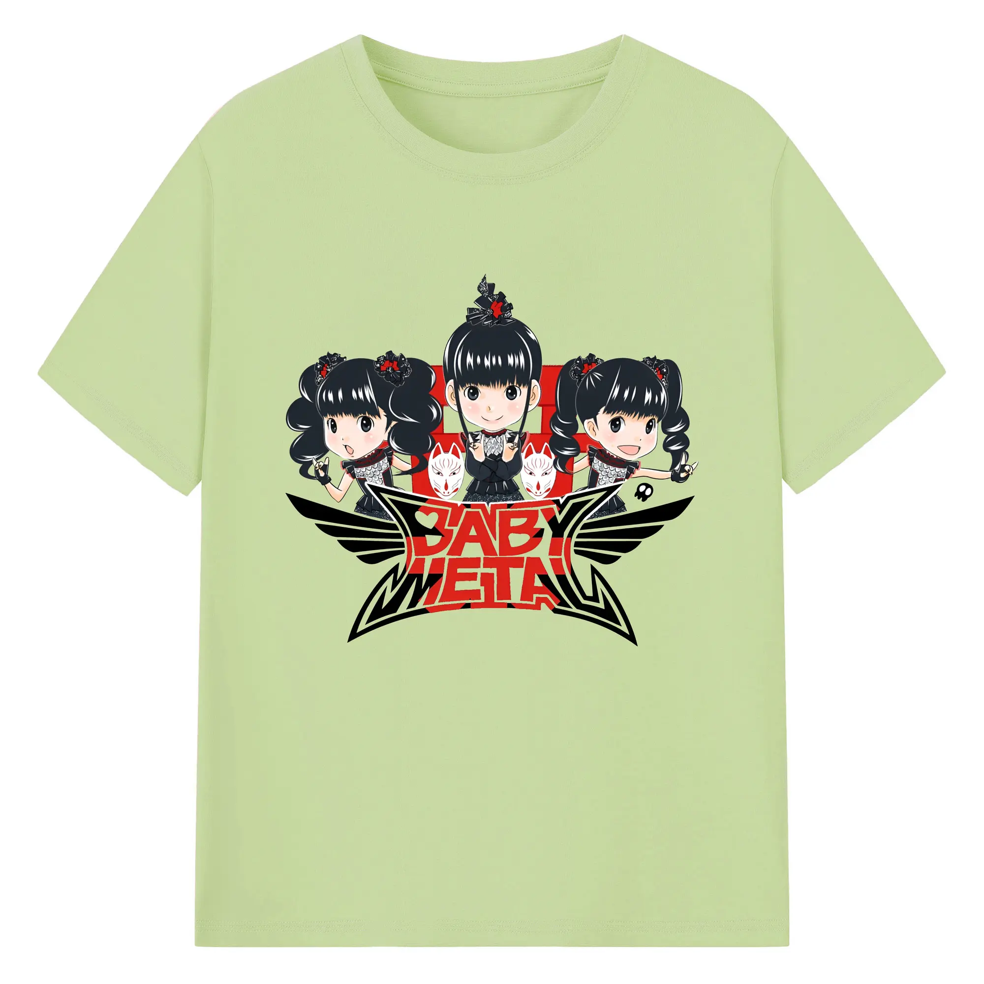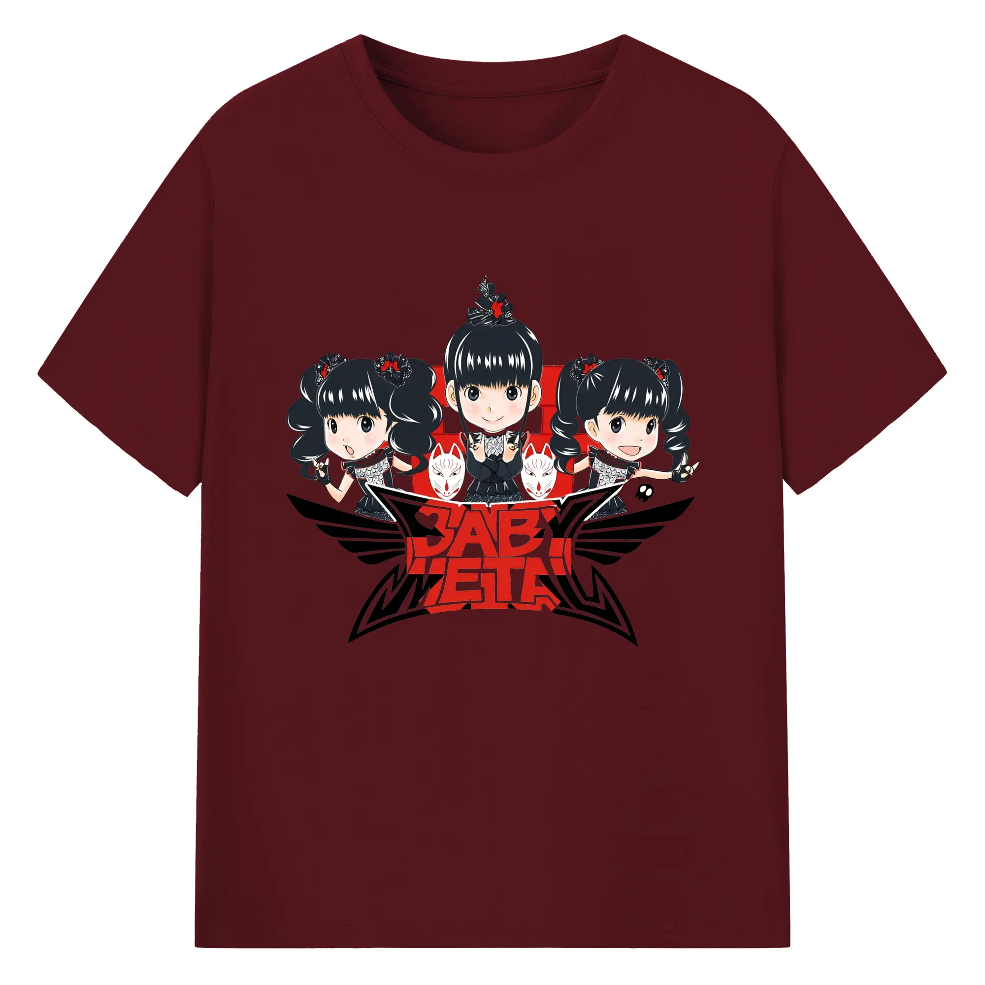 ベビーメタル BABYMETAL限定 - 綿100% ヴィンテージ風 半袖Tシャツ ・ フロントプリント ・ 柔らか肌触り ・ 通気性 快適 ・ スポーツ カジュアル 外出用