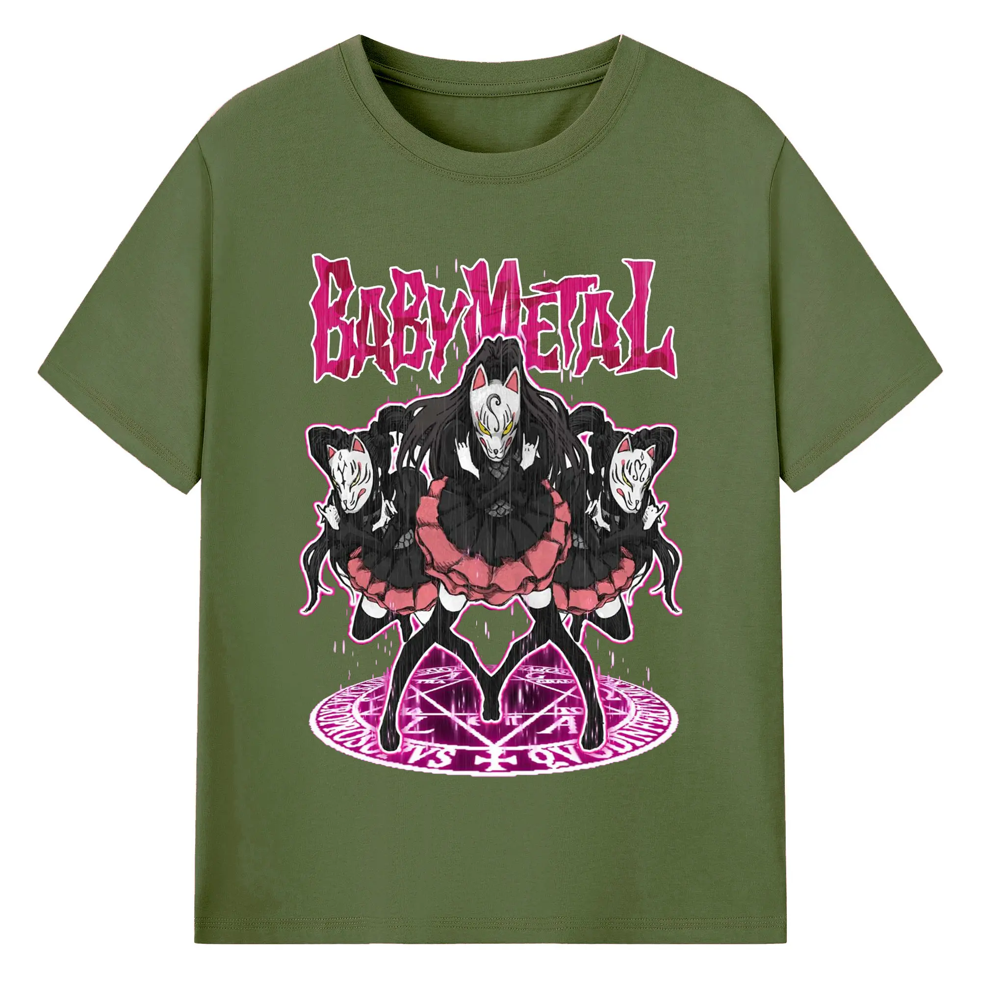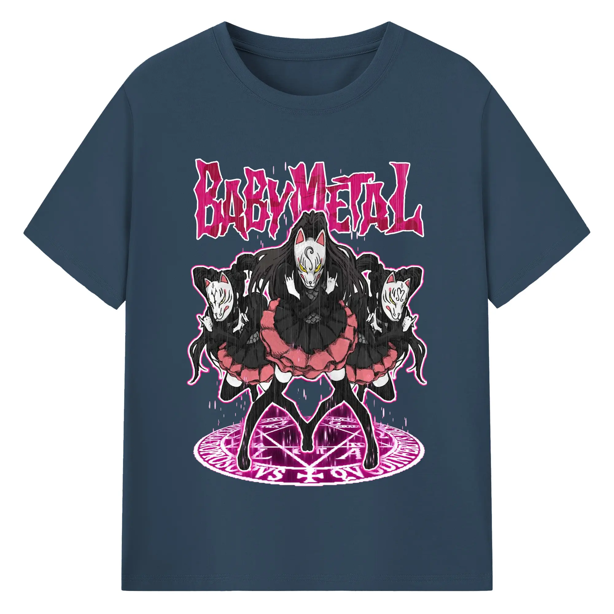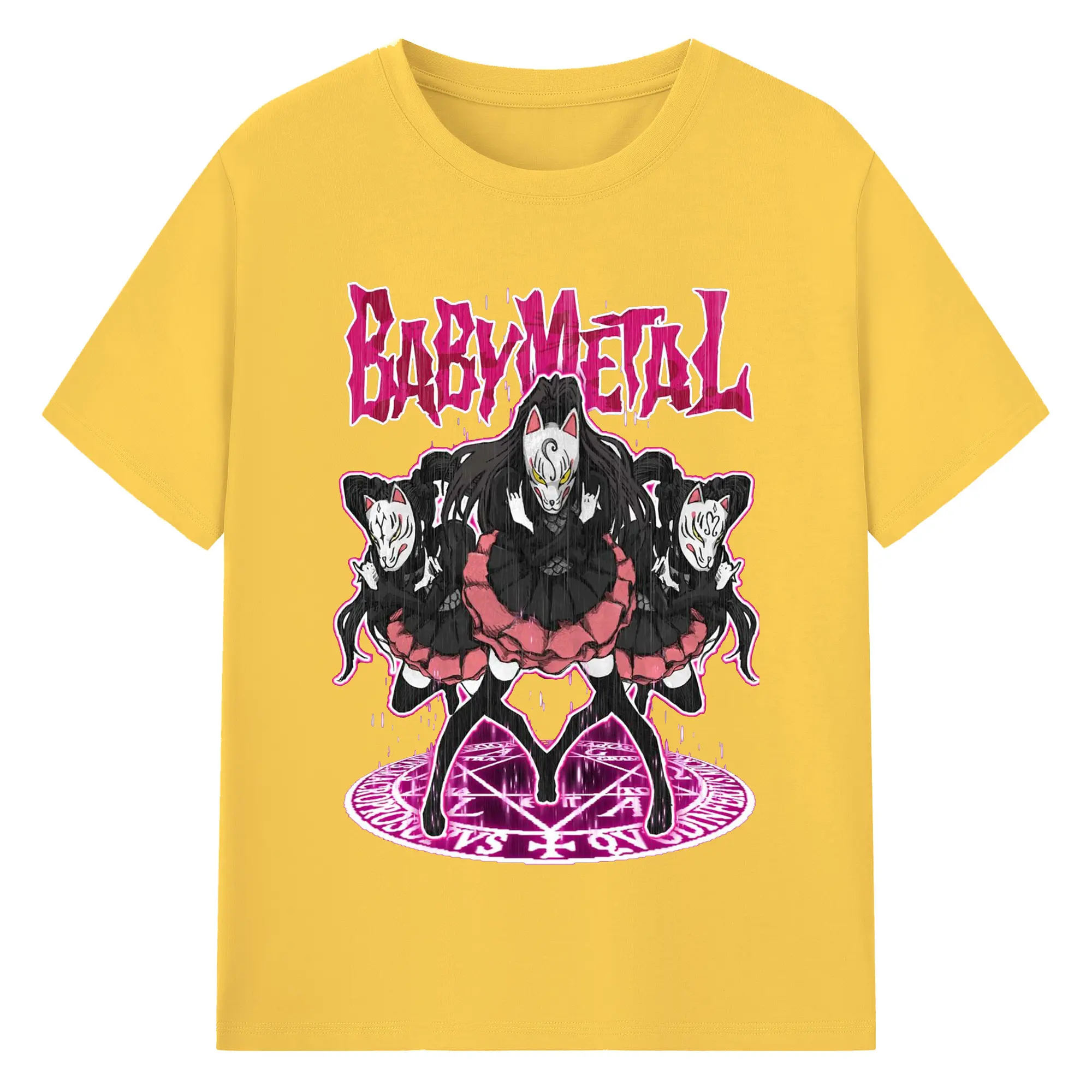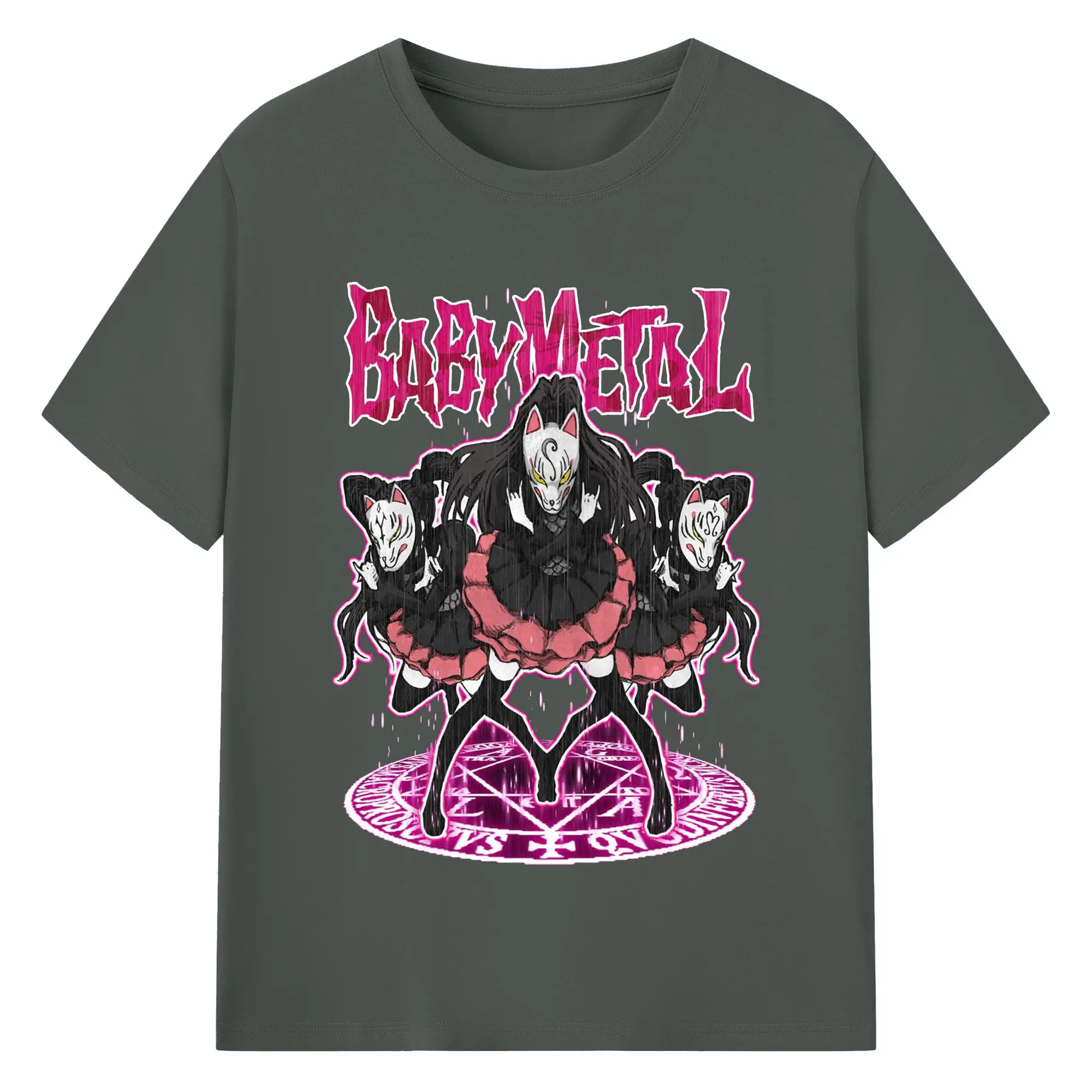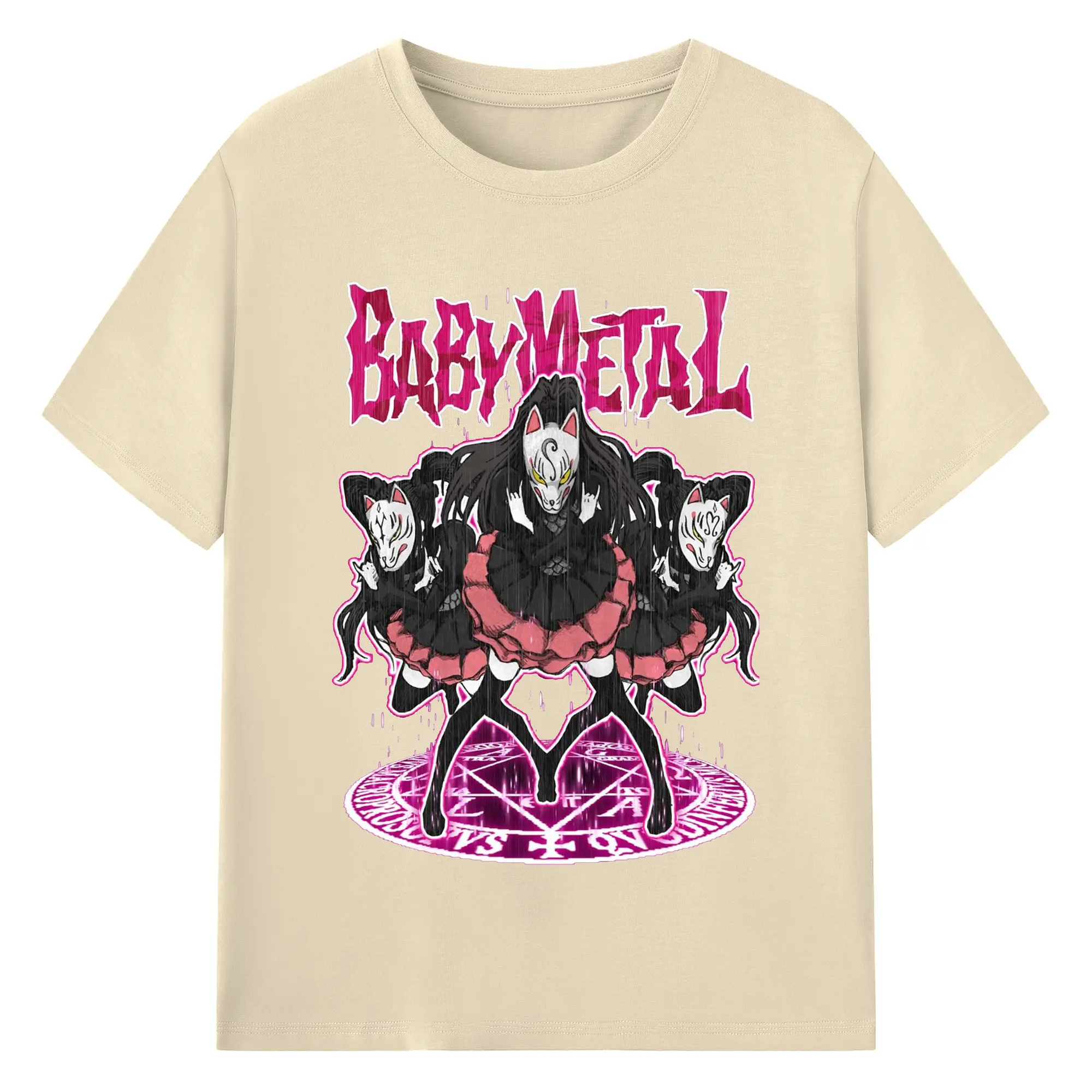 ベビーメタル BABYMETAL - 綿100% ヴィンテージ風 半袖Tシャツ ・ フロントプリント ・ 柔らか肌触り ・ 通気性 快適 ・ スポーツ カジュアル 外出用