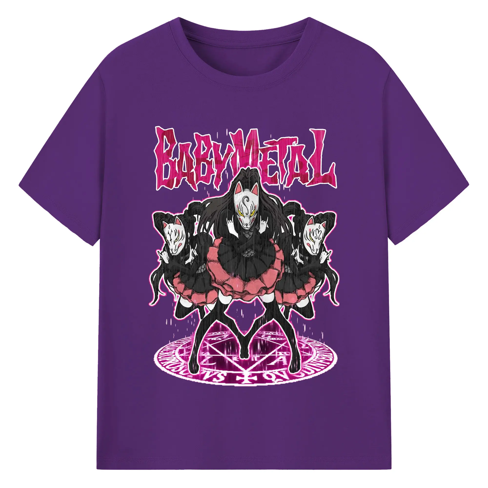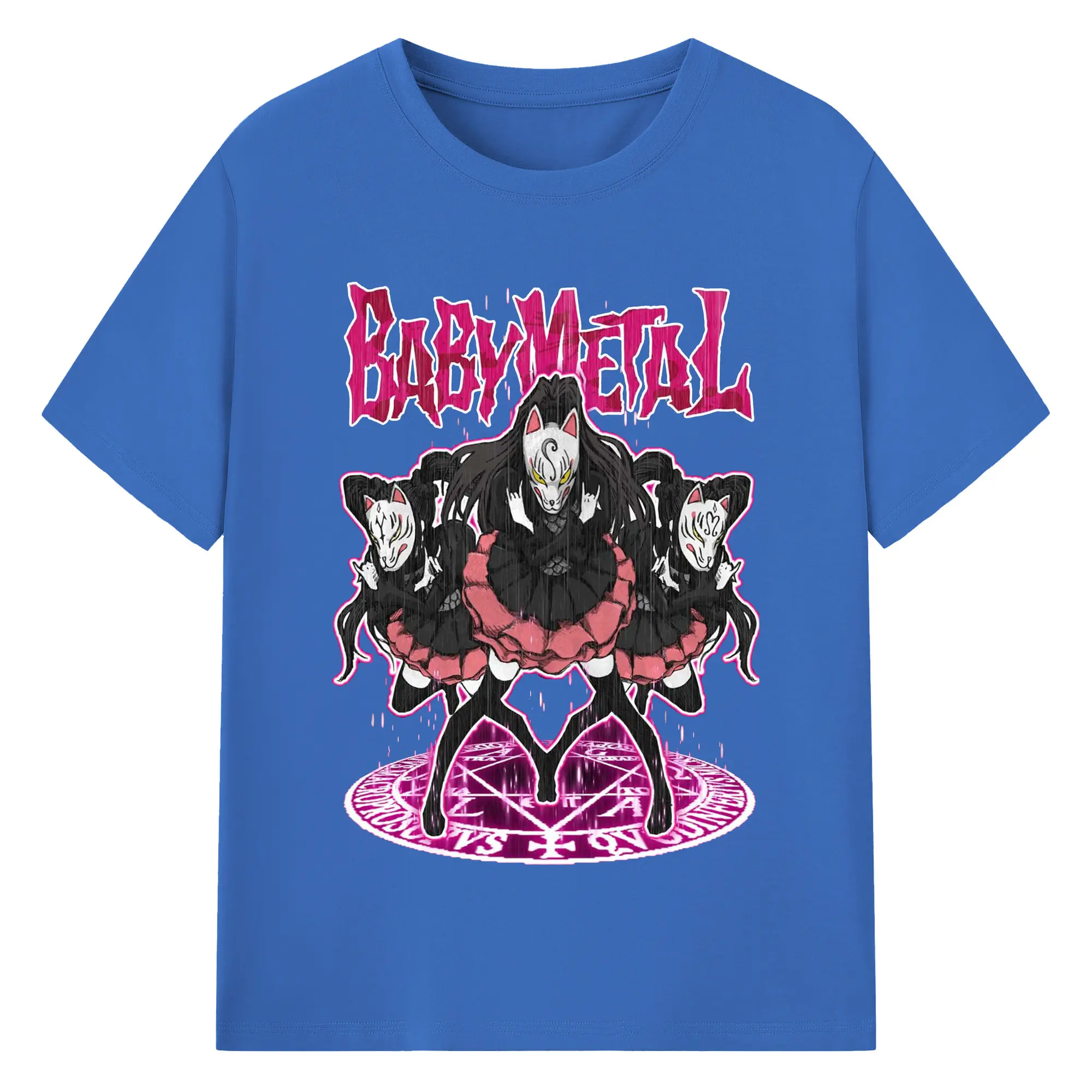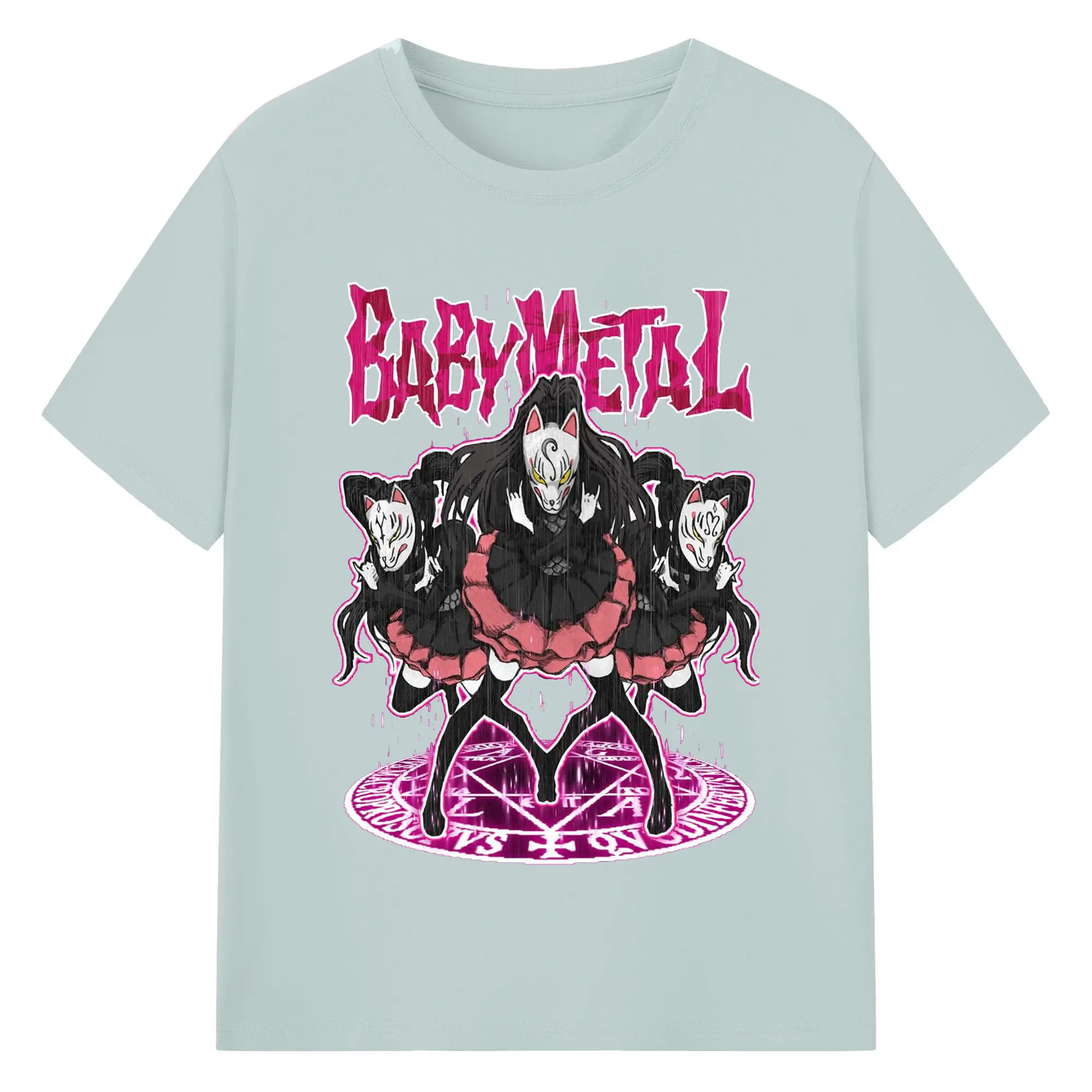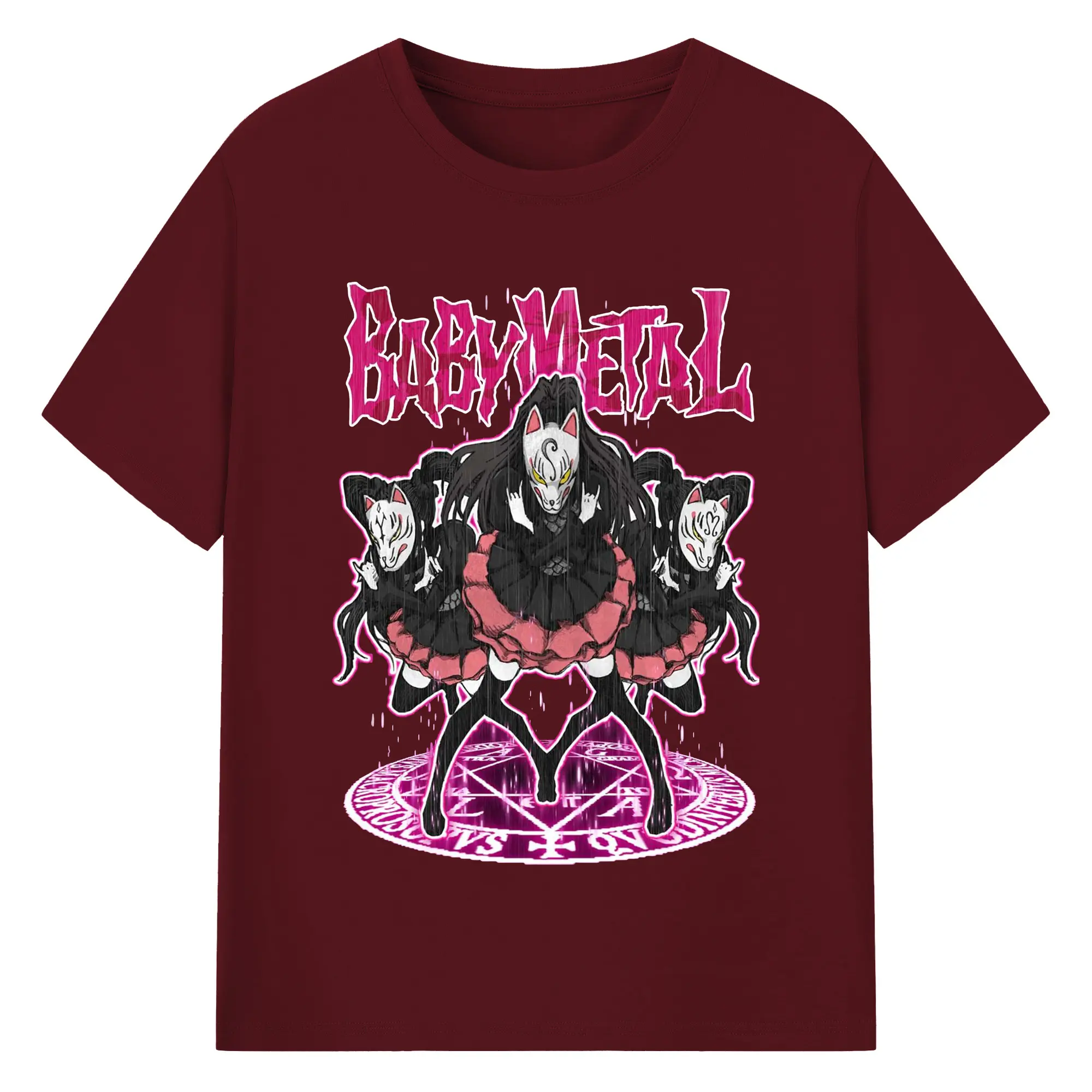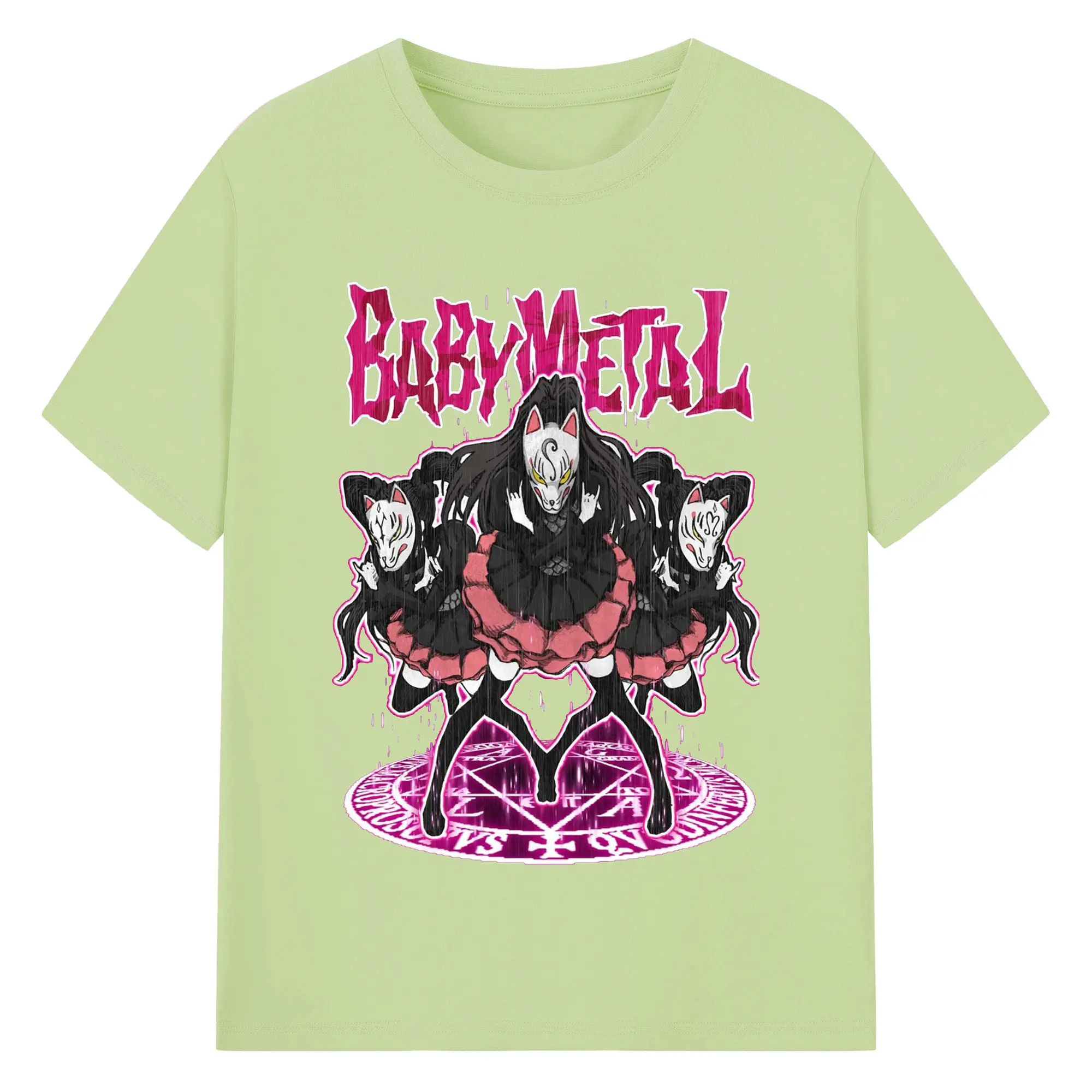 ベビーメタル BABYMETAL - 綿100% ヴィンテージ風 半袖Tシャツ ・ フロントプリント ・ 柔らか肌触り ・ 通気性 快適 ・ スポーツ カジュアル 外出用