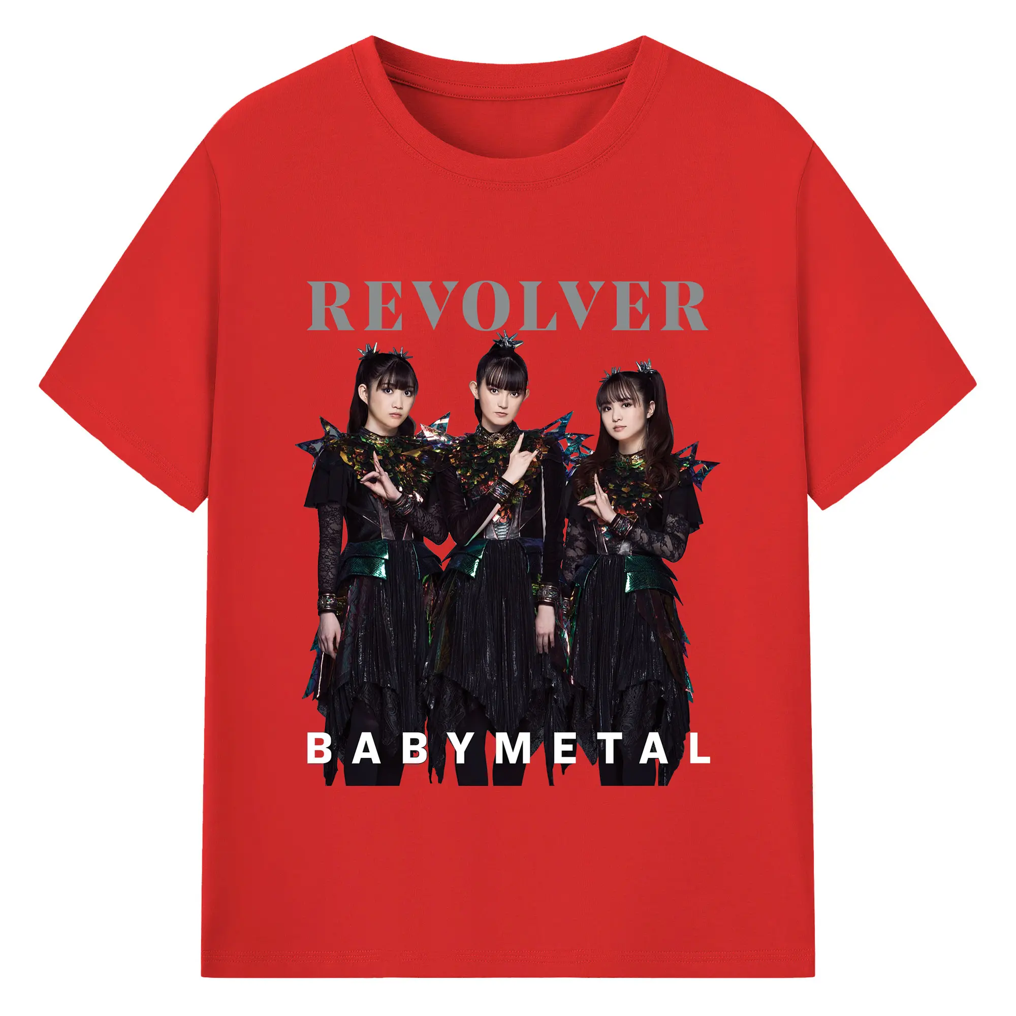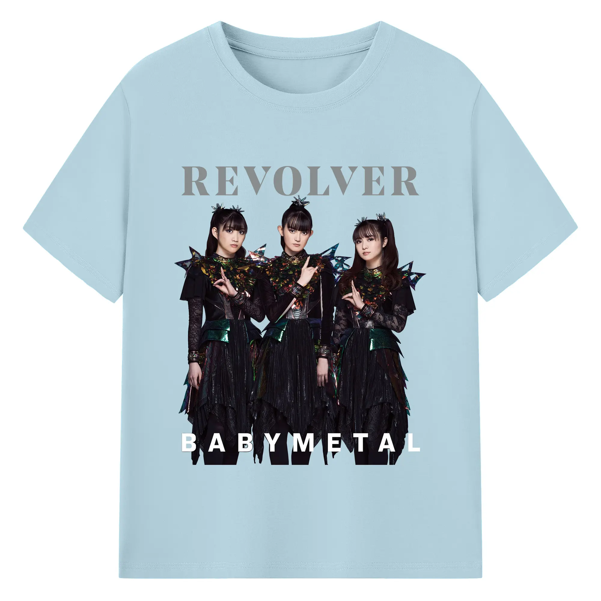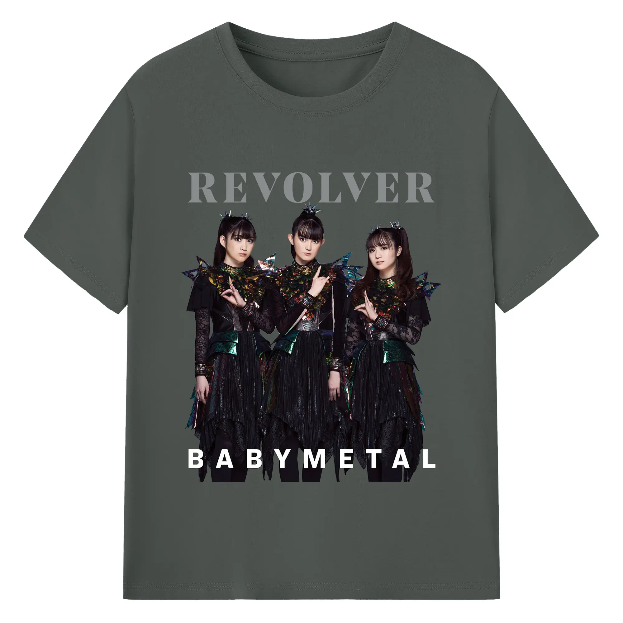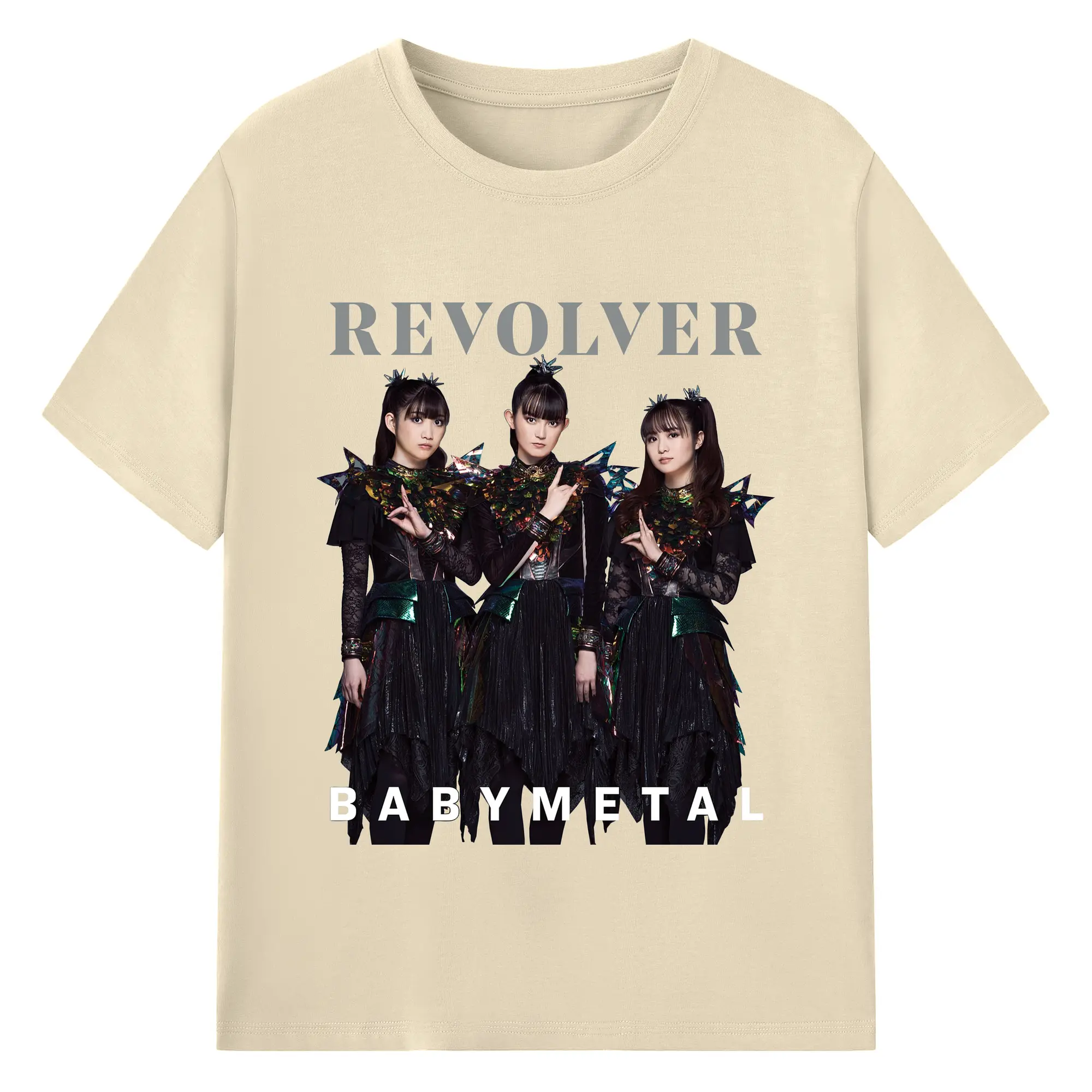 ベビーメタル BABYMETAL&REVOLVER - 綿100% ヴィンテージ風 半袖Tシャツ ・ フロントプリント ・ 柔らか肌触り ・ 通気性 快適 ・ スポーツ カジュアル 外出用